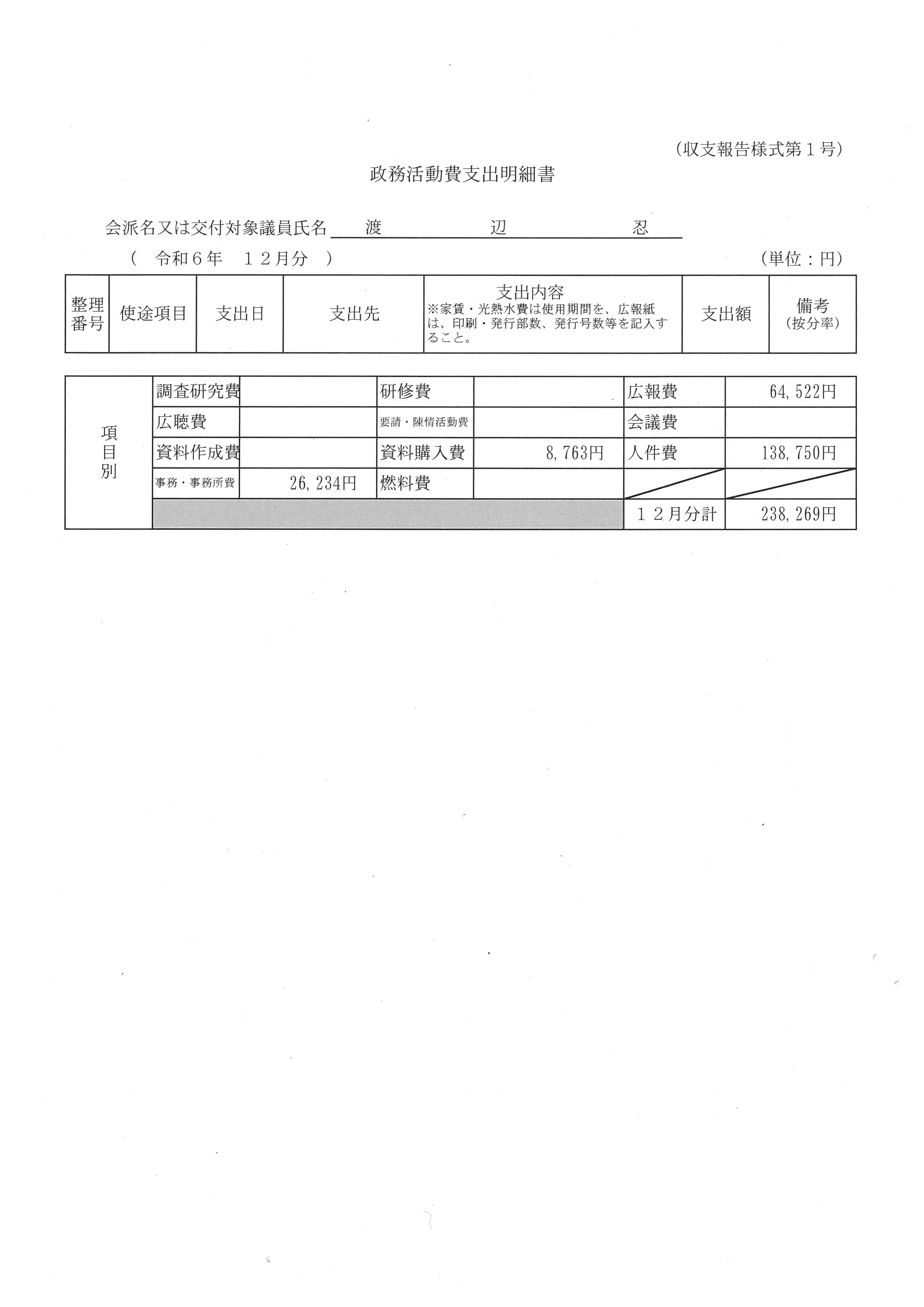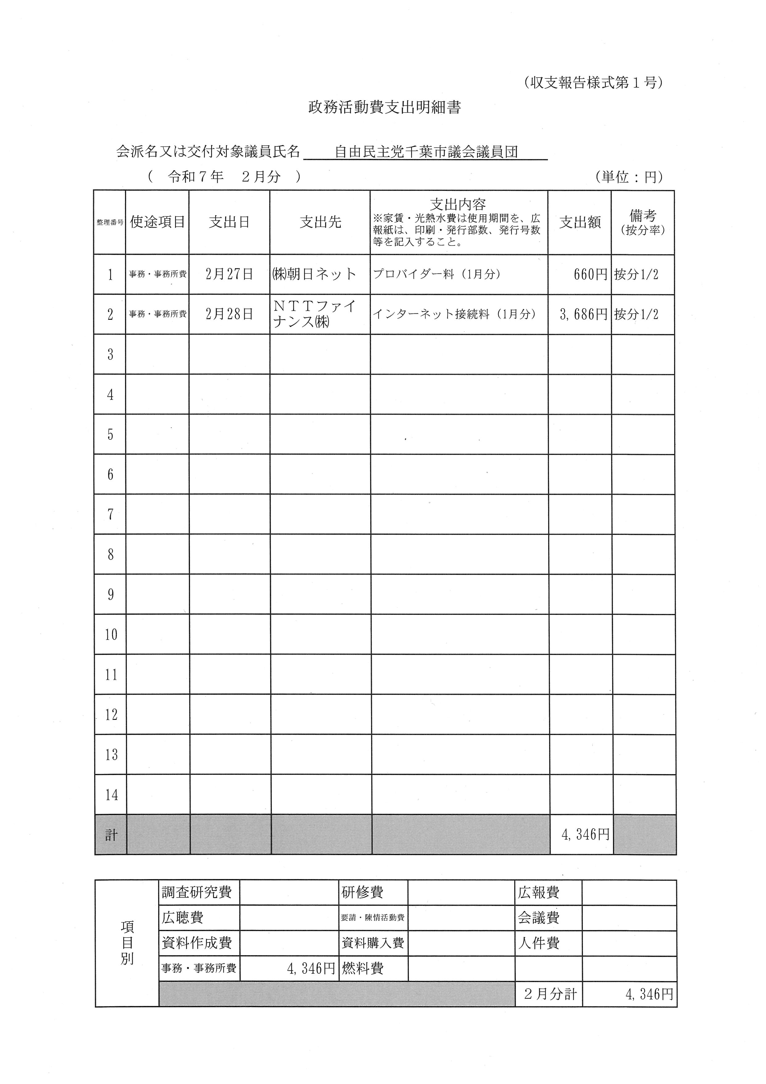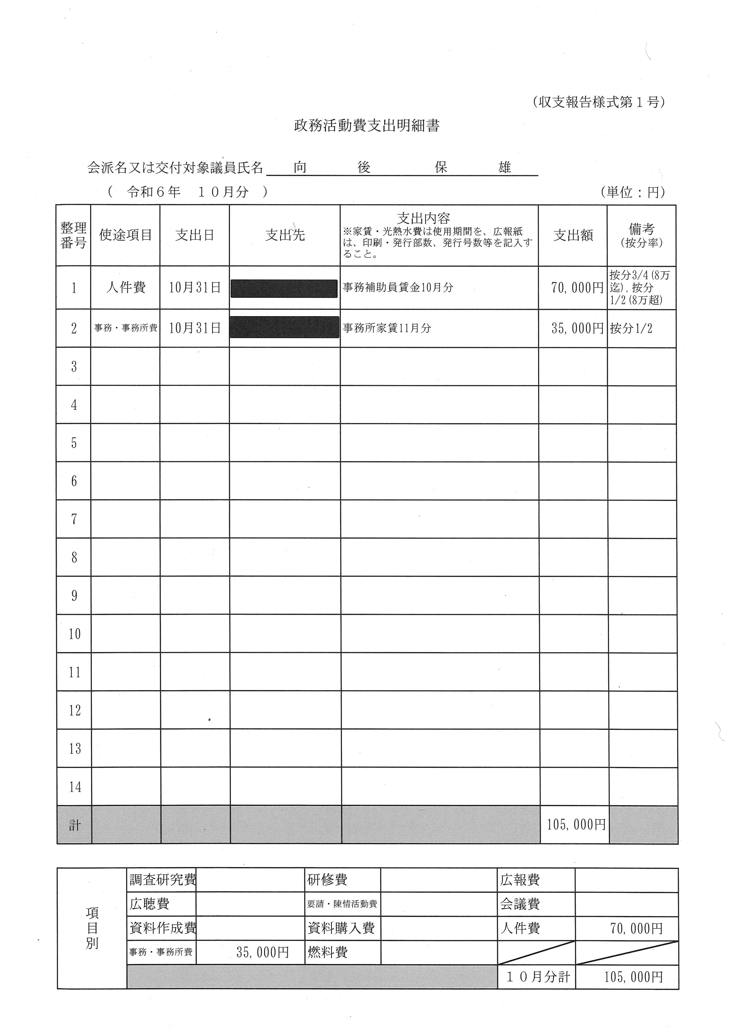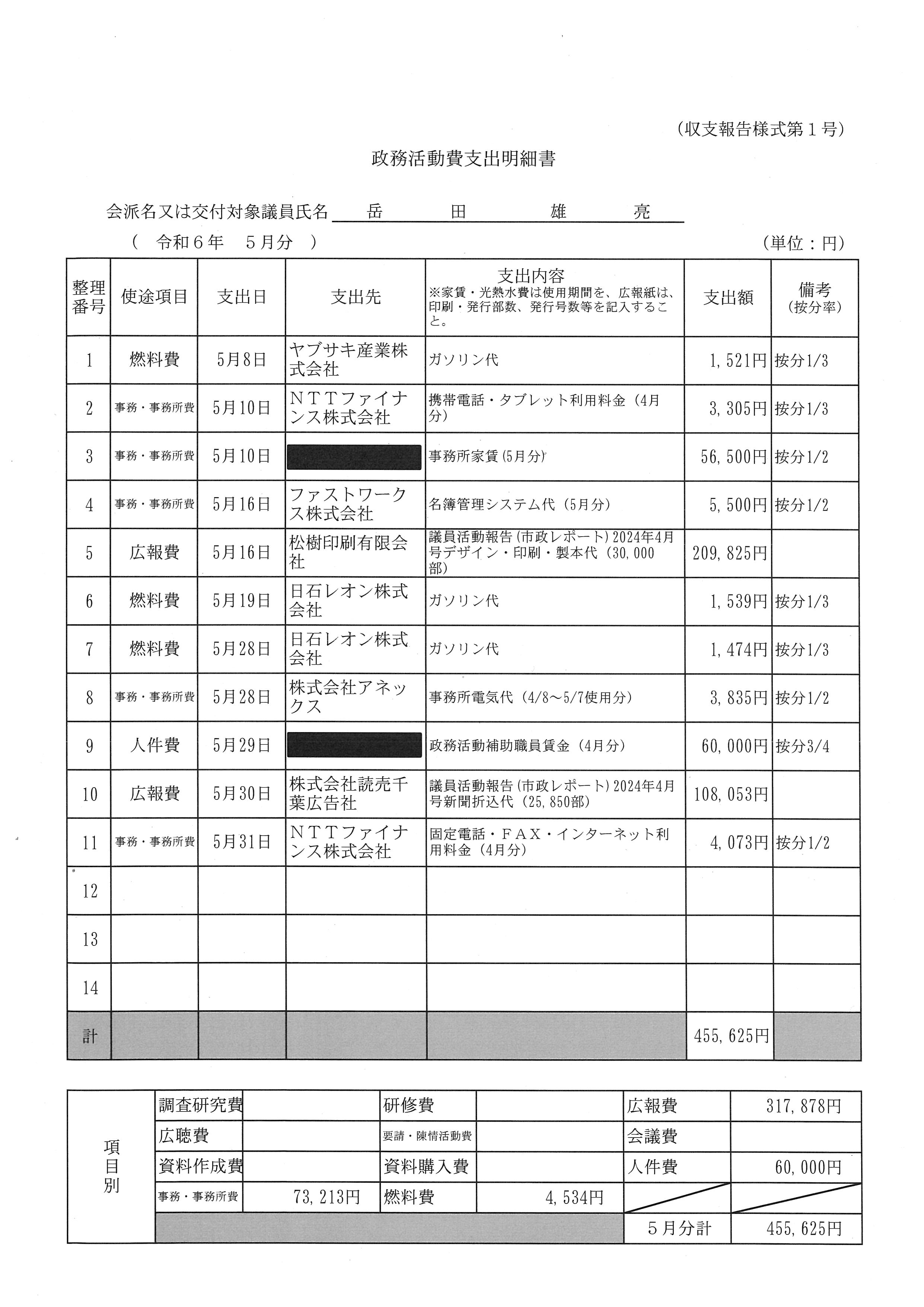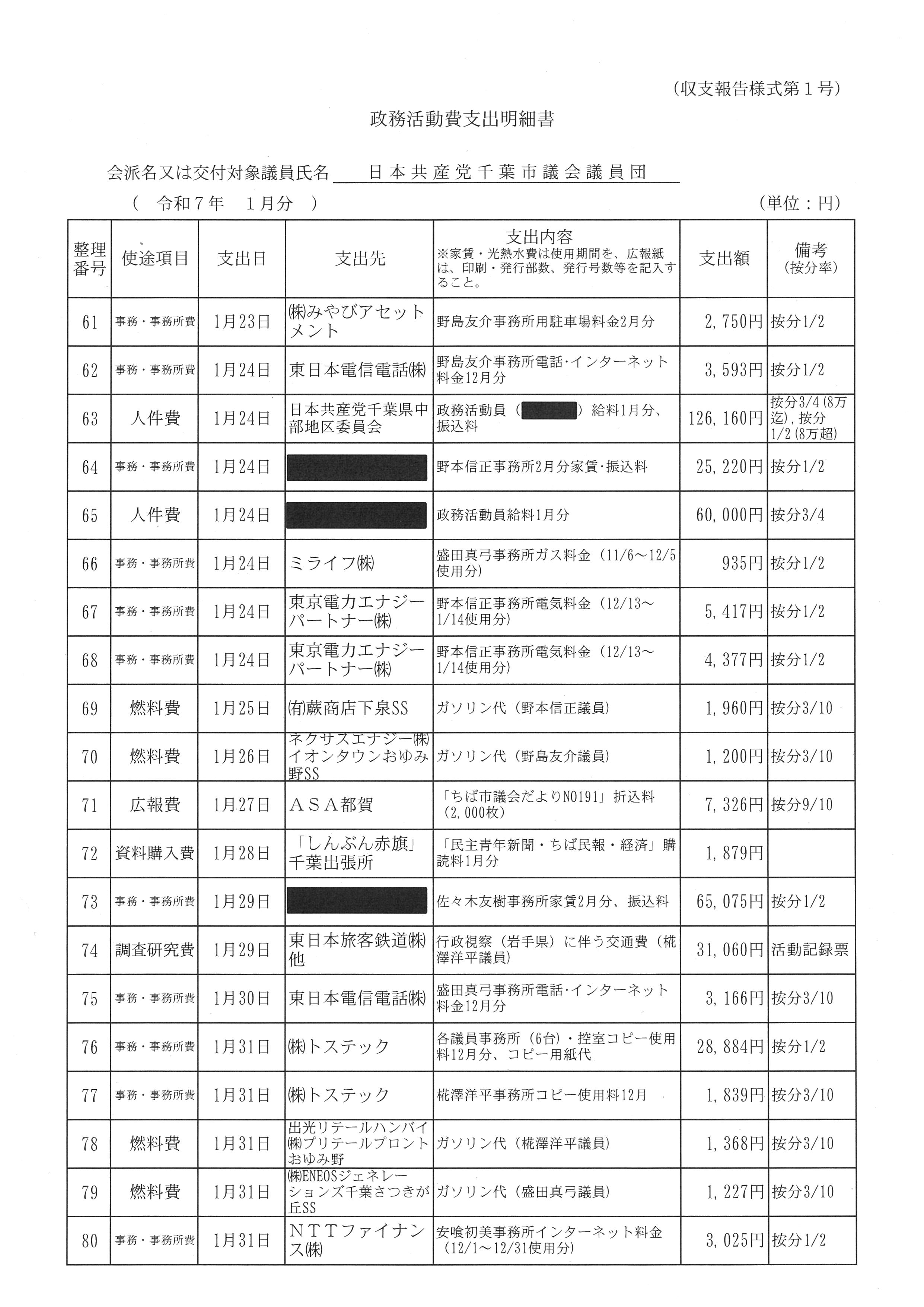 千葉市議会トップページ > 広報・情報公開 > 政務活動費 > 令和6年度交付分(政務活動費収支報告書)