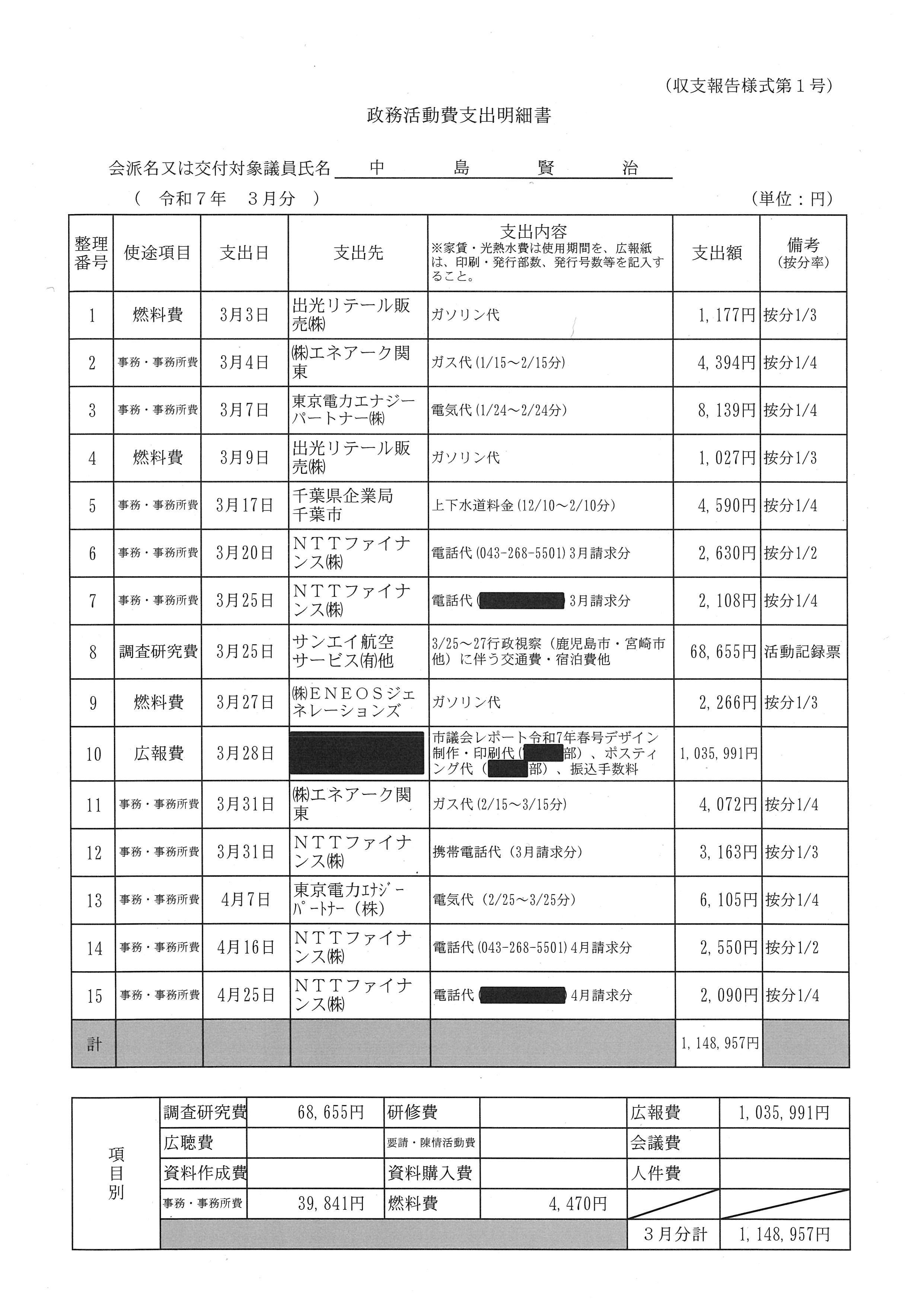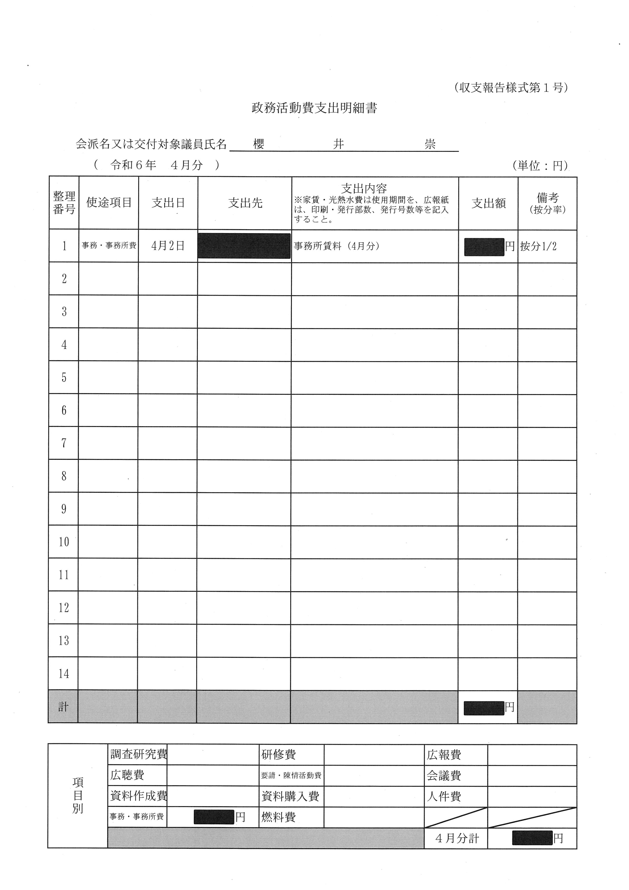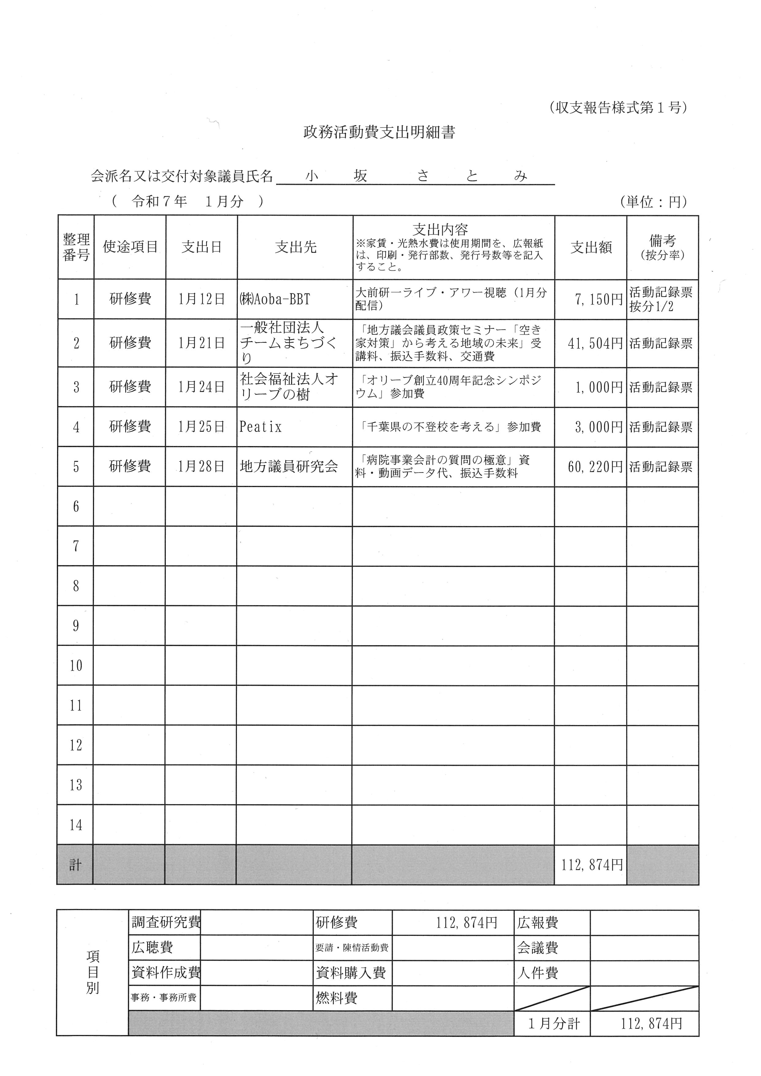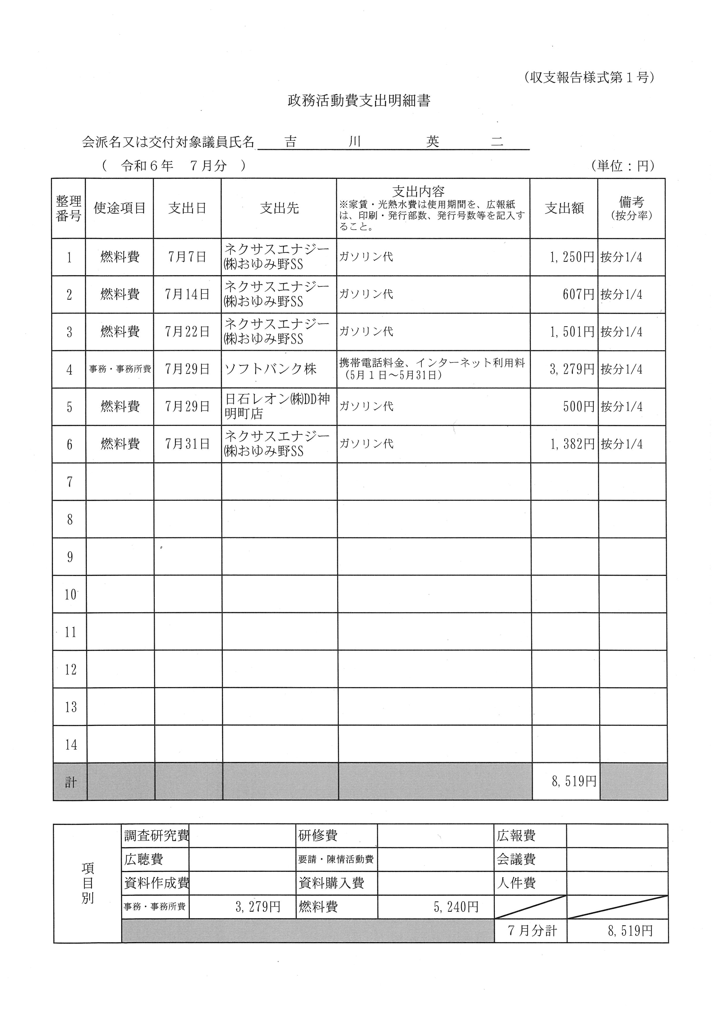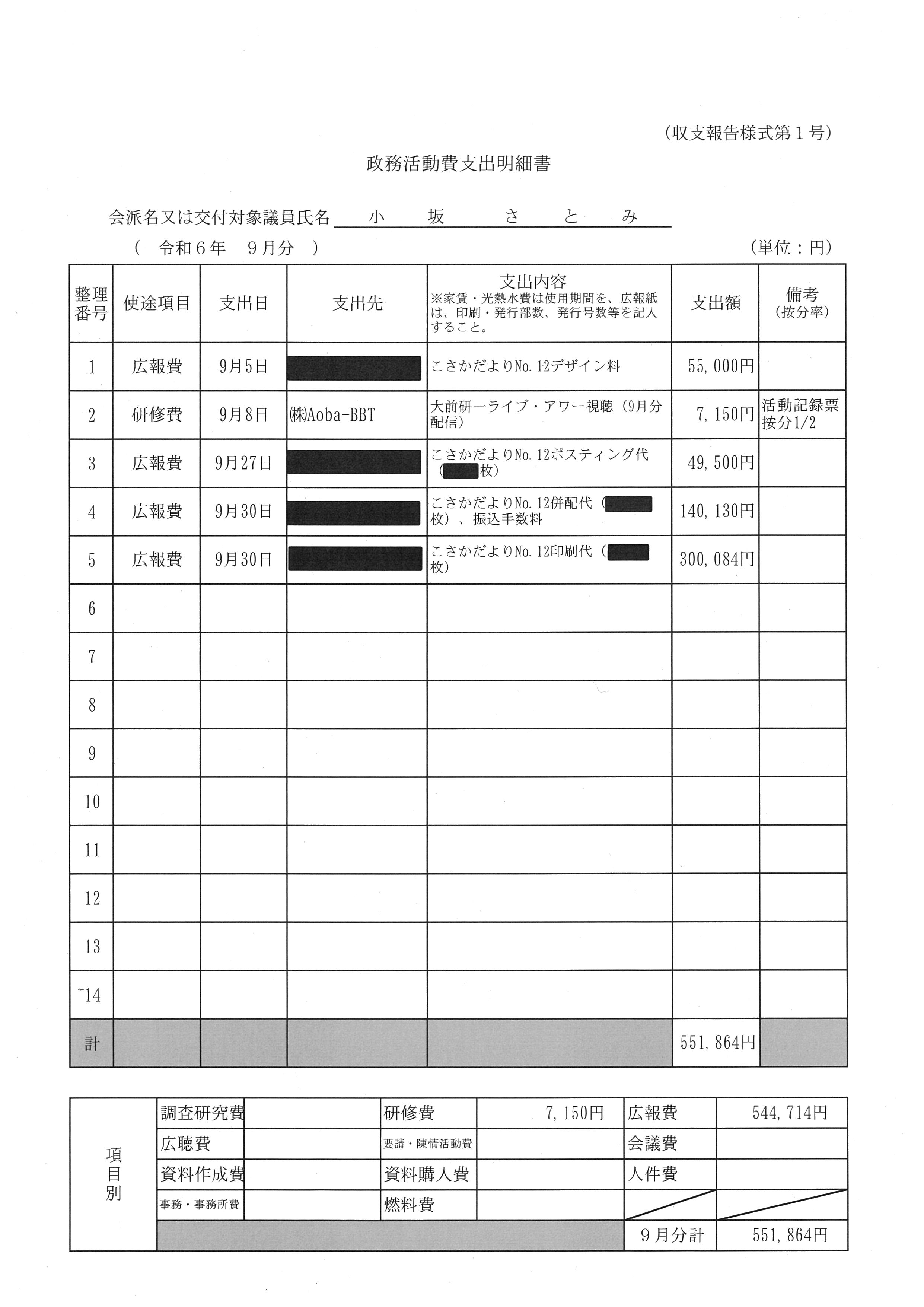千葉市議会トップページ > 広報・情報公開 > 政務活動費 > 令和6年度交付分(政務活動費収支報告書)