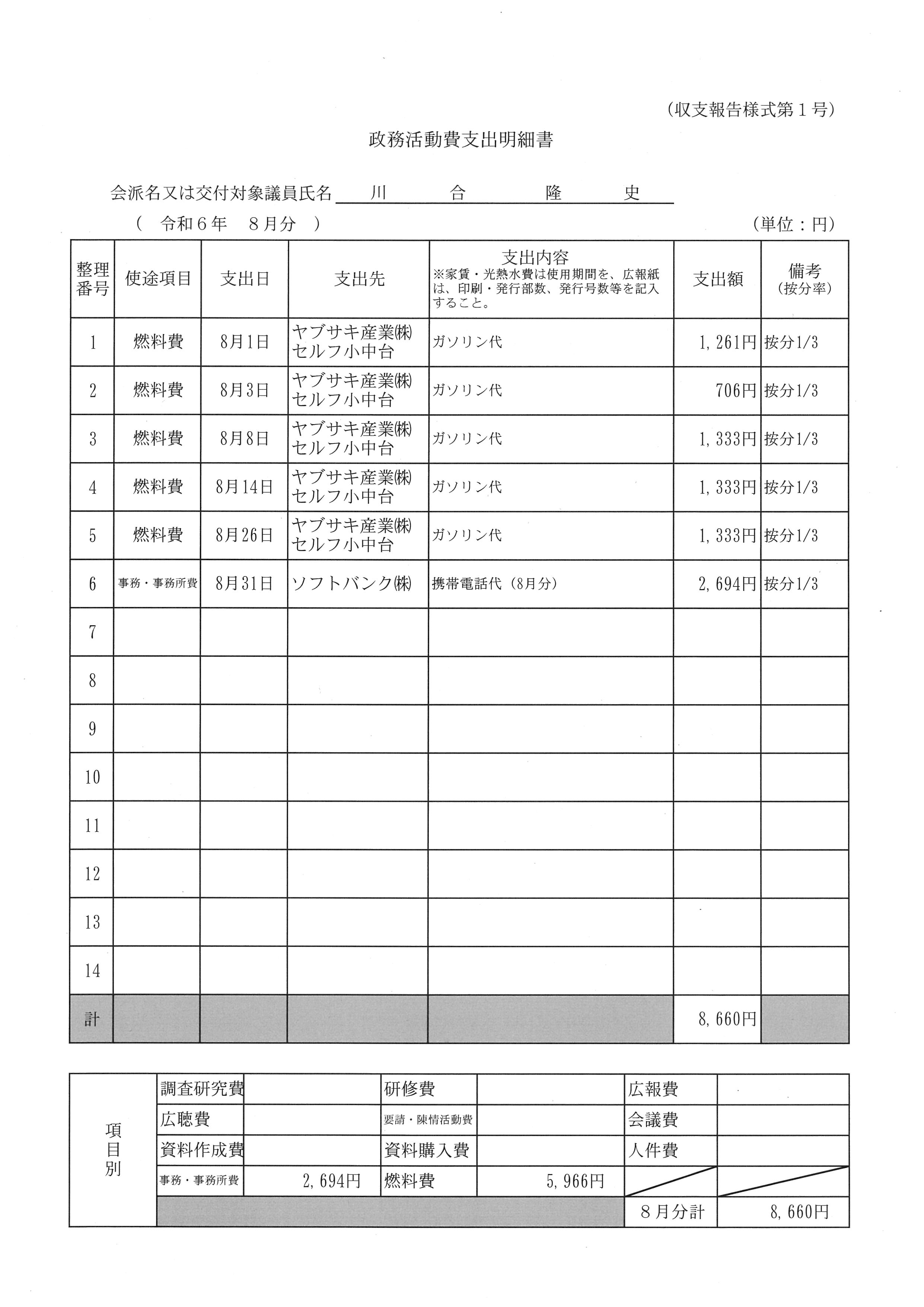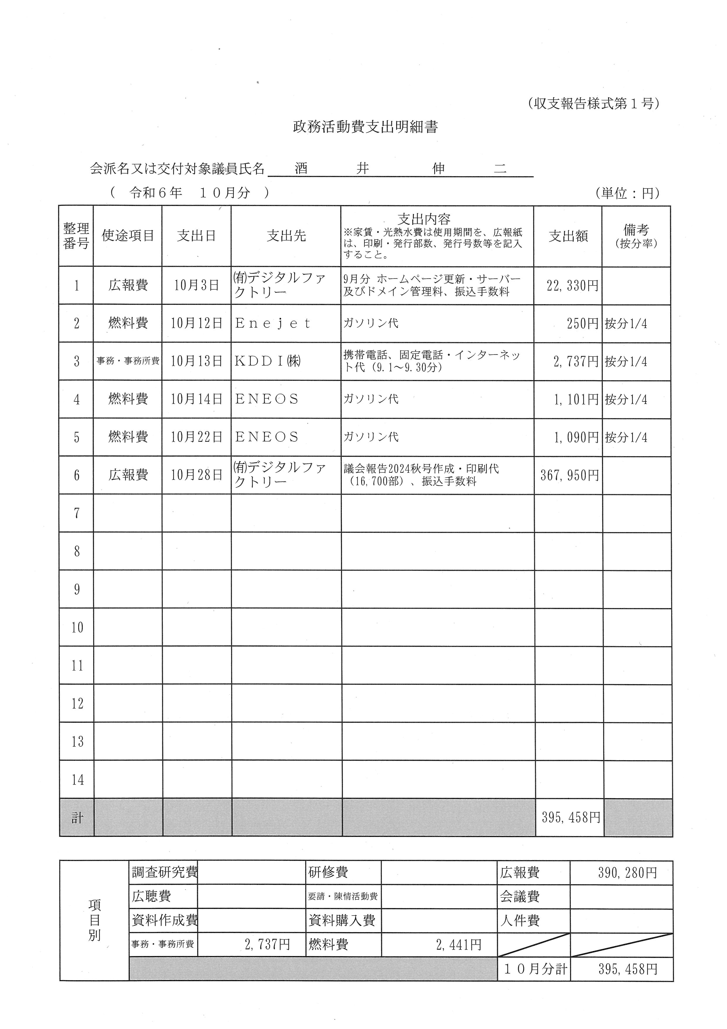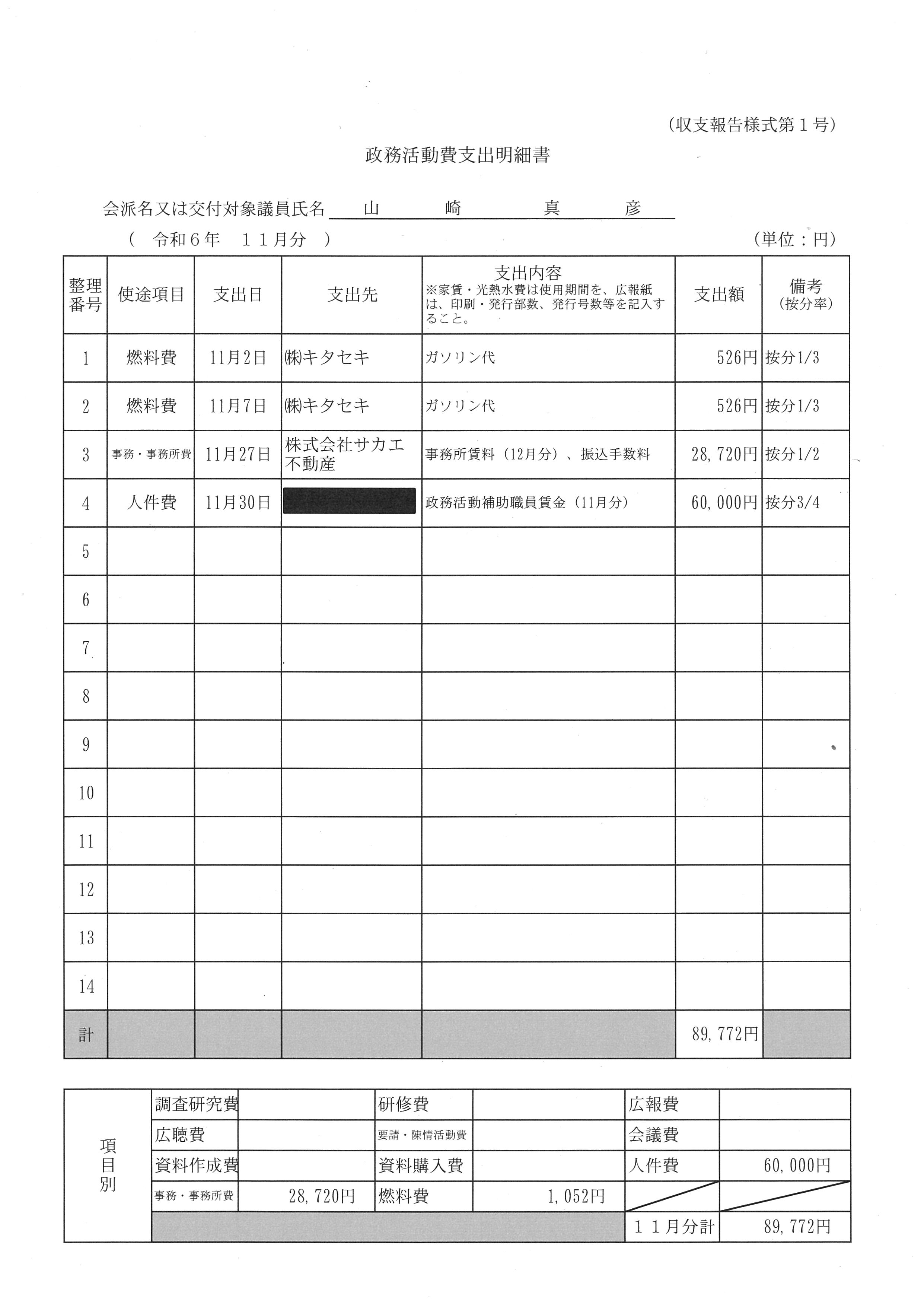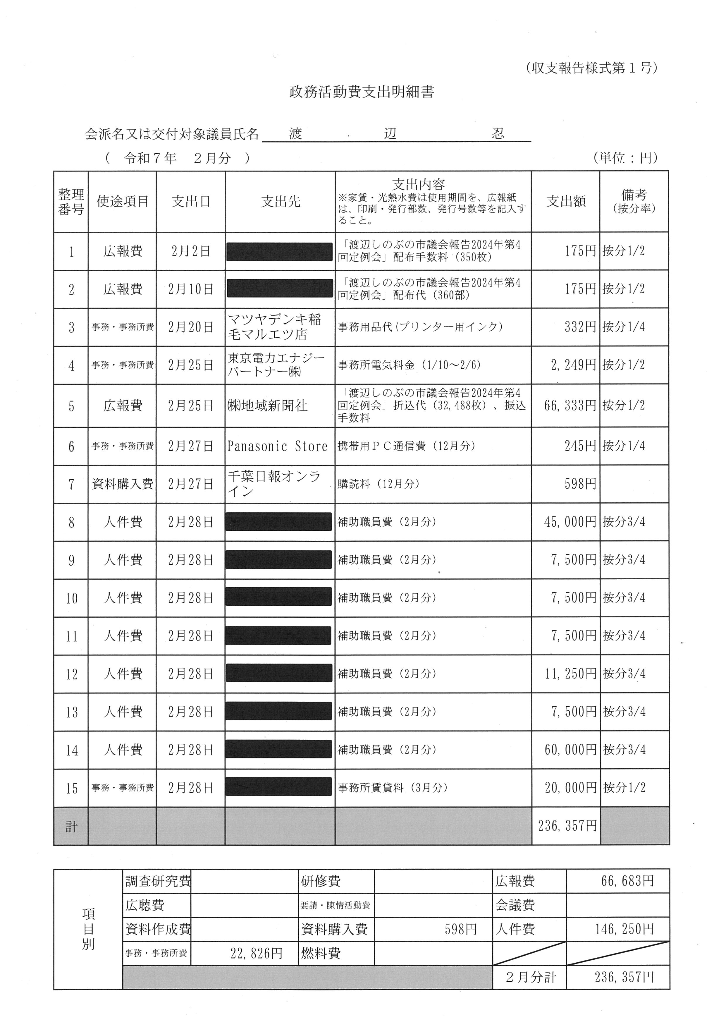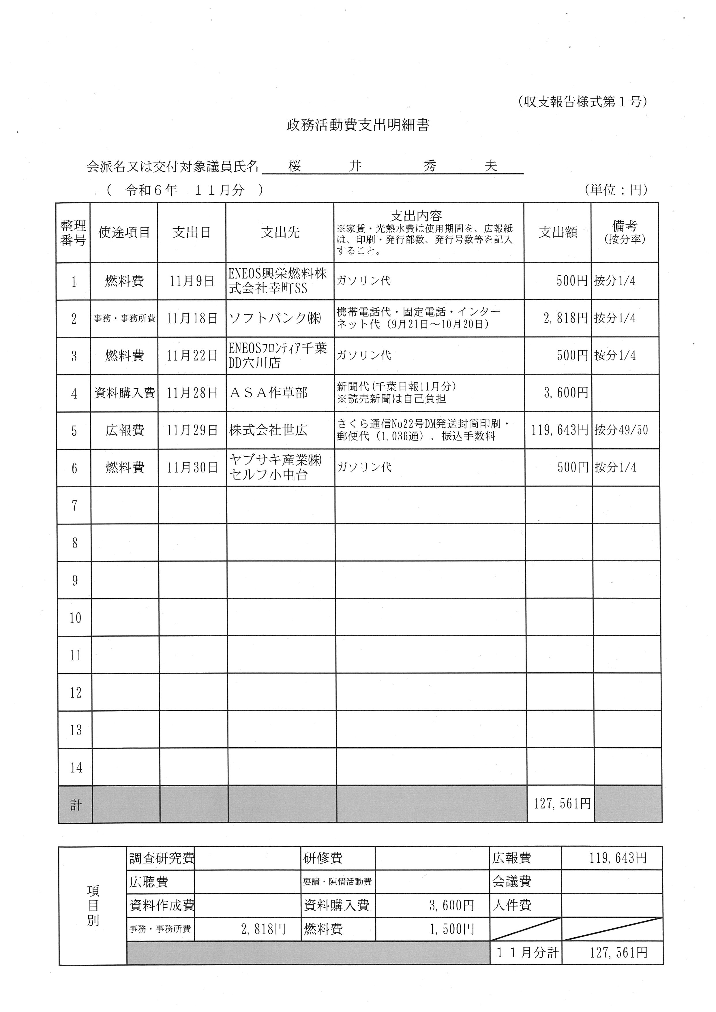 千葉市議会トップページ > 広報・情報公開 > 政務活動費 > 令和6年度交付分(政務活動費収支報告書)