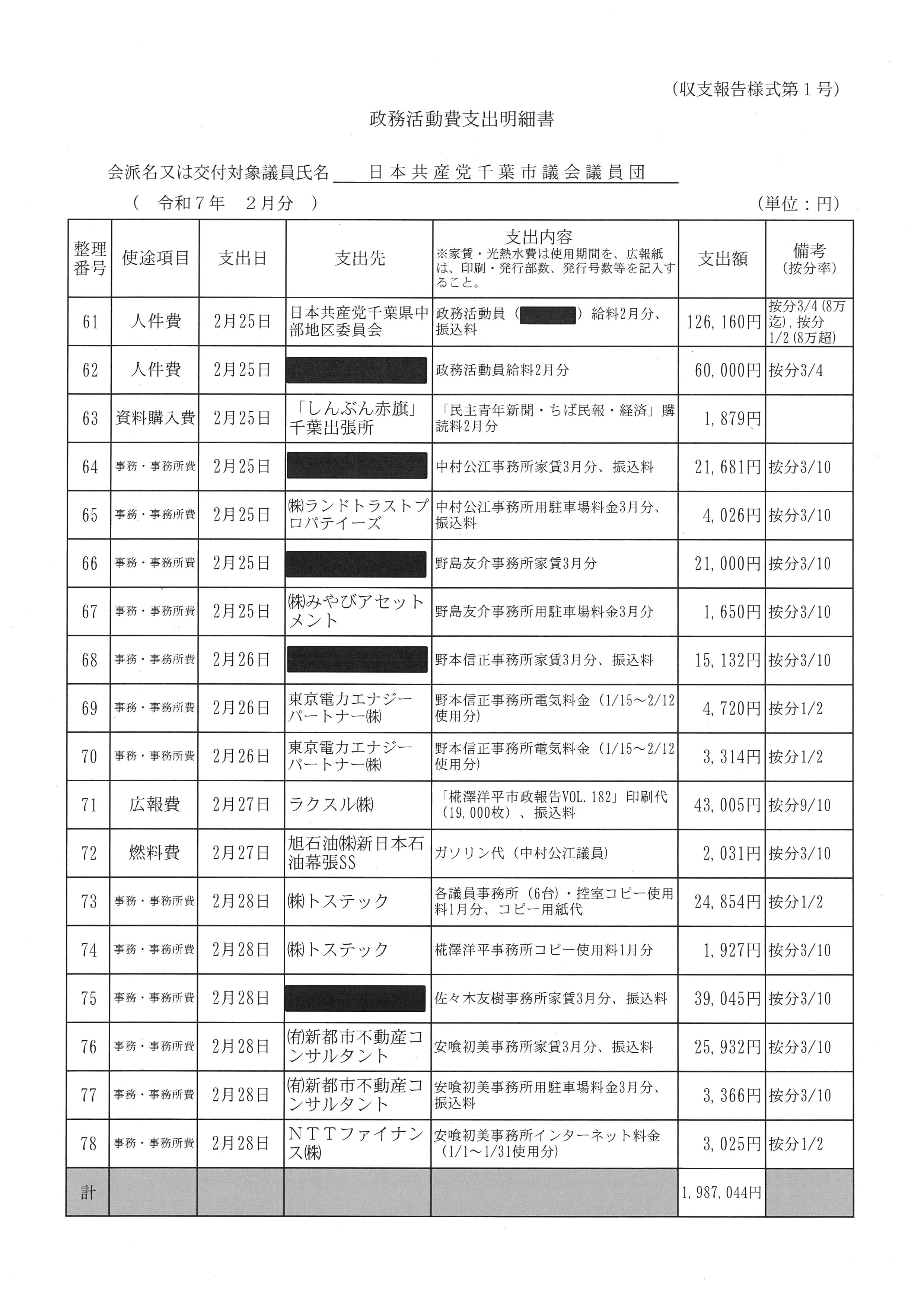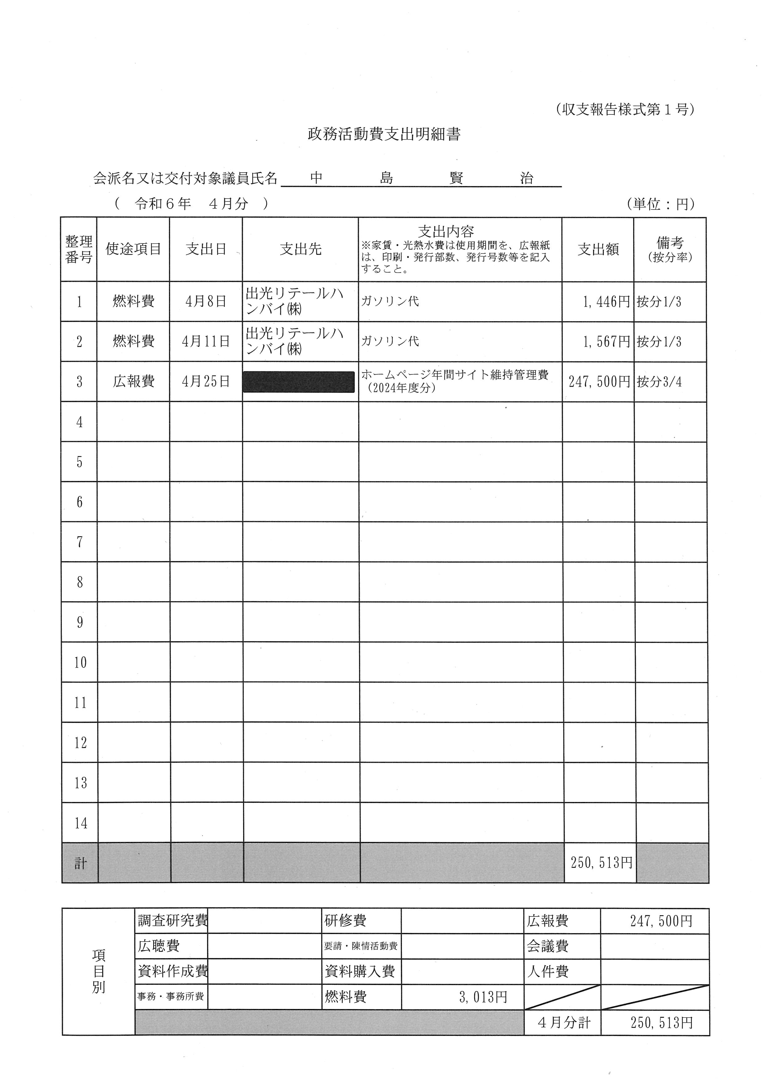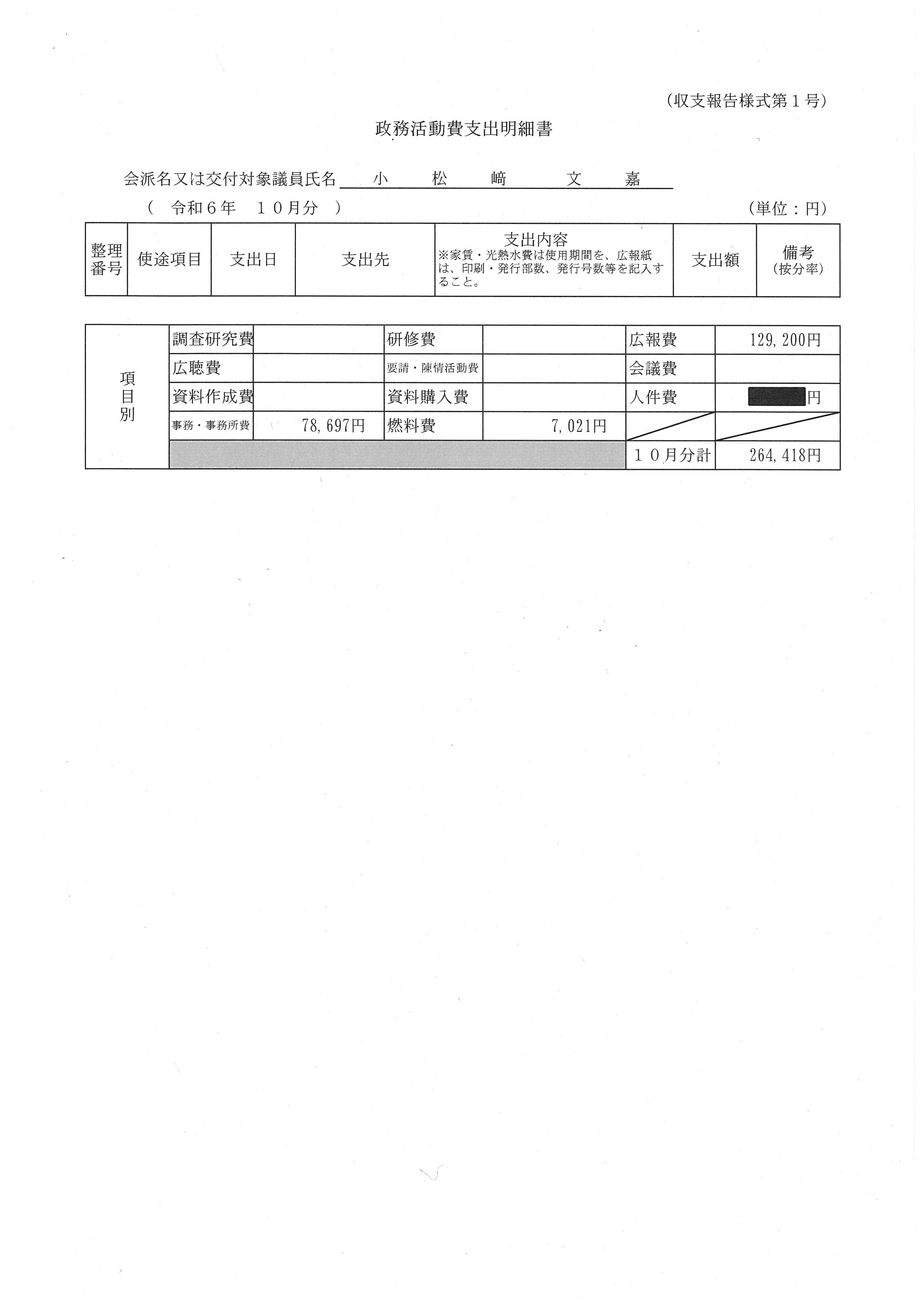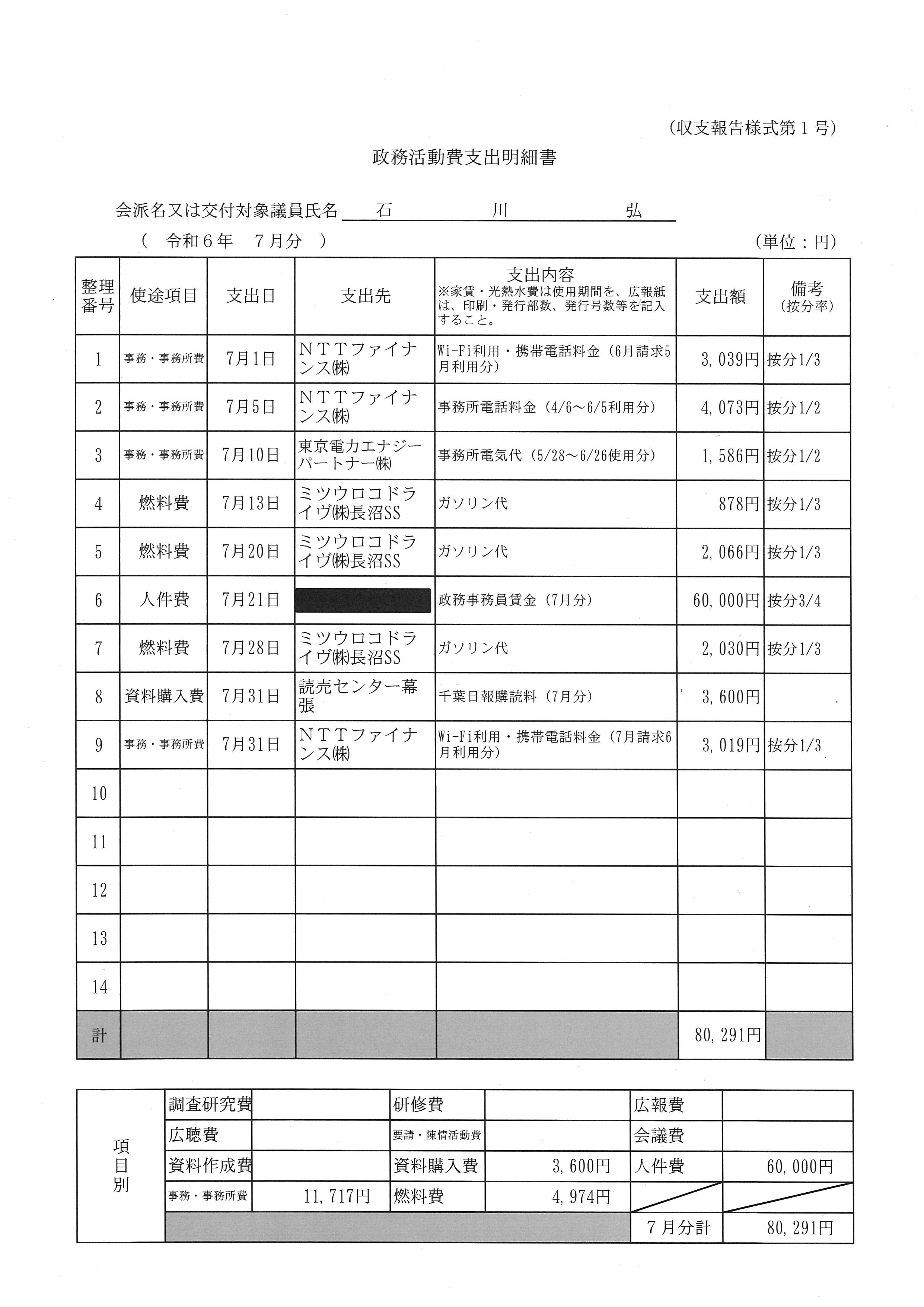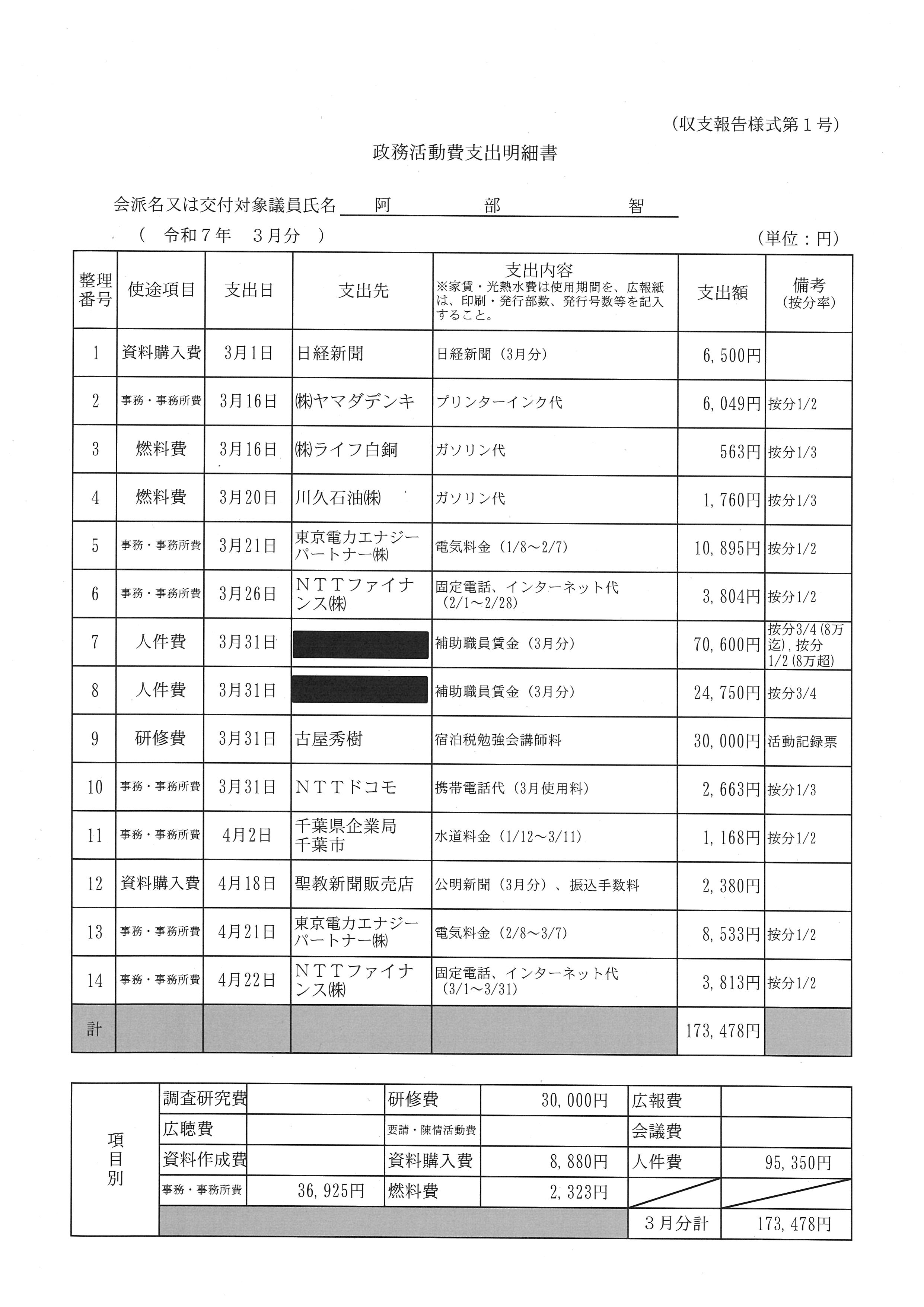 千葉市議会トップページ > 広報・情報公開 > 政務活動費 > 令和6年度交付分(政務活動費収支報告書)