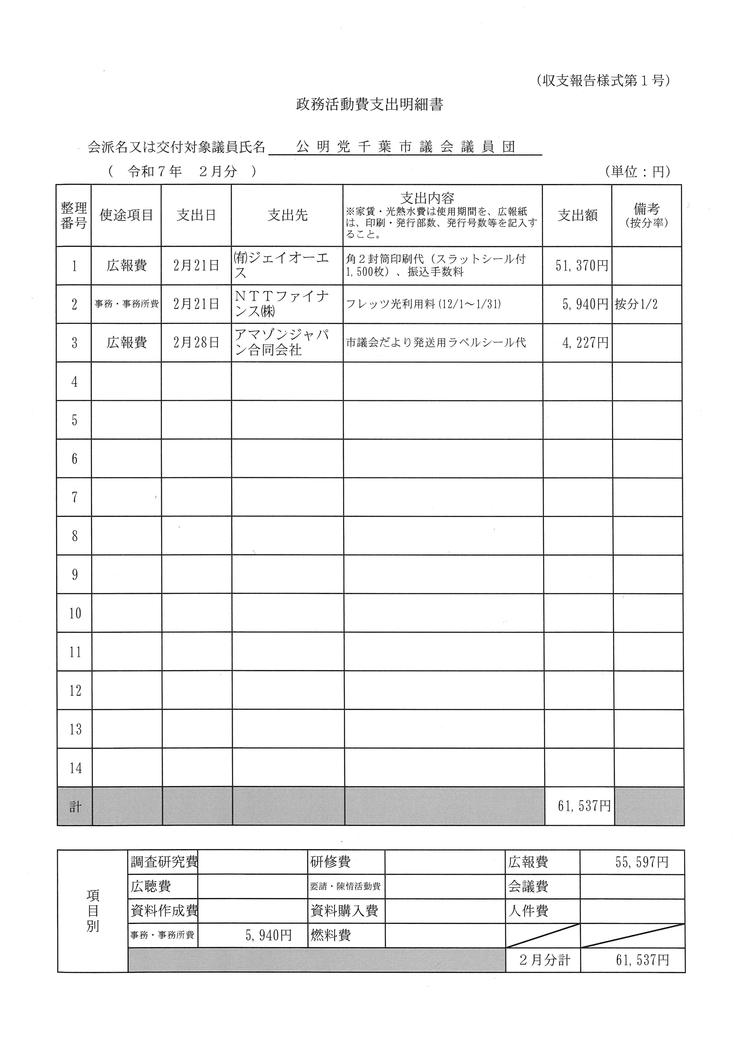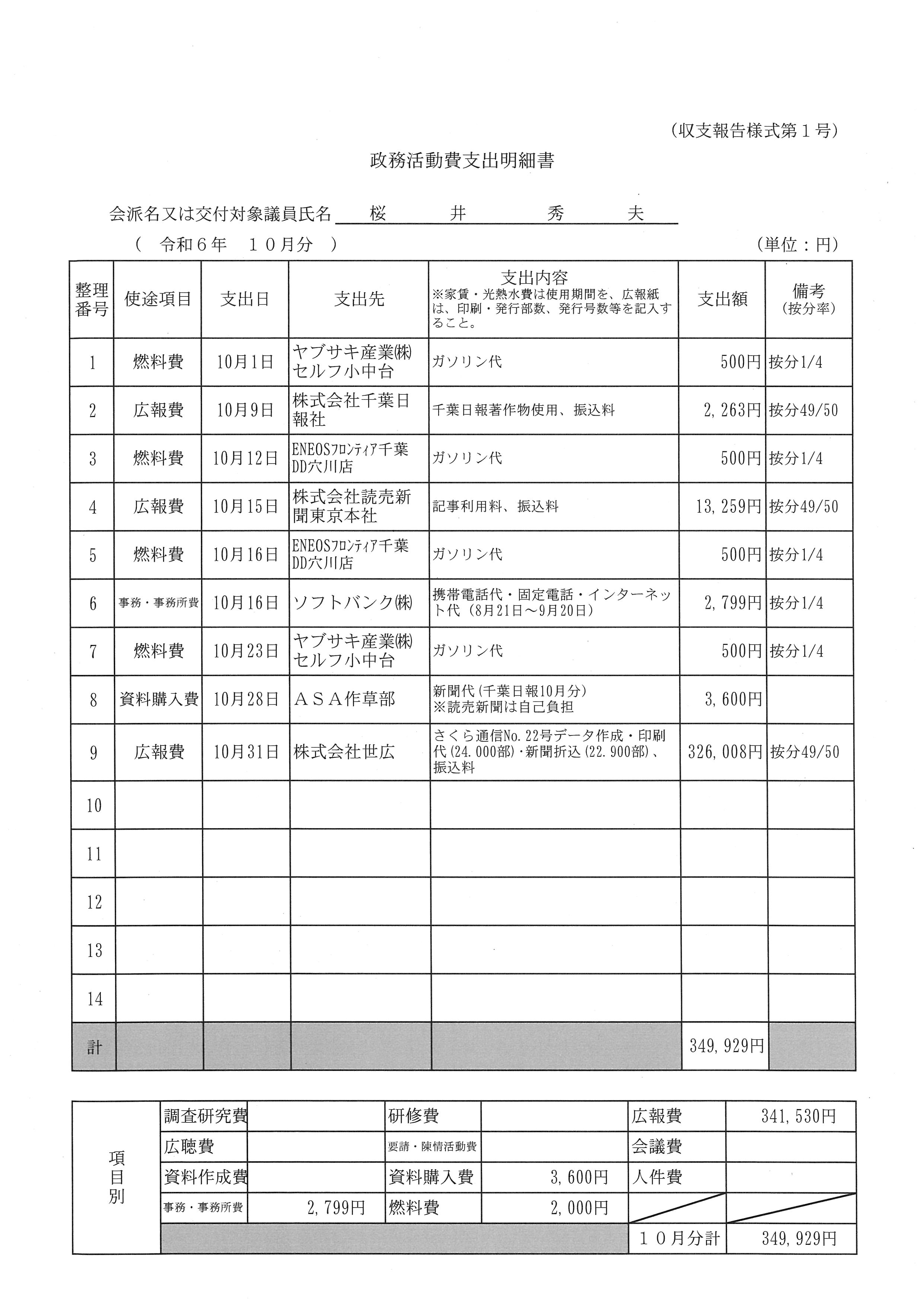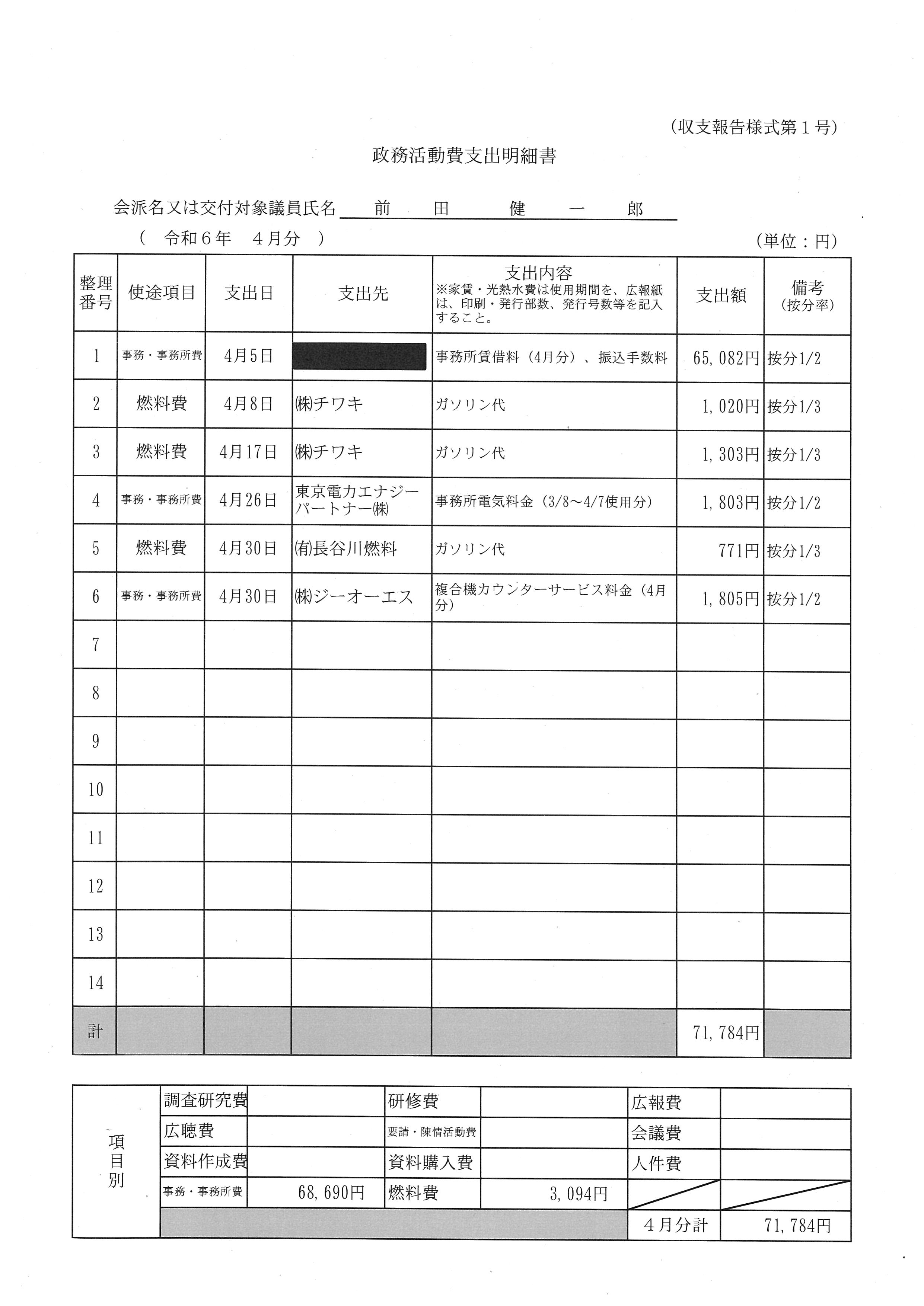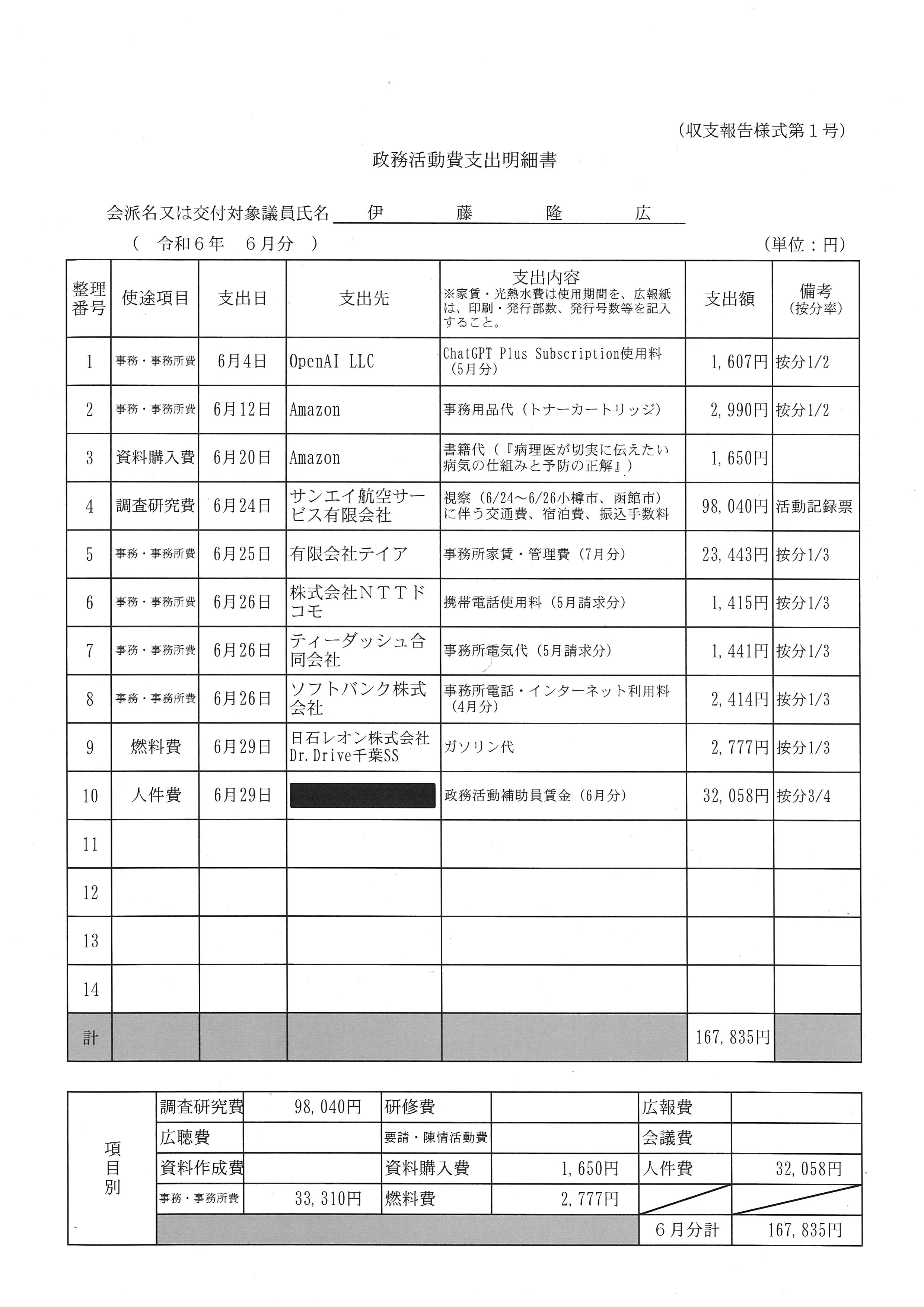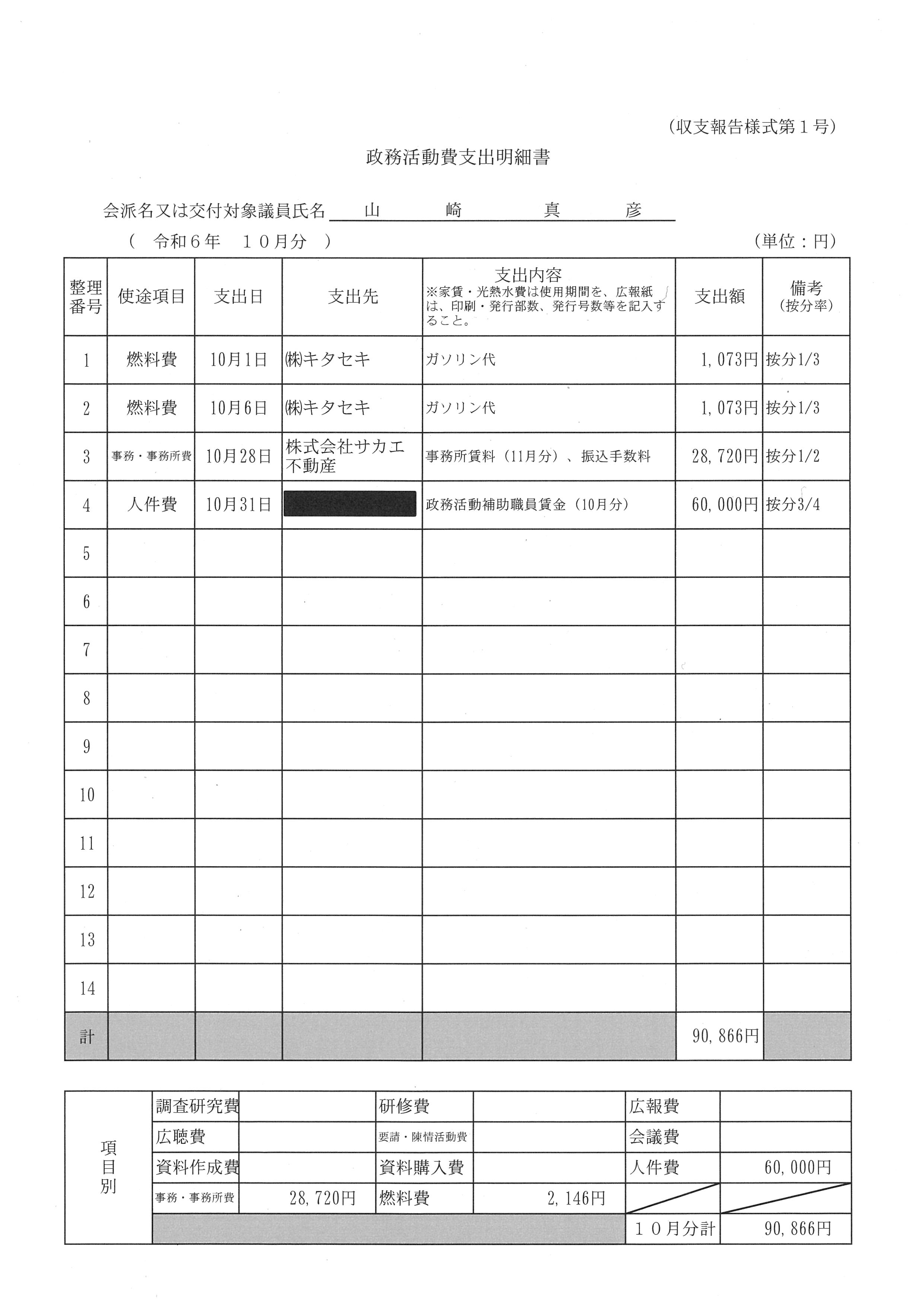 千葉市議会トップページ > 広報・情報公開 > 政務活動費 > 令和6年度交付分(政務活動費収支報告書)
