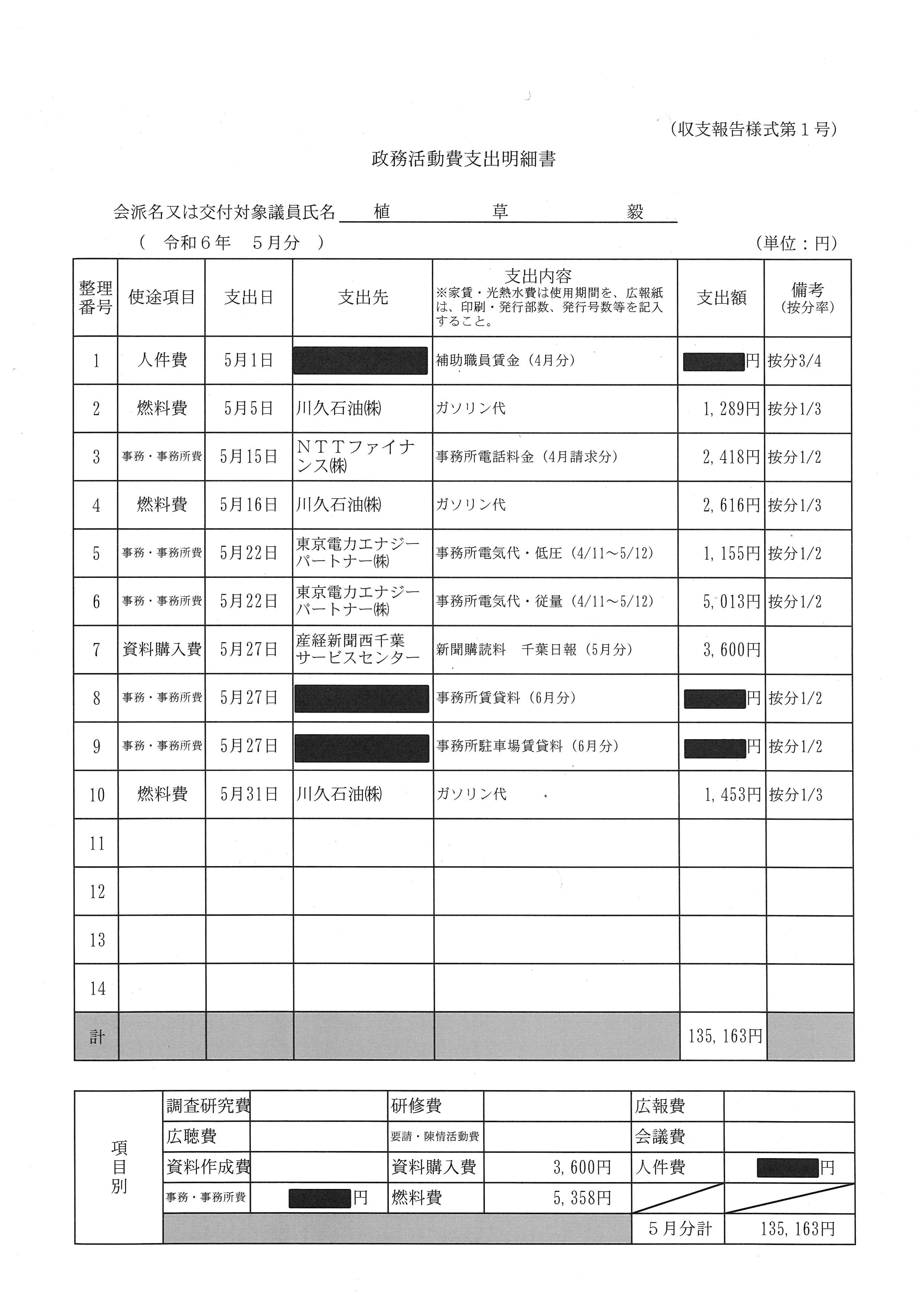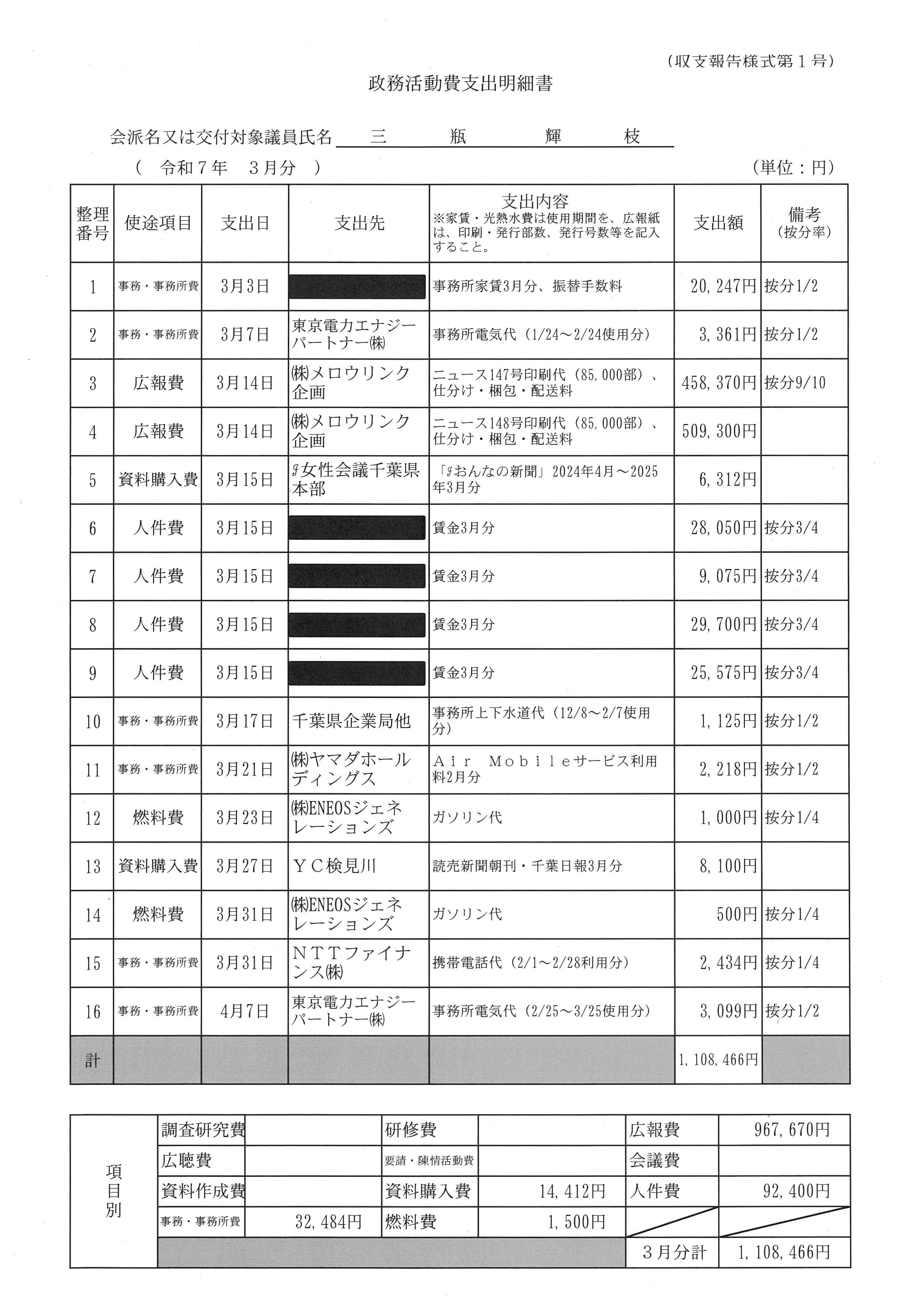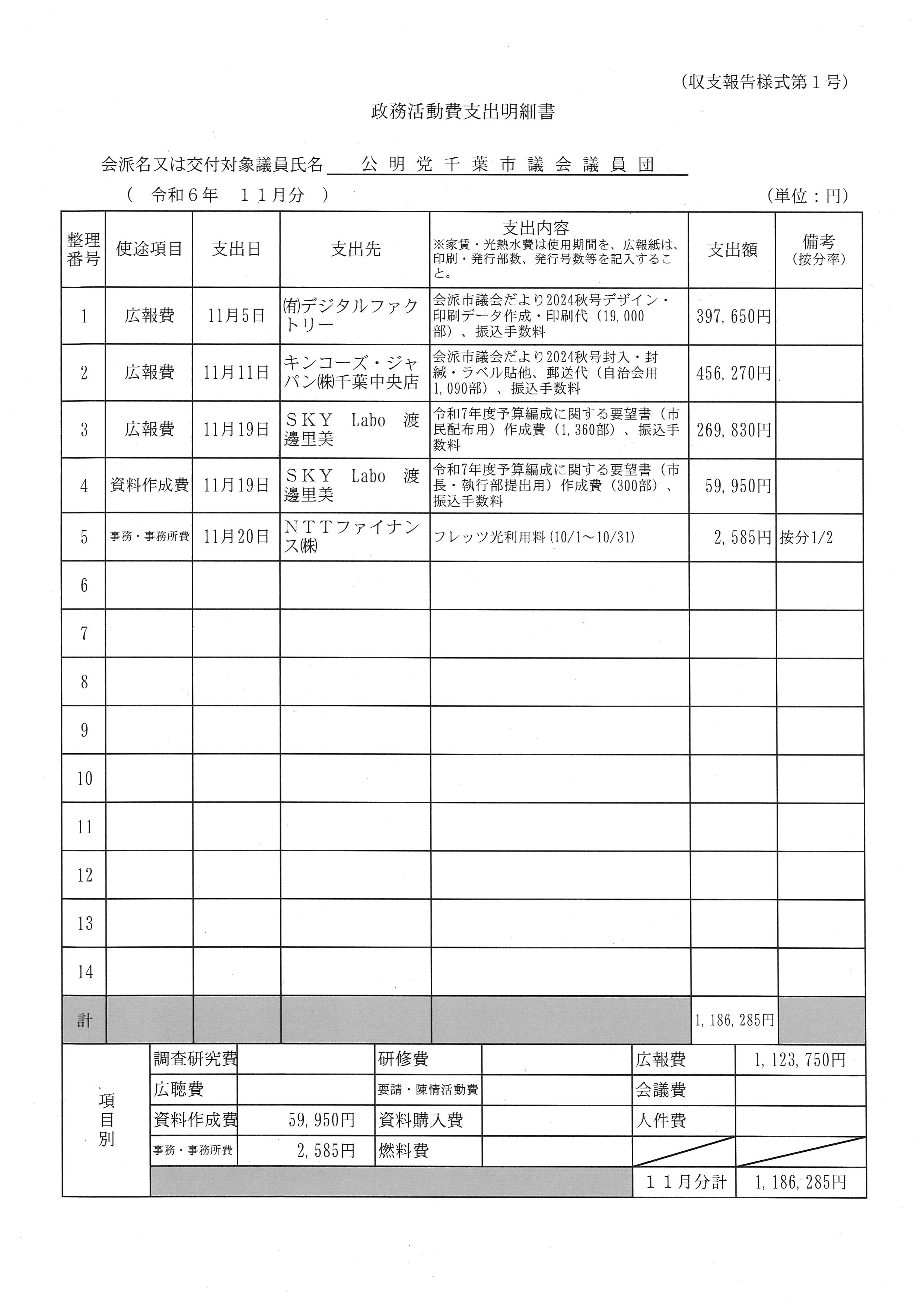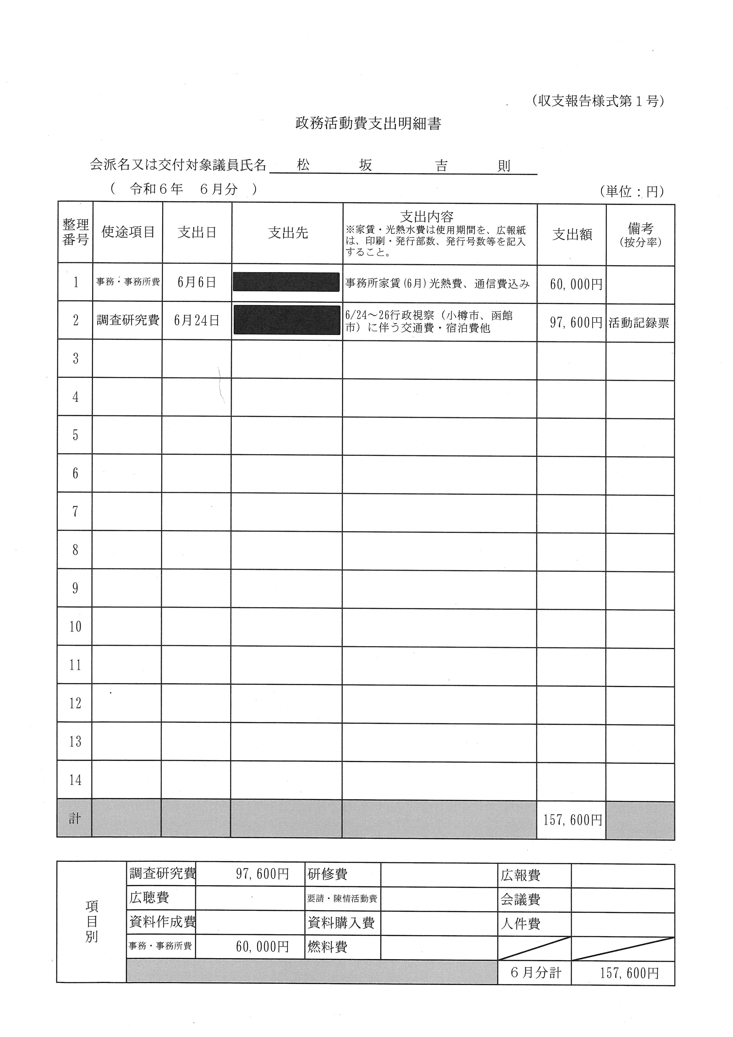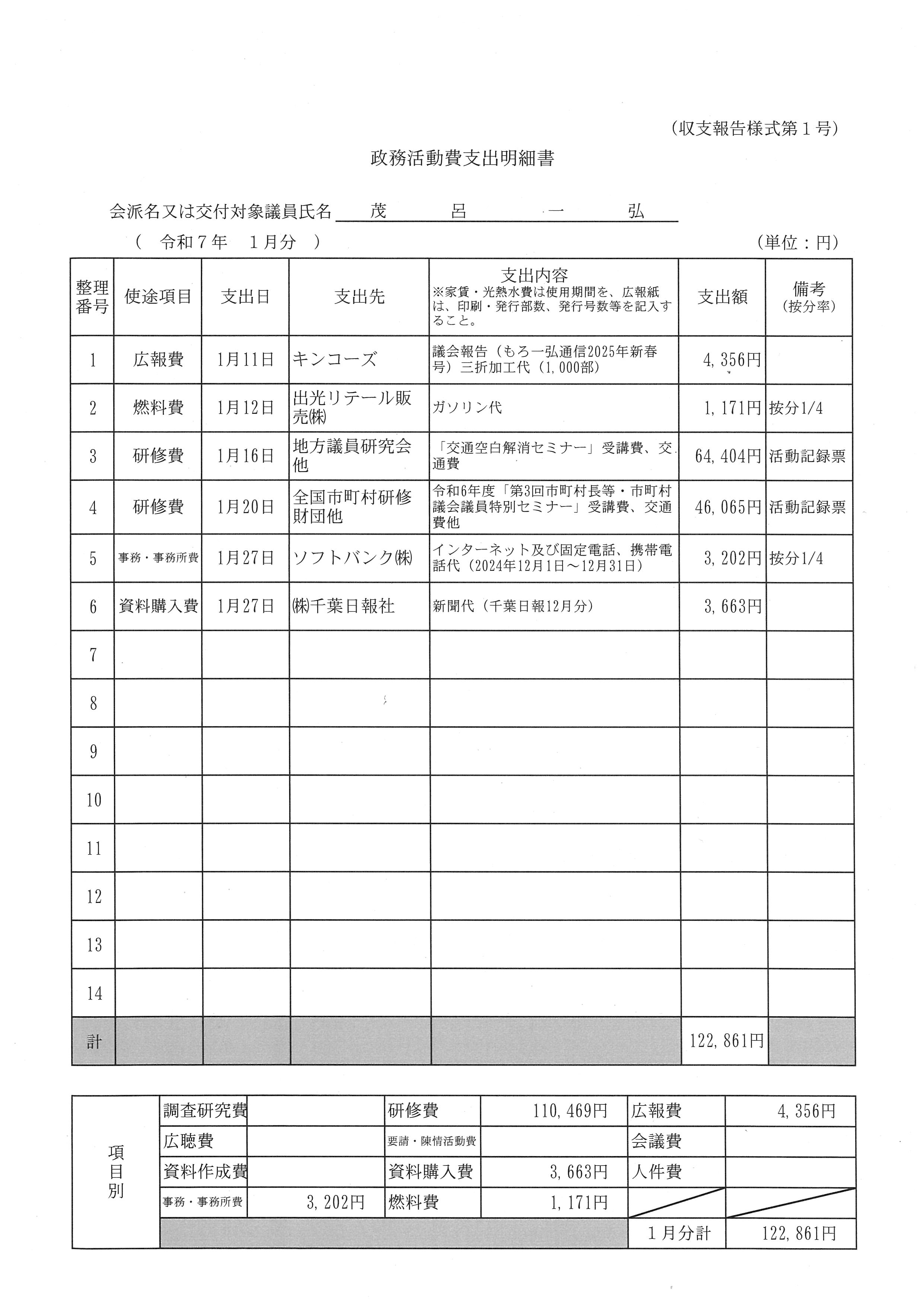 千葉市議会トップページ > 広報・情報公開 > 政務活動費 > 令和6年度交付分(政務活動費収支報告書)