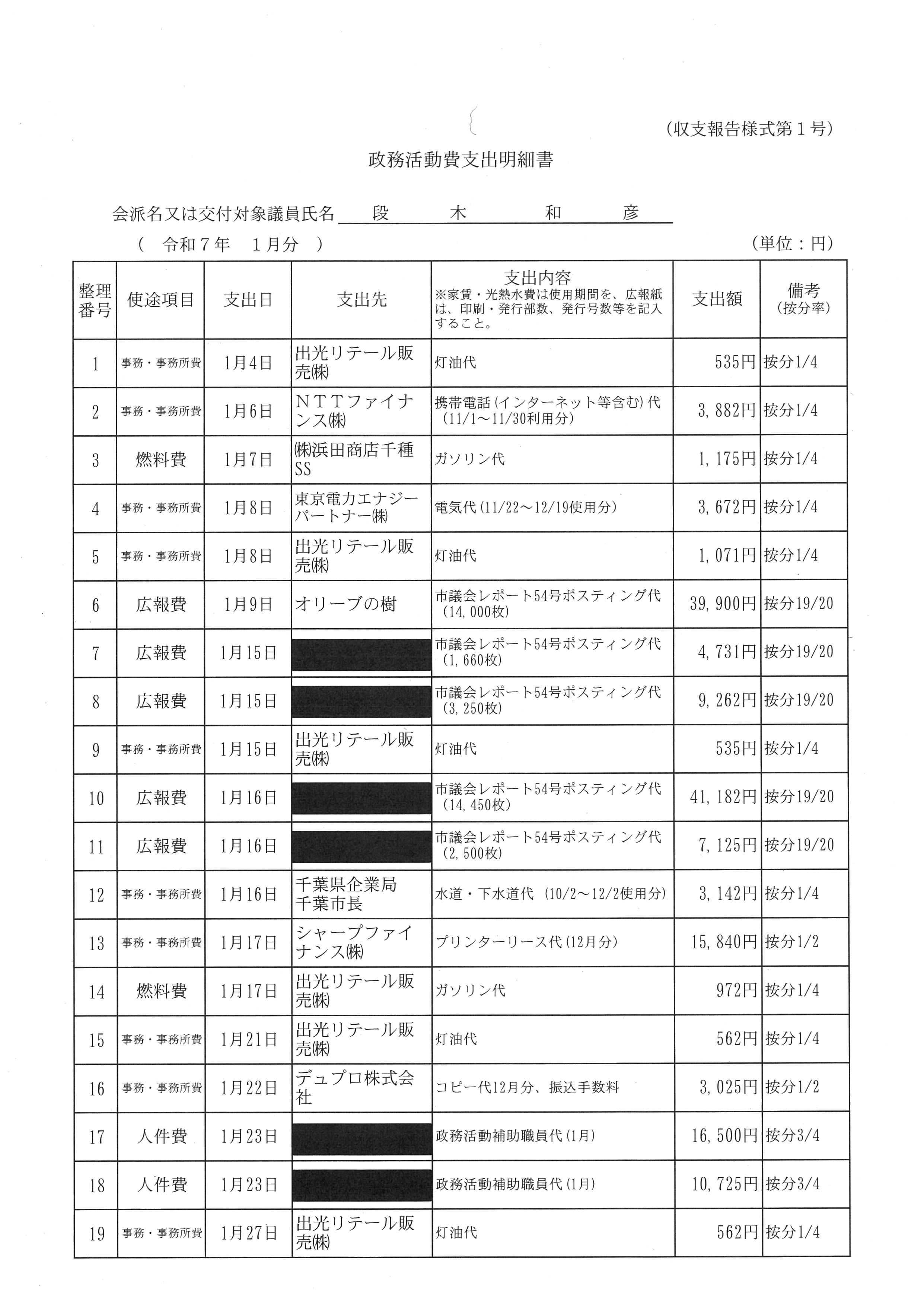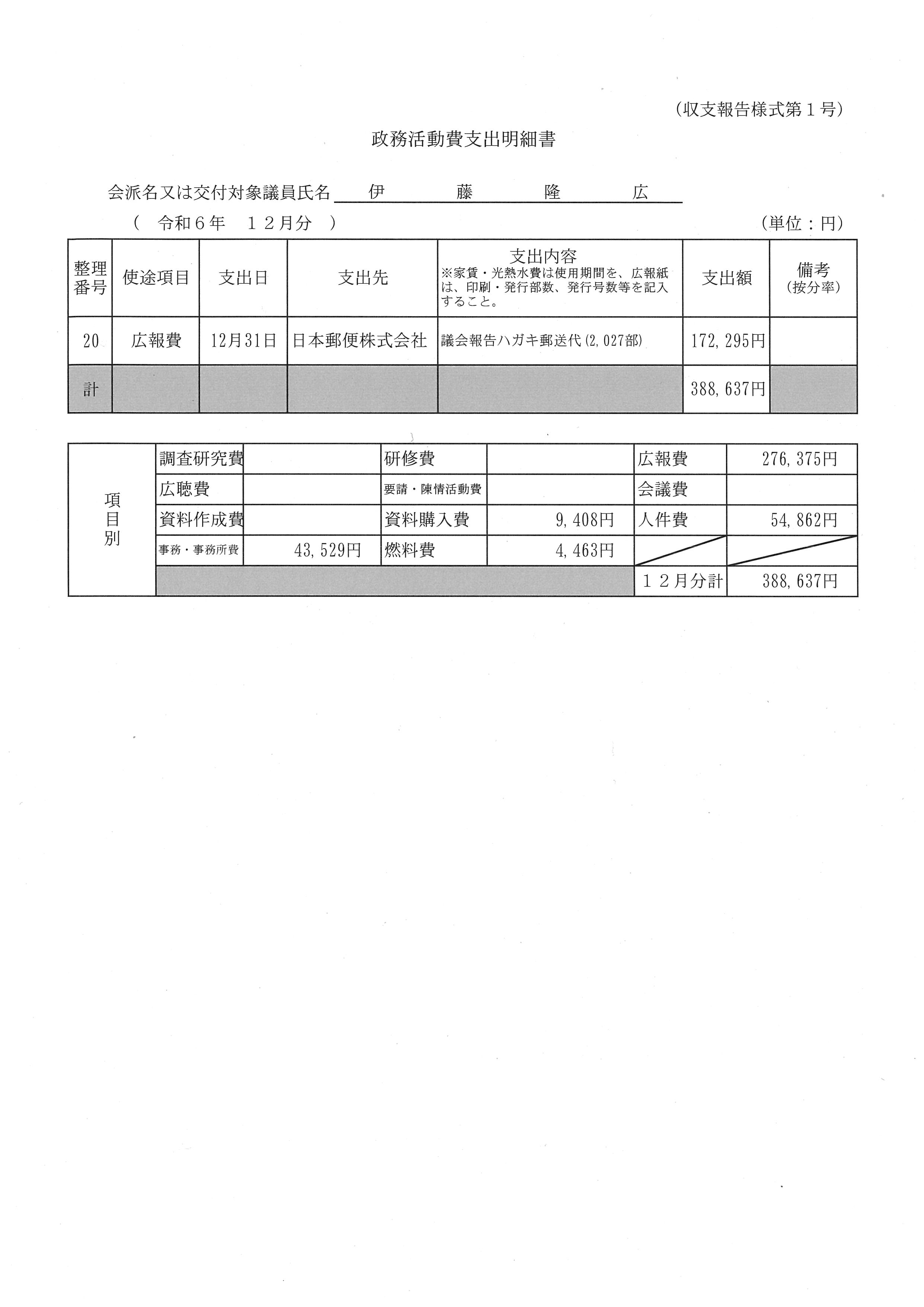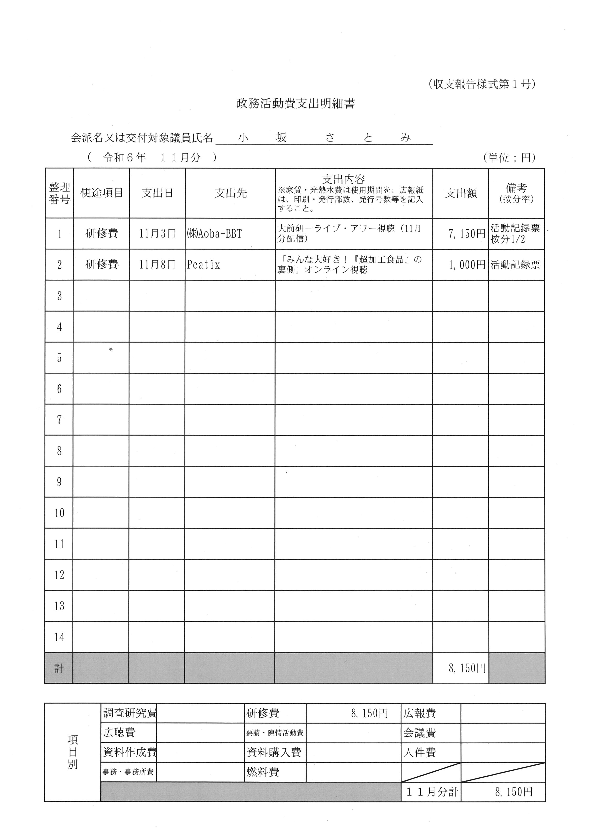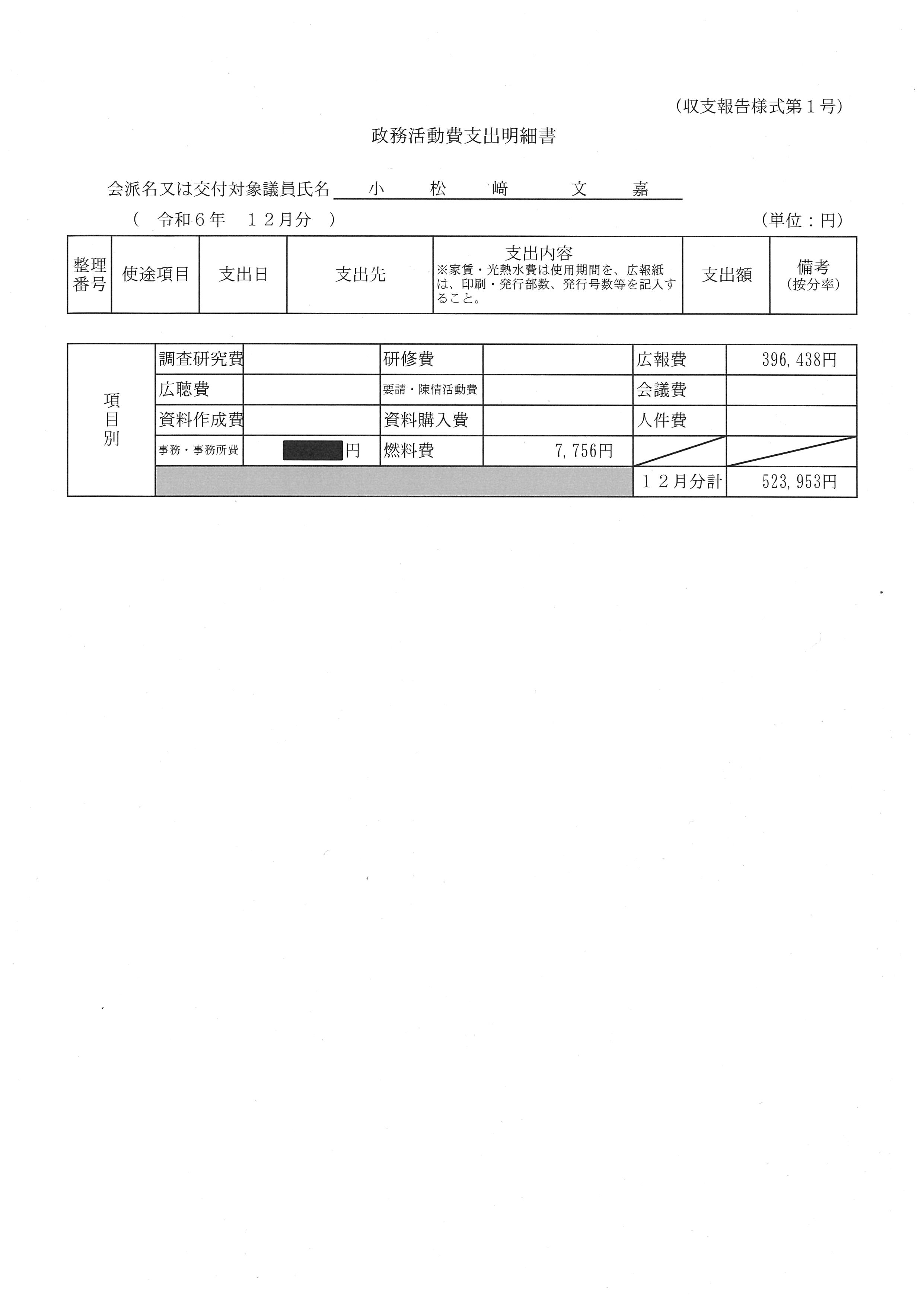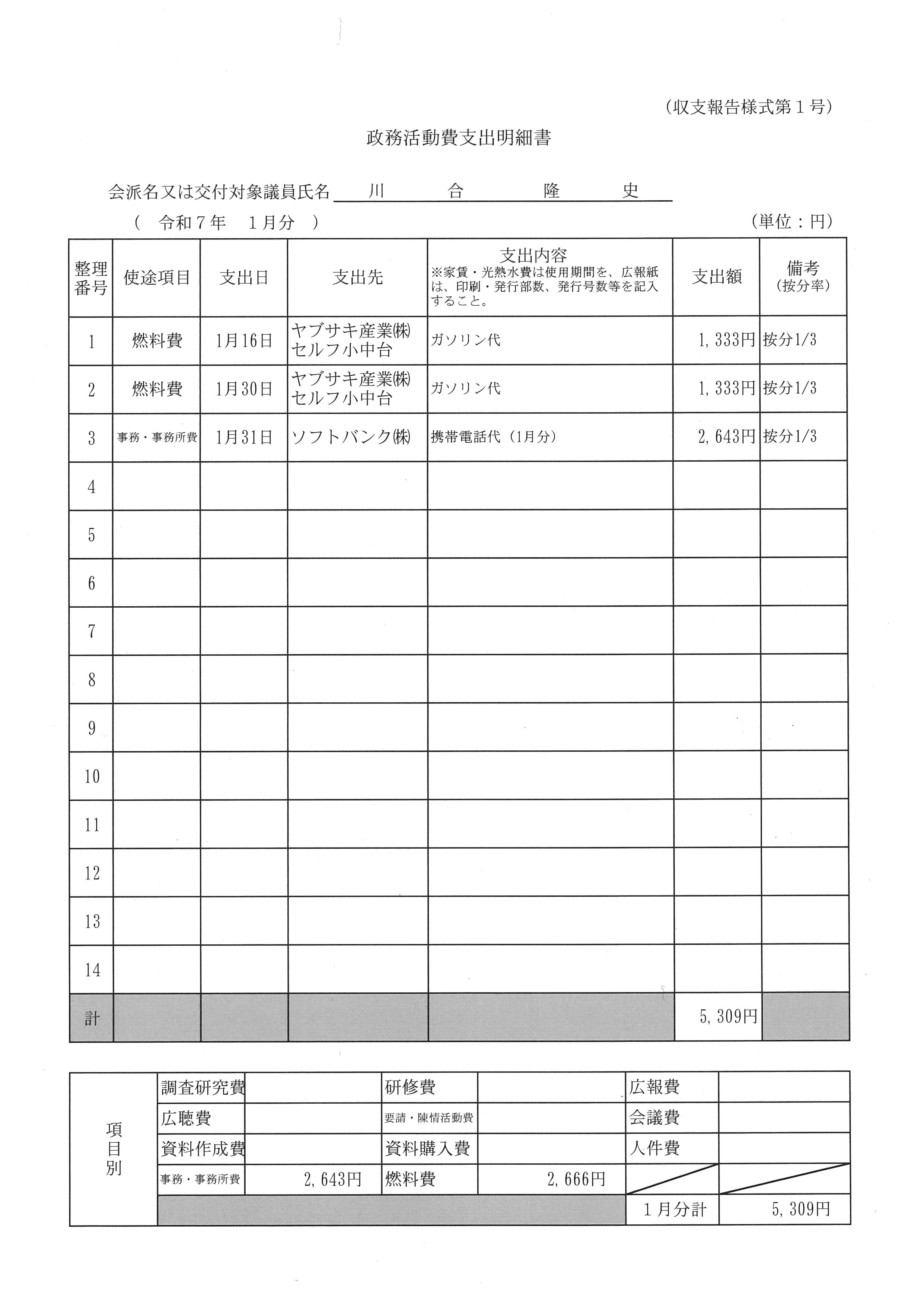 千葉市議会トップページ > 広報・情報公開 > 政務活動費 > 令和6年度交付分(政務活動費収支報告書)