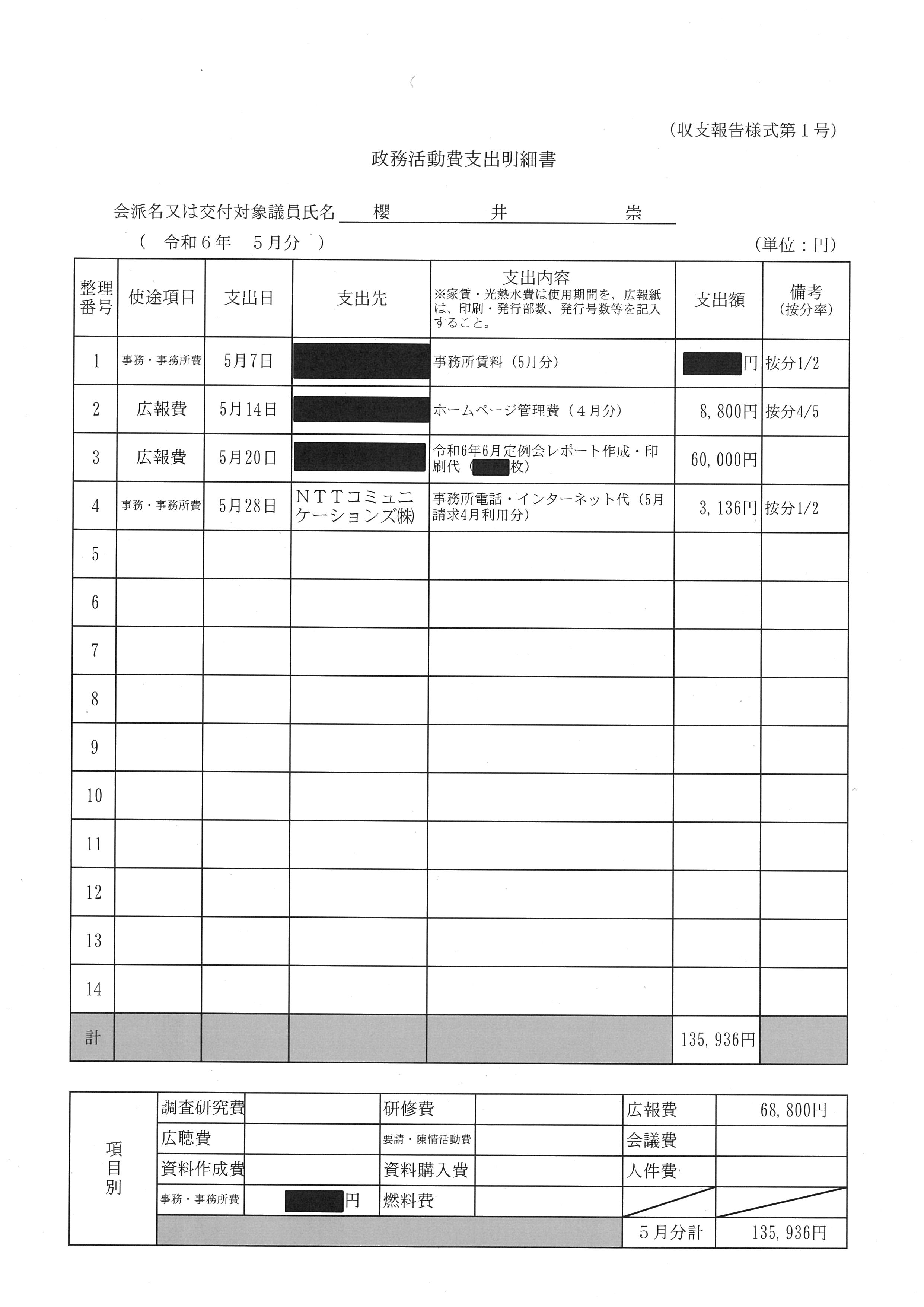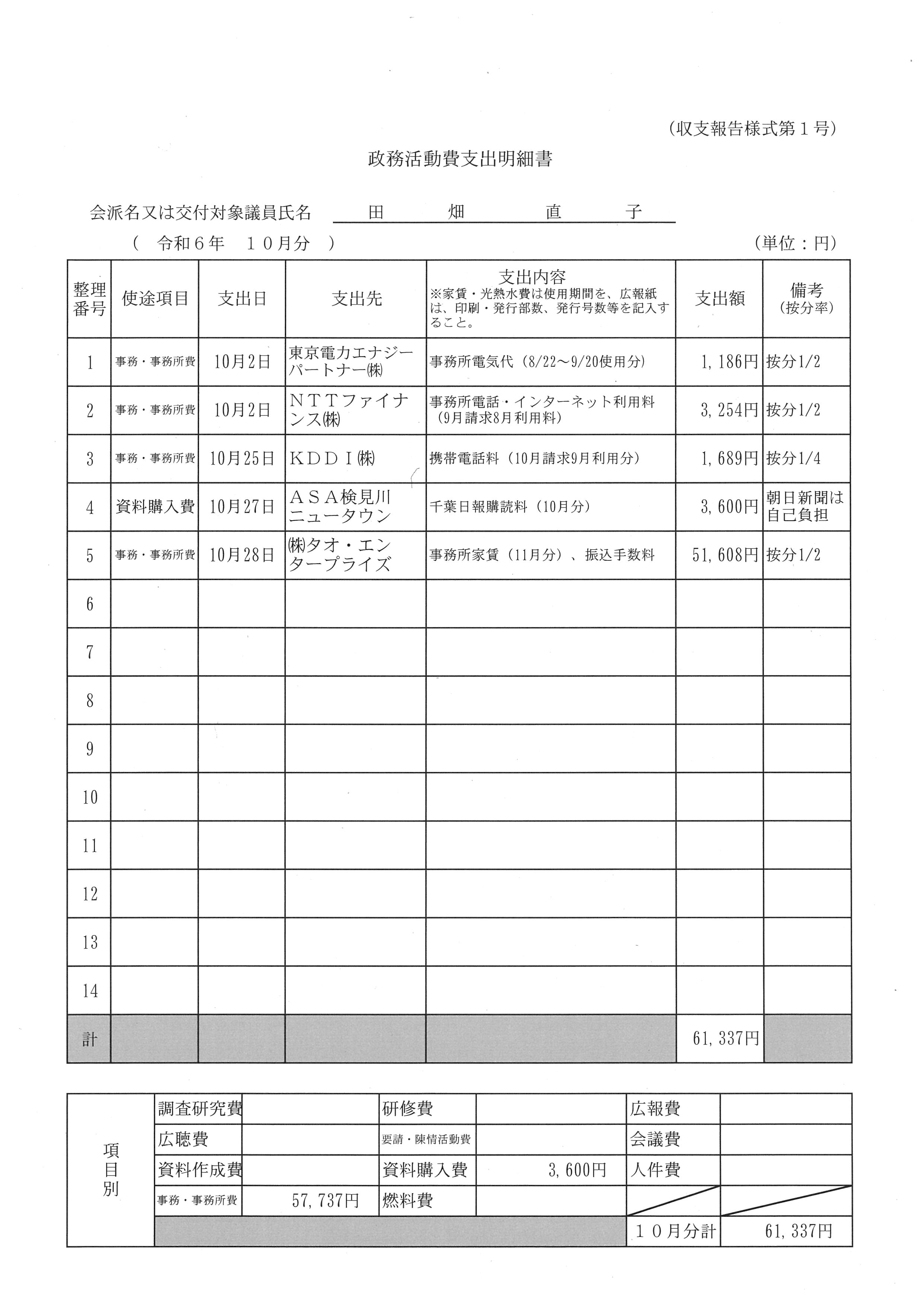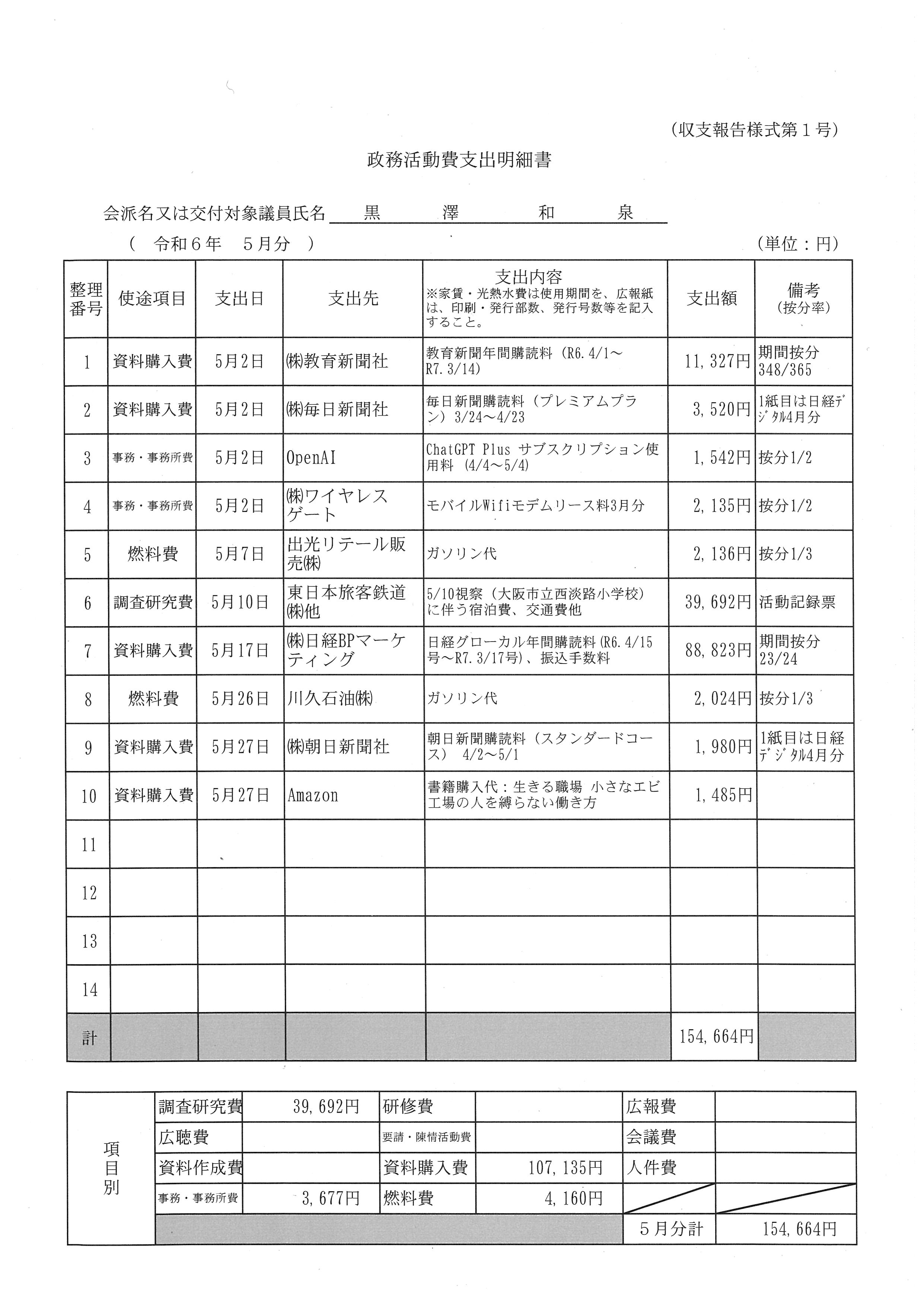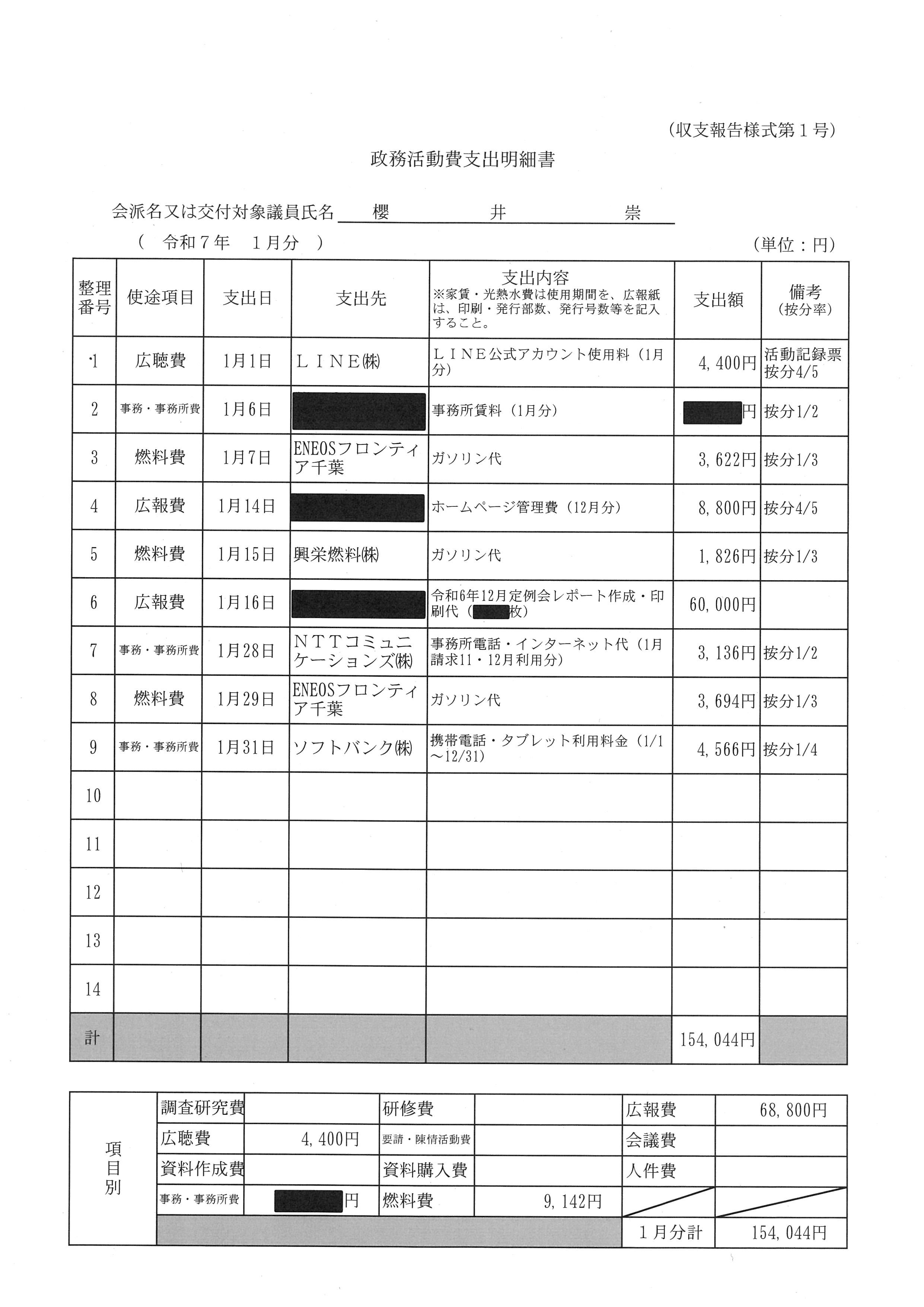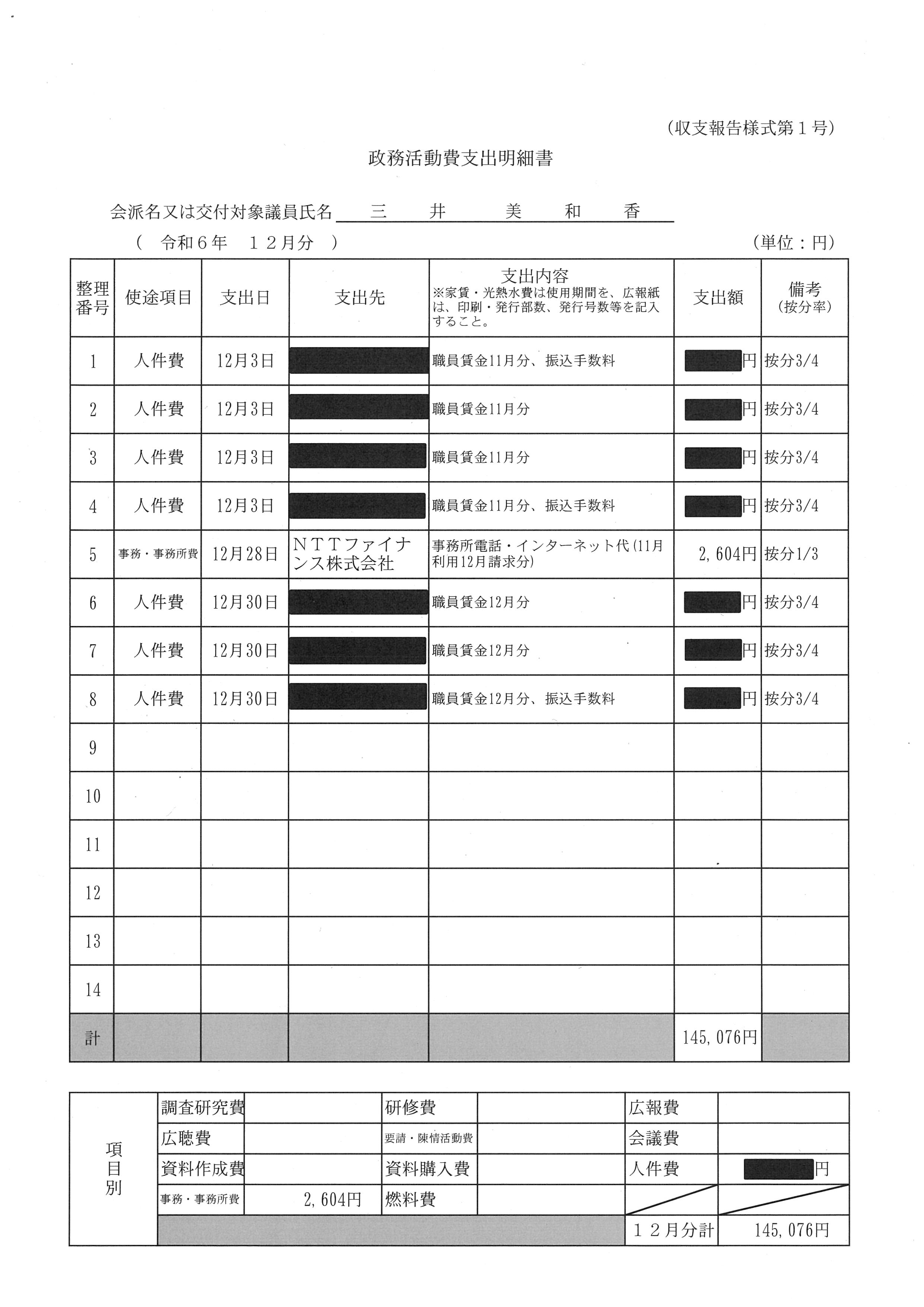 千葉市議会トップページ > 広報・情報公開 > 政務活動費 > 令和6年度交付分(政務活動費収支報告書)