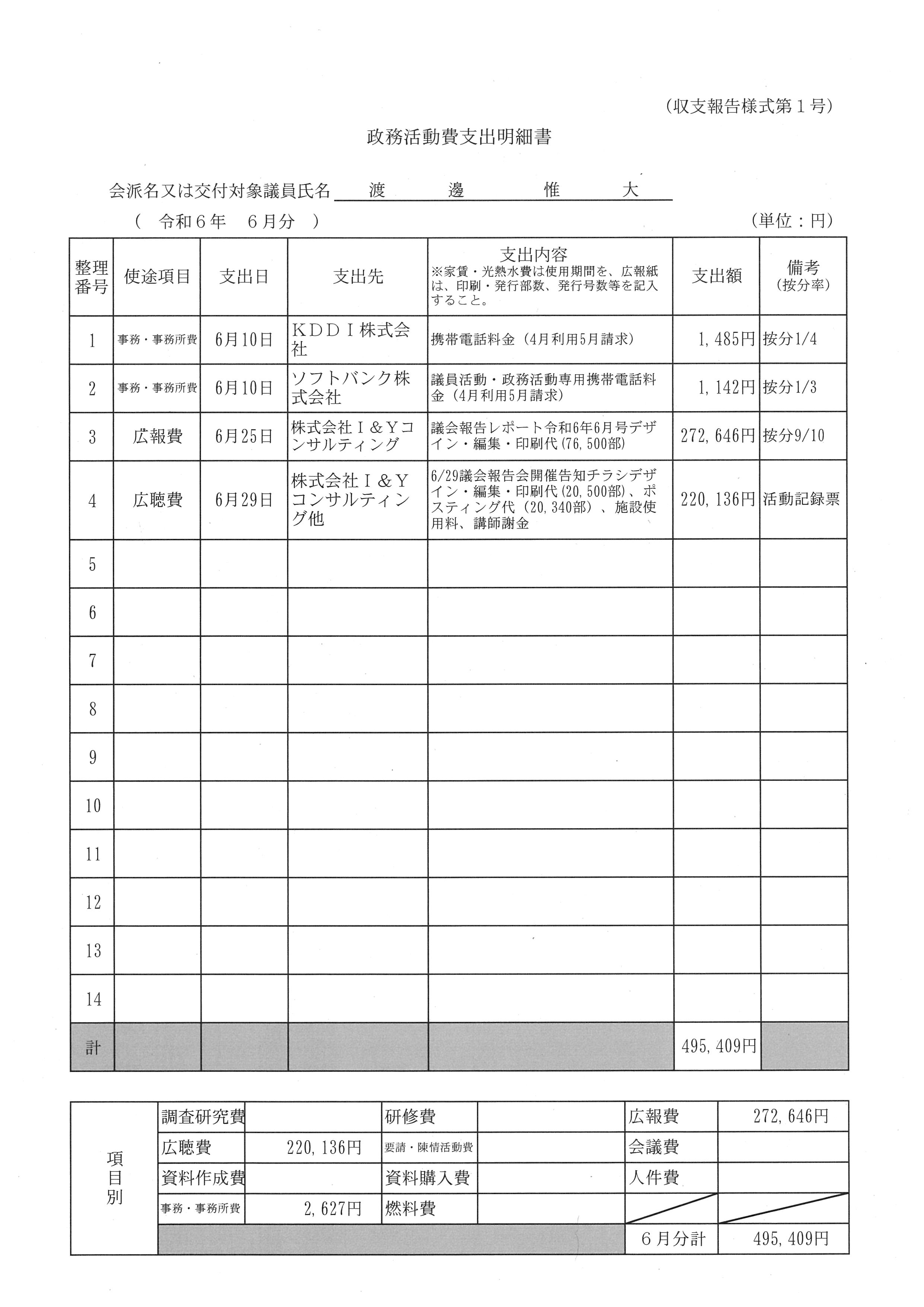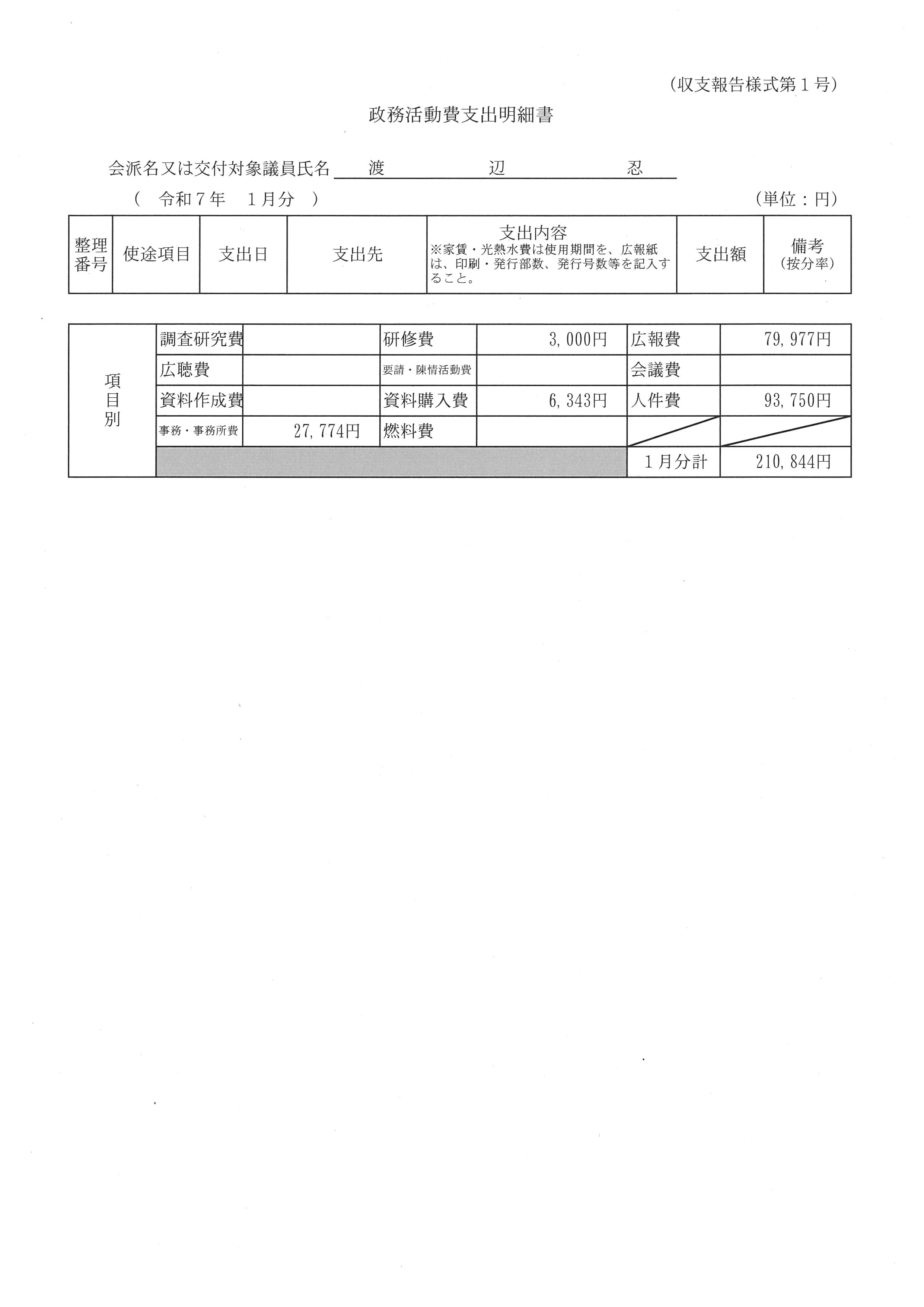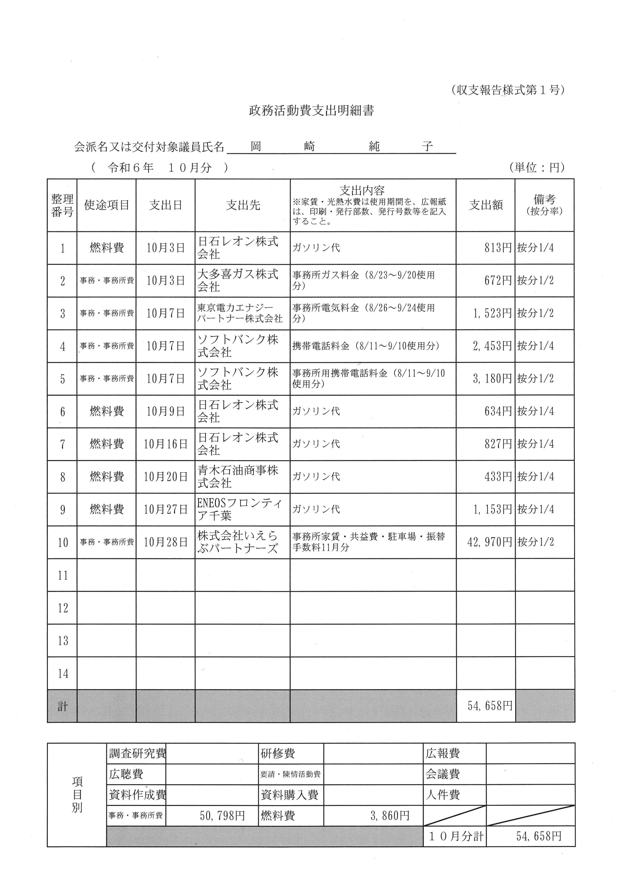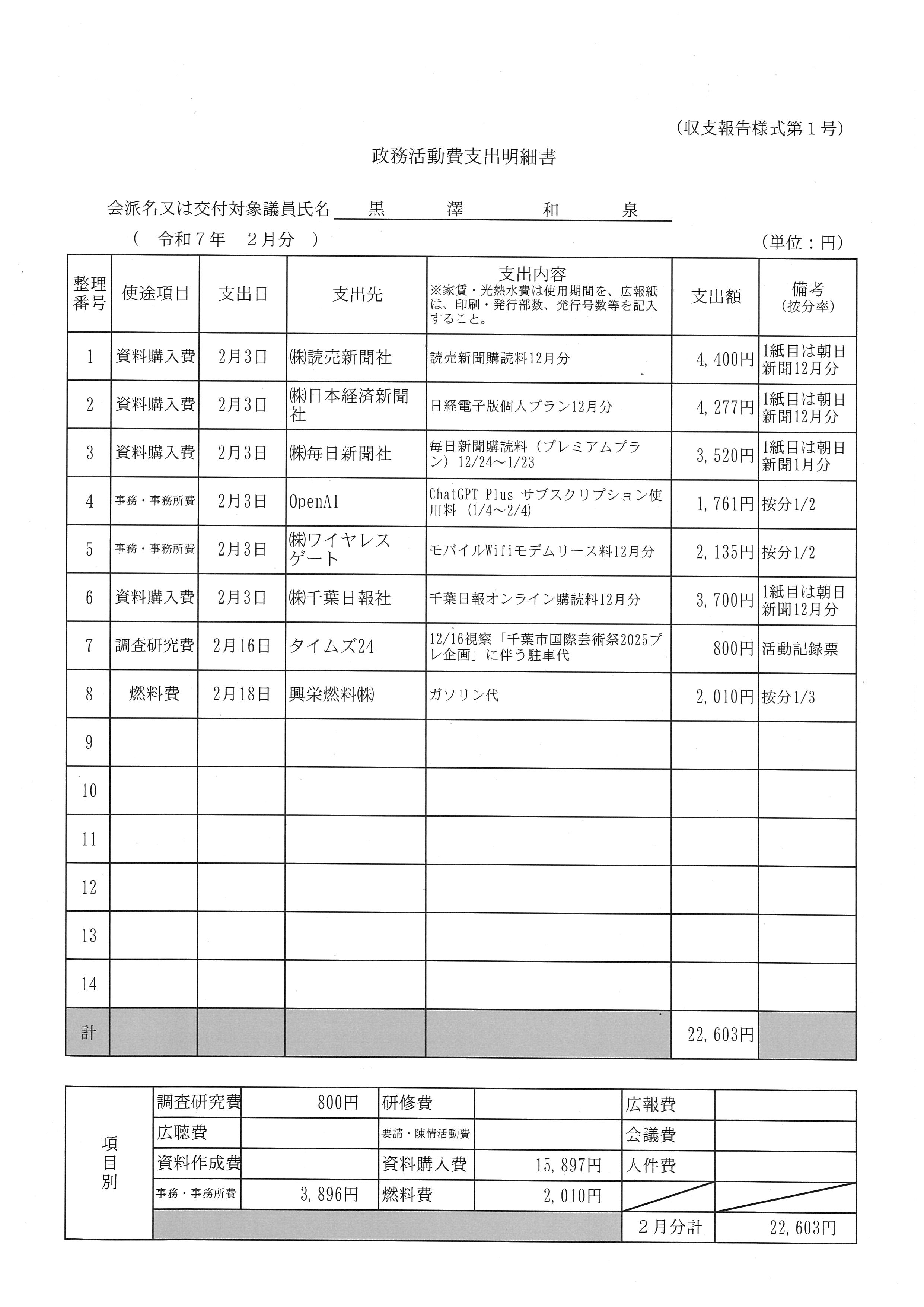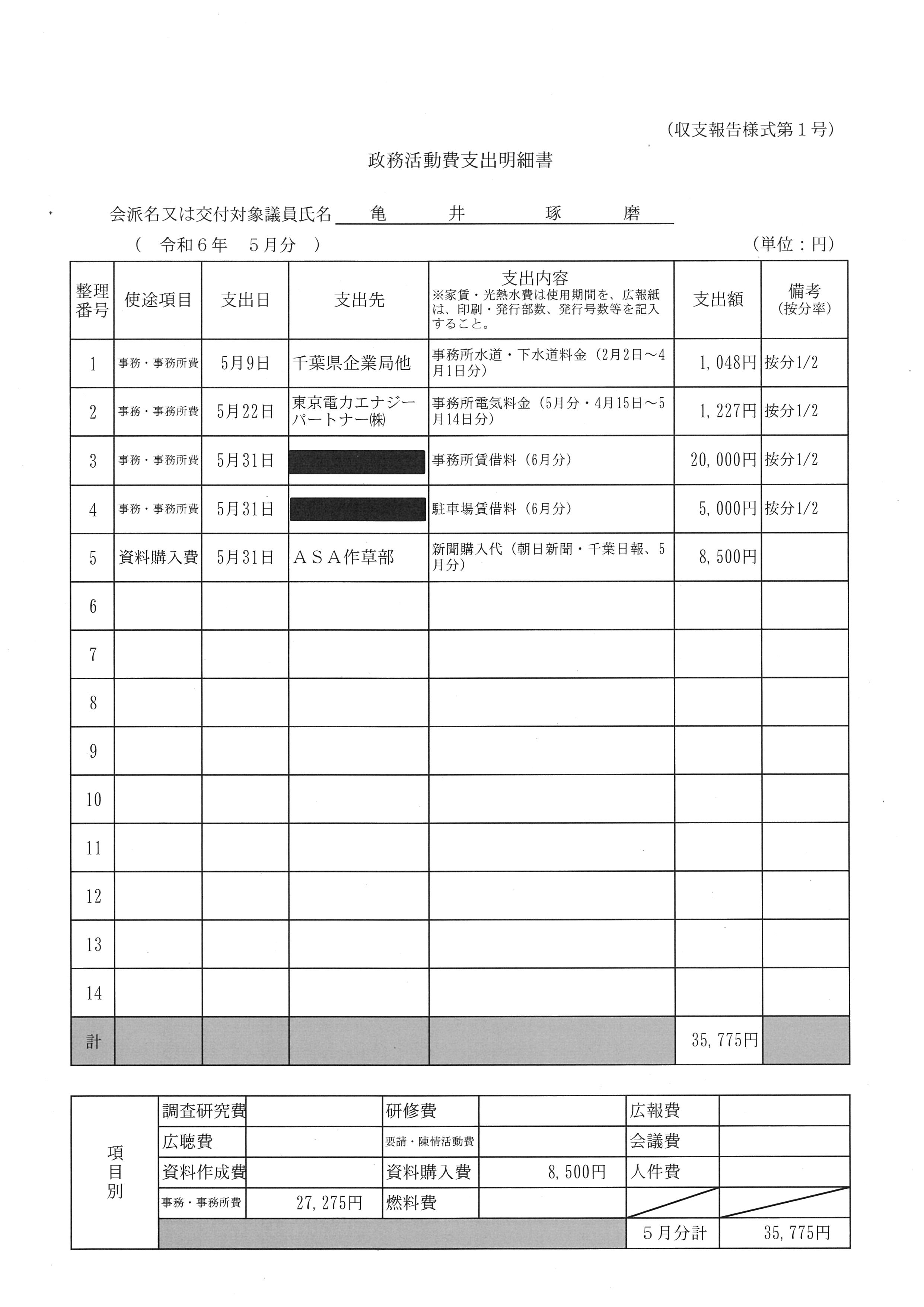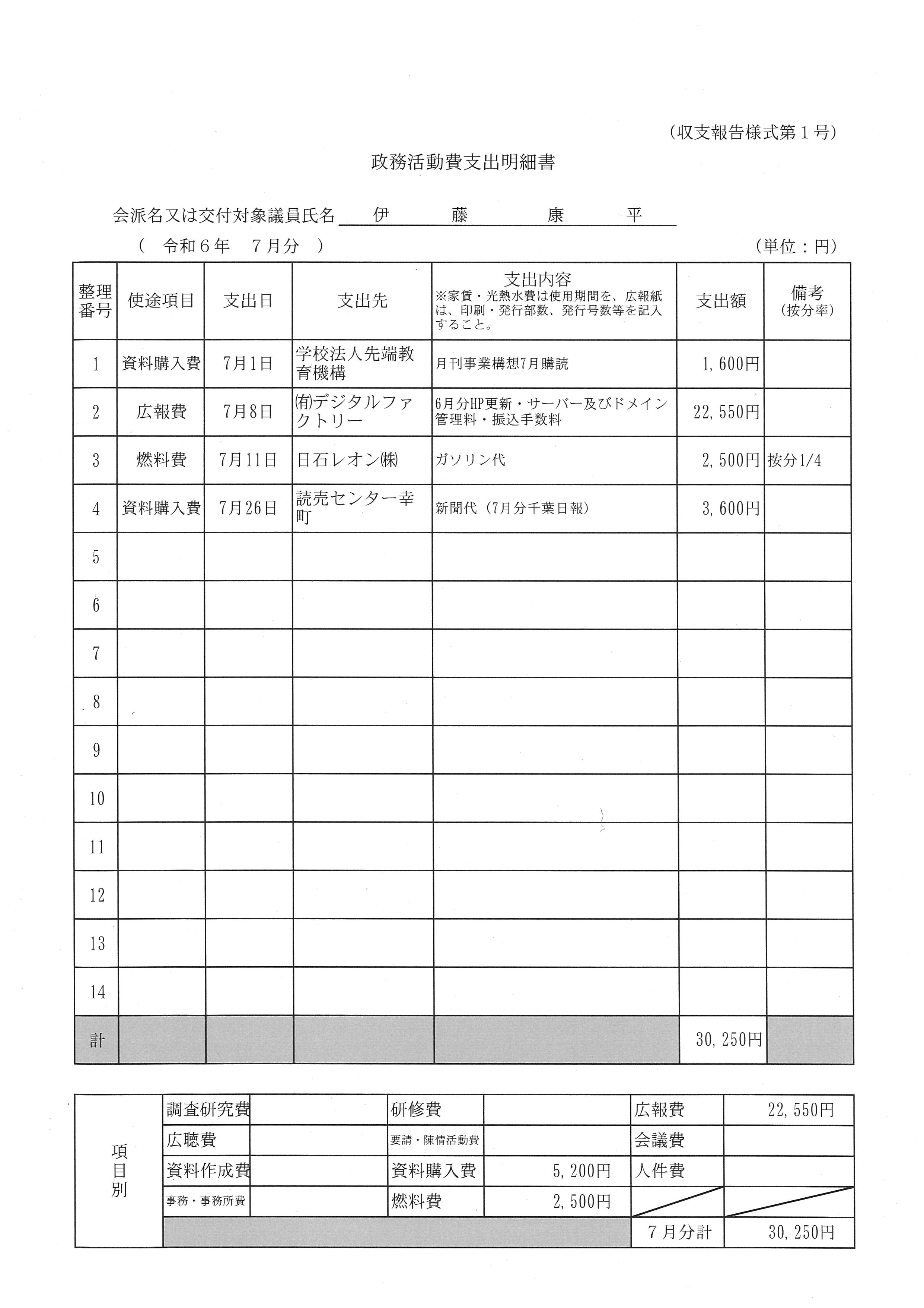 千葉市議会トップページ > 広報・情報公開 > 政務活動費 > 令和6年度交付分(政務活動費収支報告書)