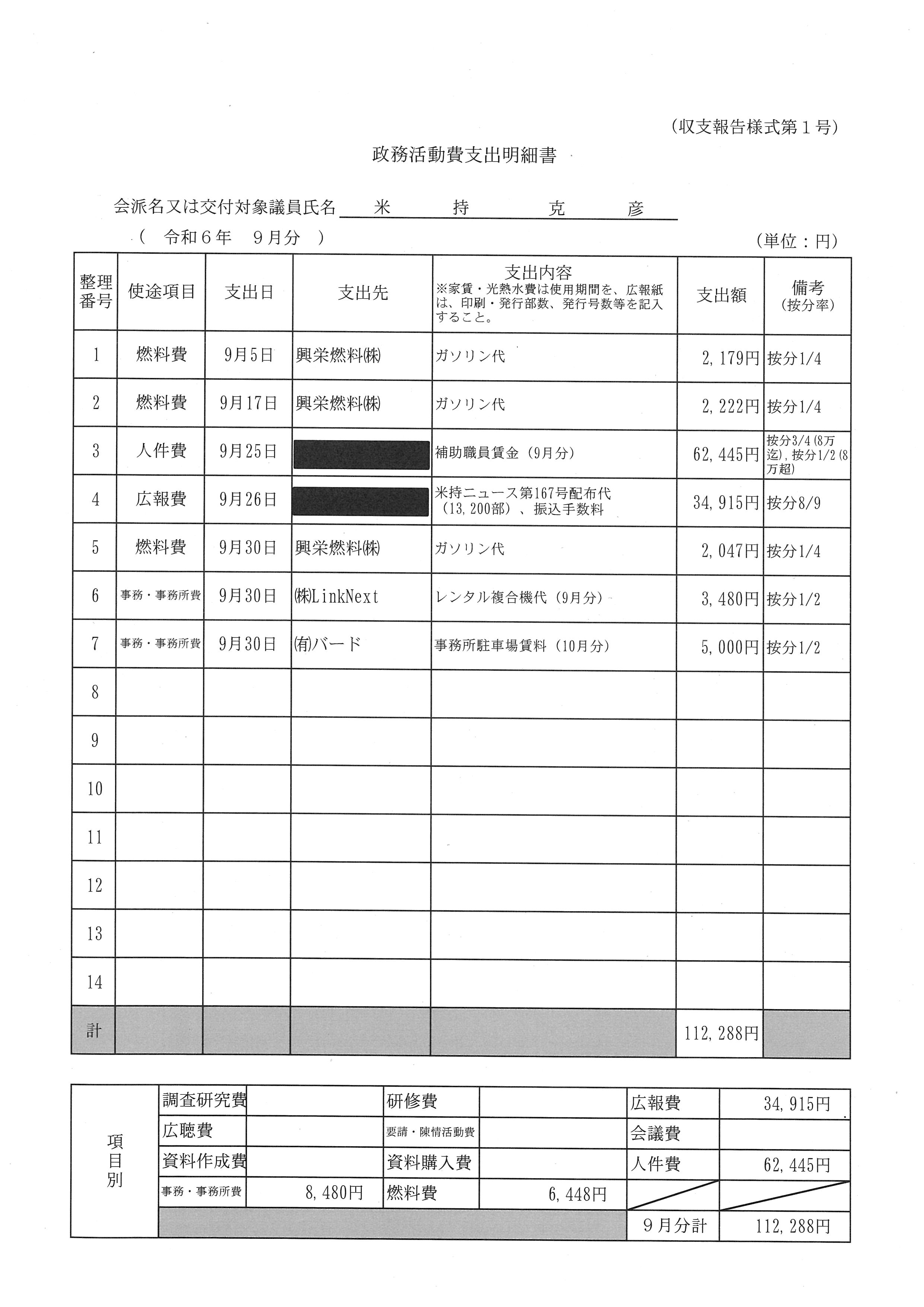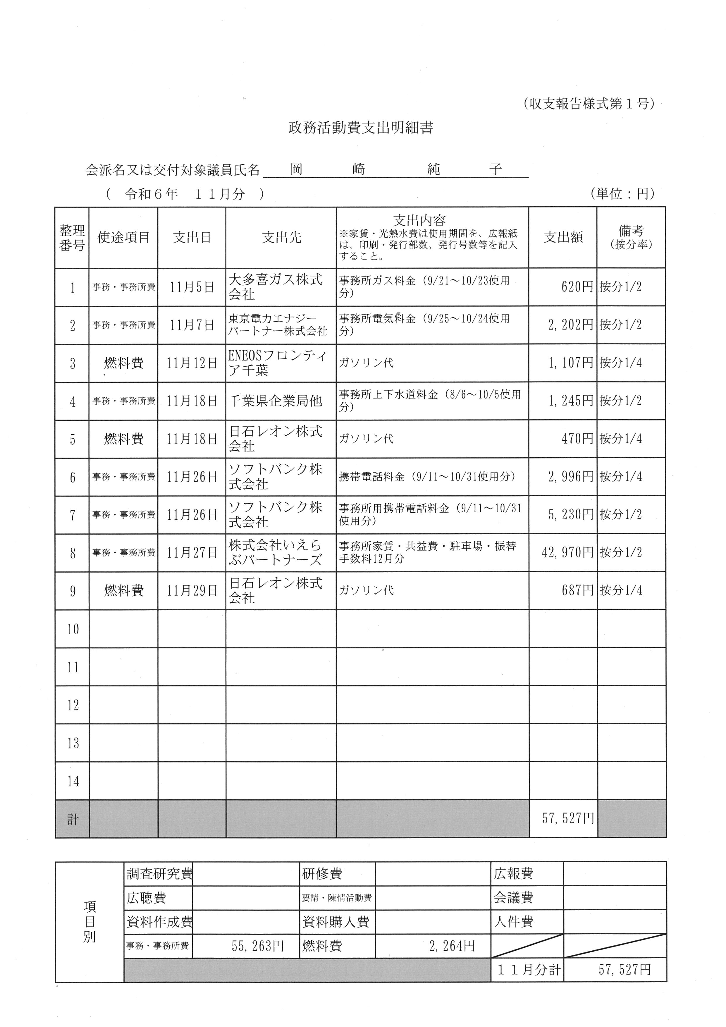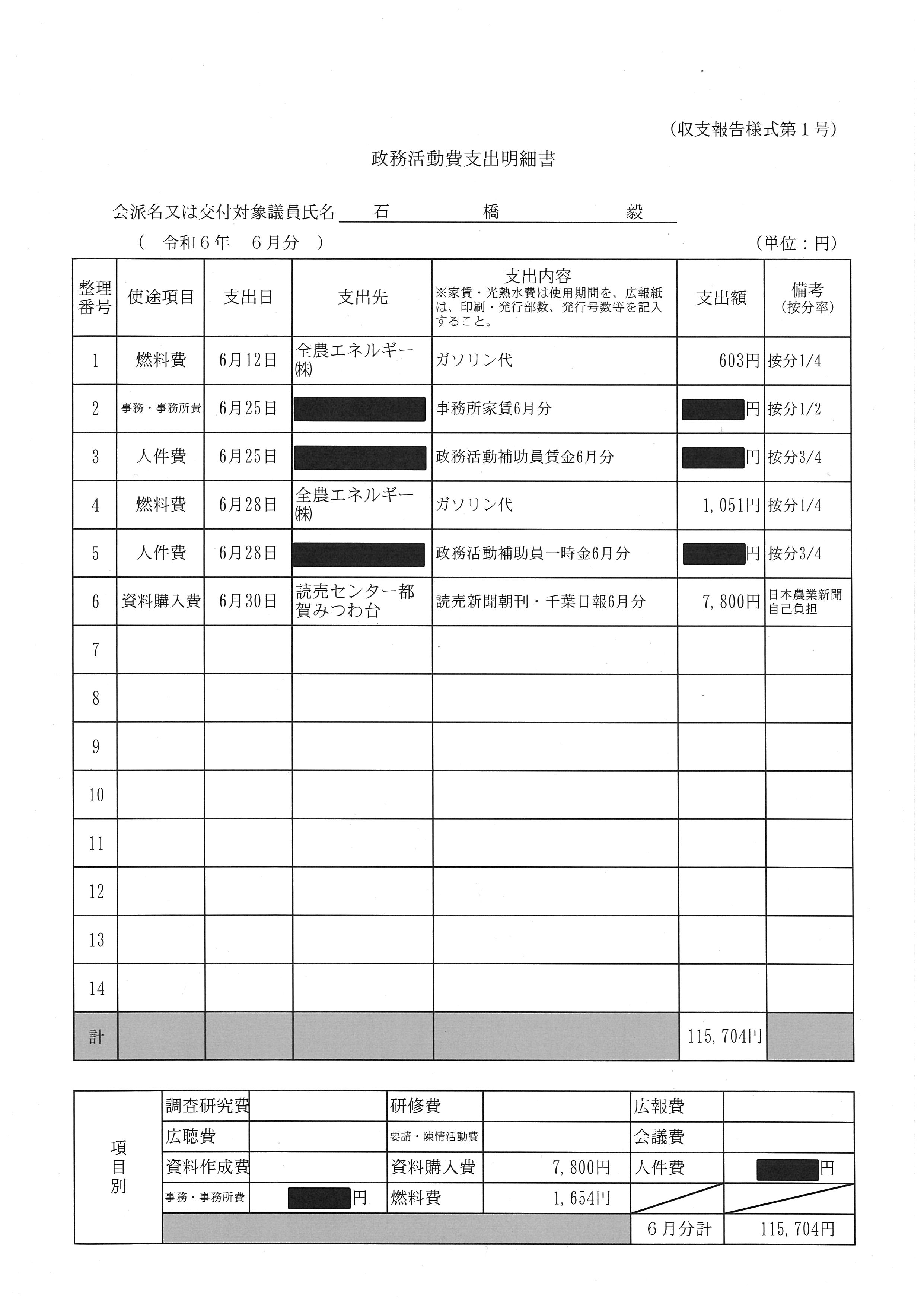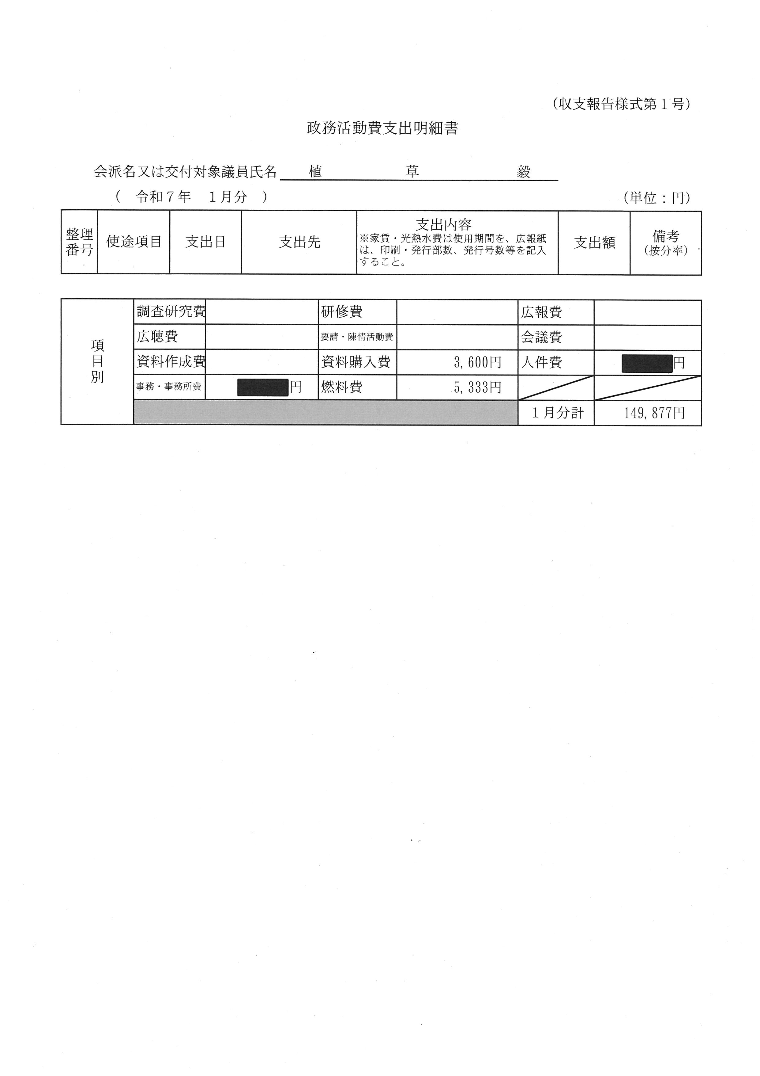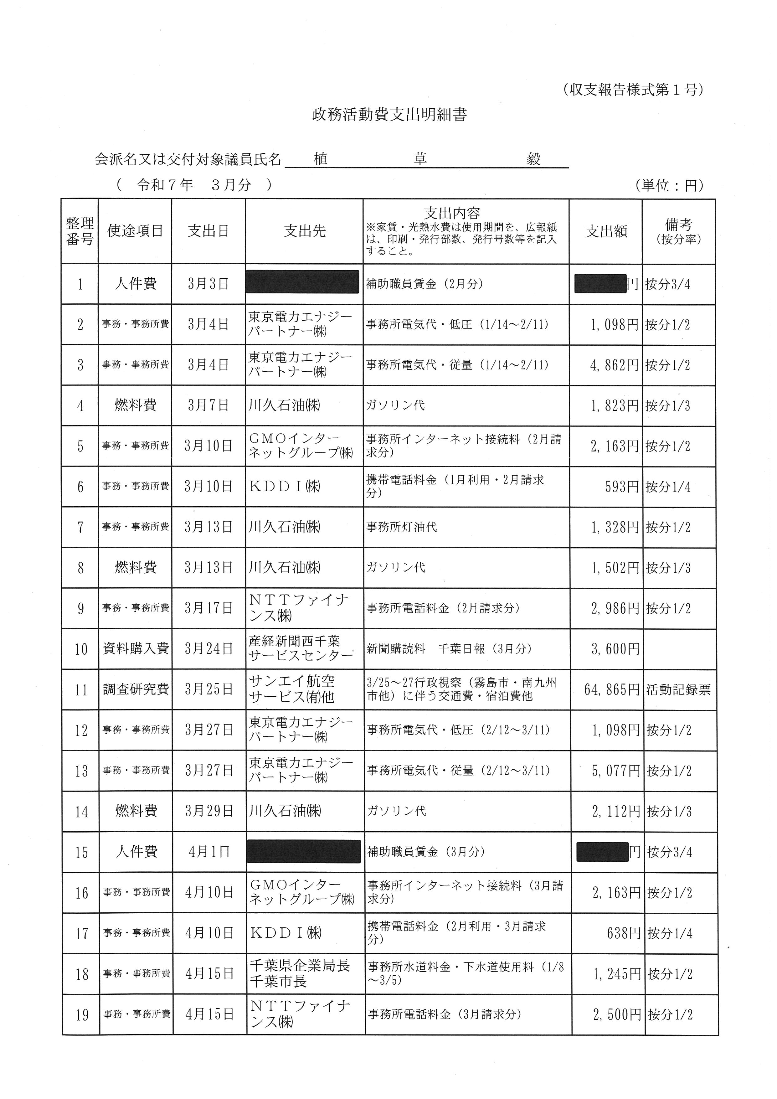 千葉市議会トップページ > 広報・情報公開 > 政務活動費 > 令和6年度交付分(政務活動費収支報告書)