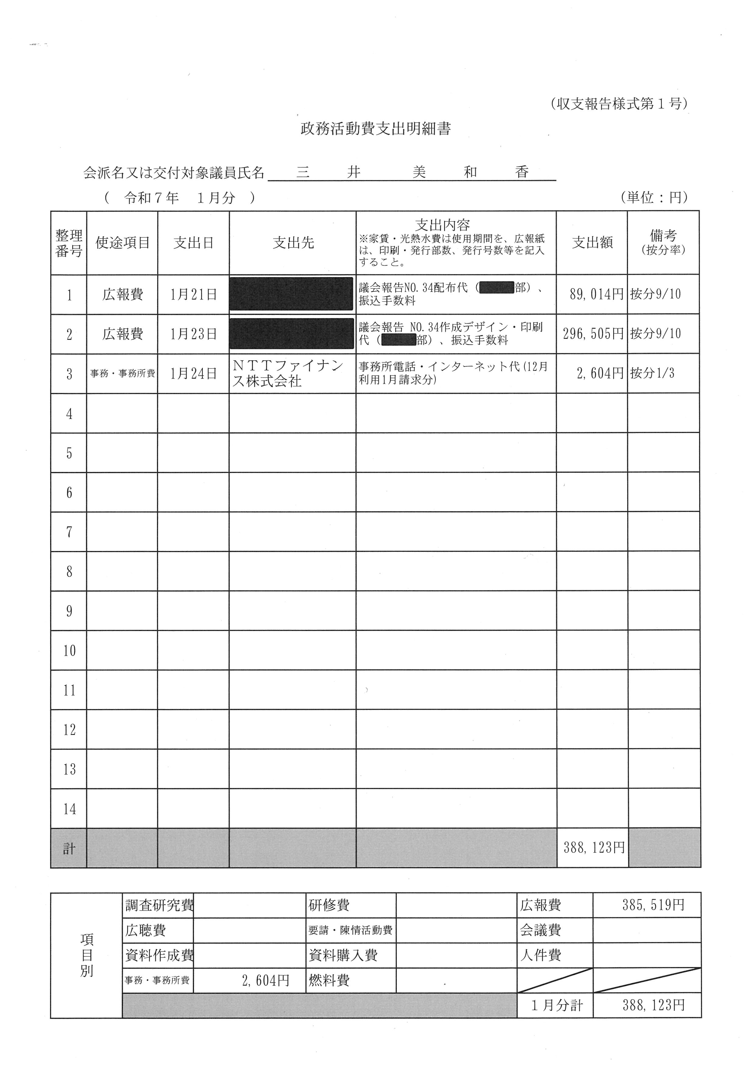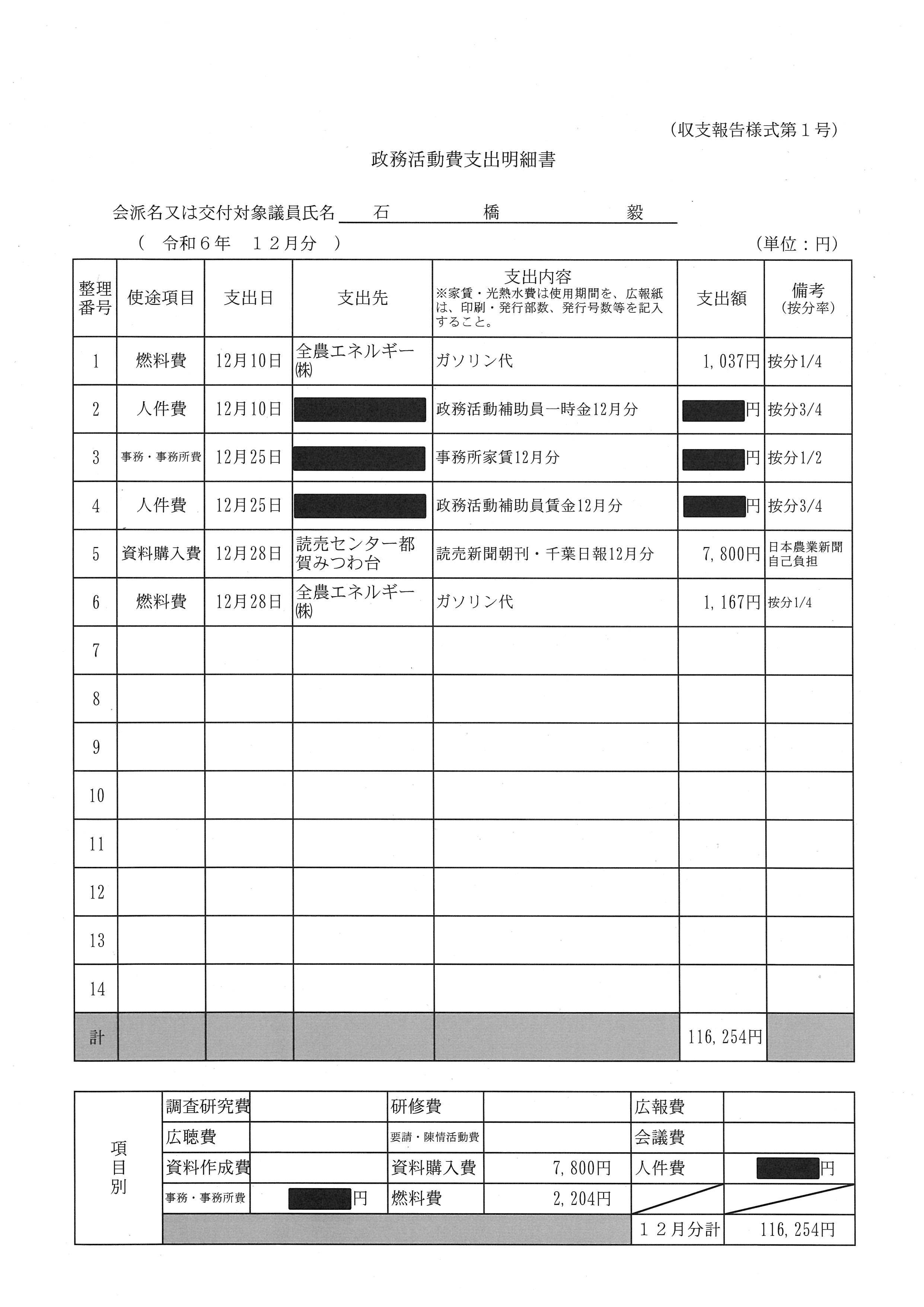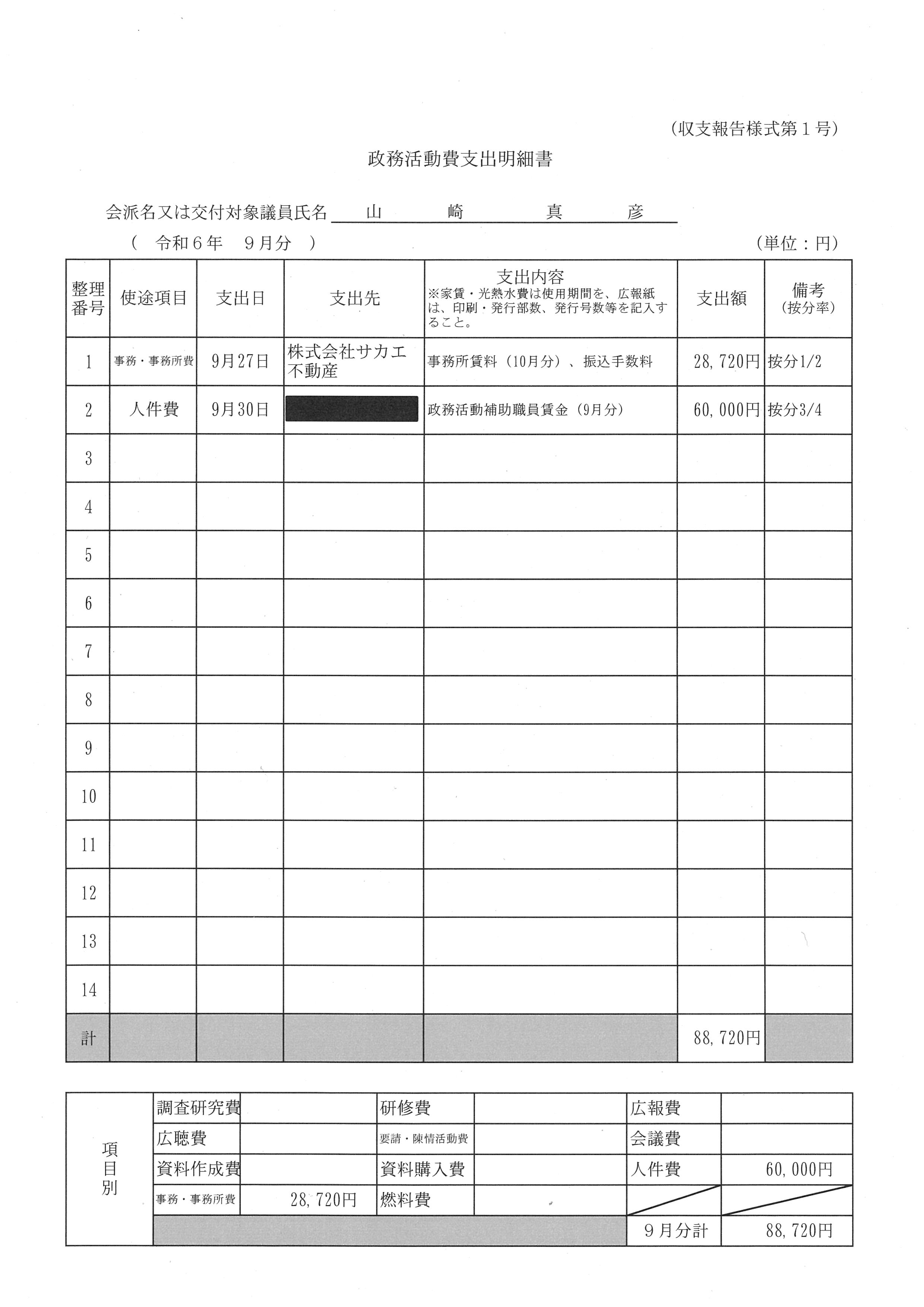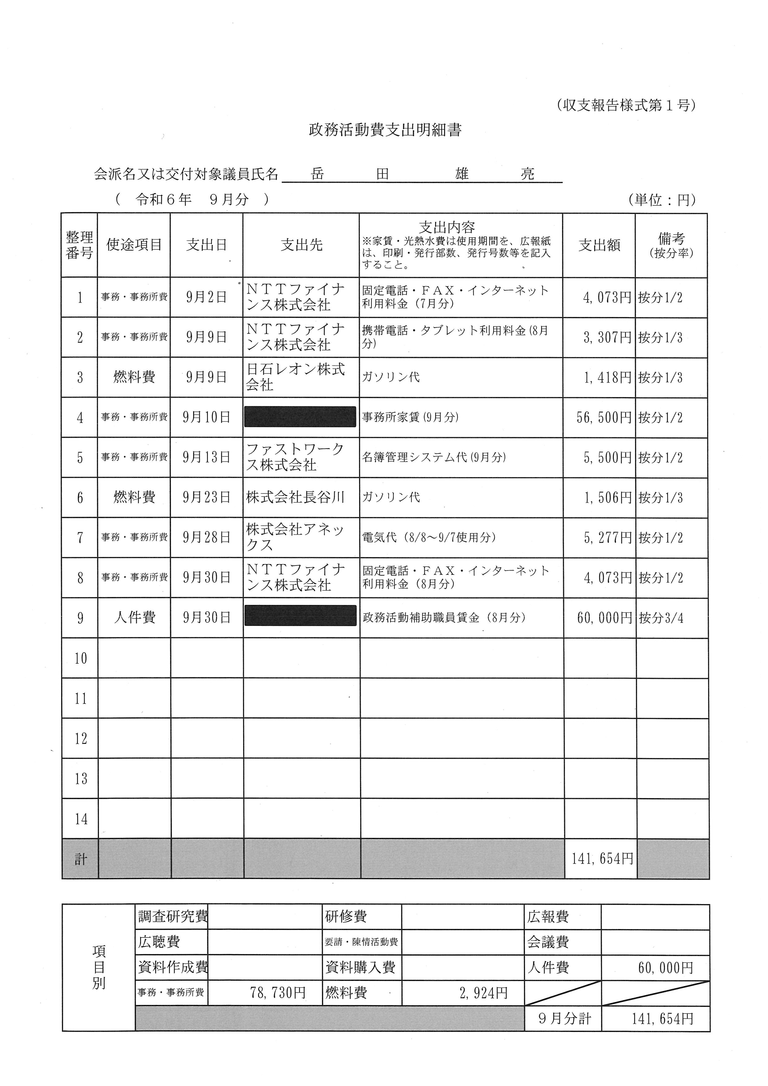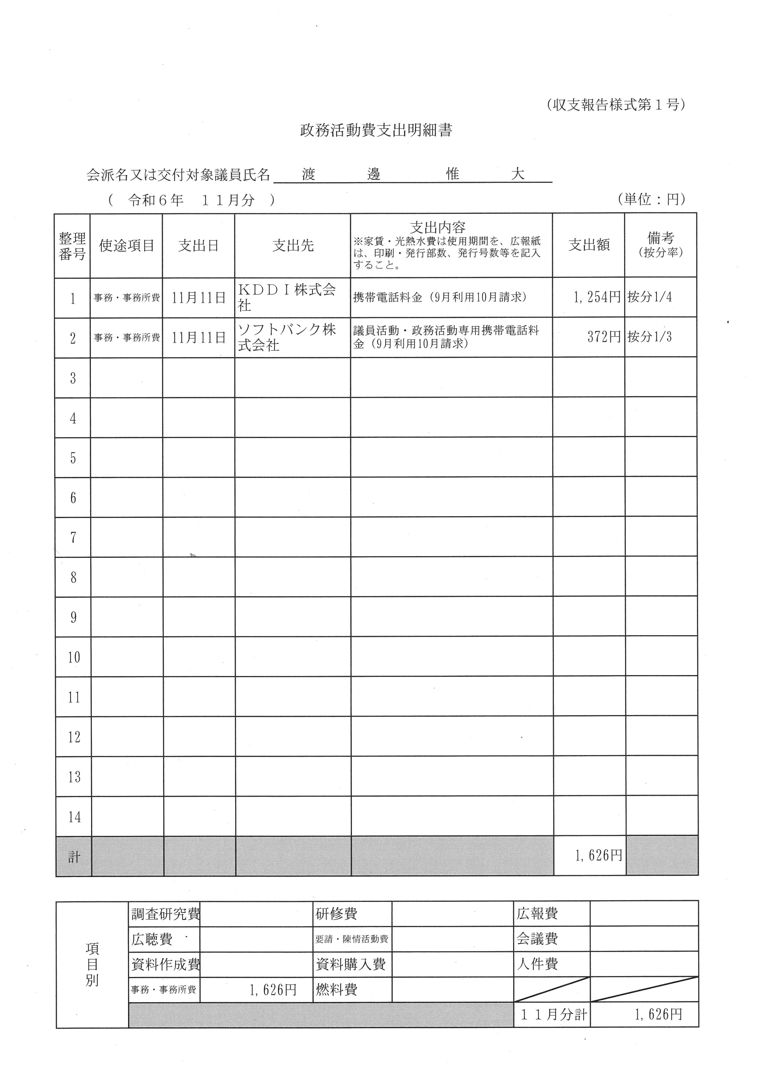千葉市議会トップページ > 広報・情報公開 > 政務活動費 > 令和6年度交付分(政務活動費収支報告書)