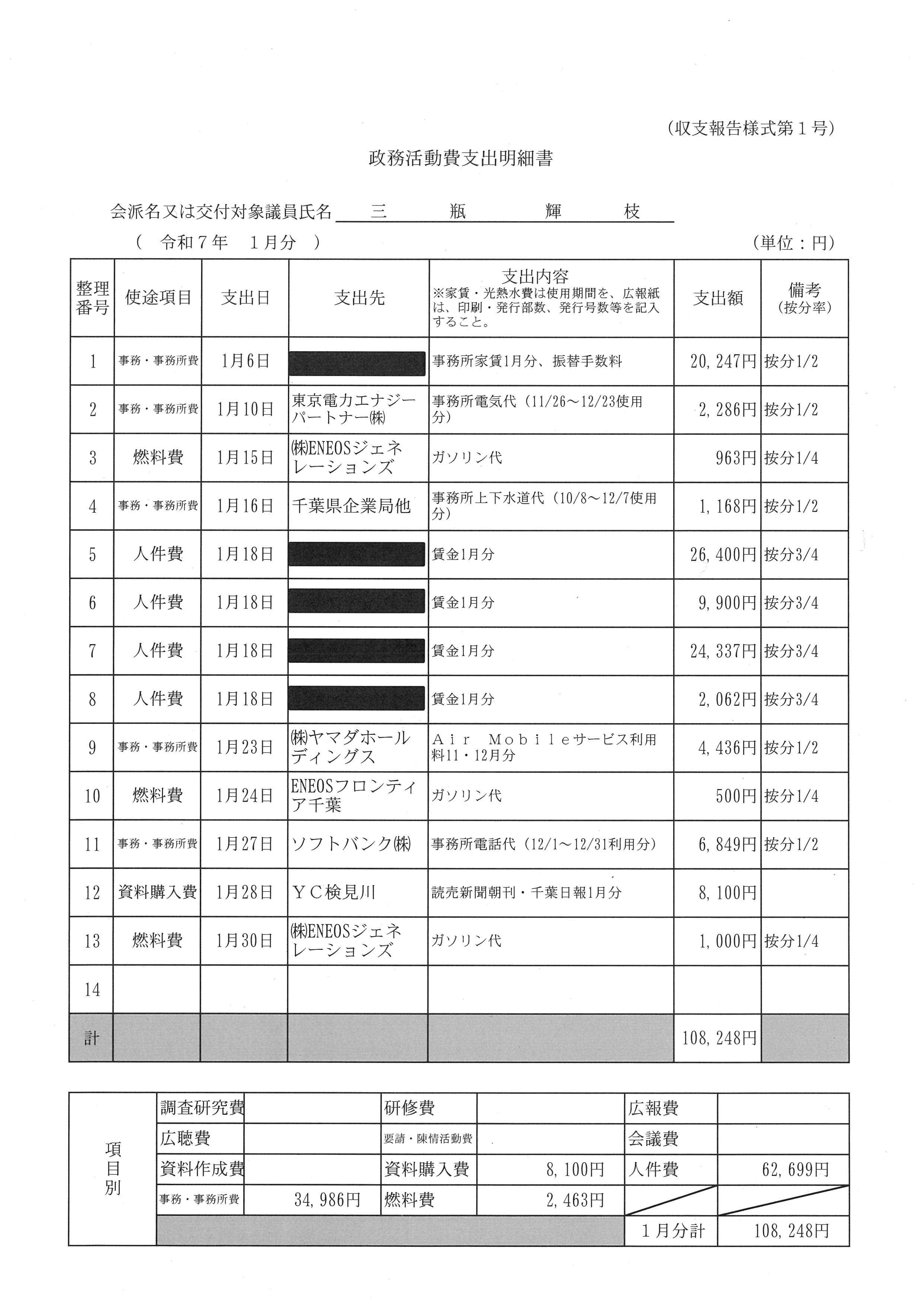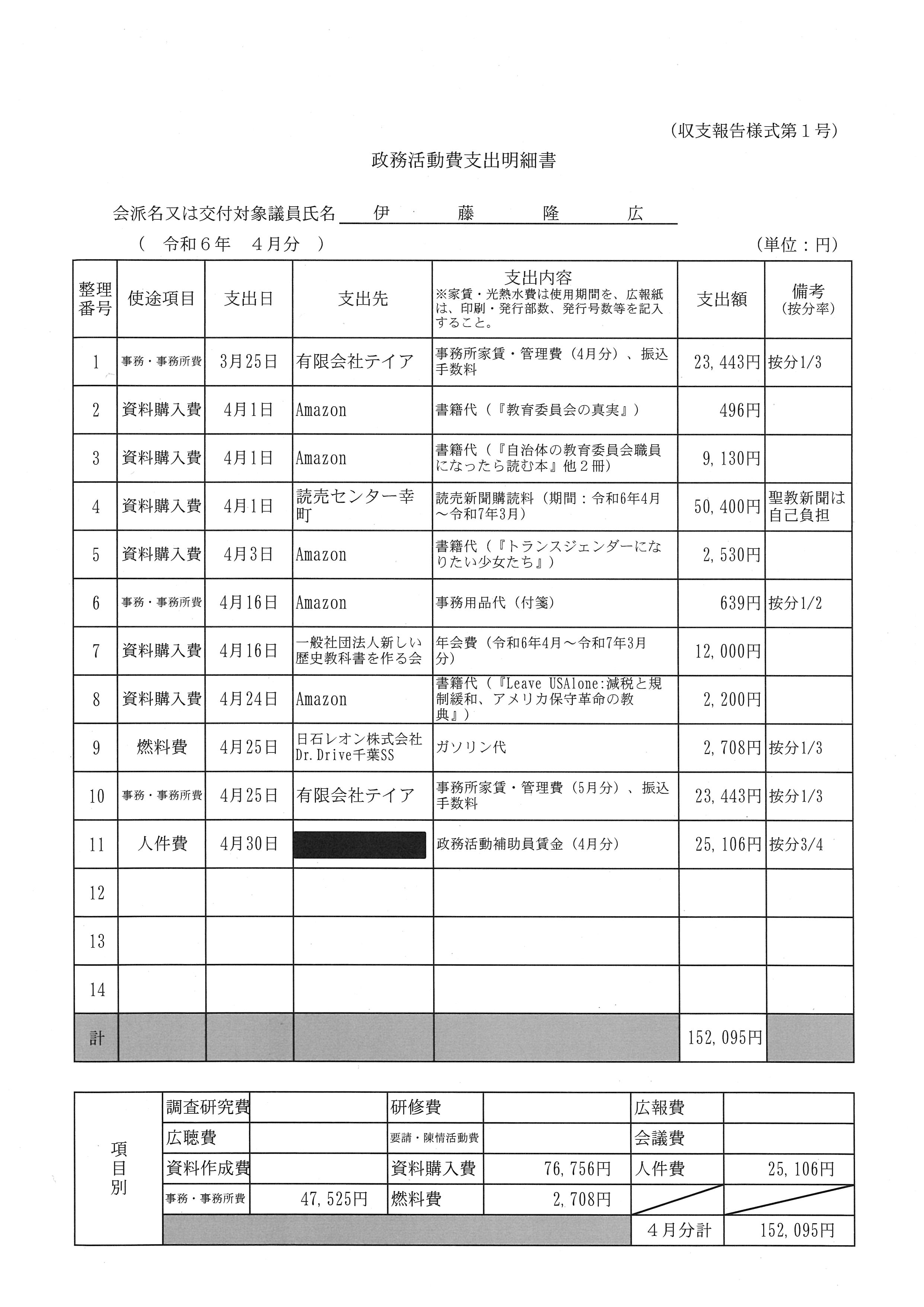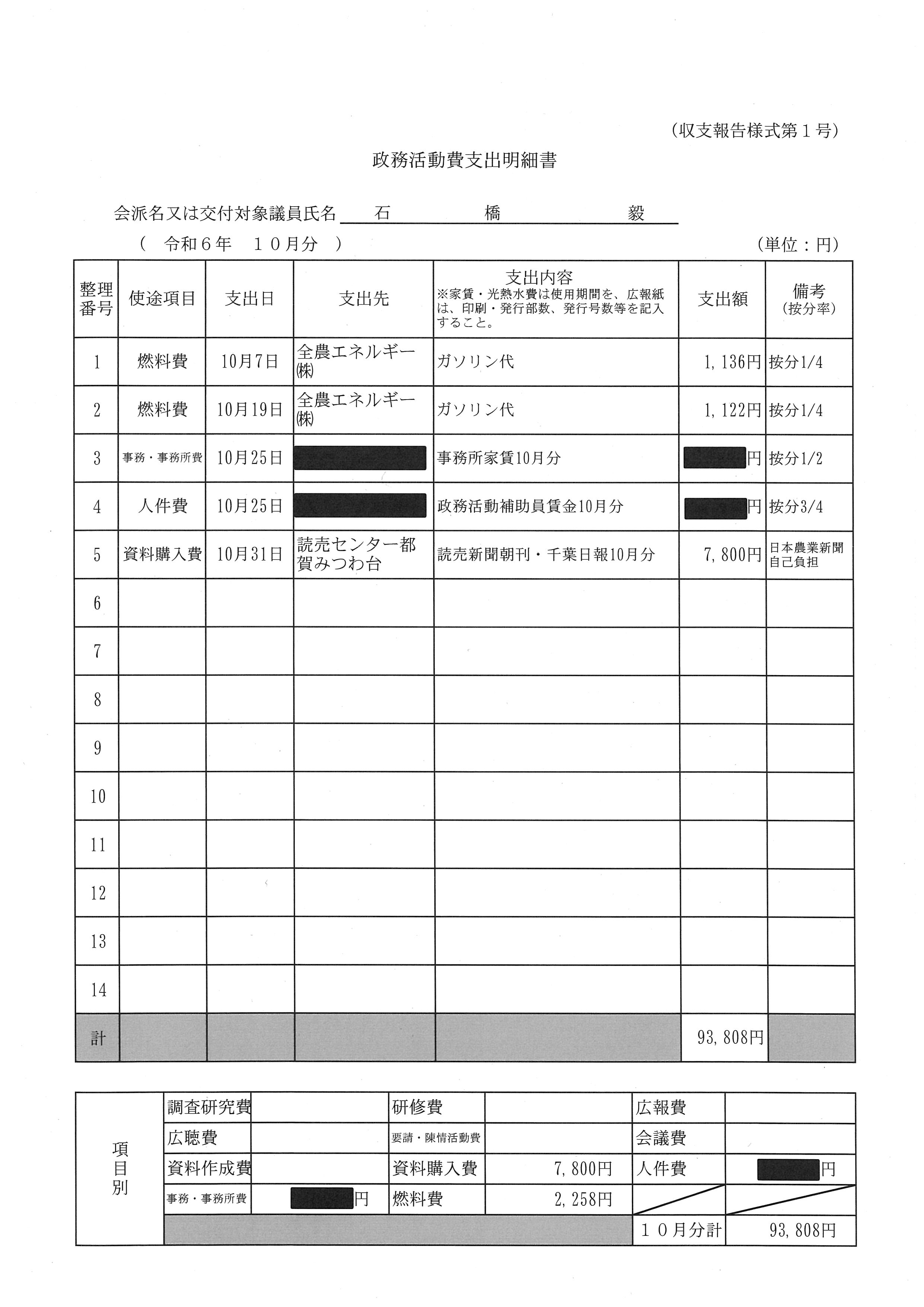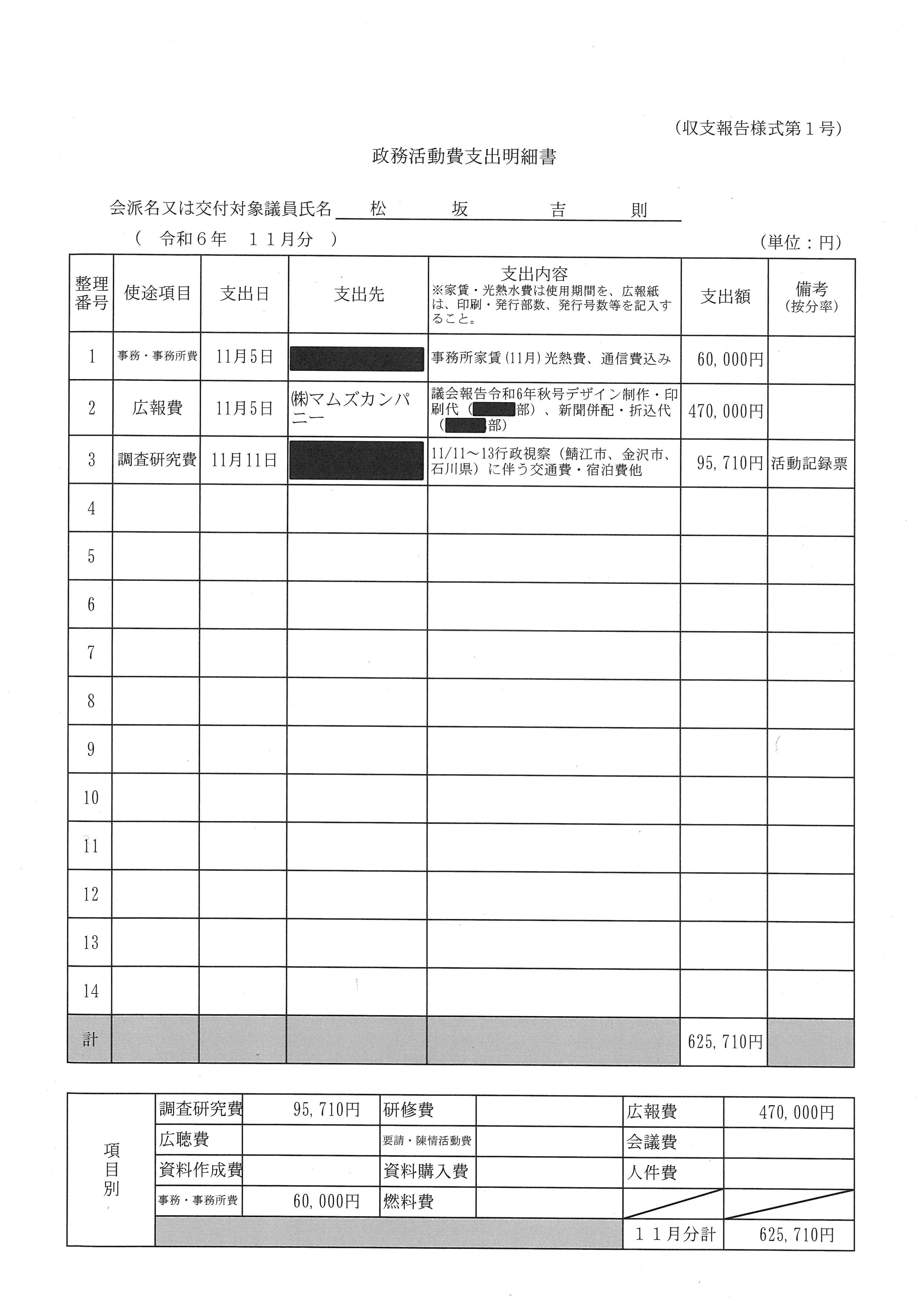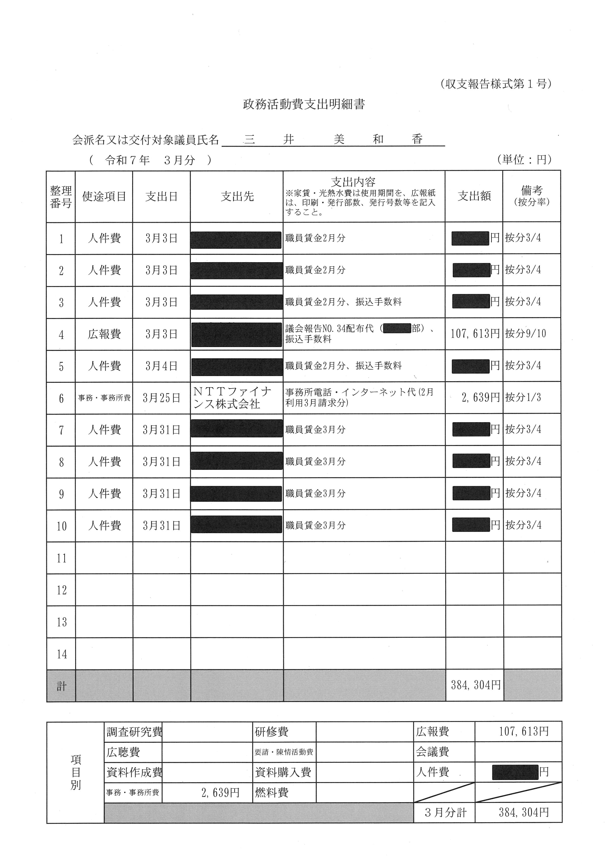 千葉市議会トップページ > 広報・情報公開 > 政務活動費 > 令和6年度交付分(政務活動費収支報告書)