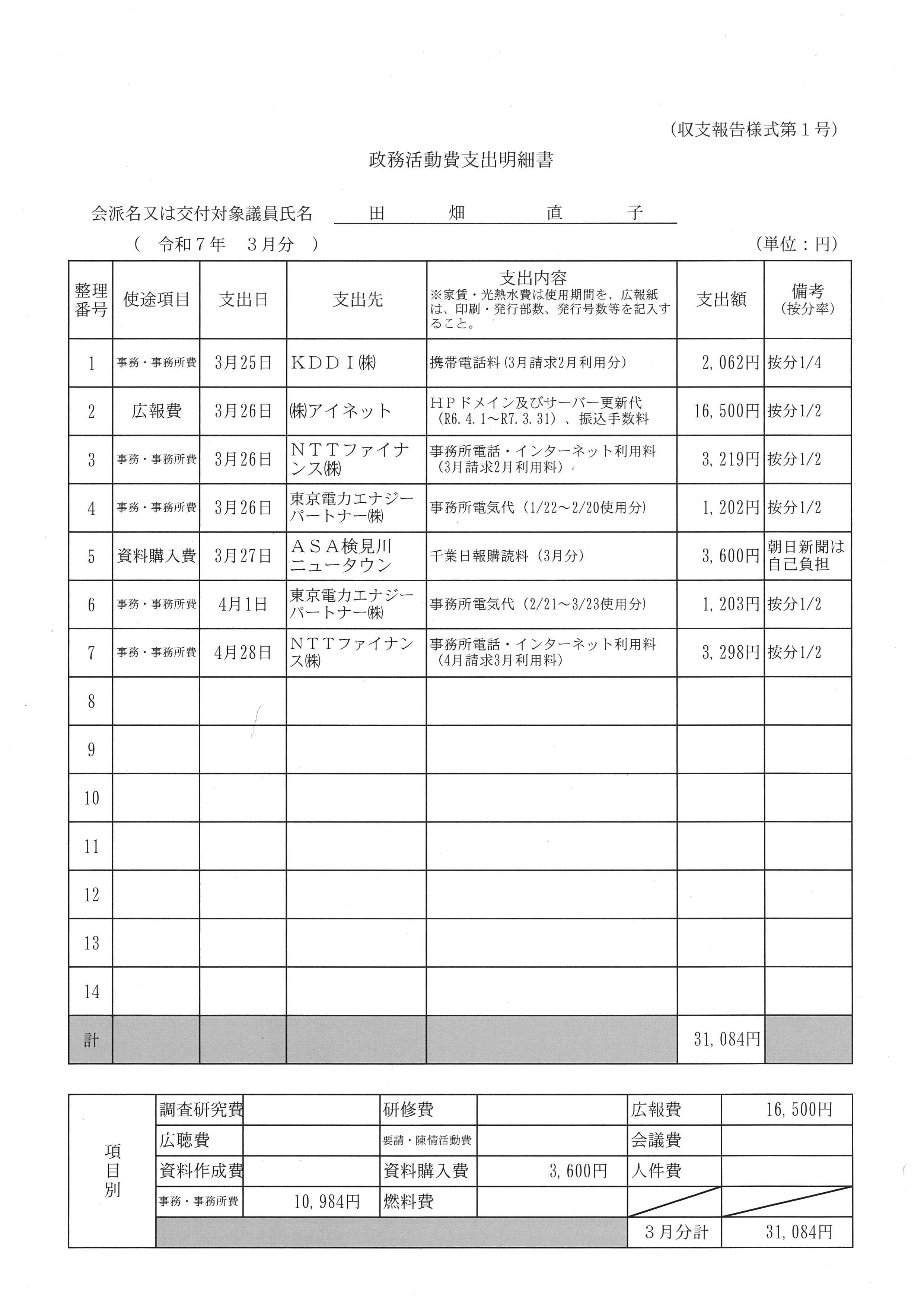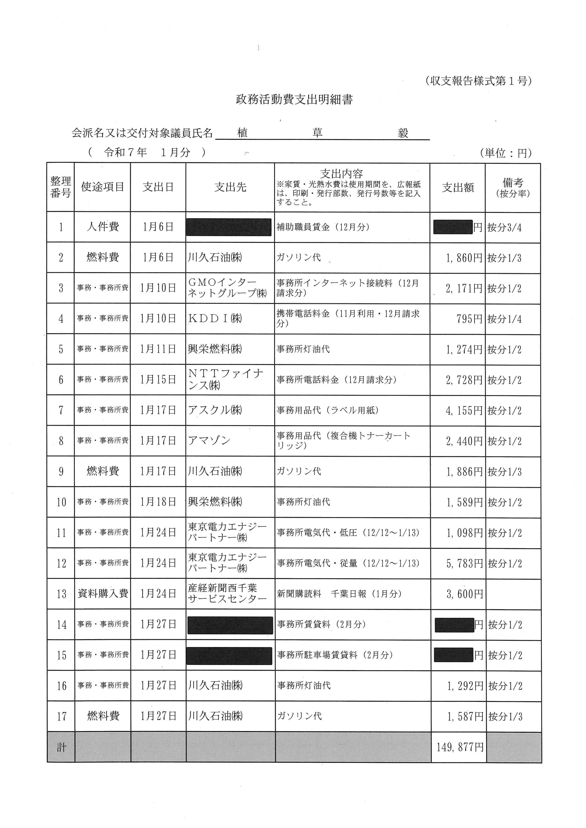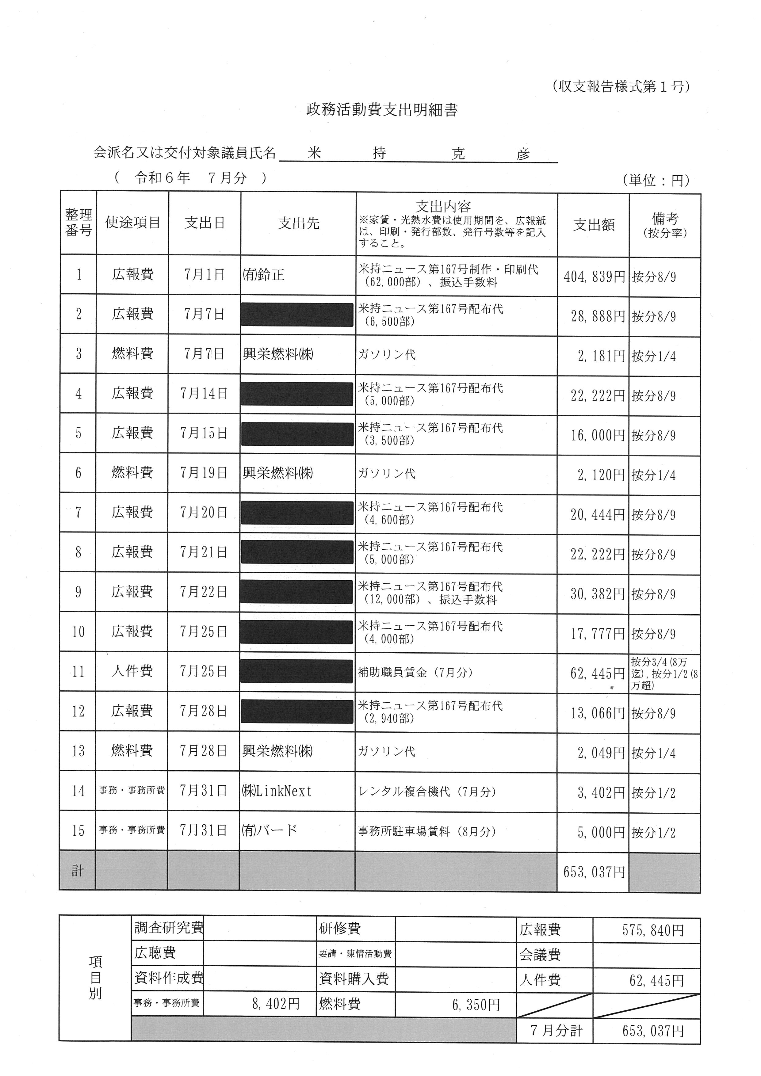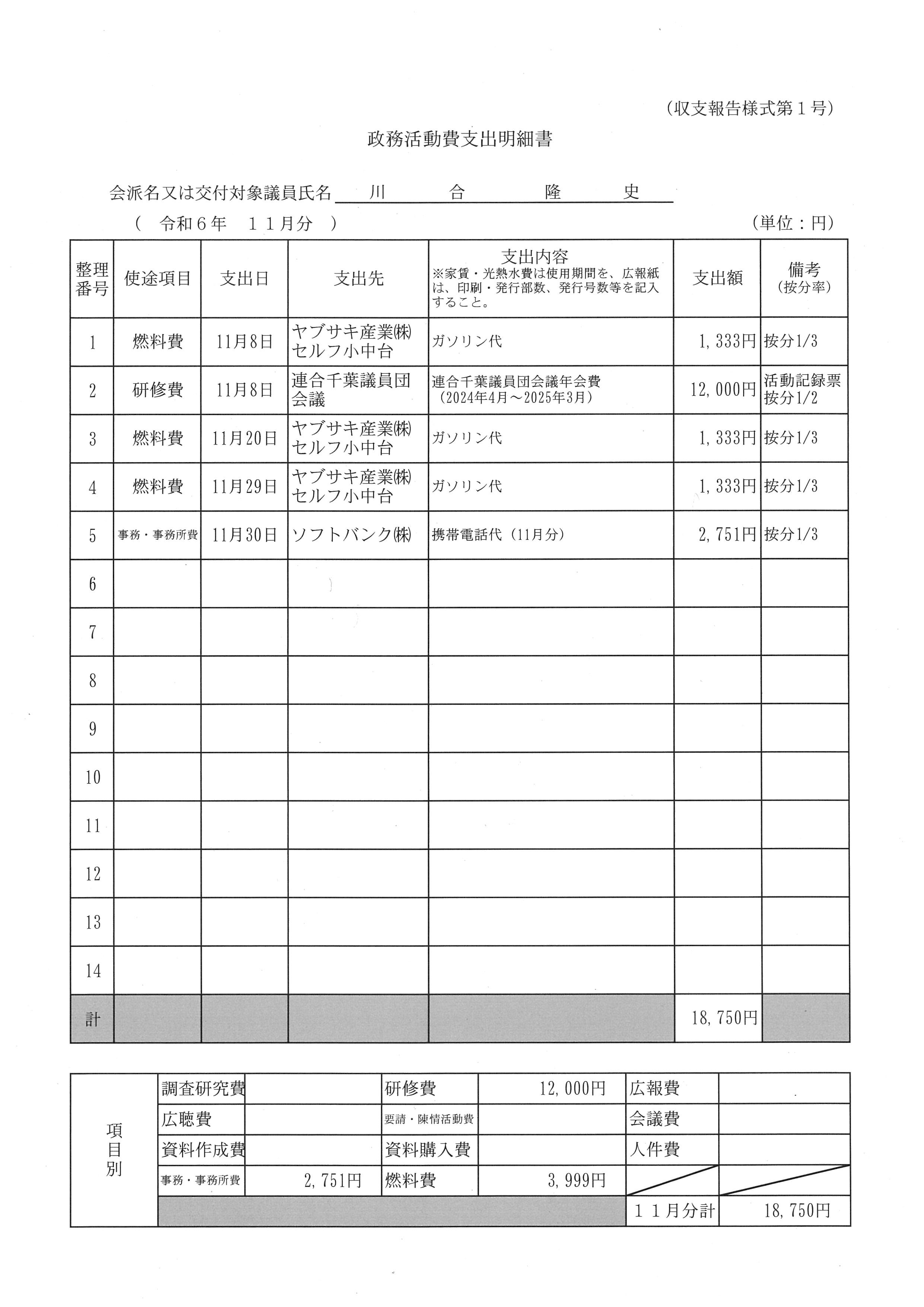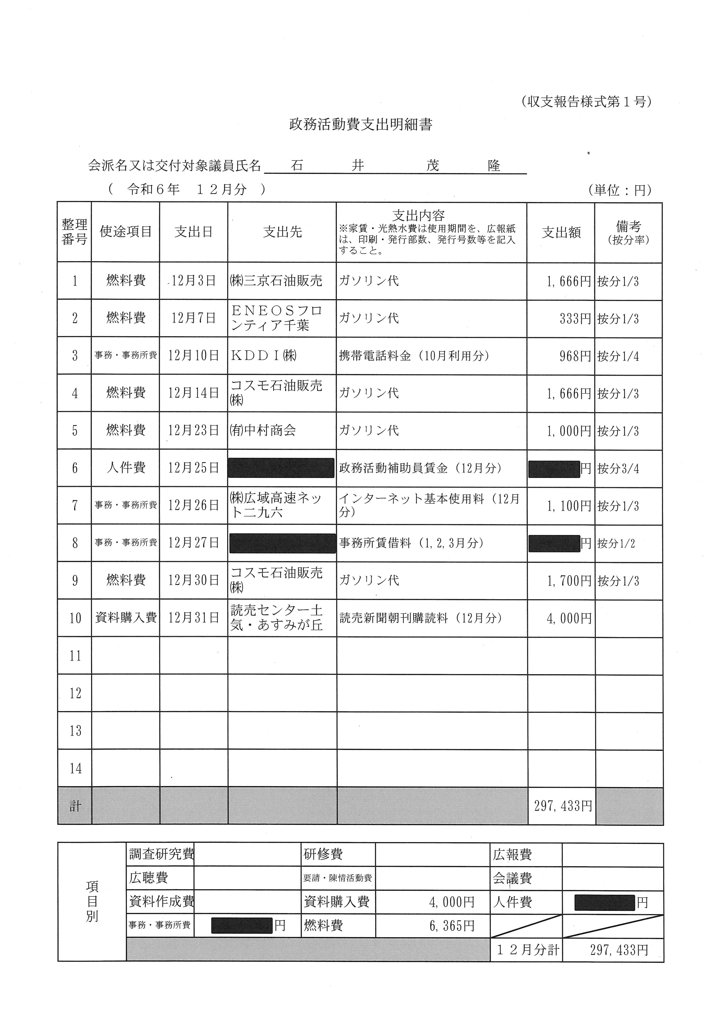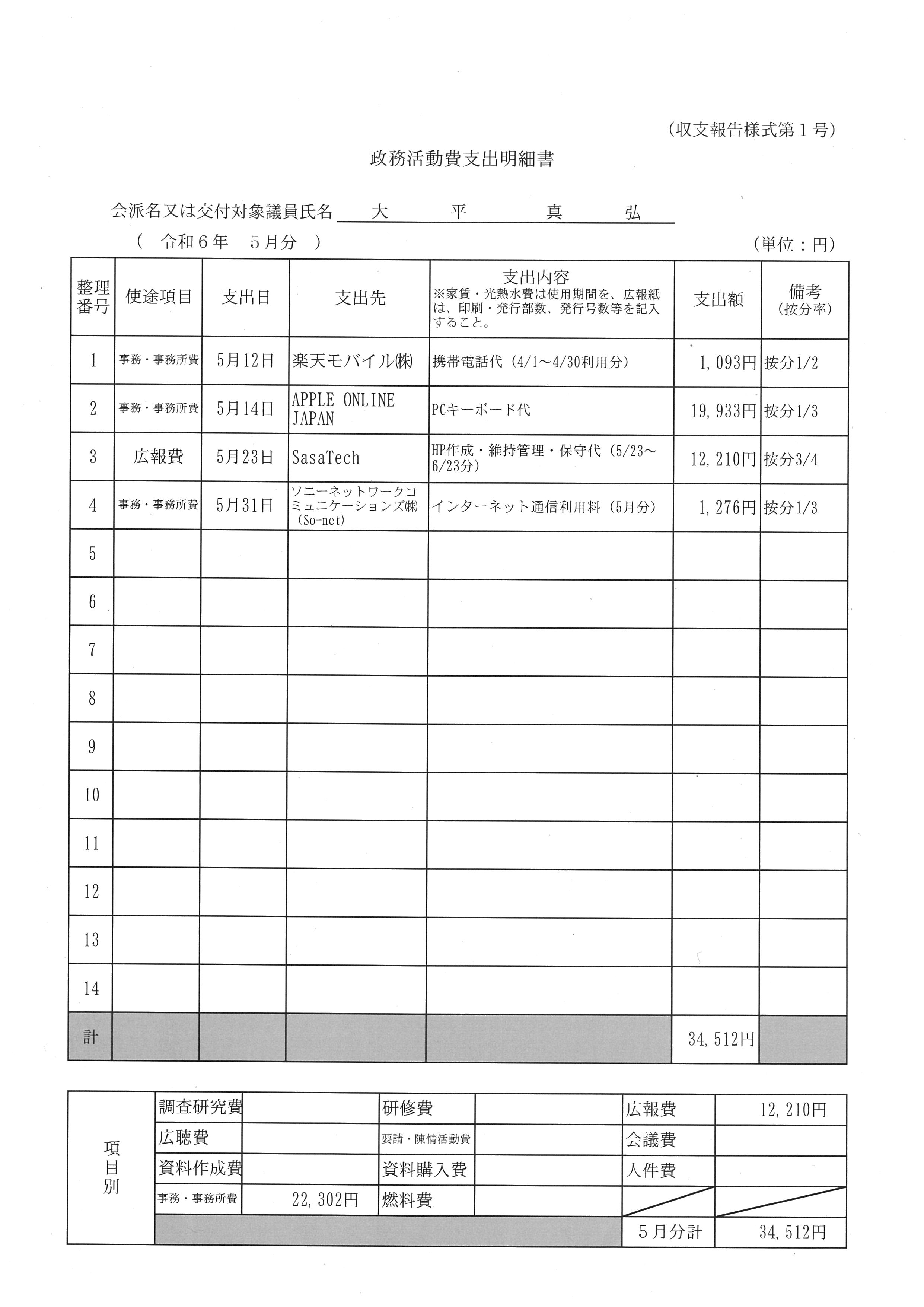 千葉市議会トップページ > 広報・情報公開 > 政務活動費 > 令和6年度交付分(政務活動費収支報告書)