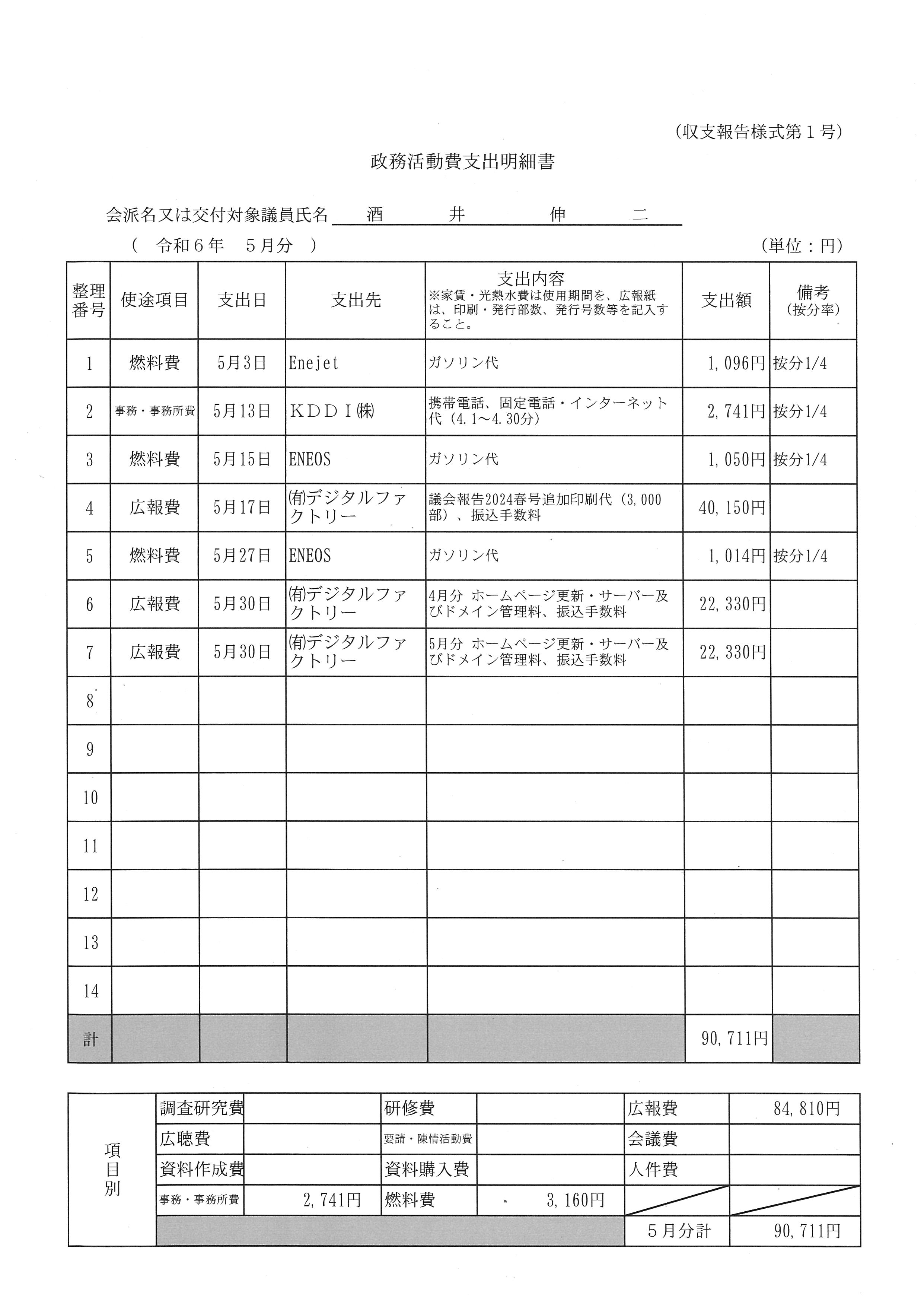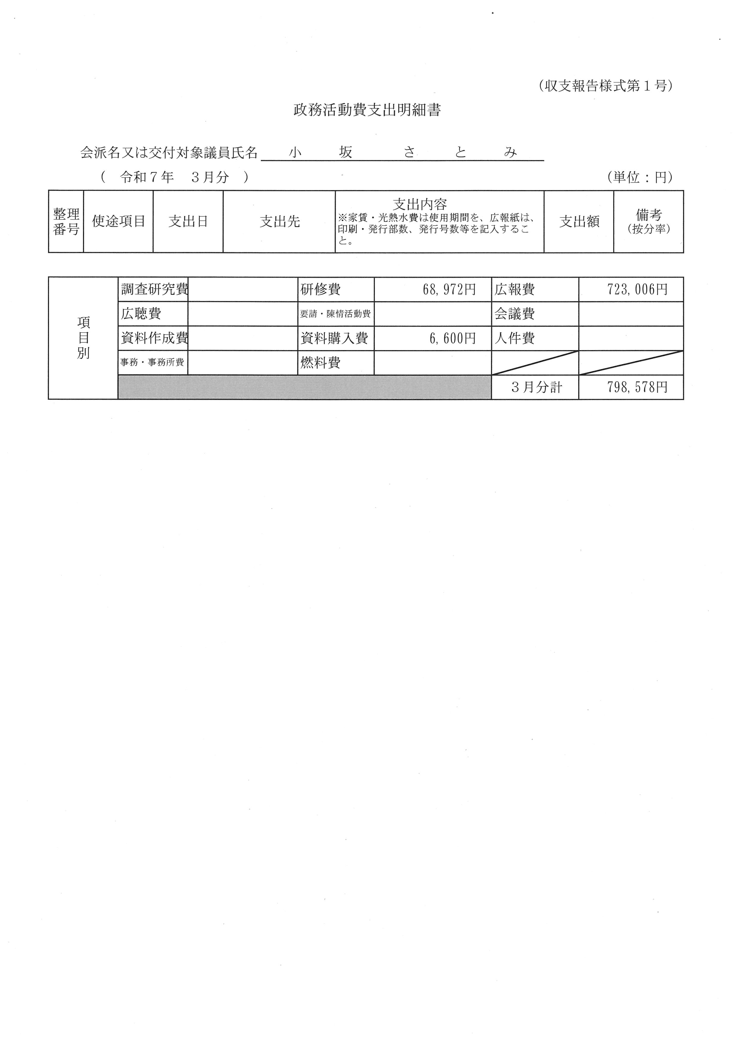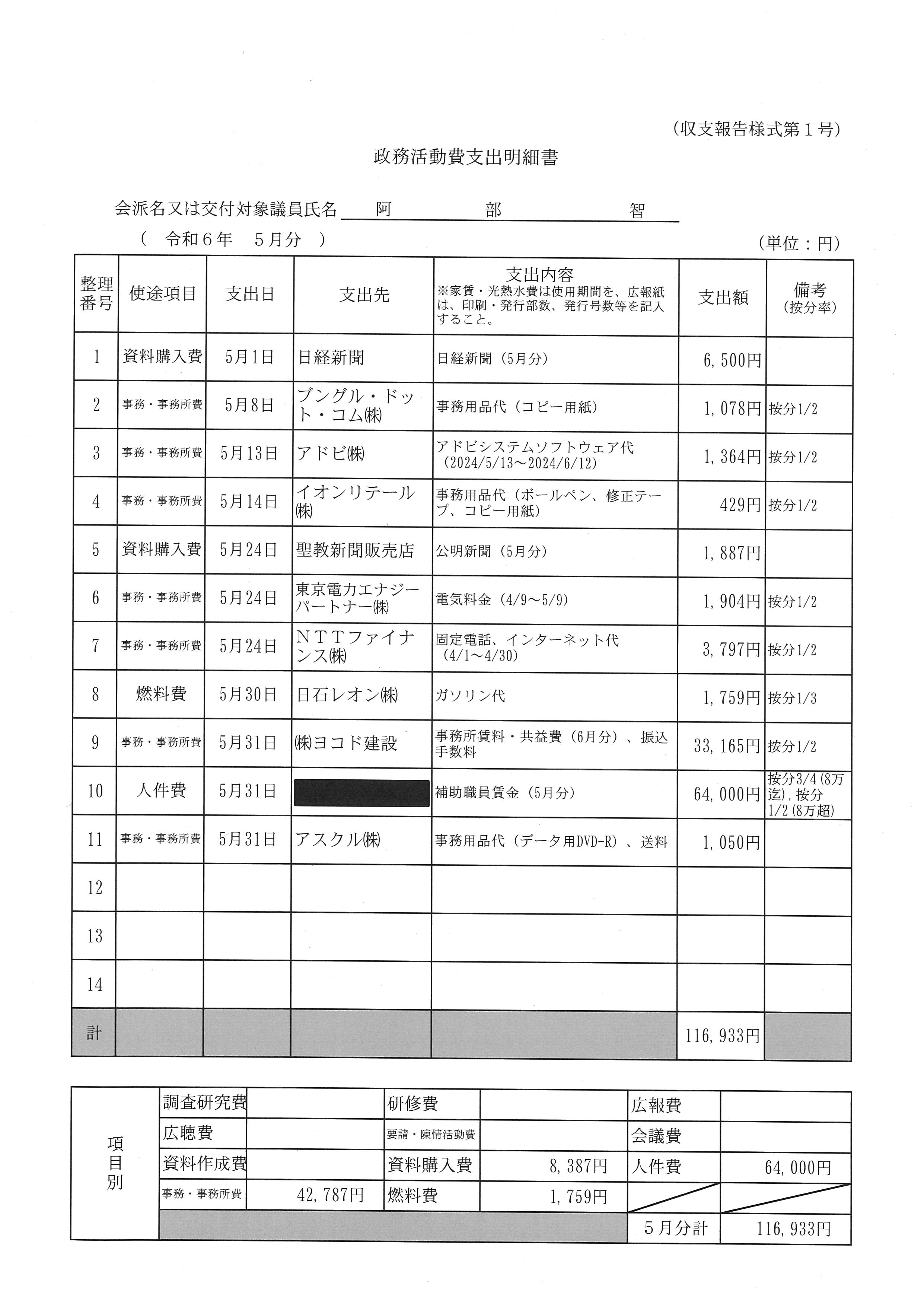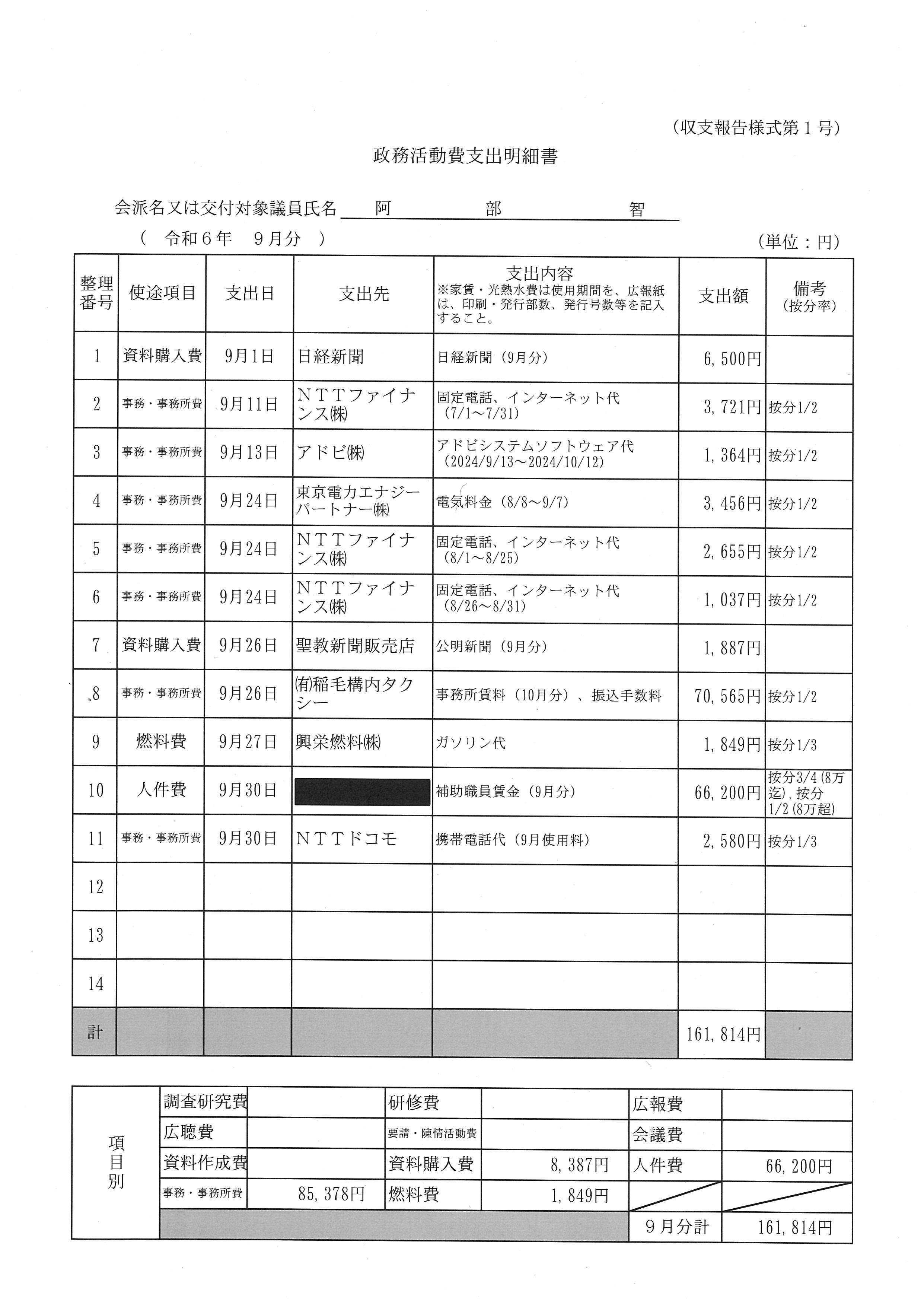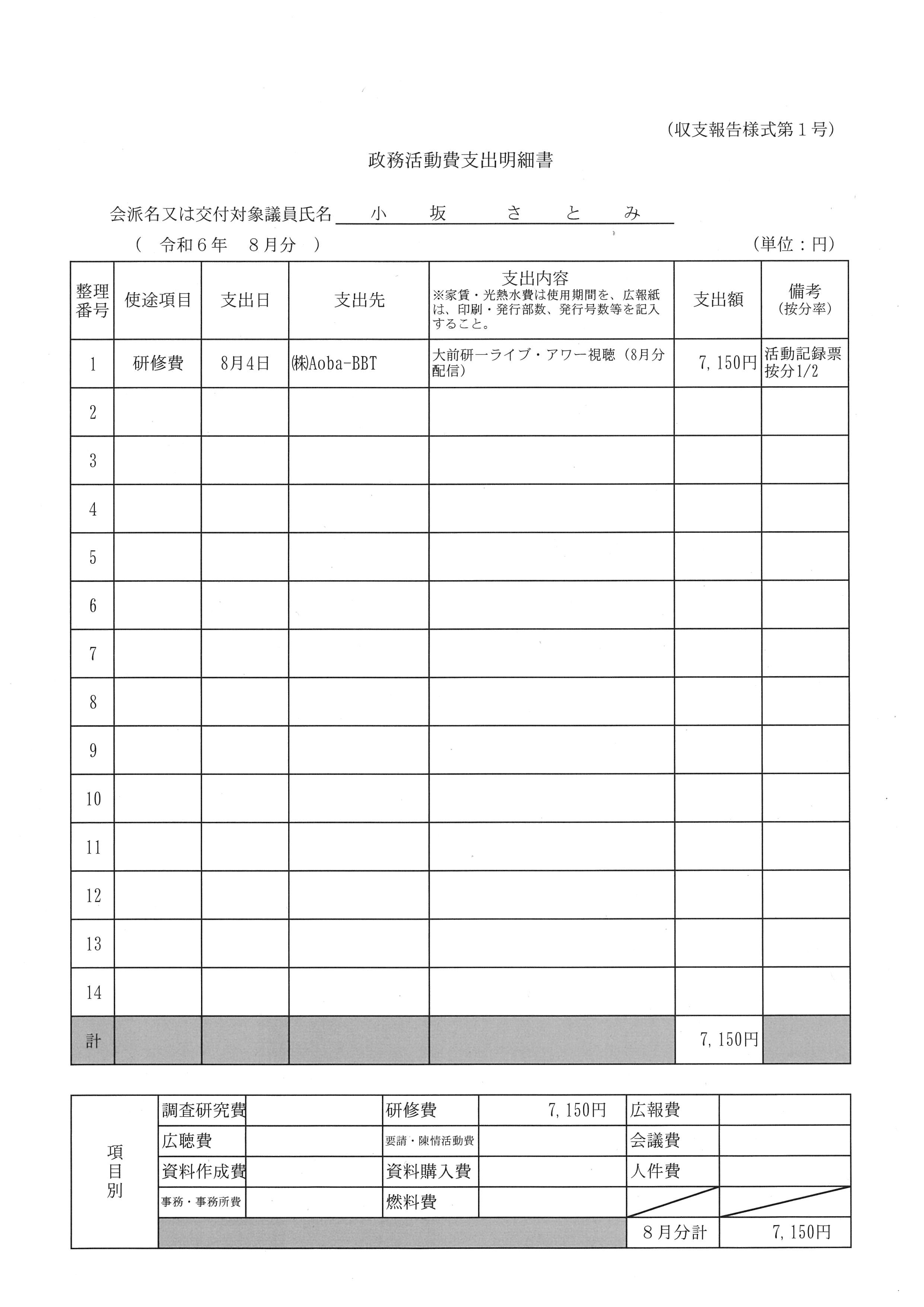千葉市議会トップページ > 広報・情報公開 > 政務活動費 > 令和6年度交付分(政務活動費収支報告書)