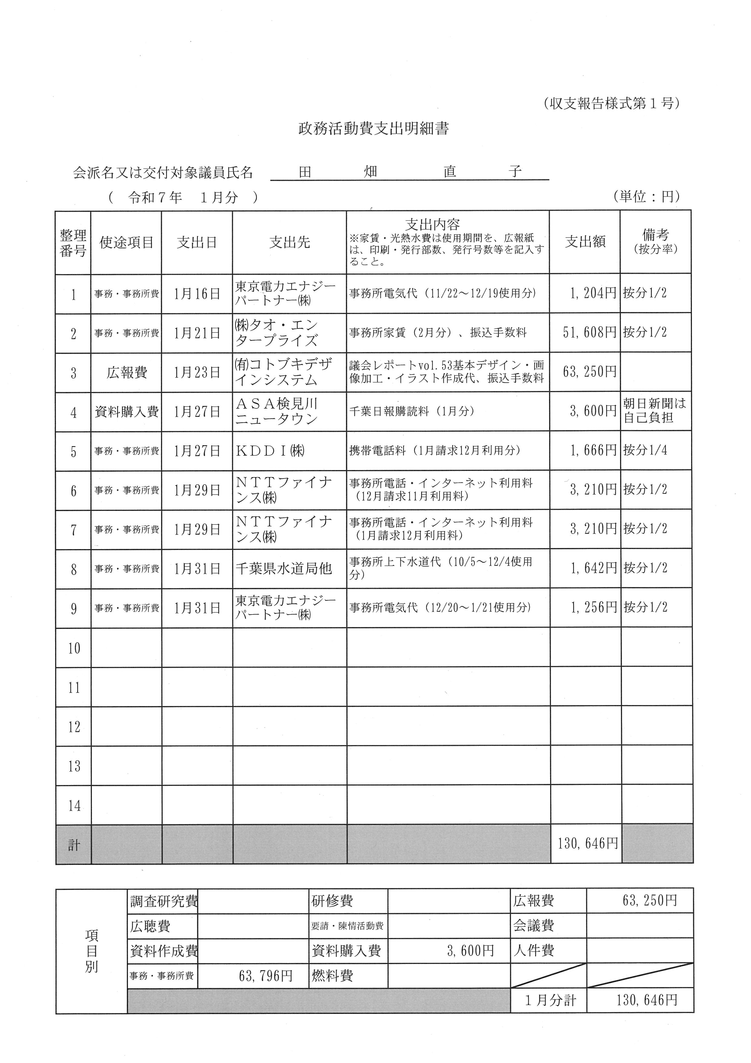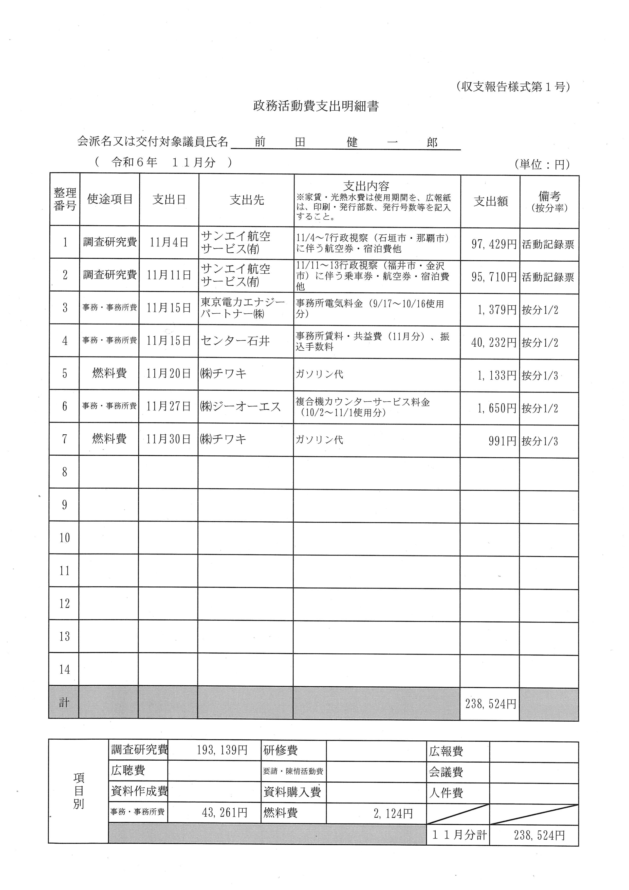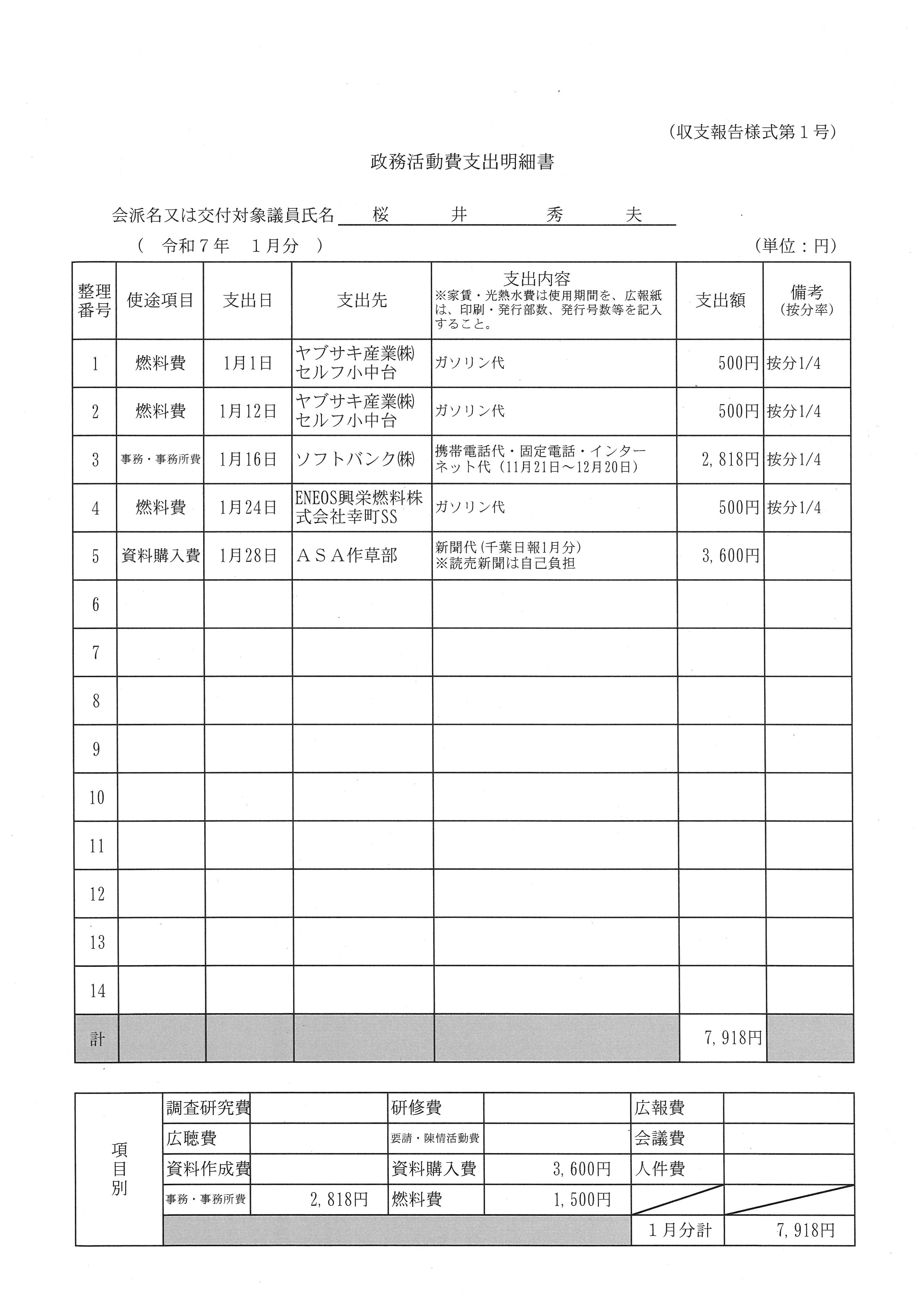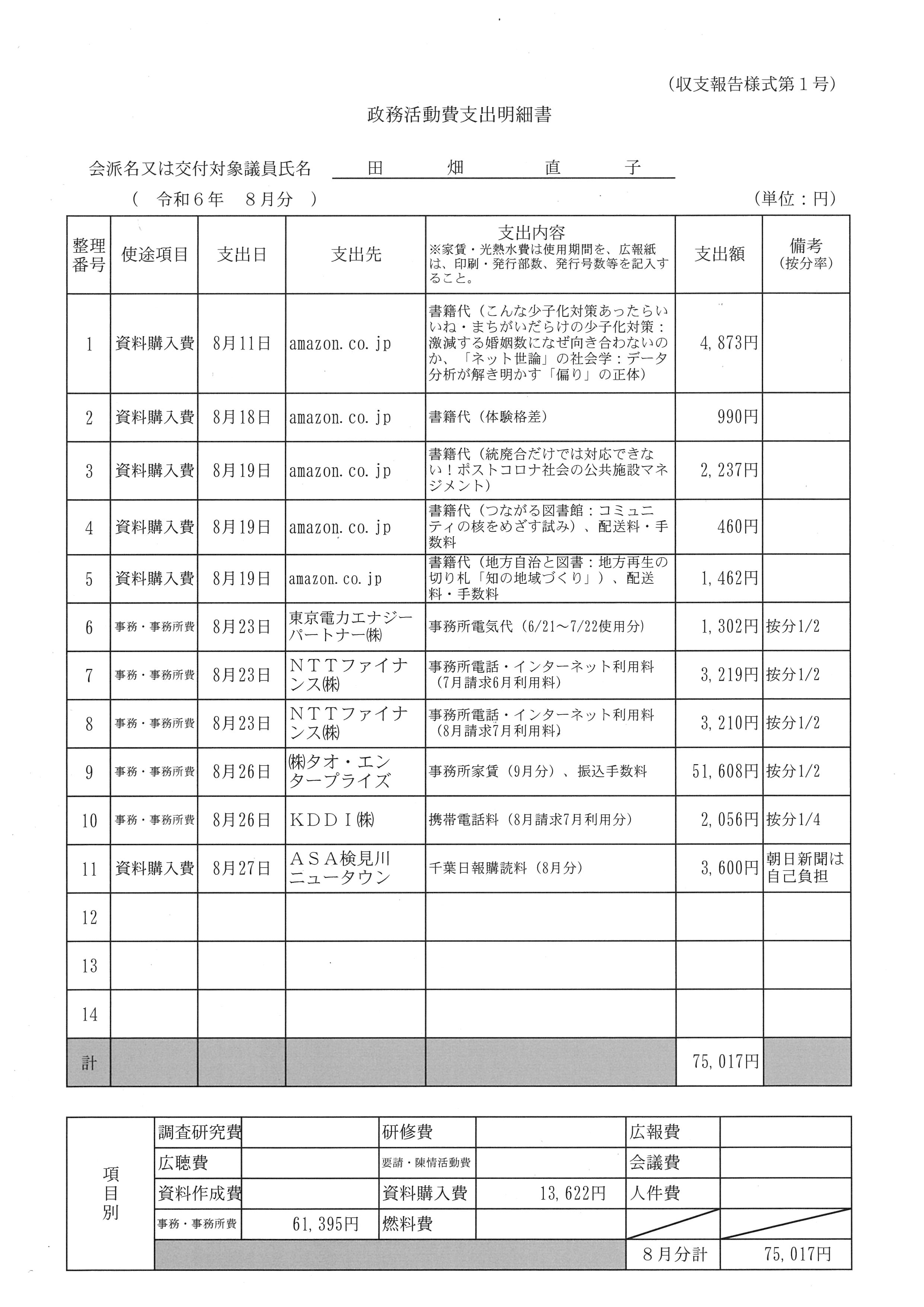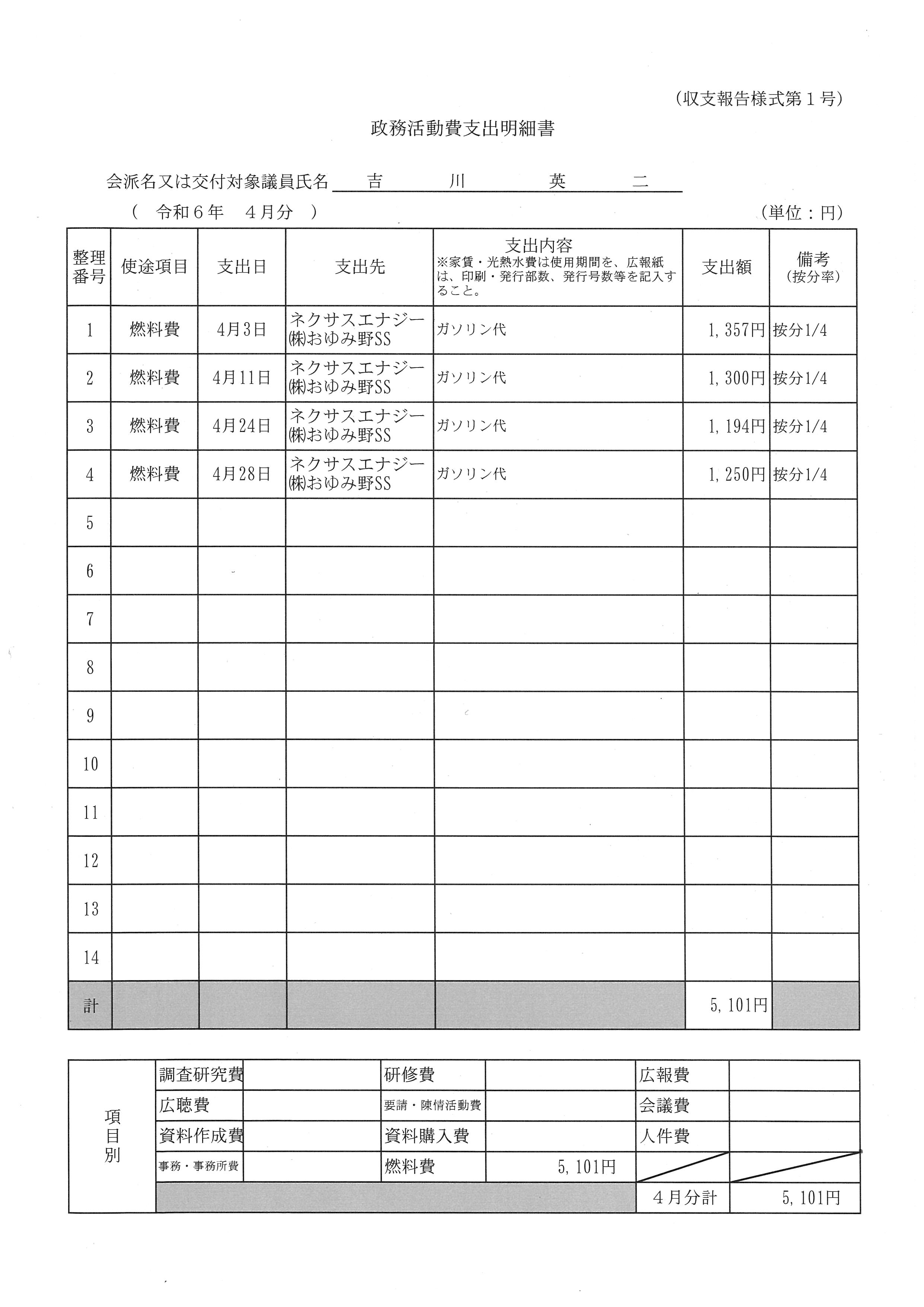 千葉市議会トップページ > 広報・情報公開 > 政務活動費 > 令和6年度交付分(政務活動費収支報告書)