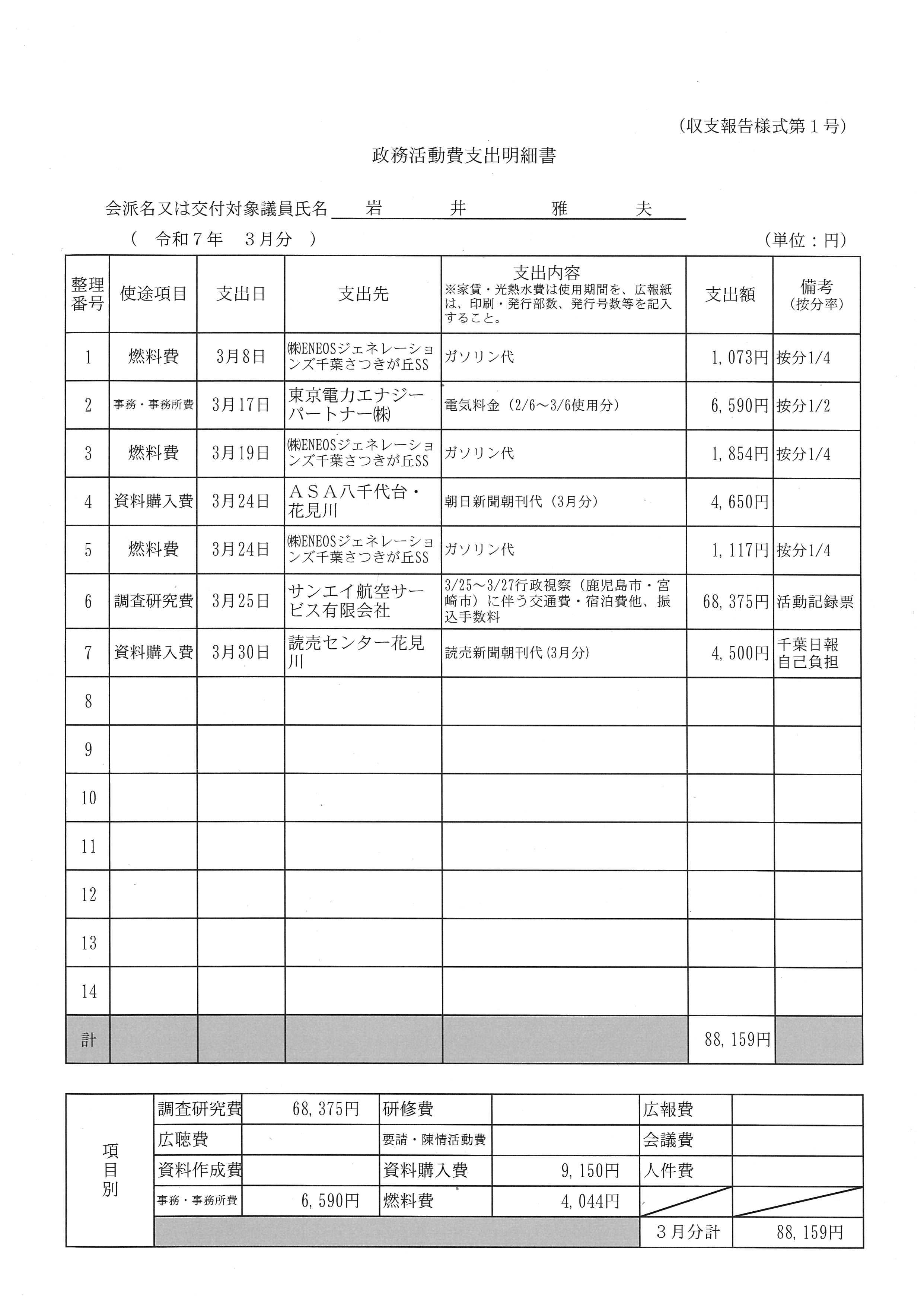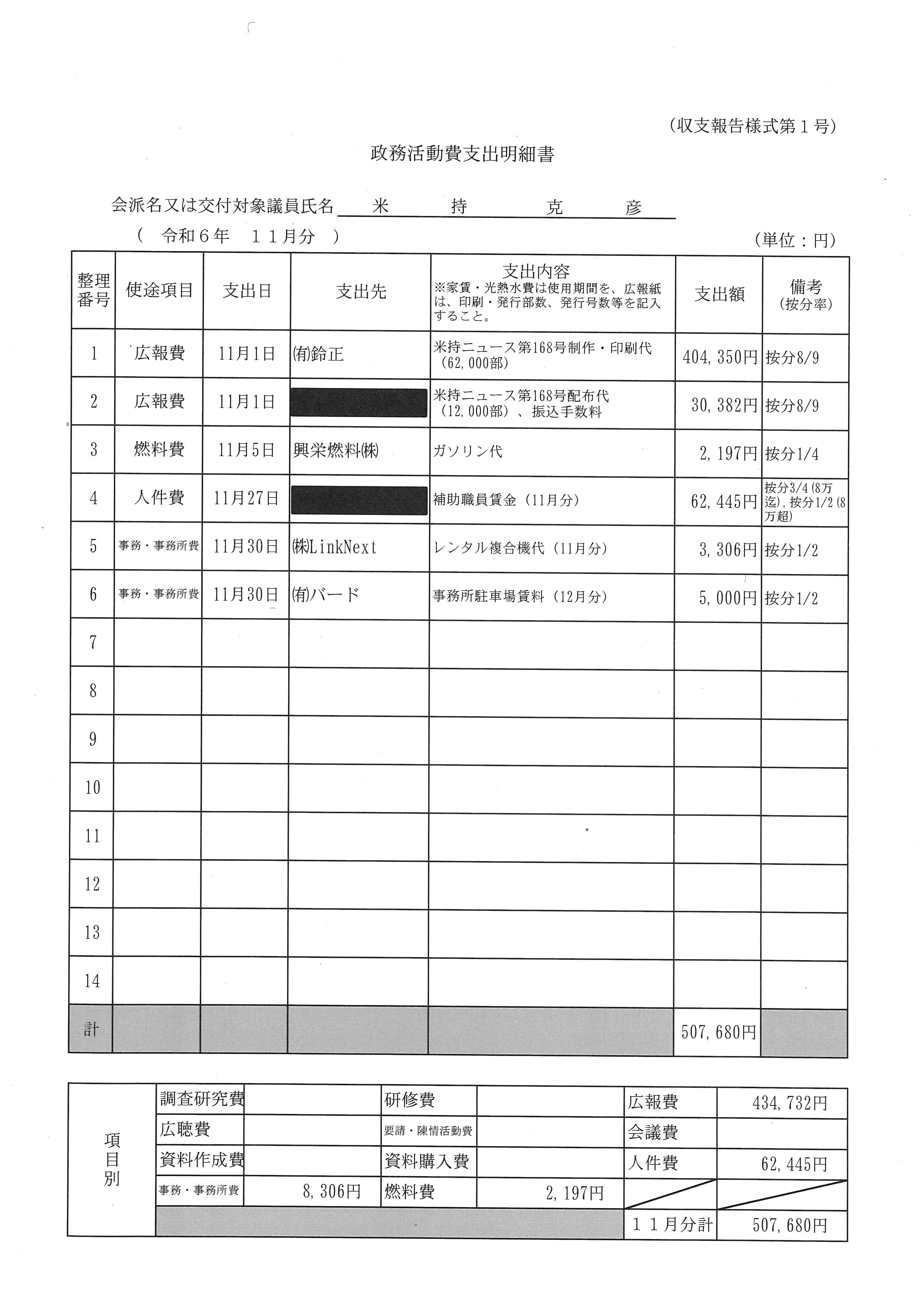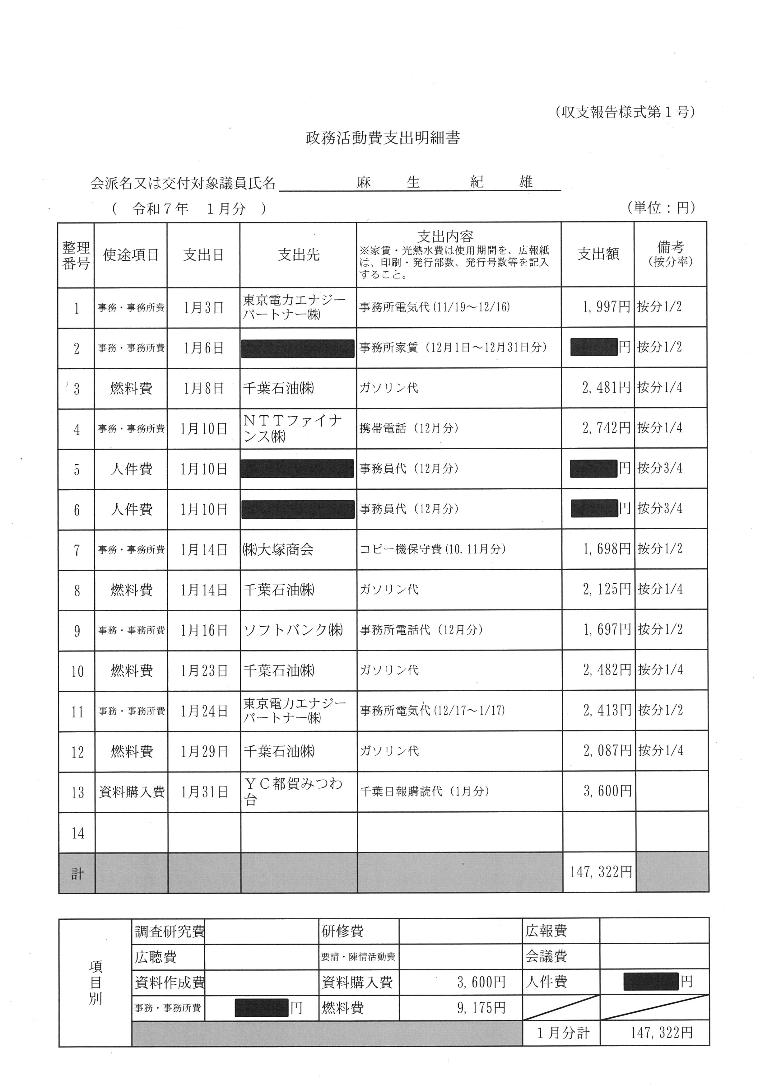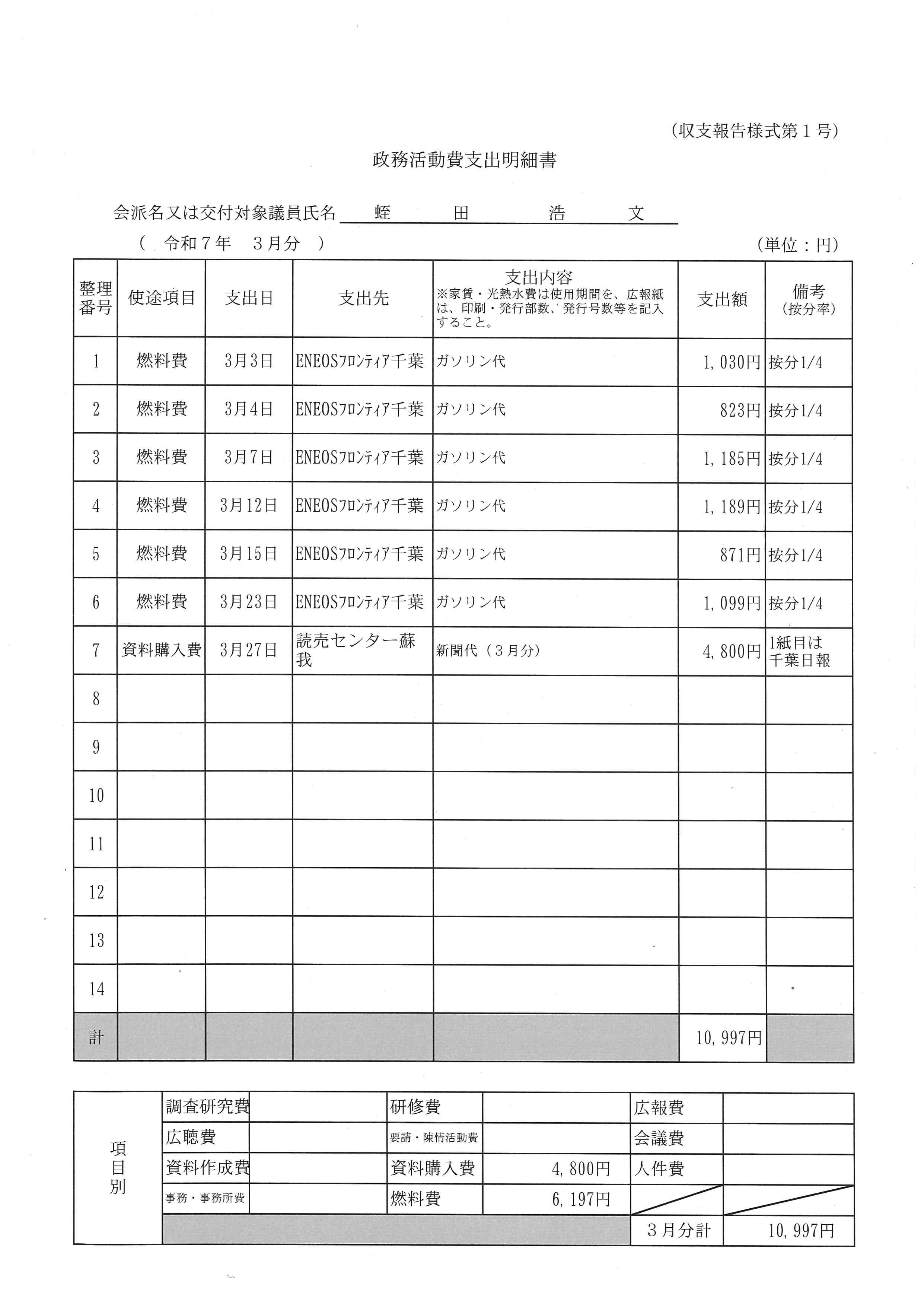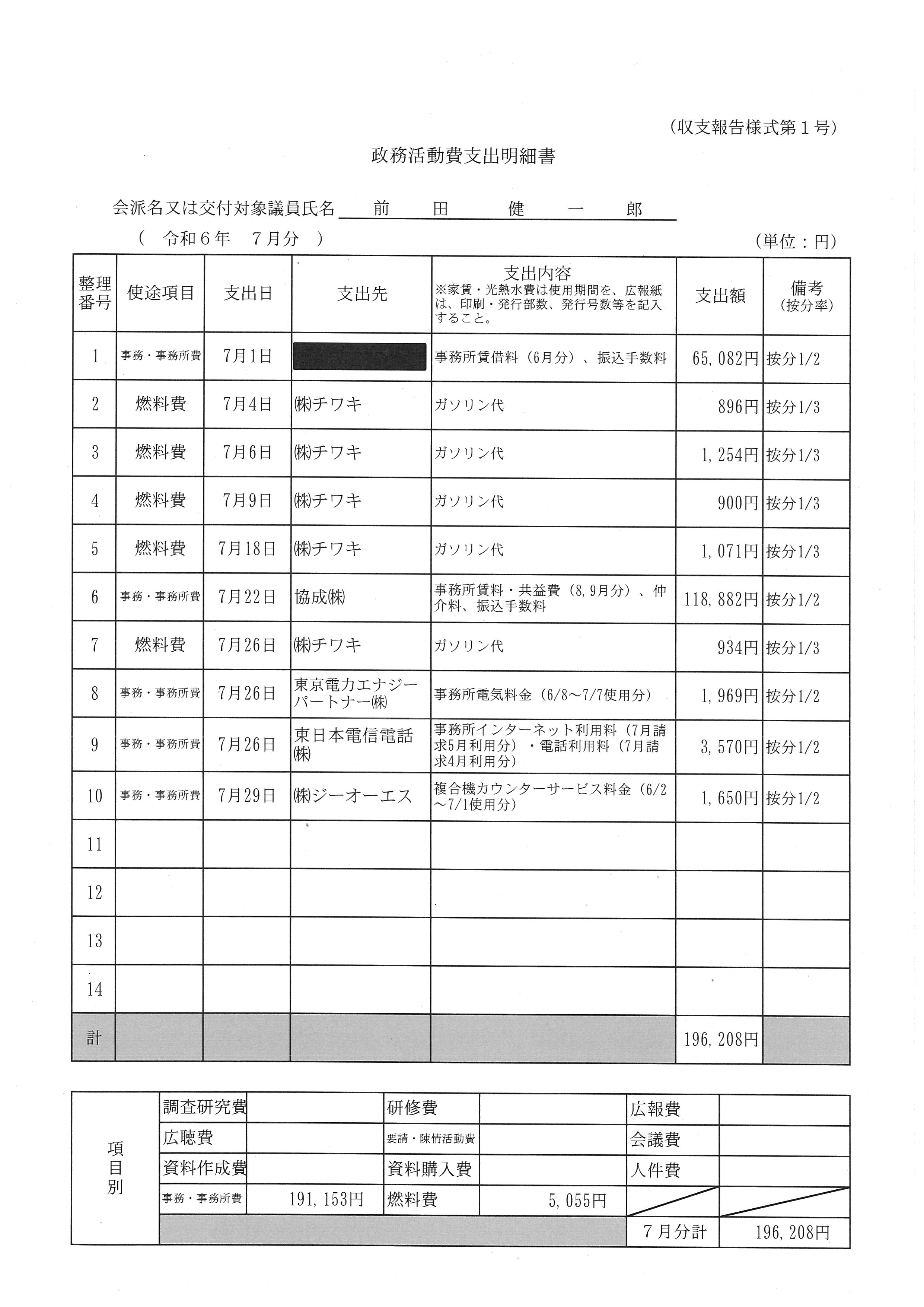 千葉市議会トップページ > 広報・情報公開 > 政務活動費 > 令和6年度交付分(政務活動費収支報告書)