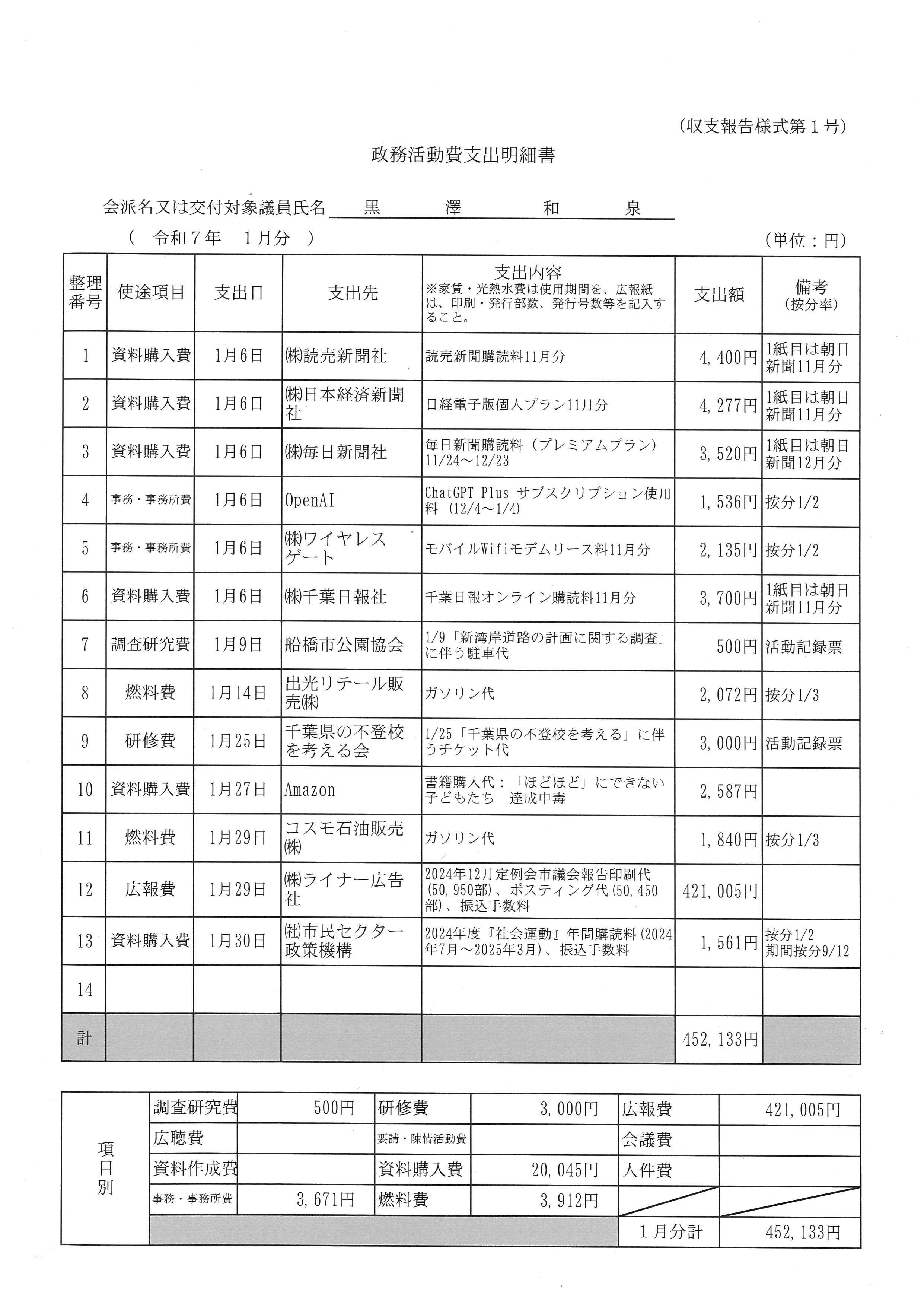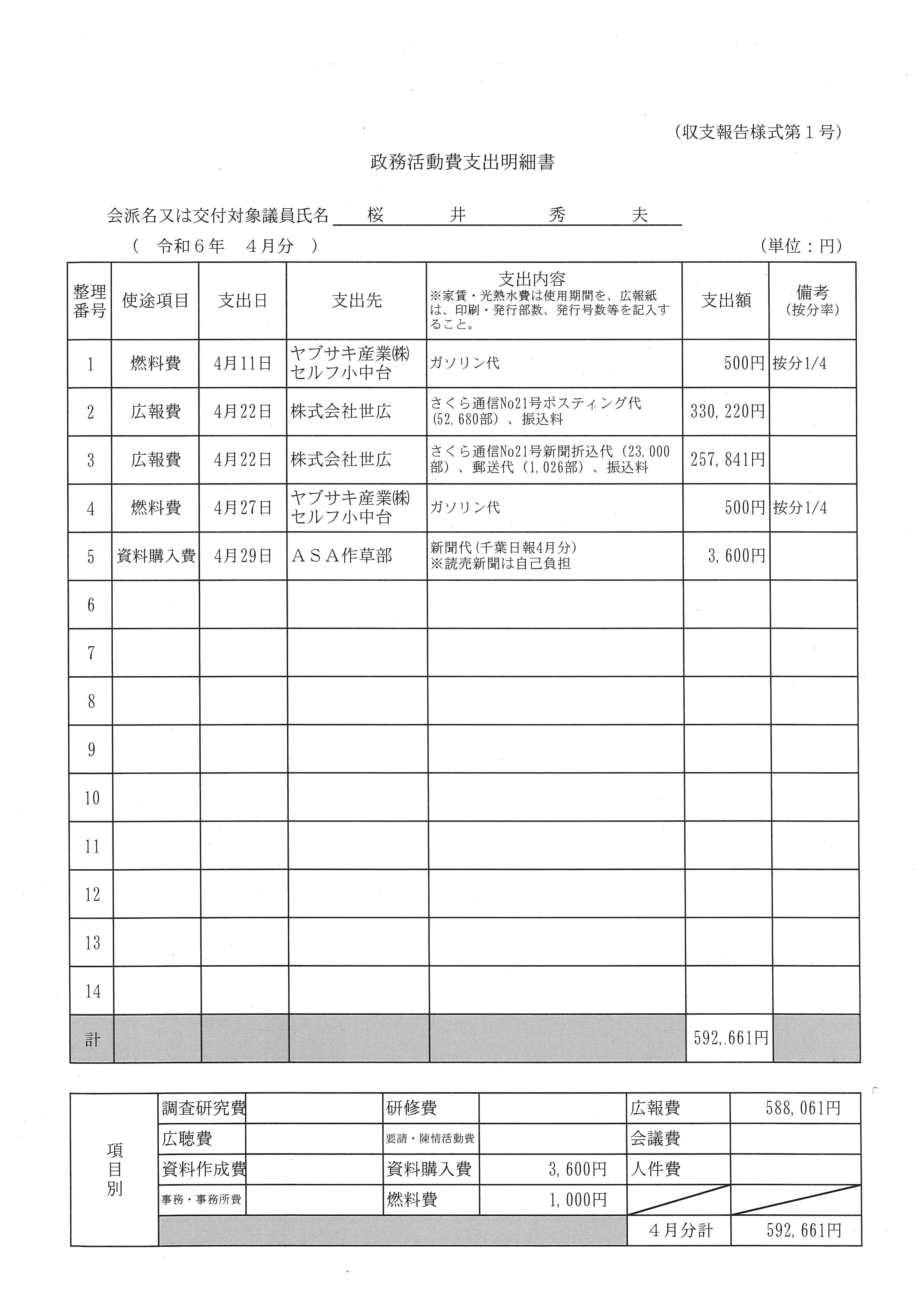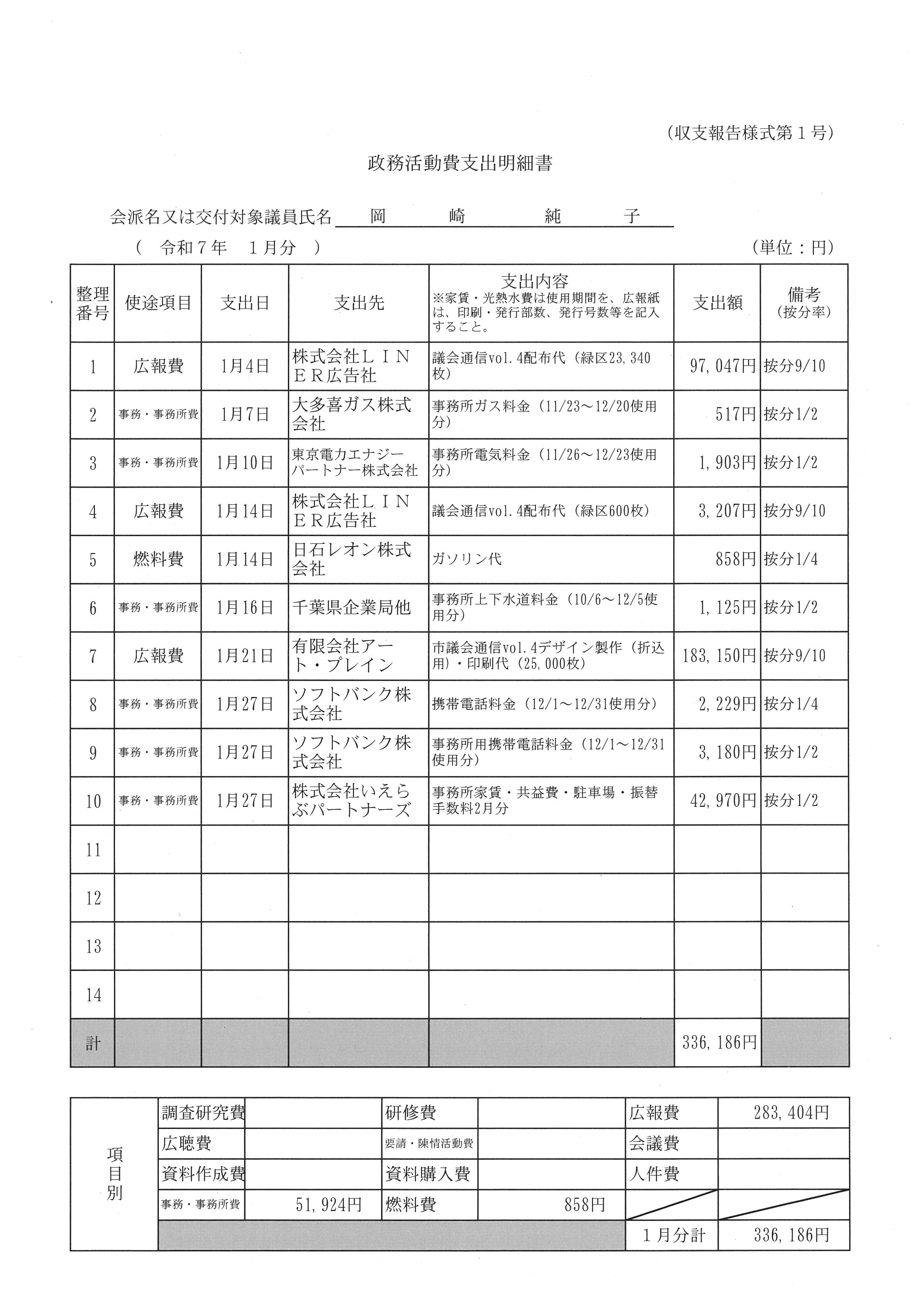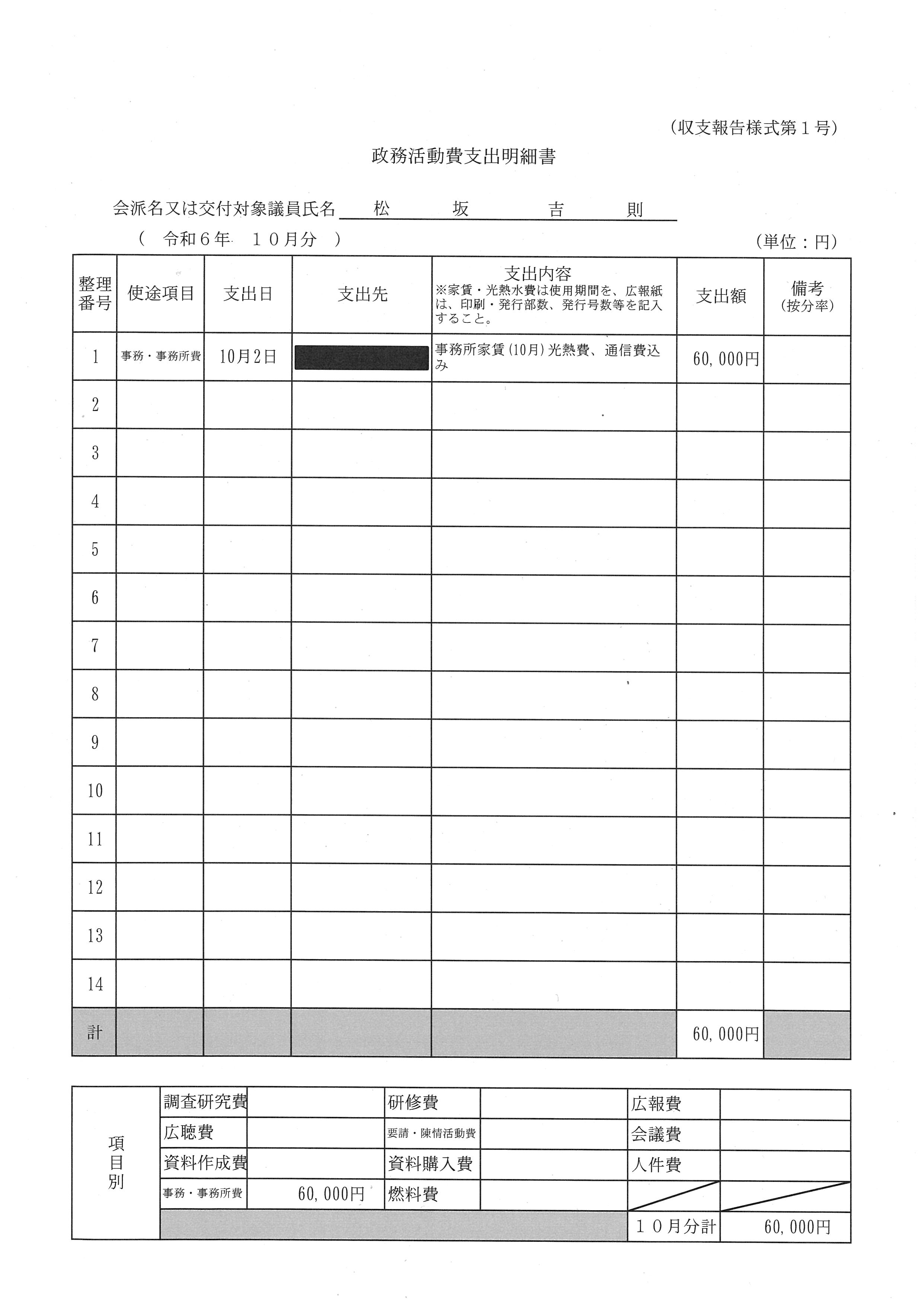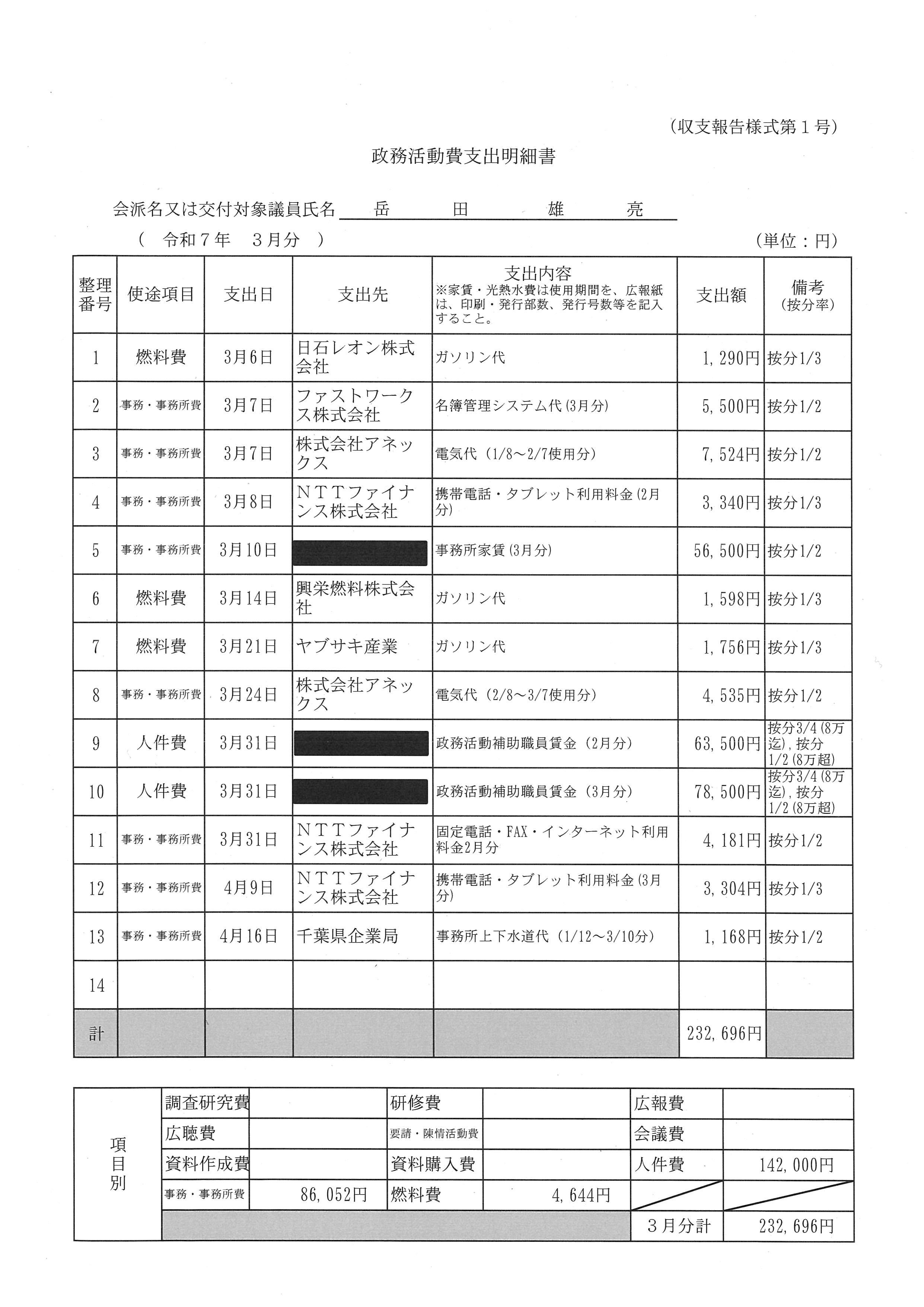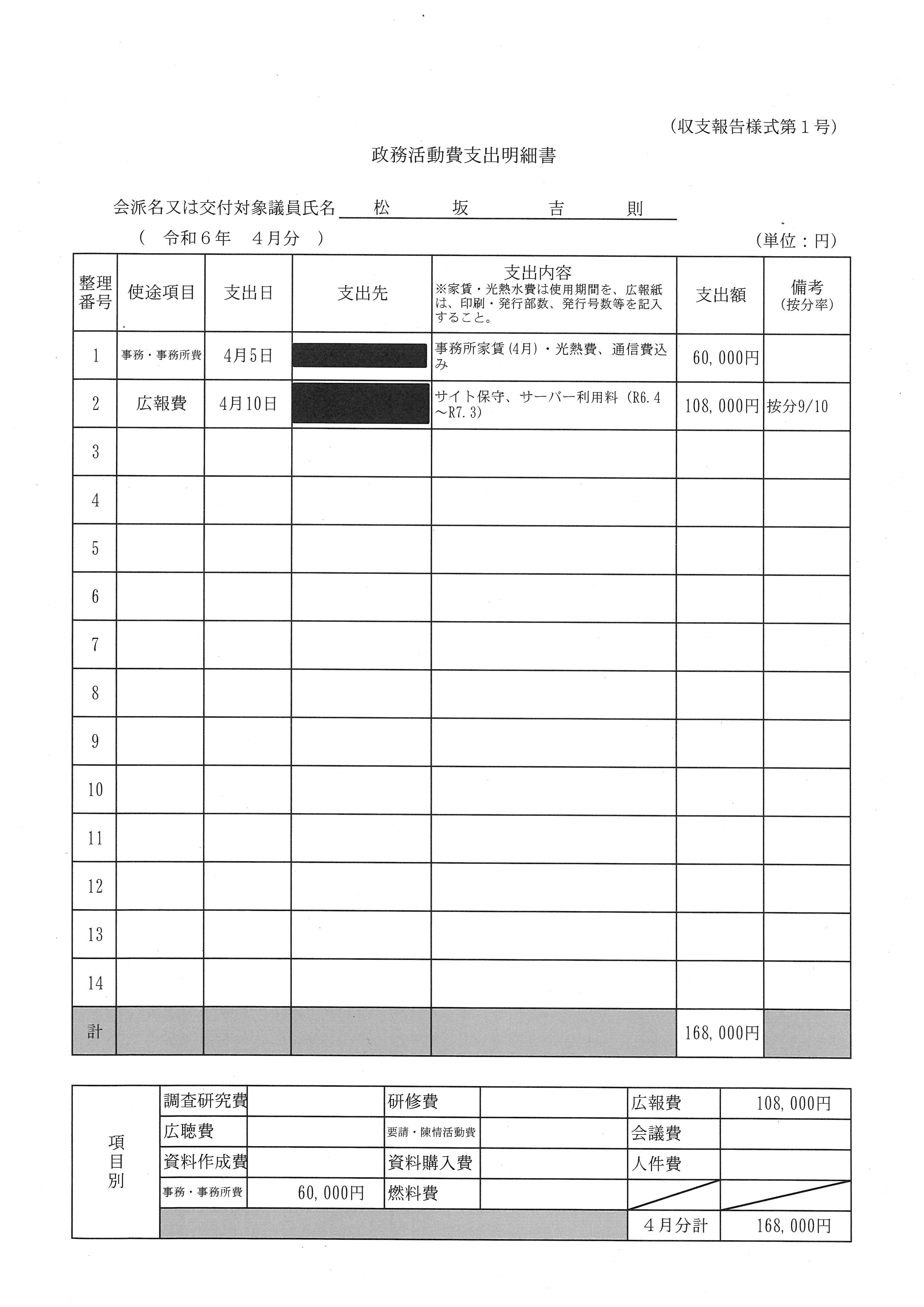 千葉市議会トップページ > 広報・情報公開 > 政務活動費 > 令和6年度交付分(政務活動費収支報告書)