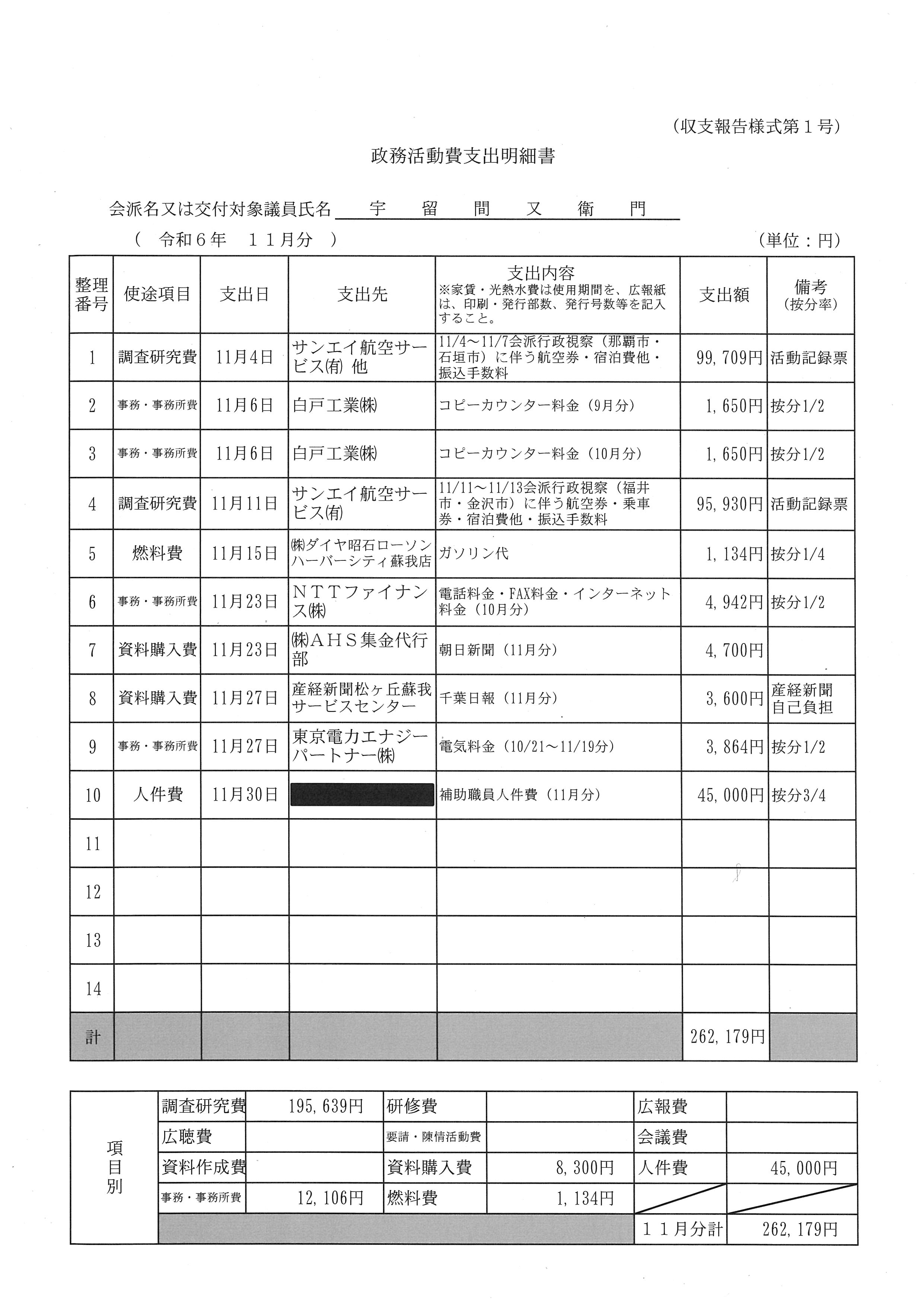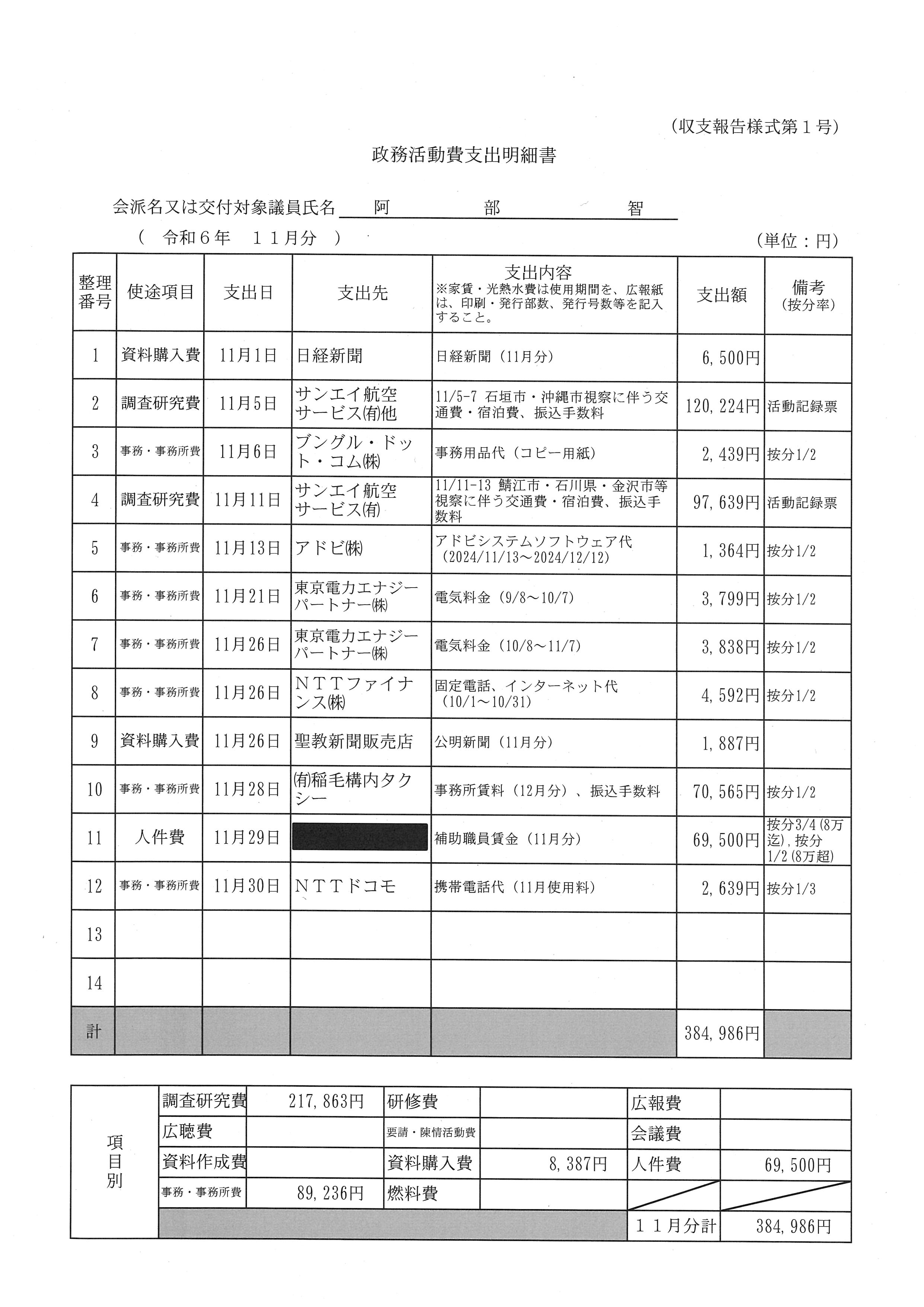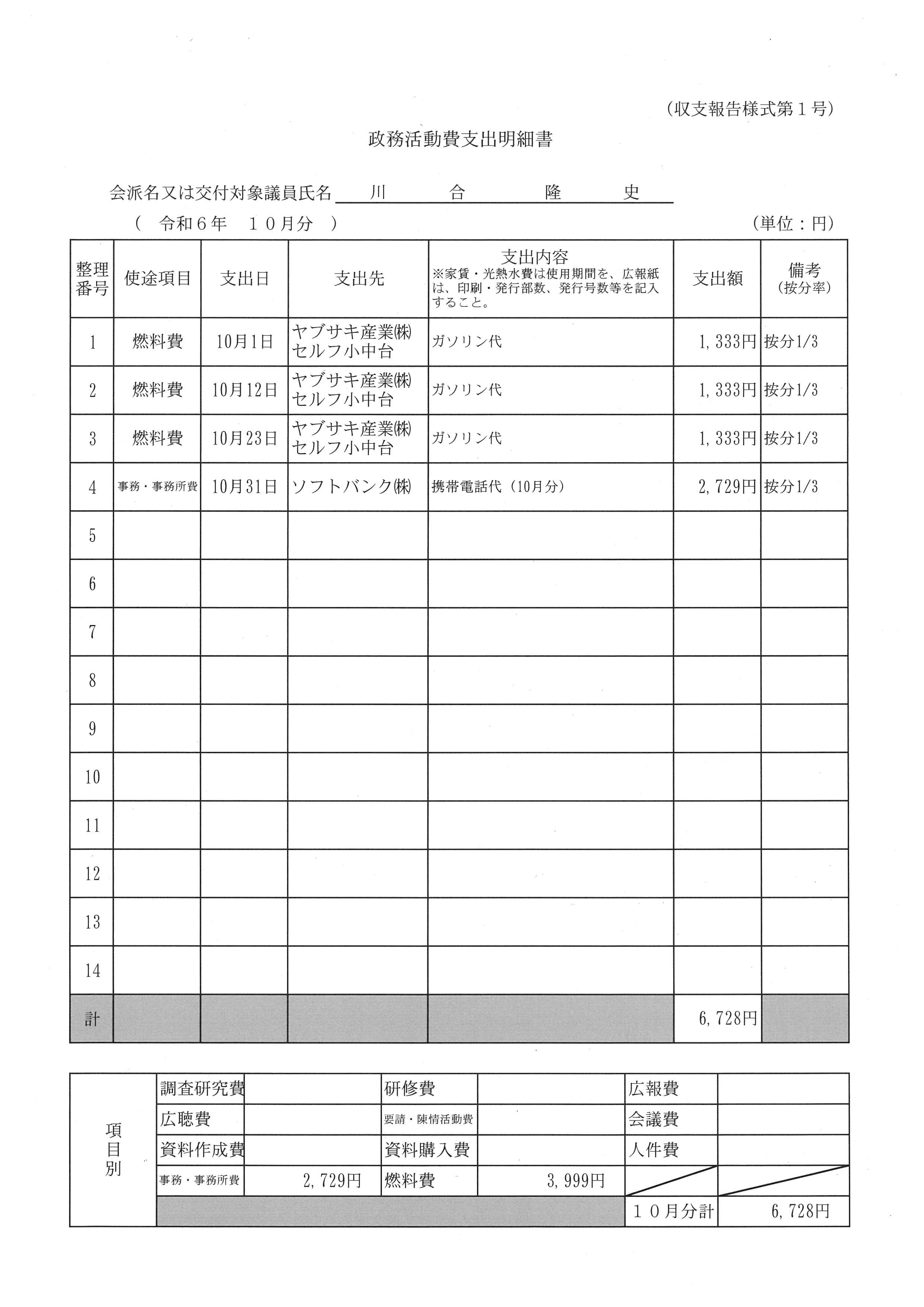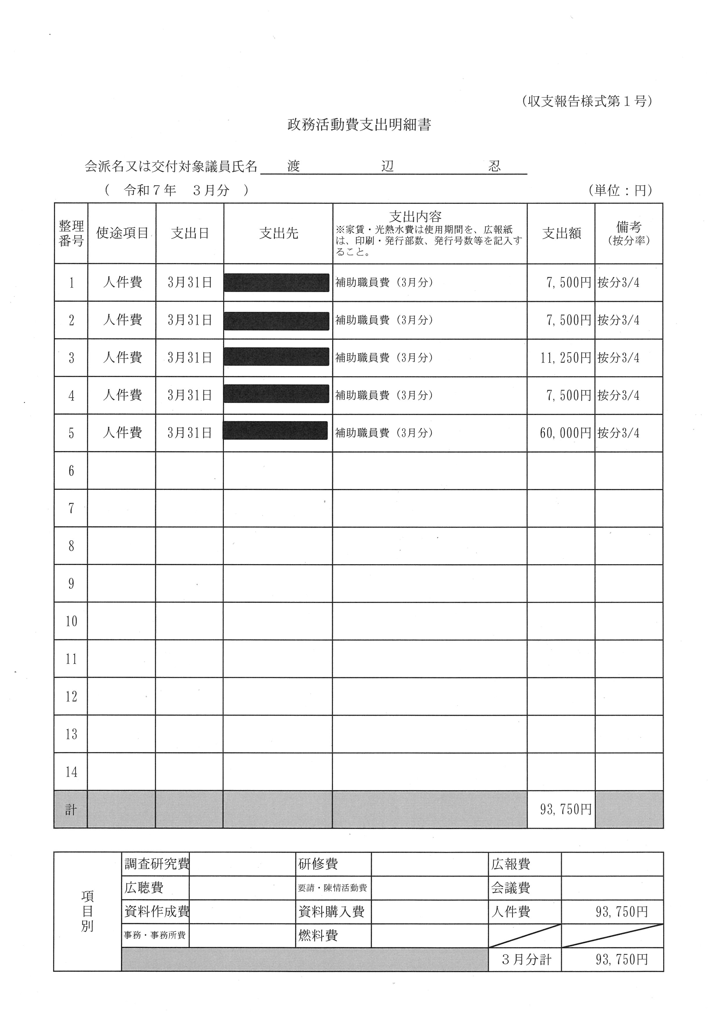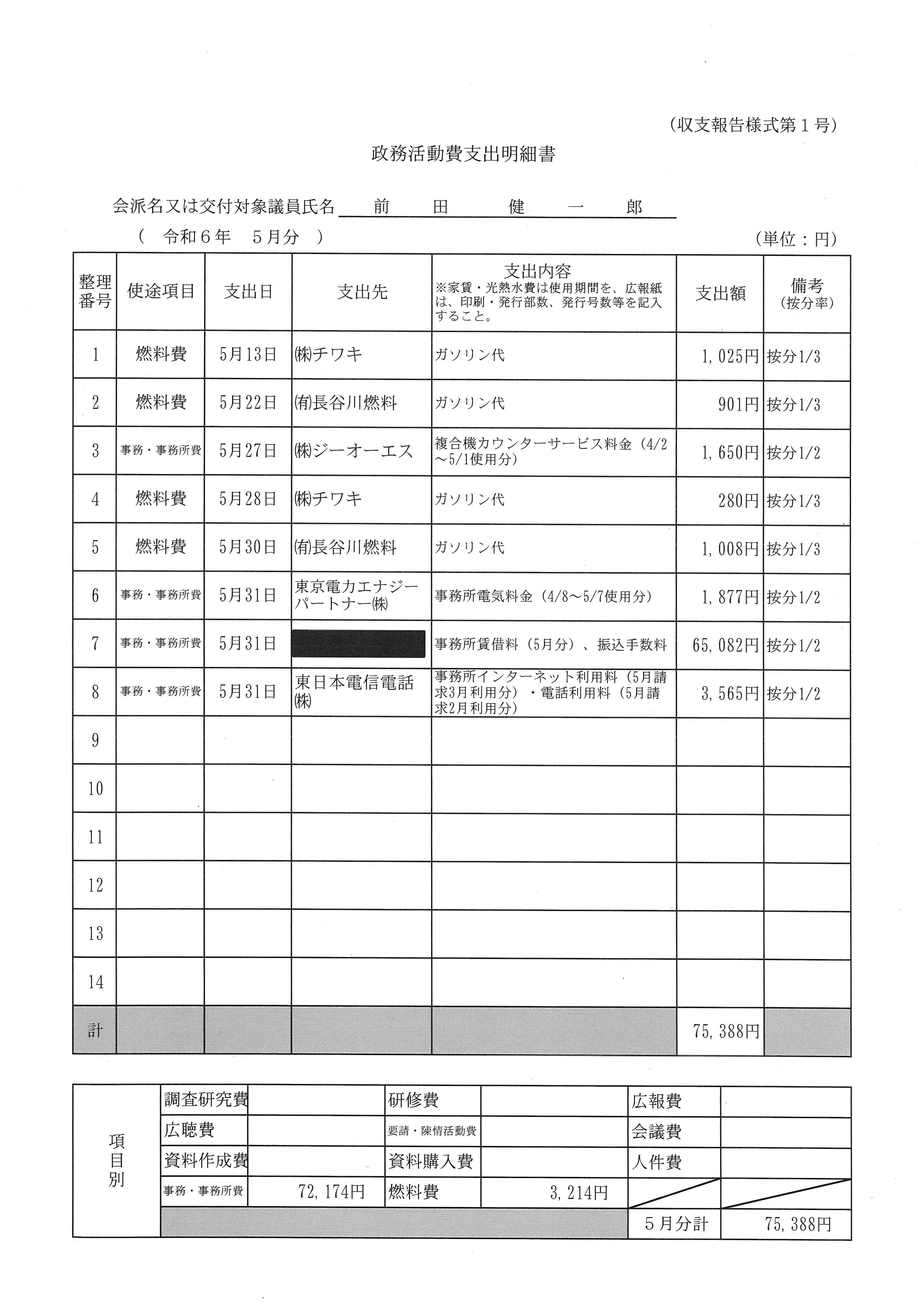 千葉市議会トップページ > 広報・情報公開 > 政務活動費 > 令和6年度交付分(政務活動費収支報告書)