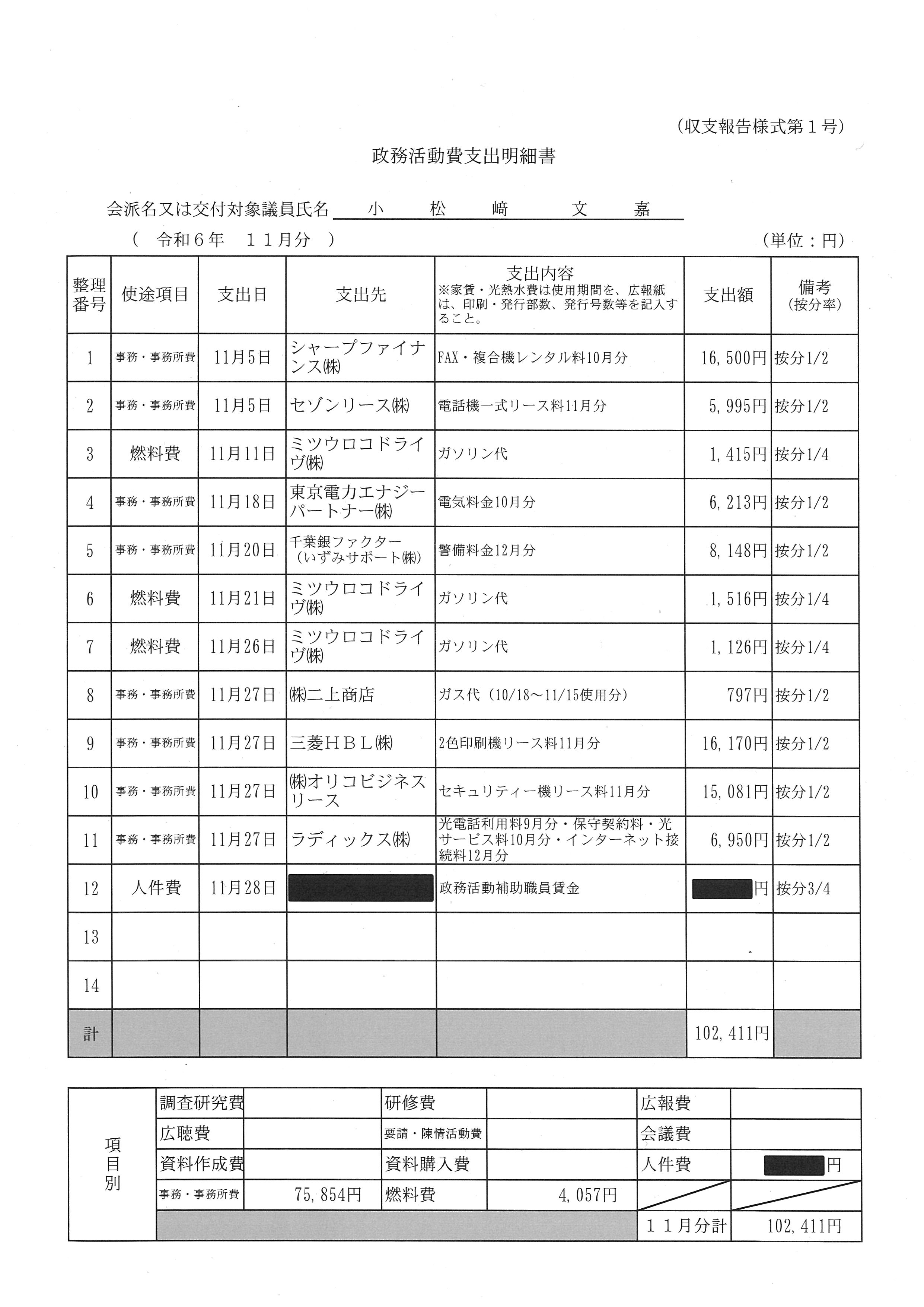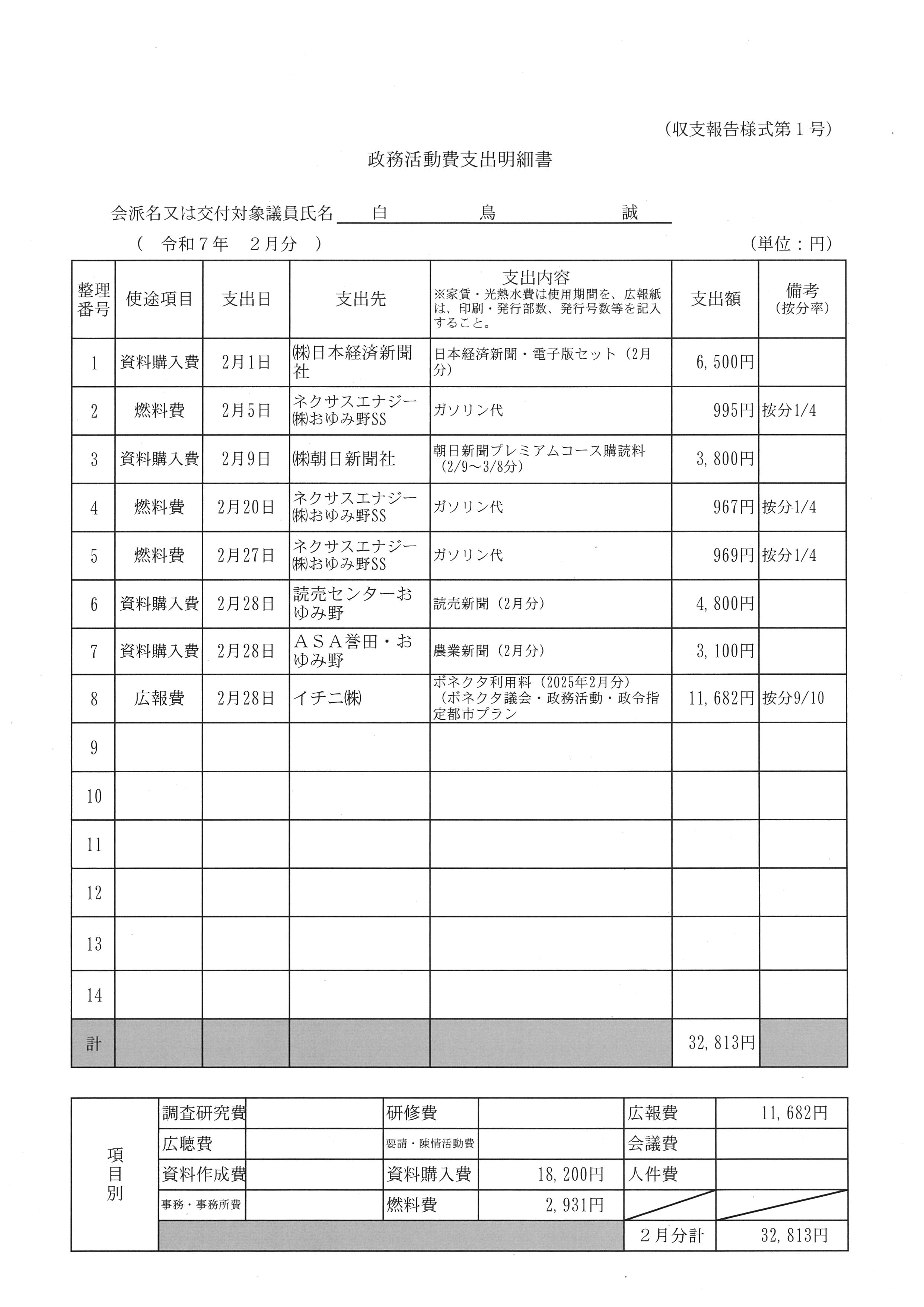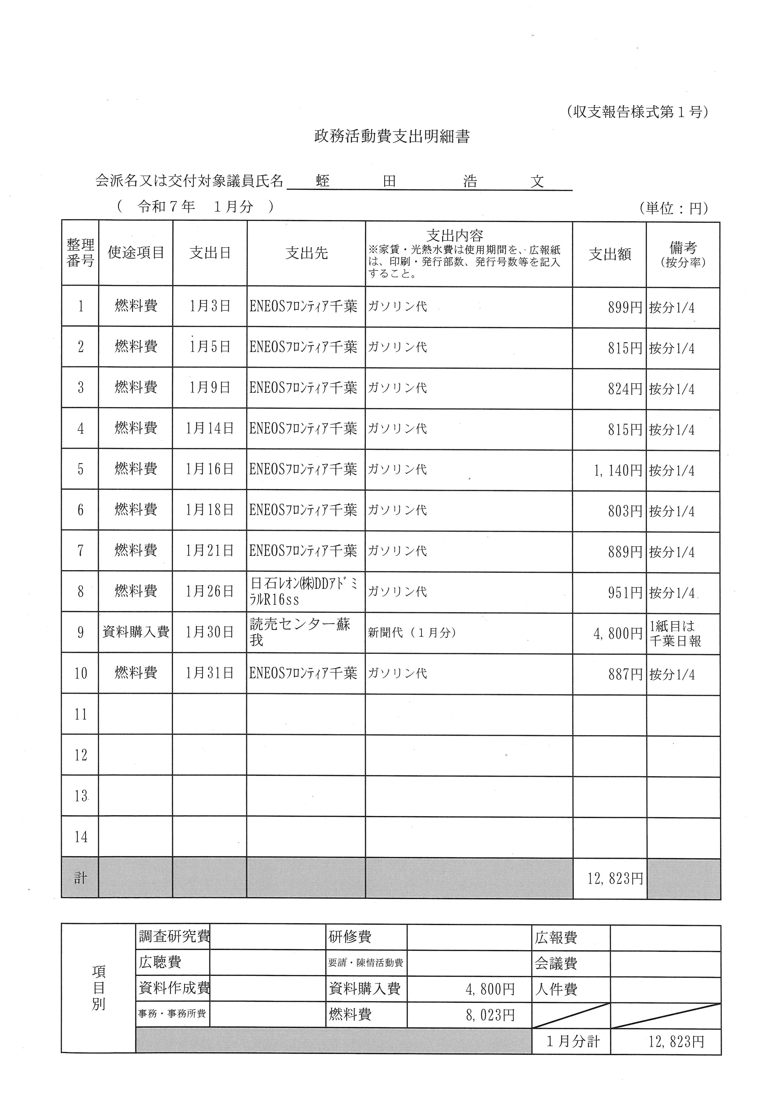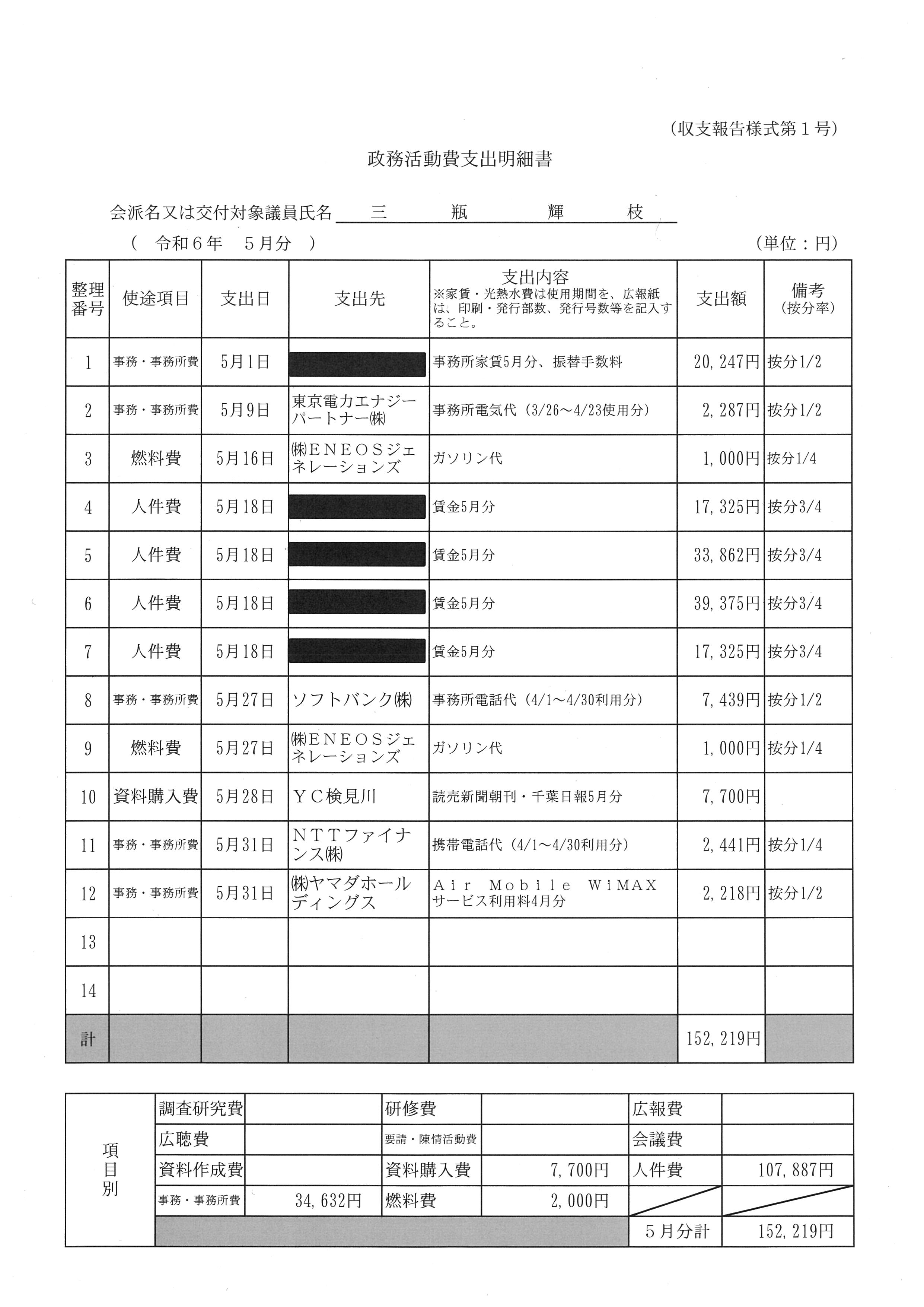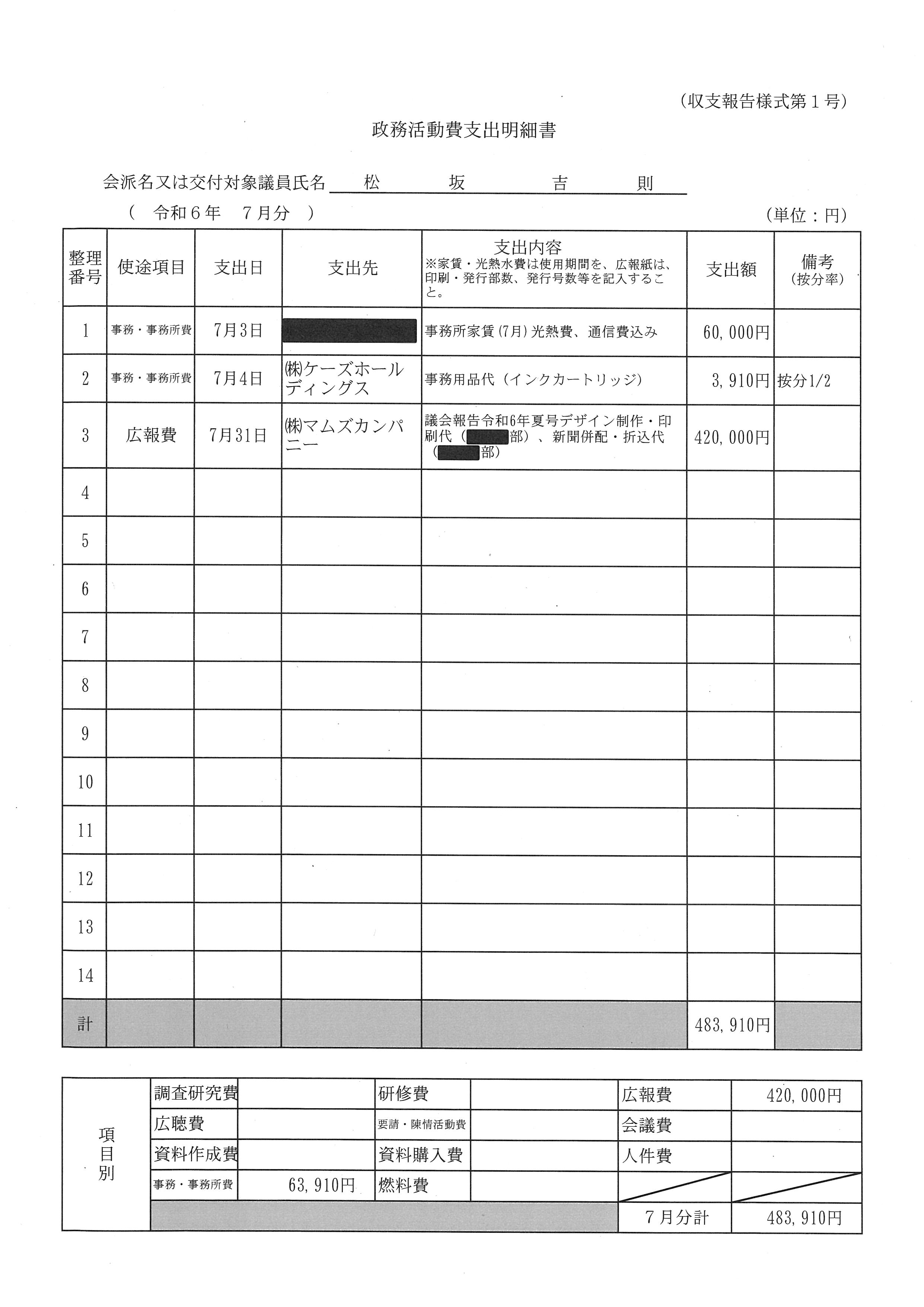 千葉市議会トップページ > 広報・情報公開 > 政務活動費 > 令和6年度交付分(政務活動費収支報告書)