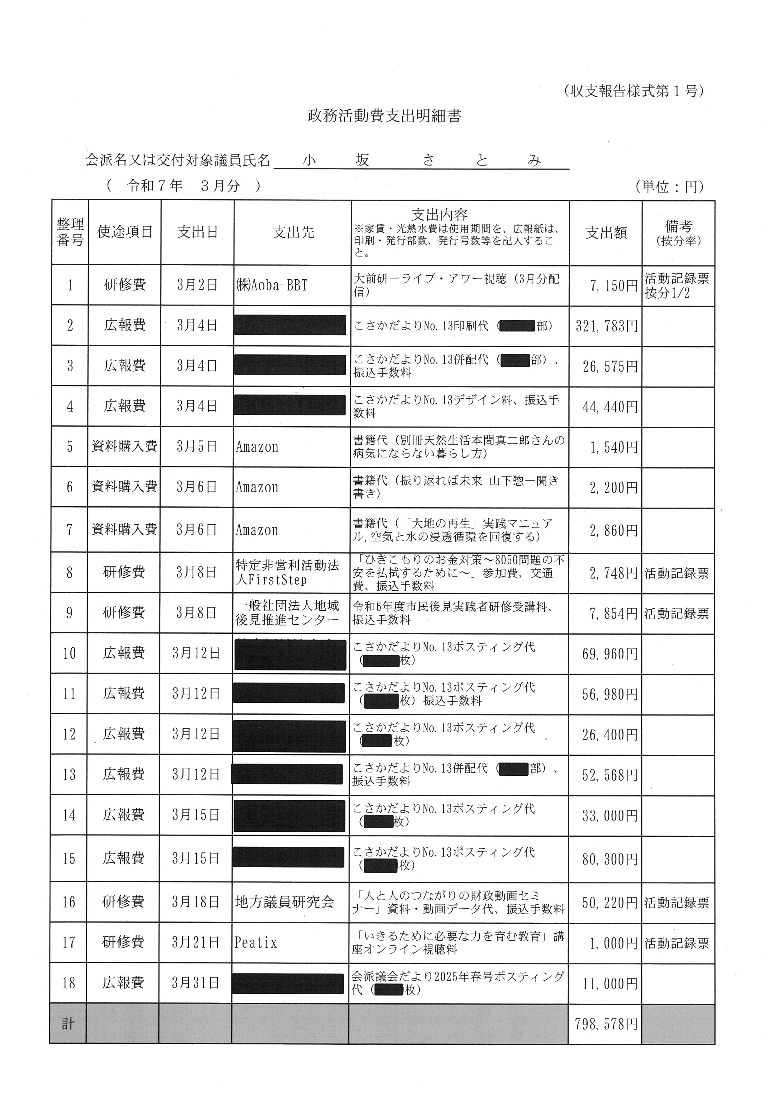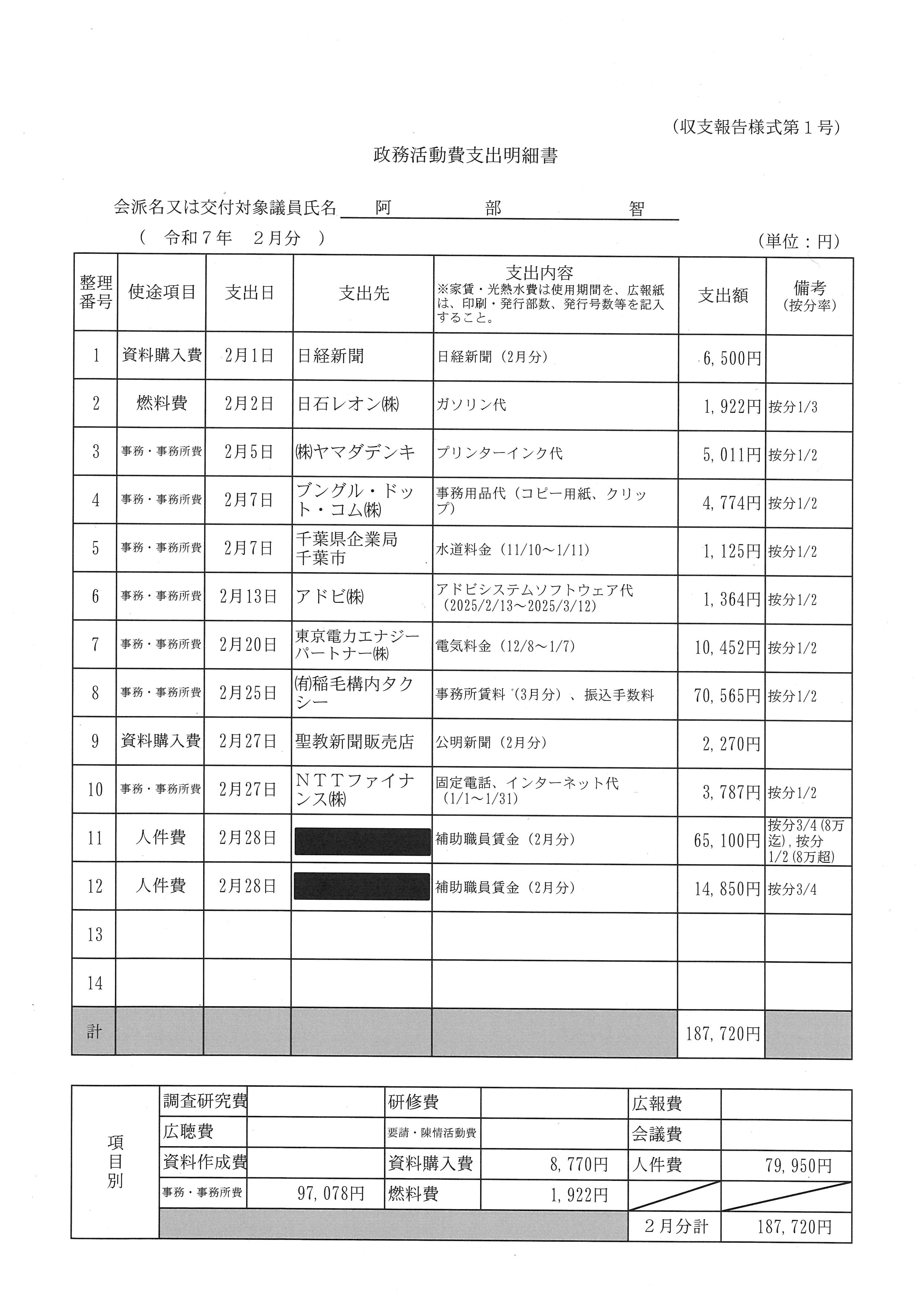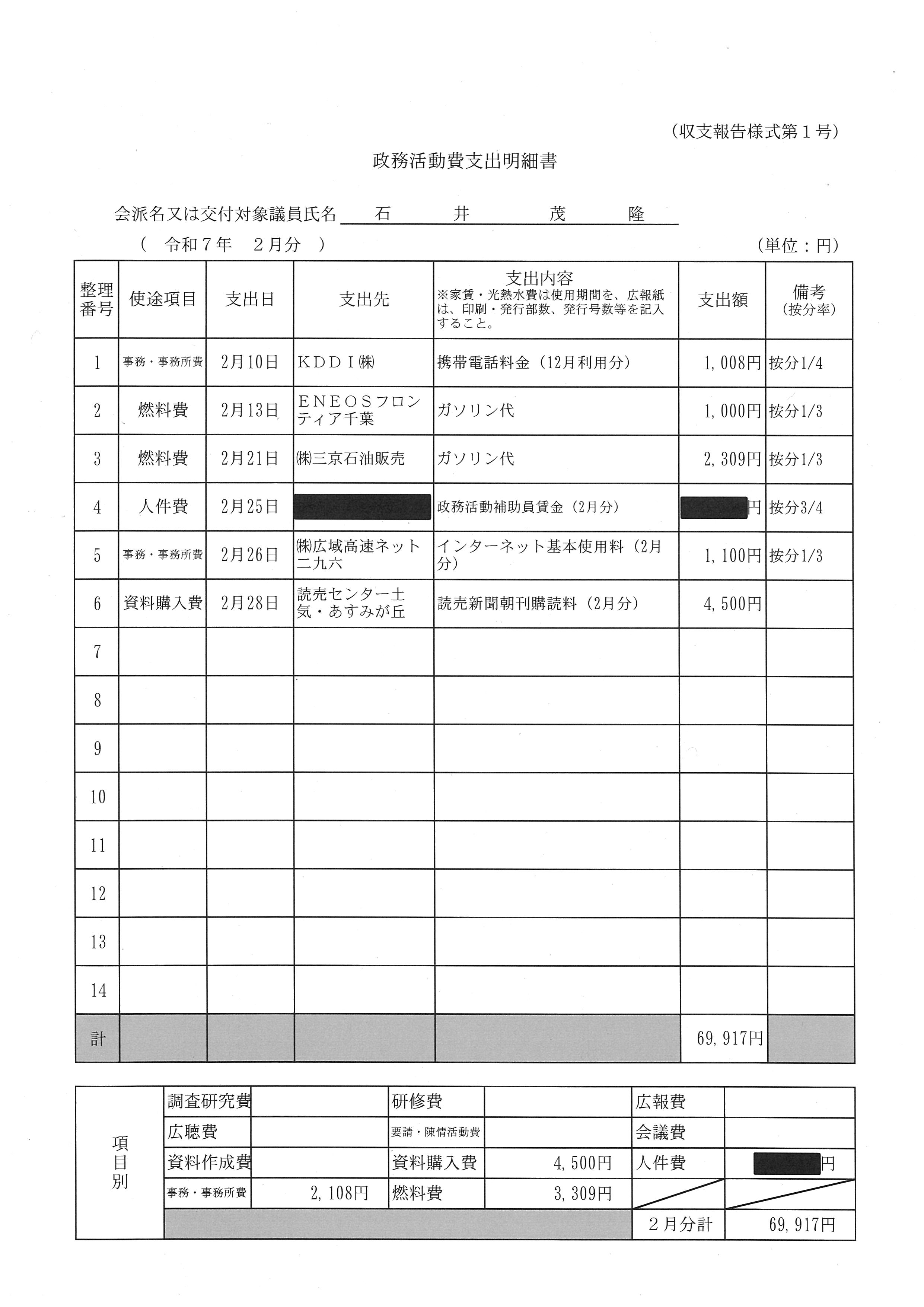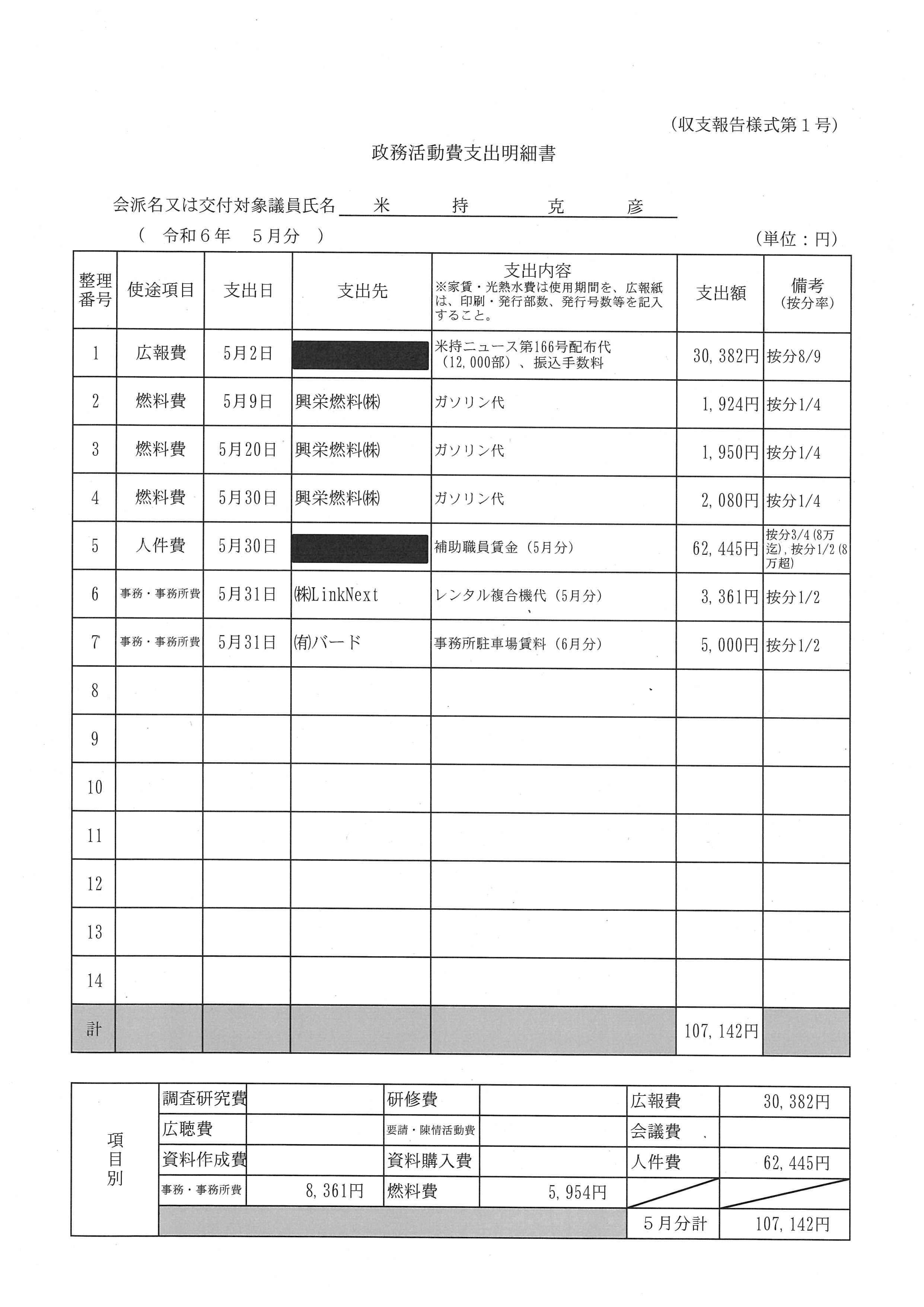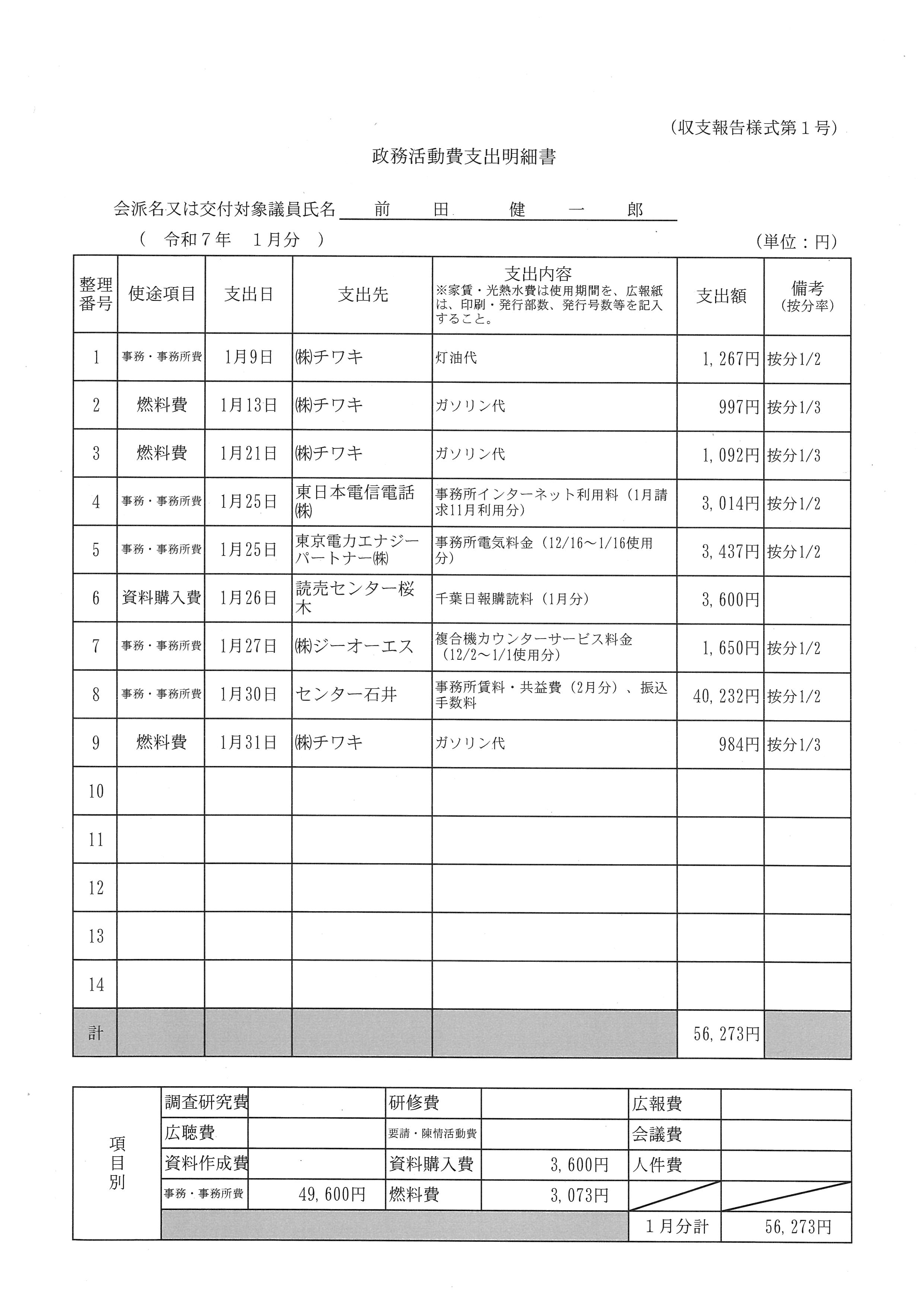 千葉市議会トップページ > 広報・情報公開 > 政務活動費 > 令和6年度交付分(政務活動費収支報告書)