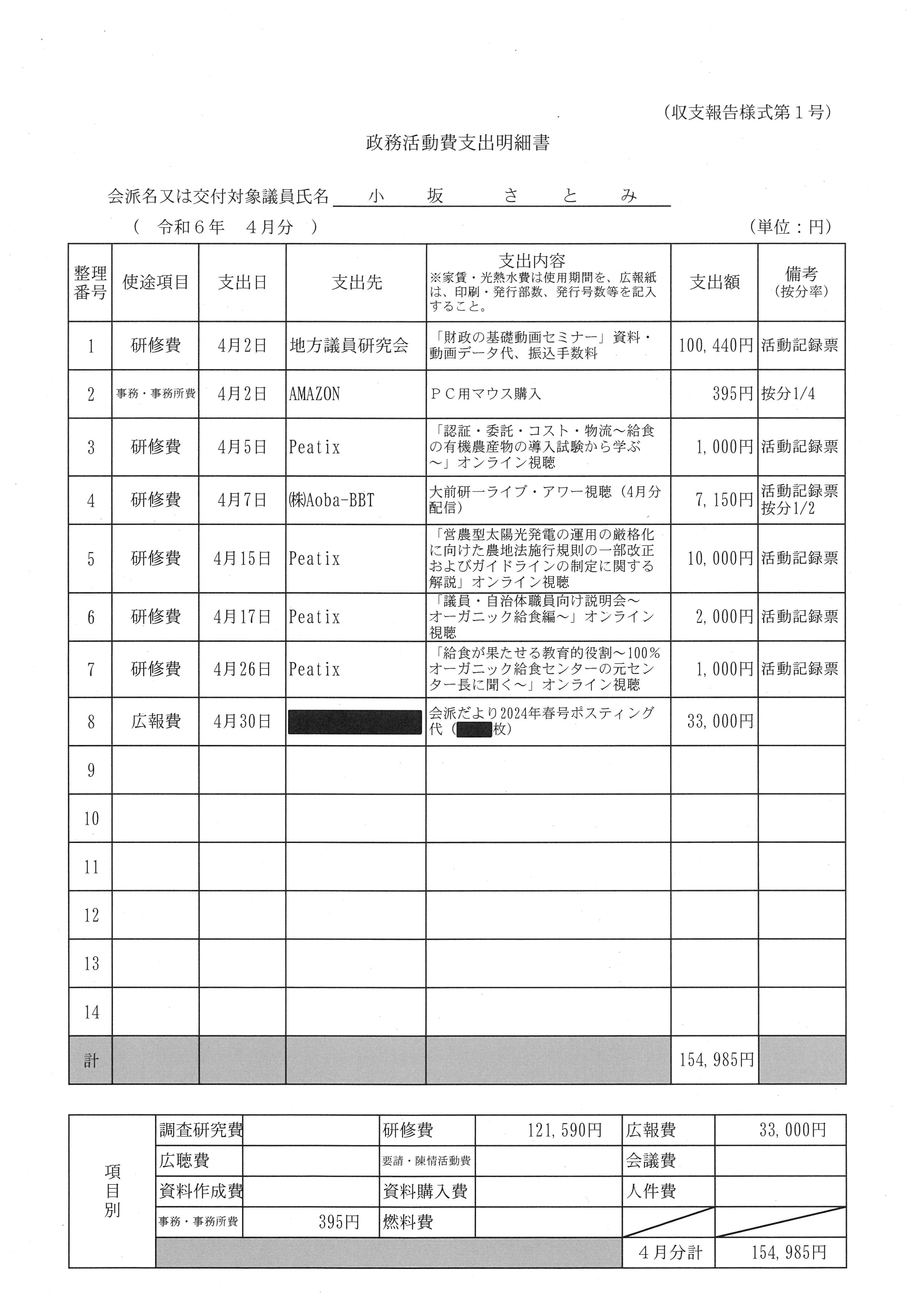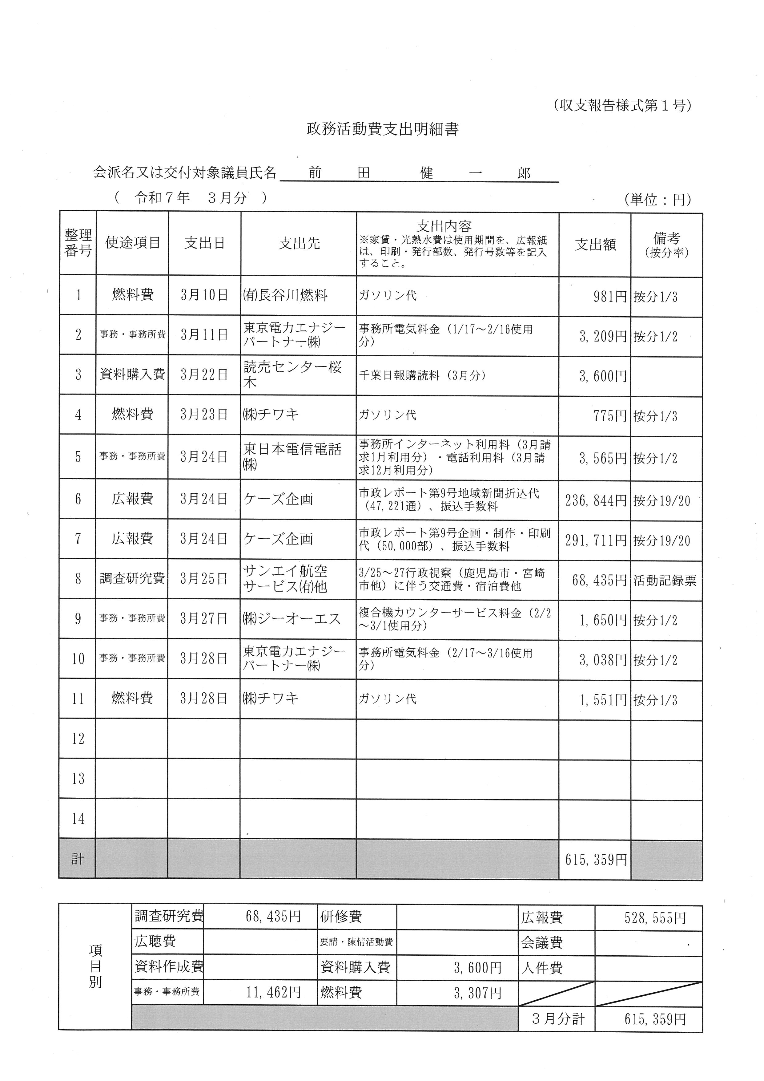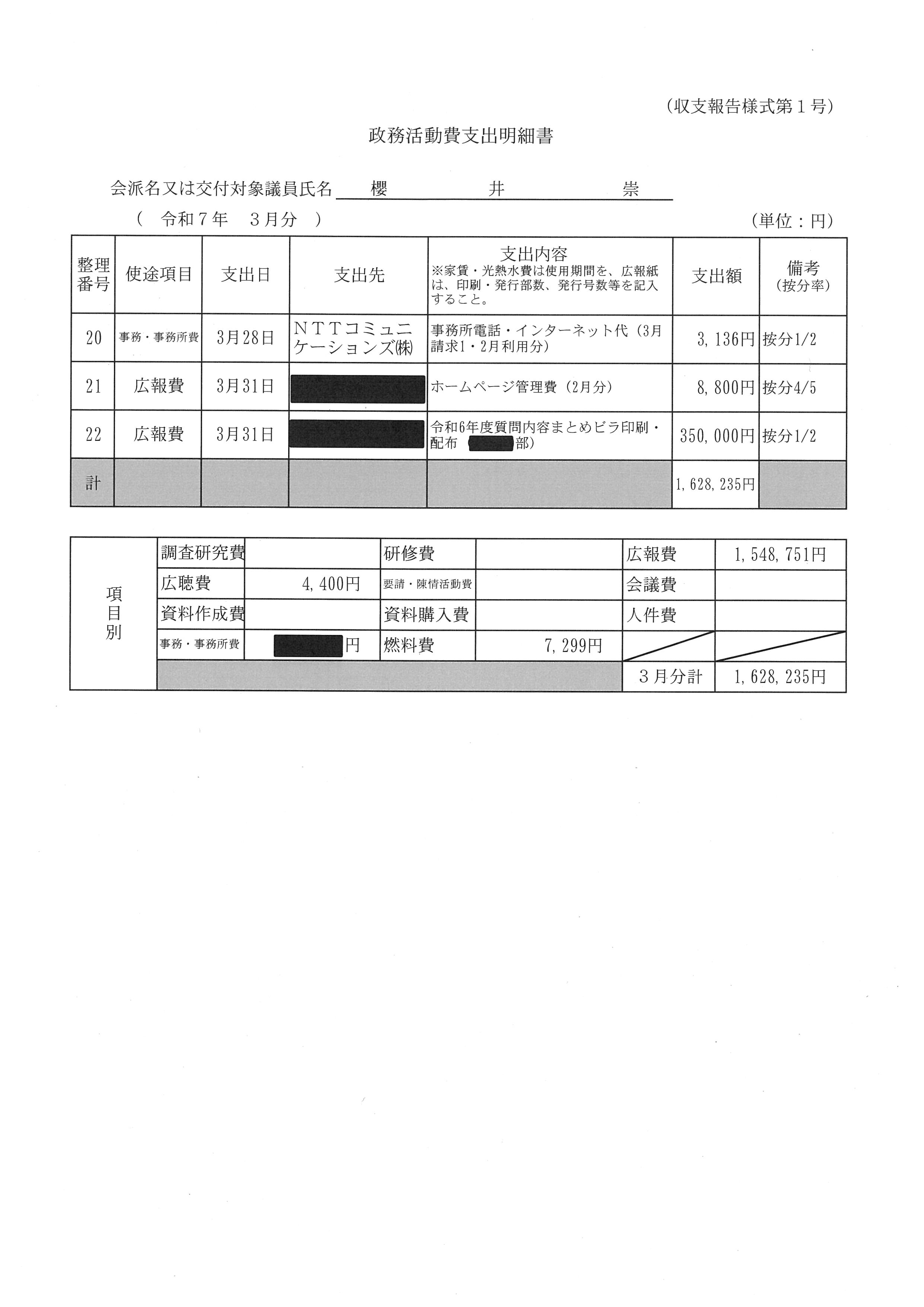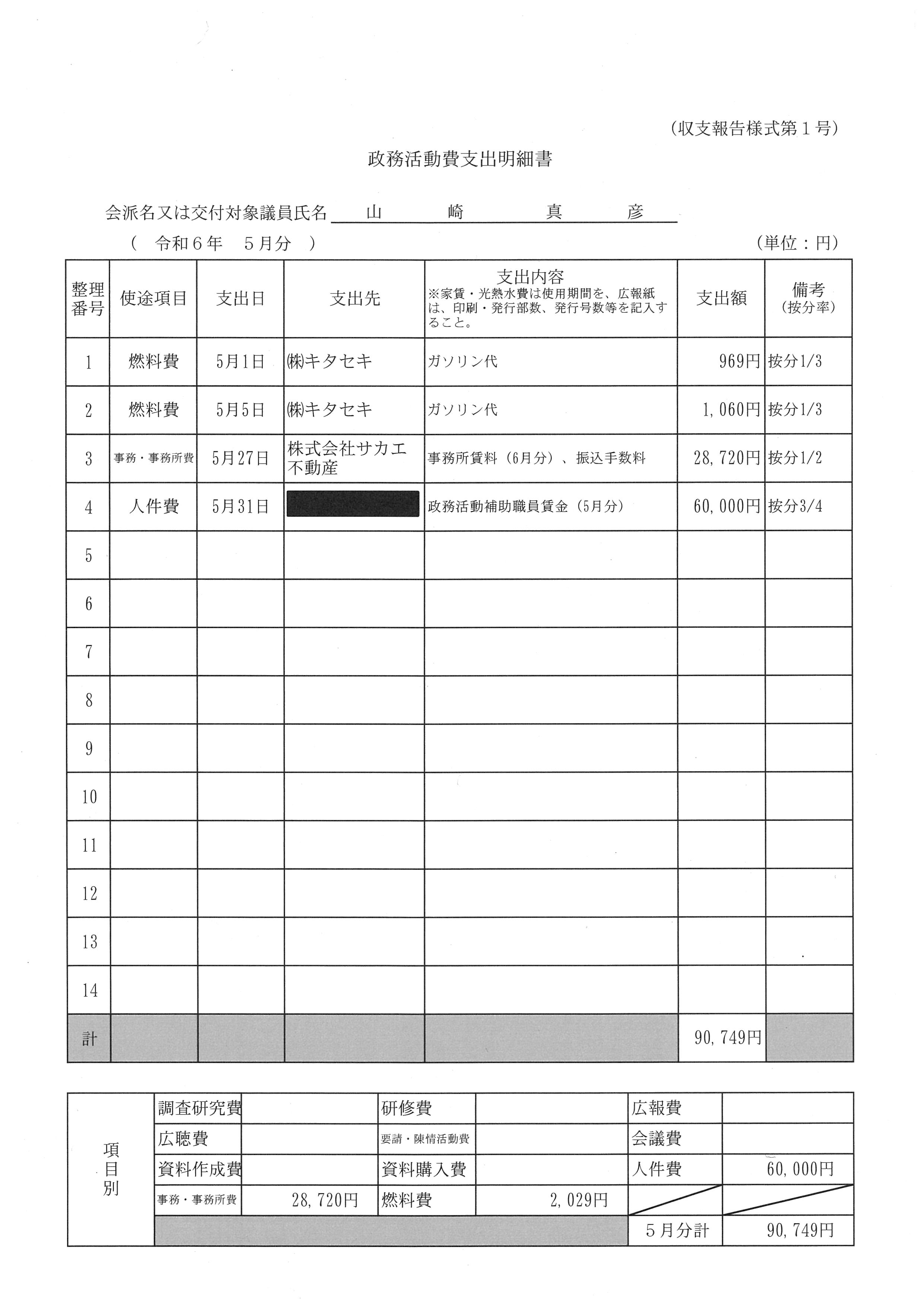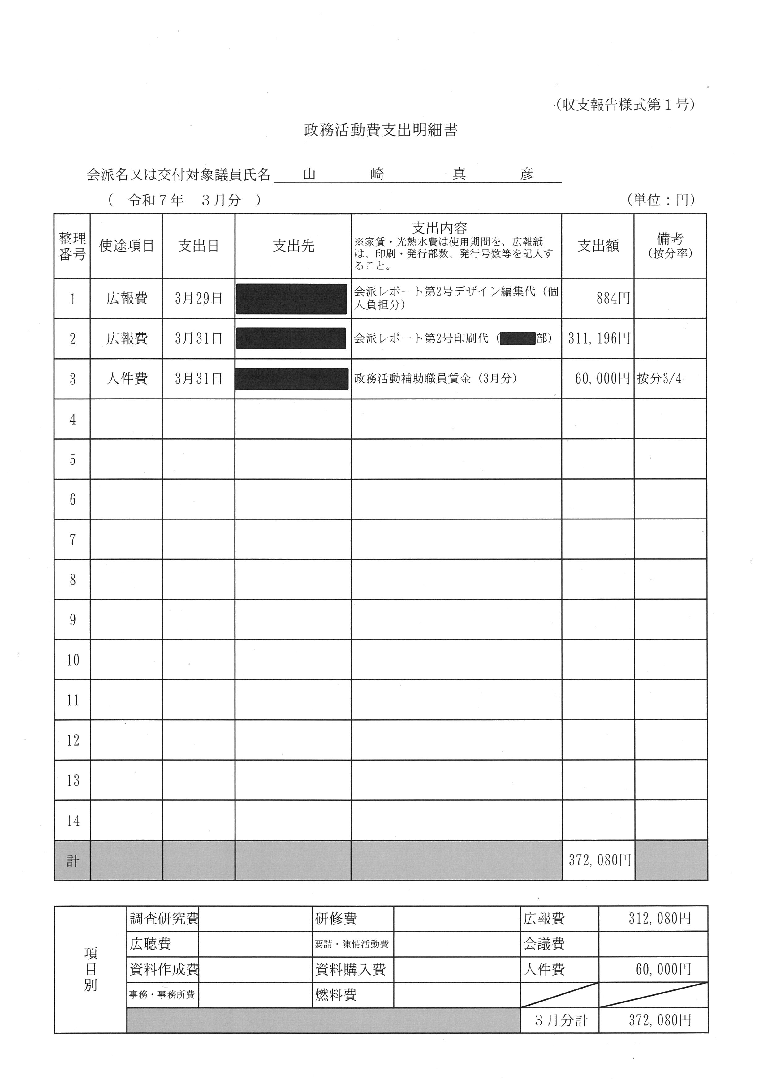 千葉市議会トップページ > 広報・情報公開 > 政務活動費 > 令和6年度交付分(政務活動費収支報告書)