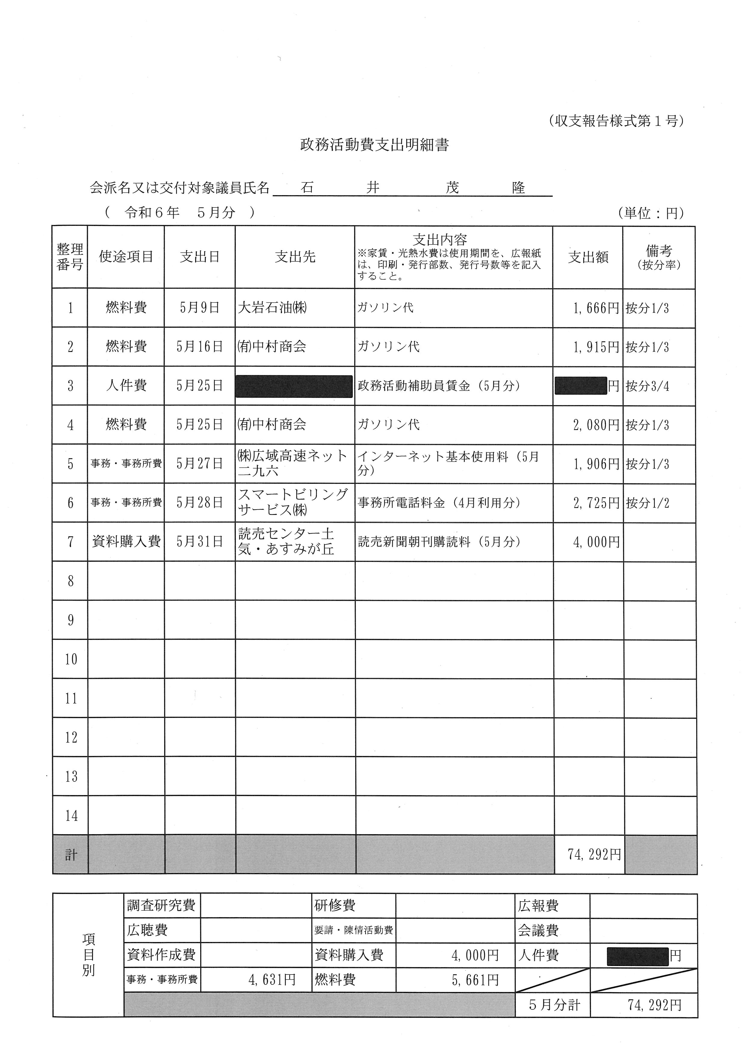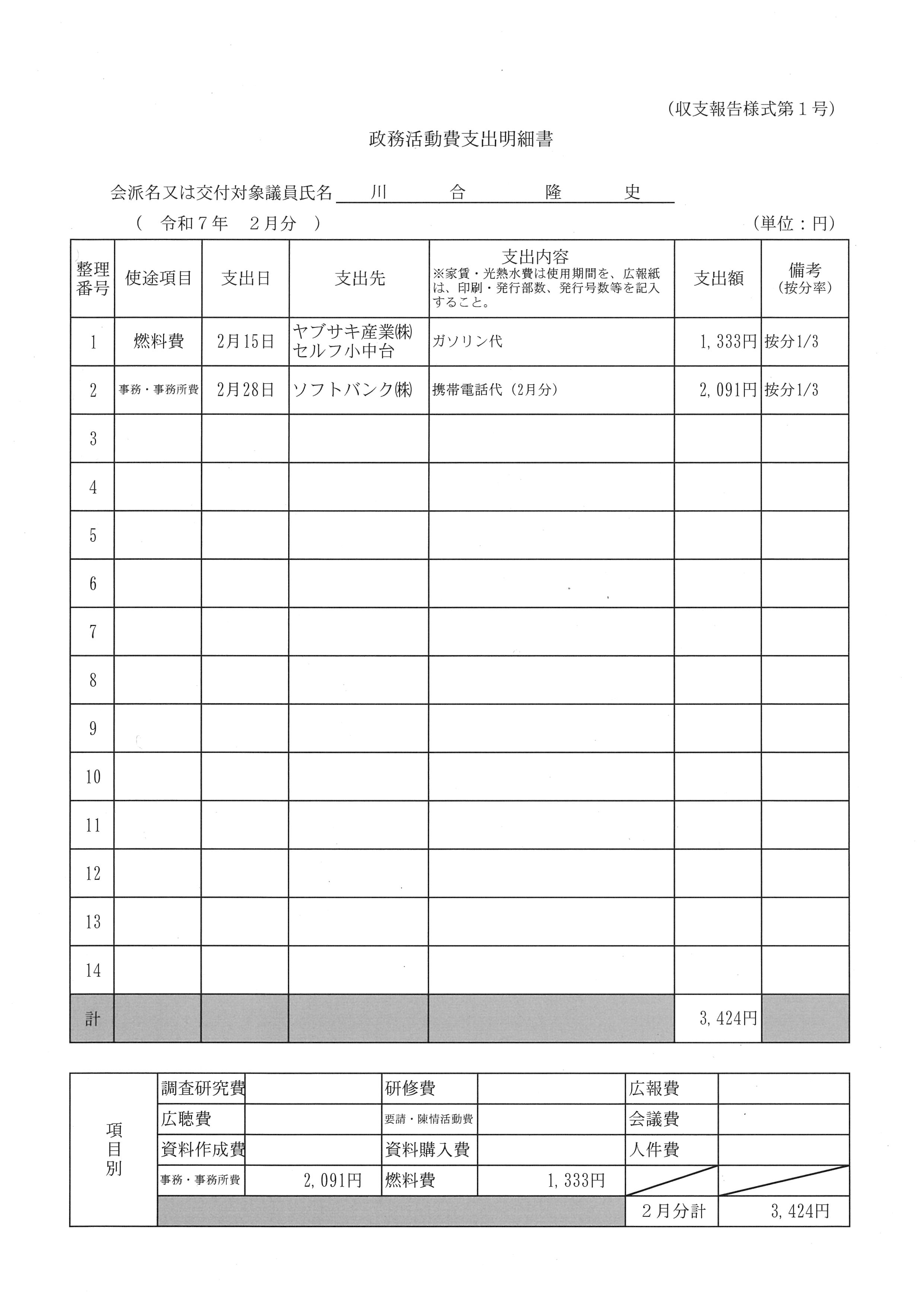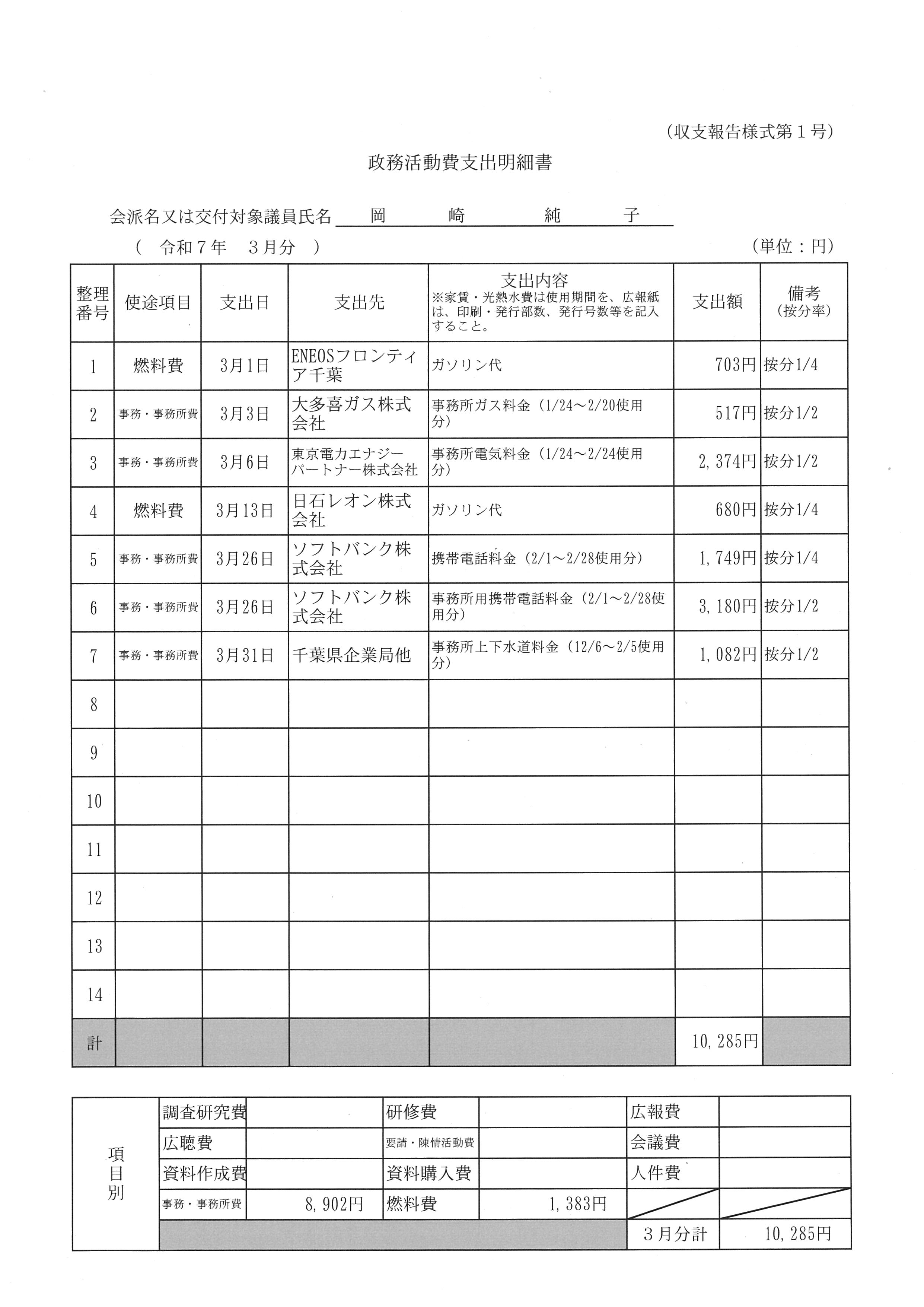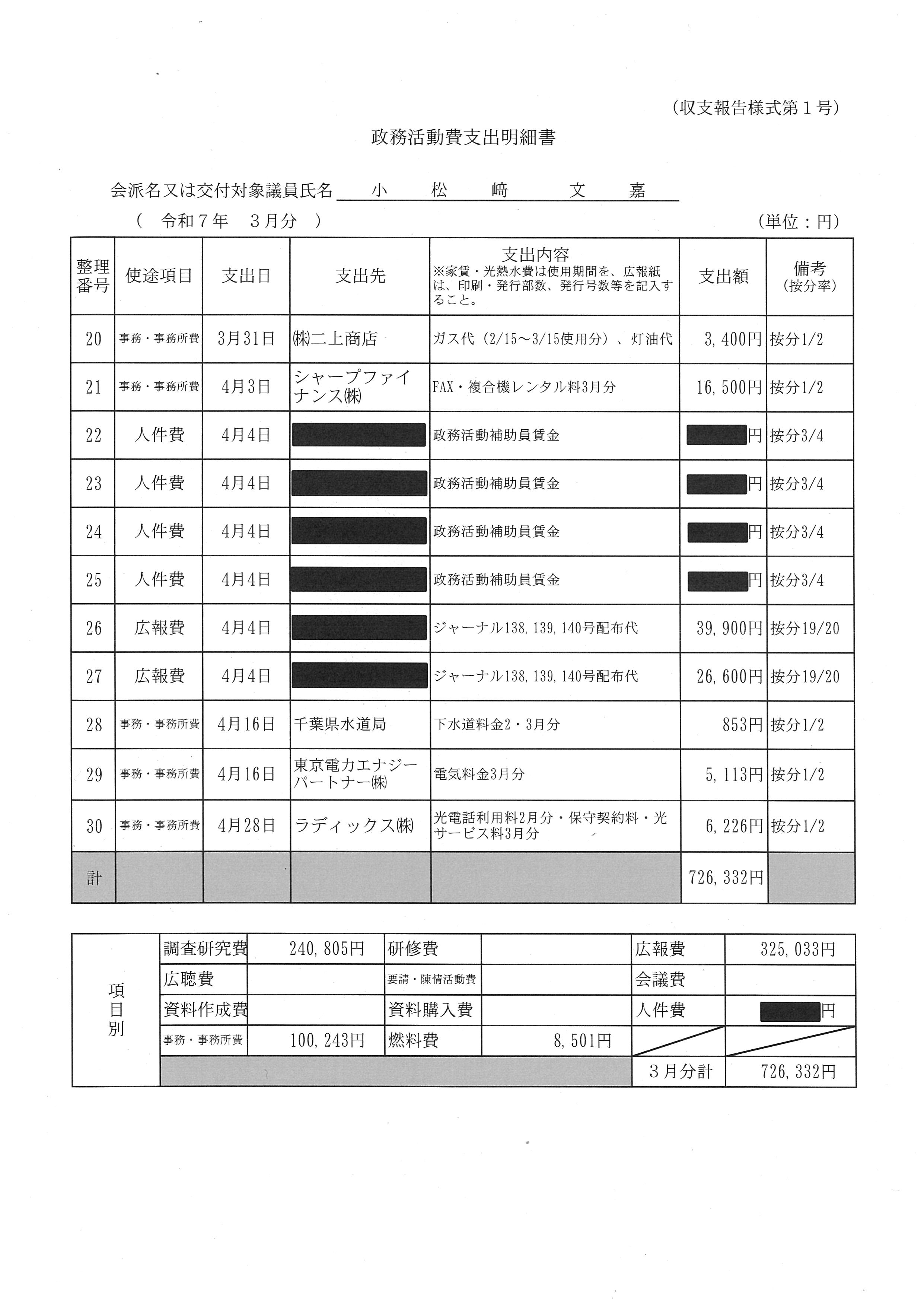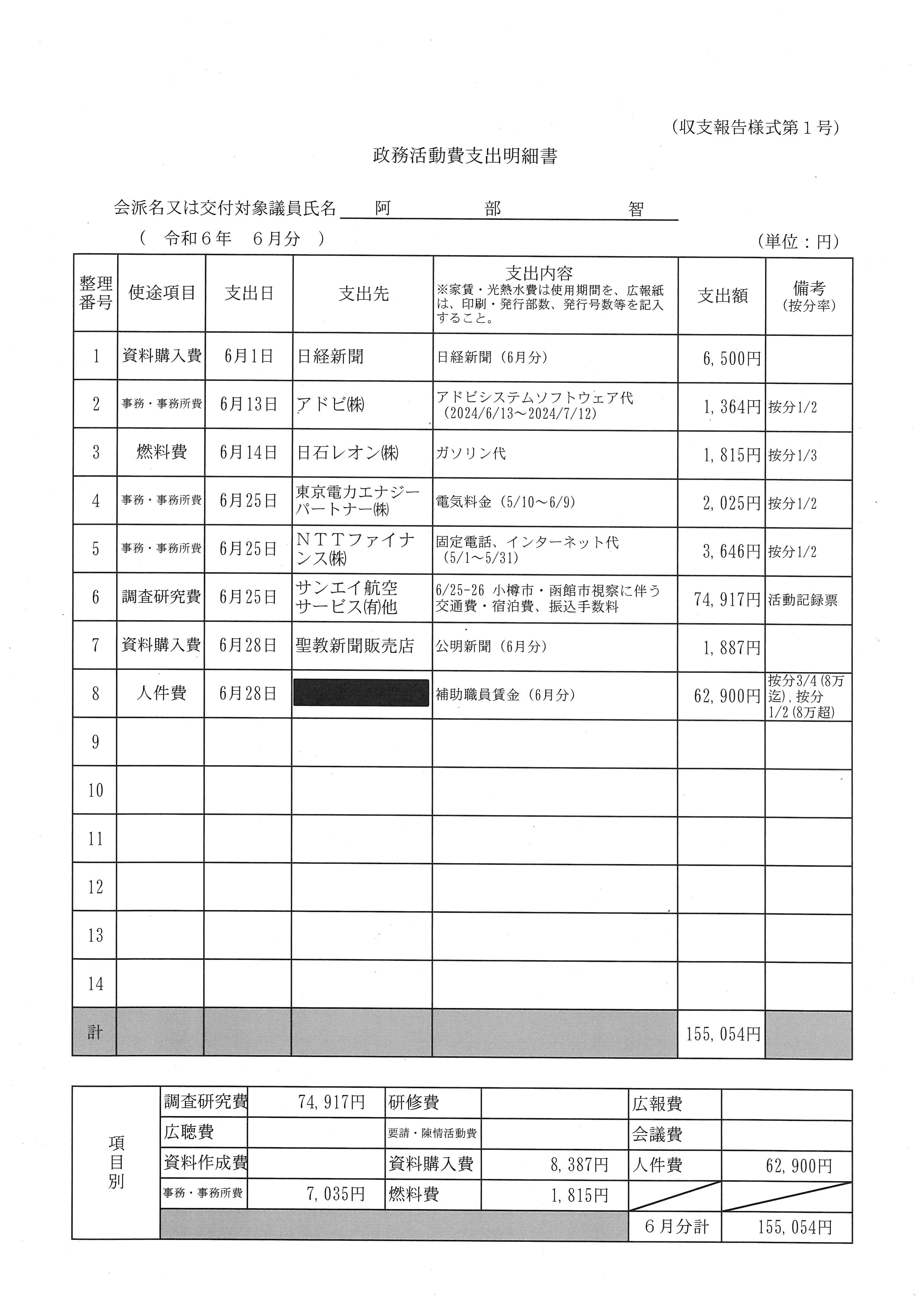 千葉市議会トップページ > 広報・情報公開 > 政務活動費 > 令和6年度交付分(政務活動費収支報告書)