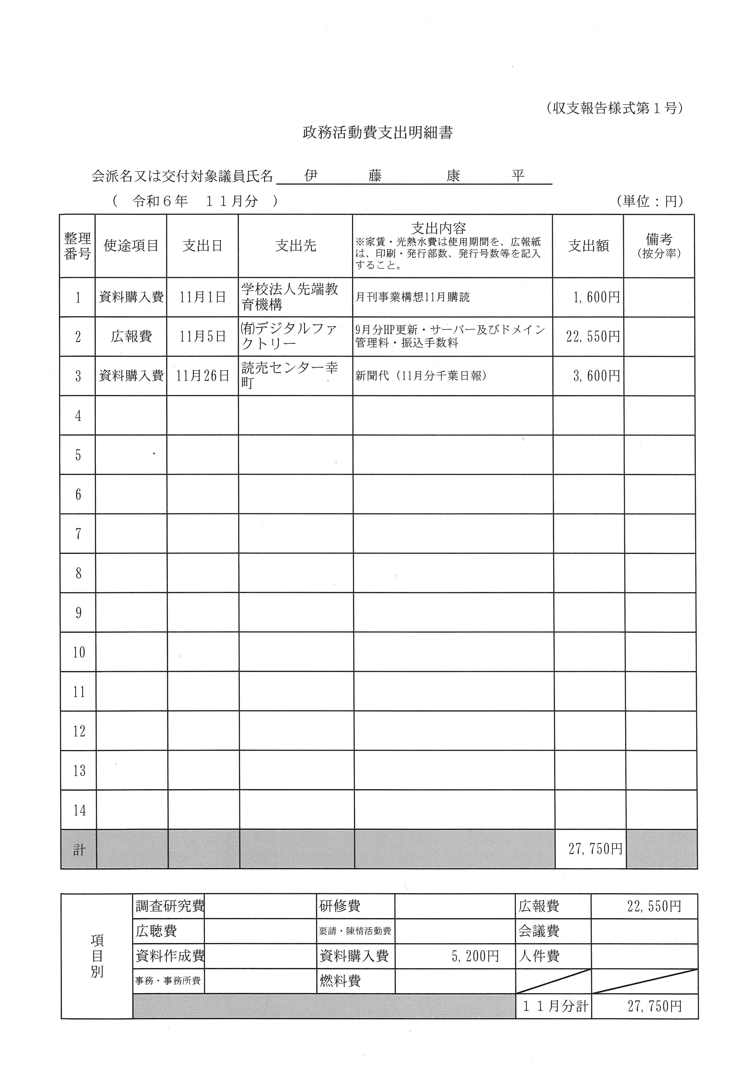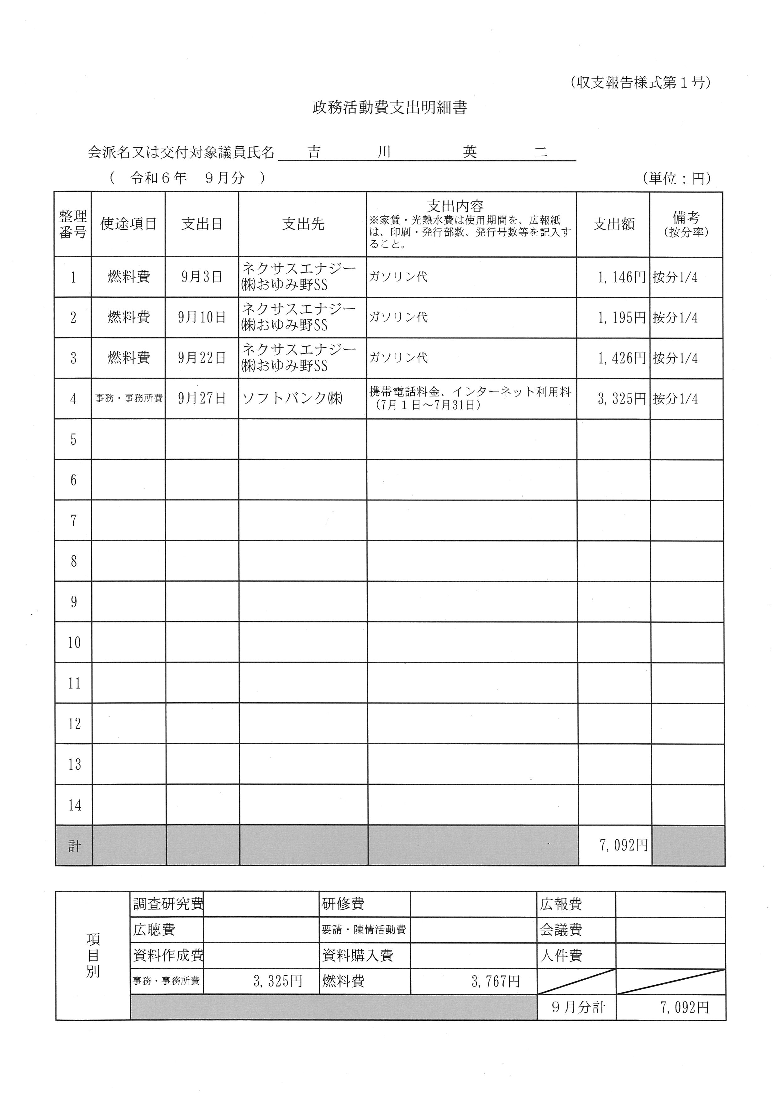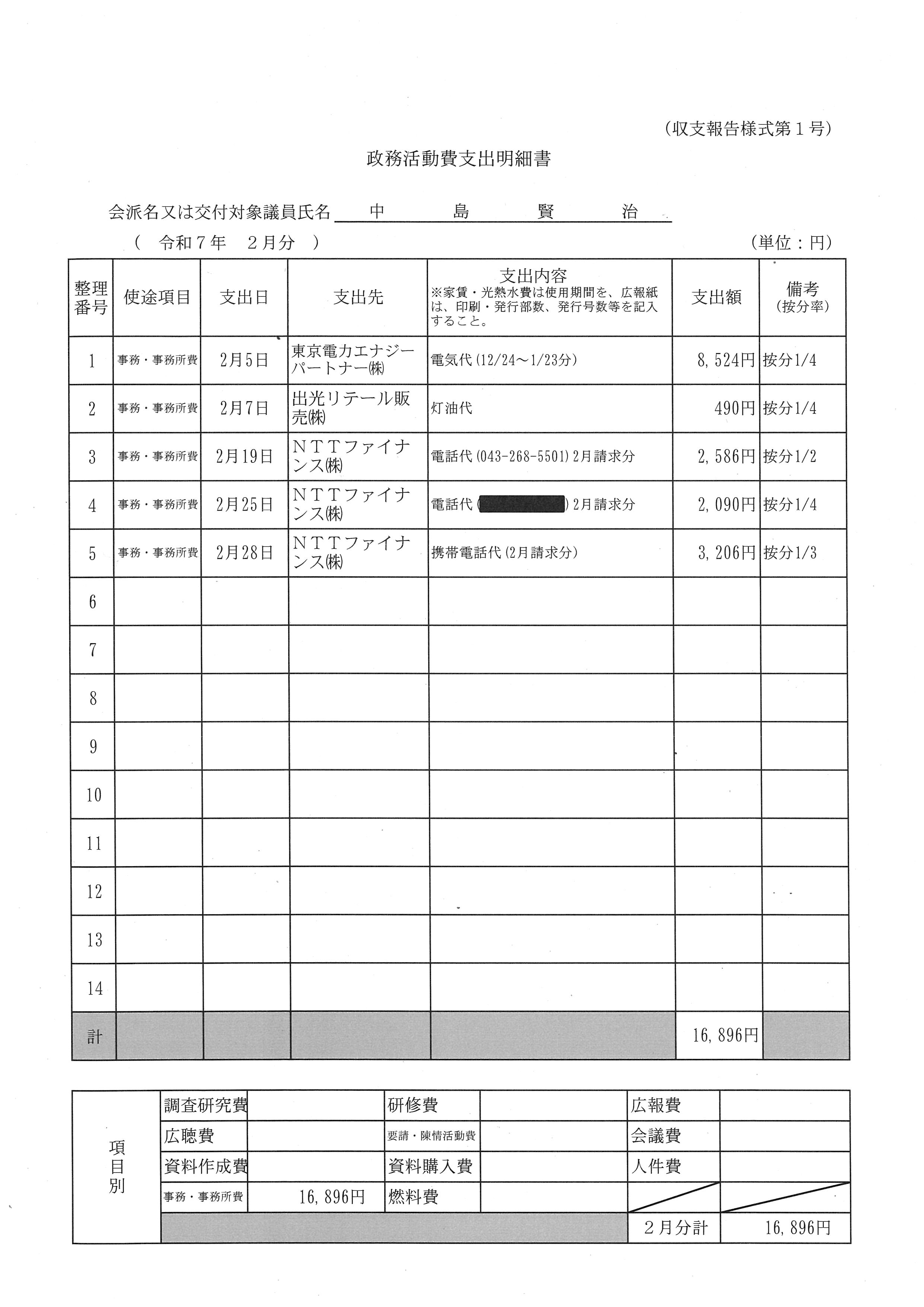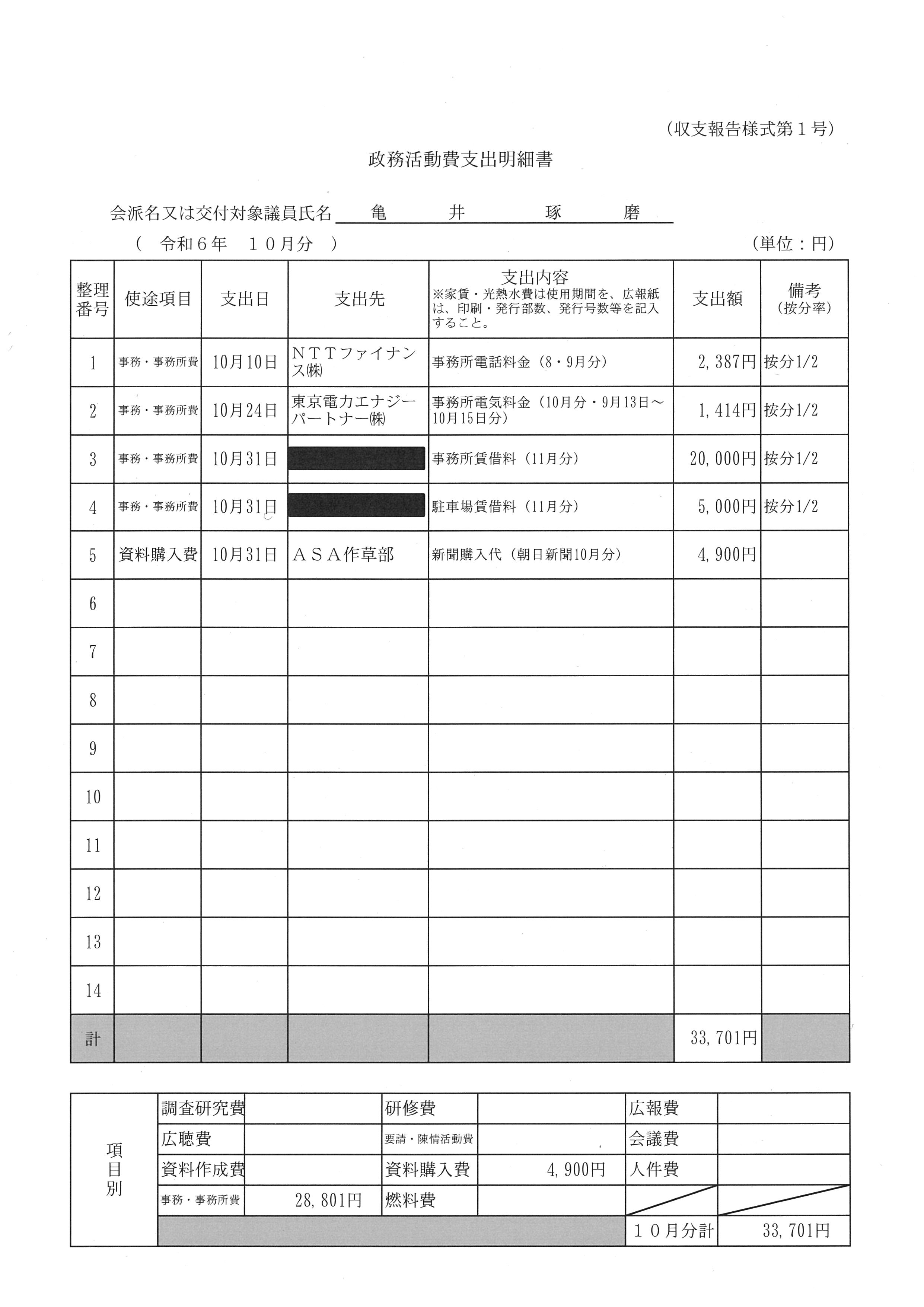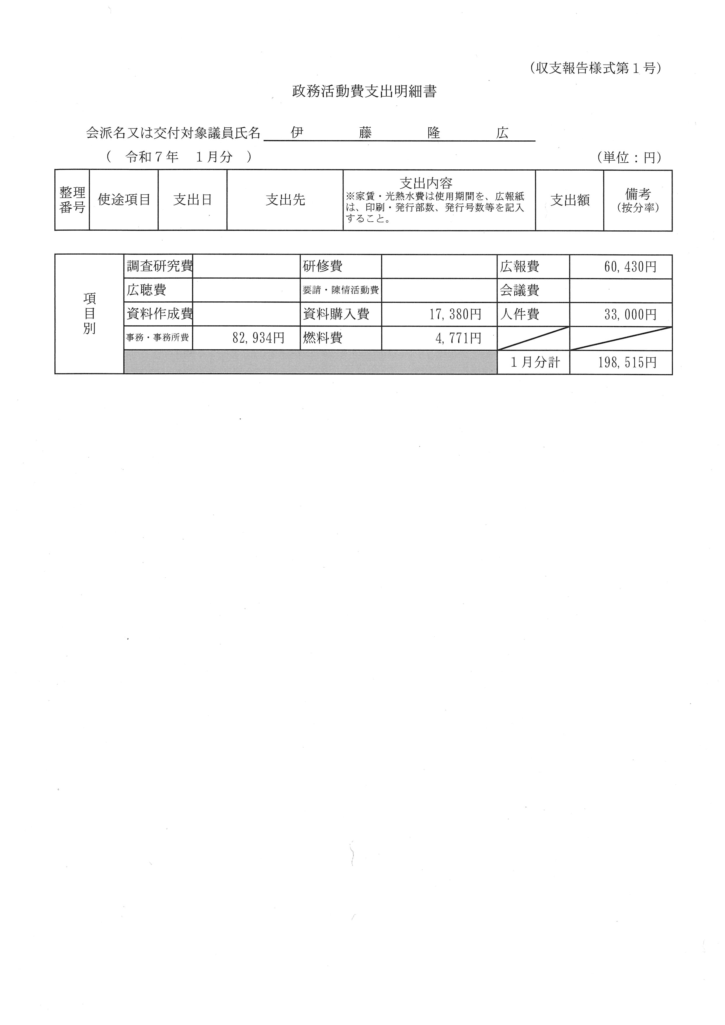 千葉市議会トップページ > 広報・情報公開 > 政務活動費 > 令和6年度交付分(政務活動費収支報告書)