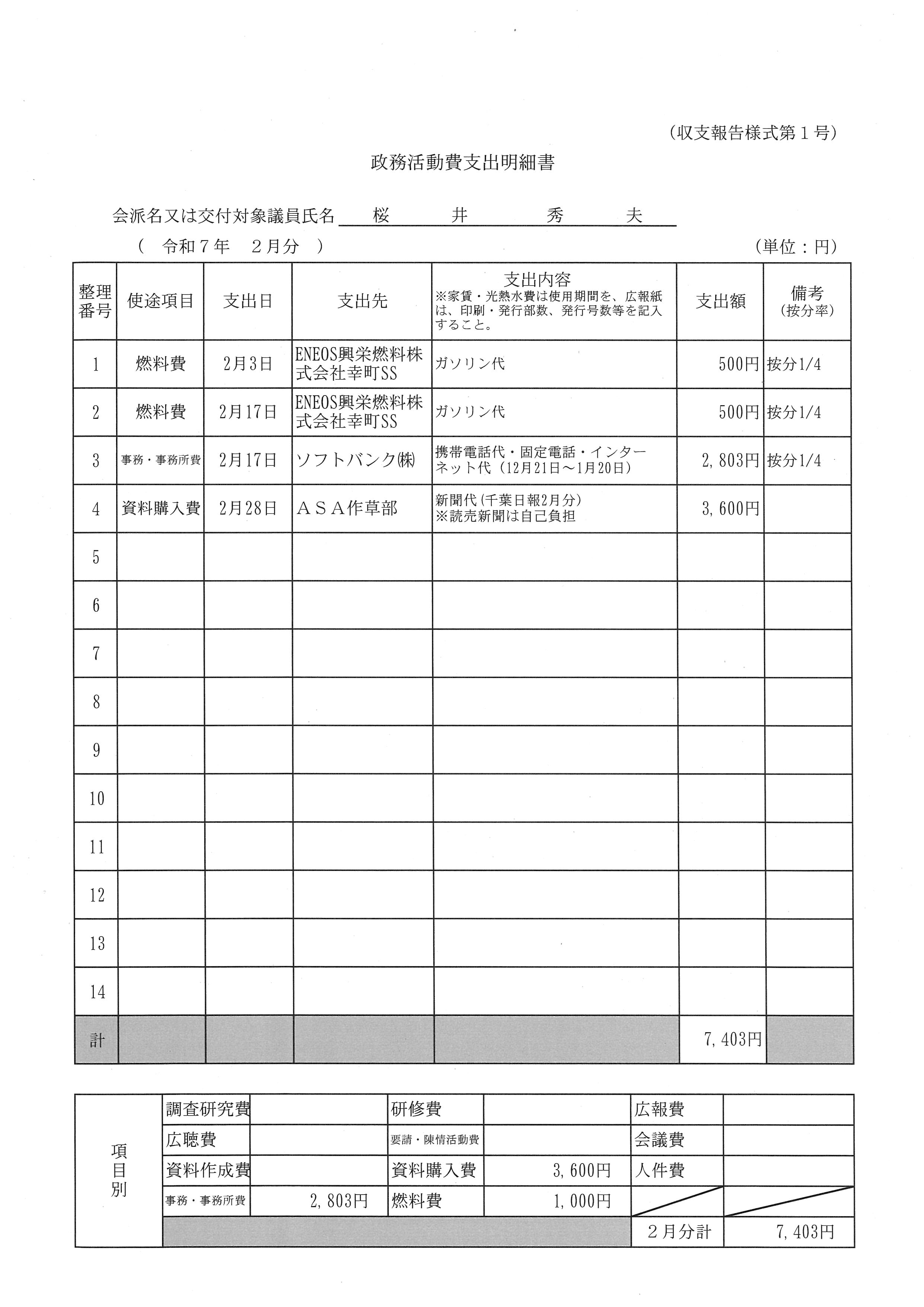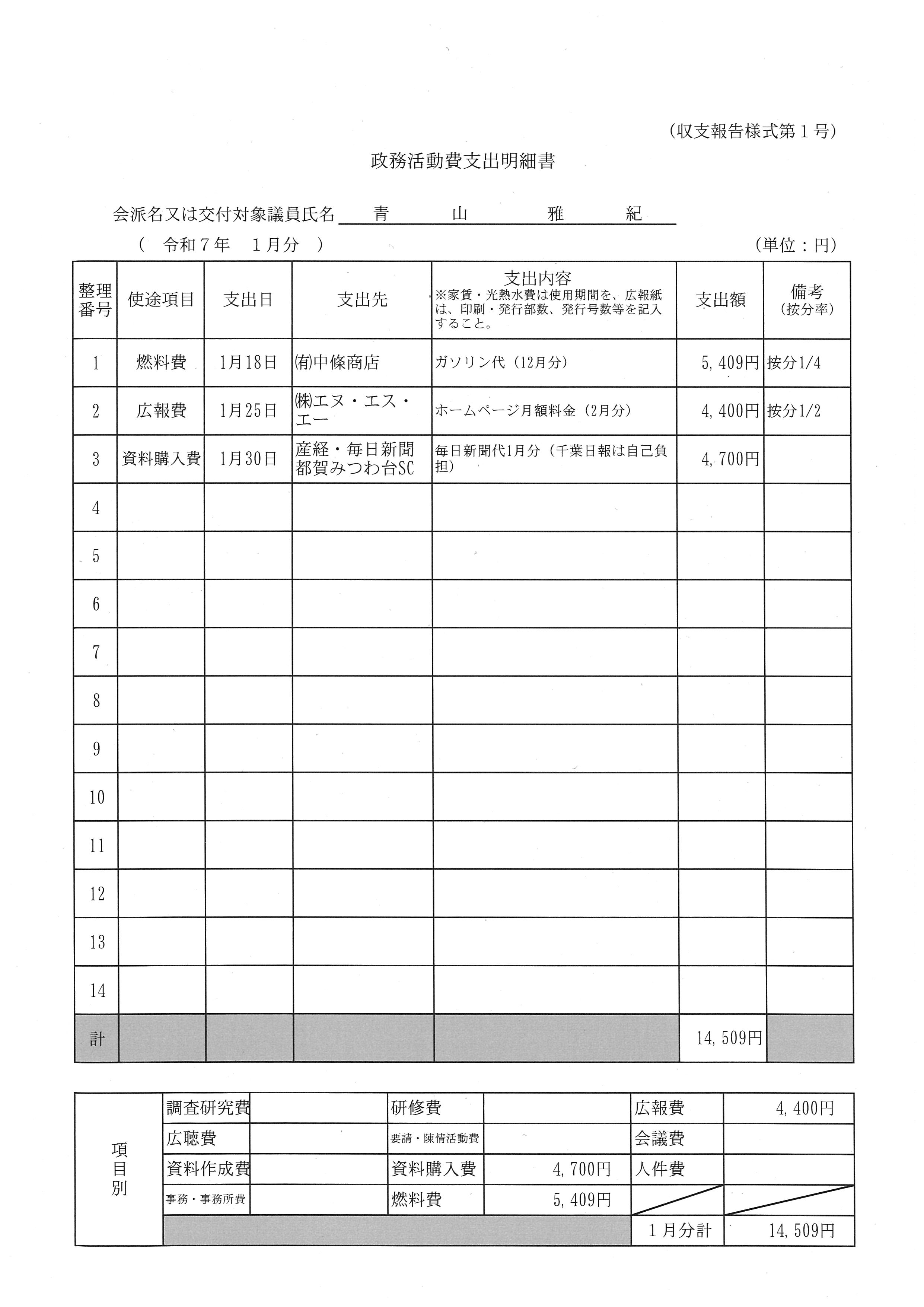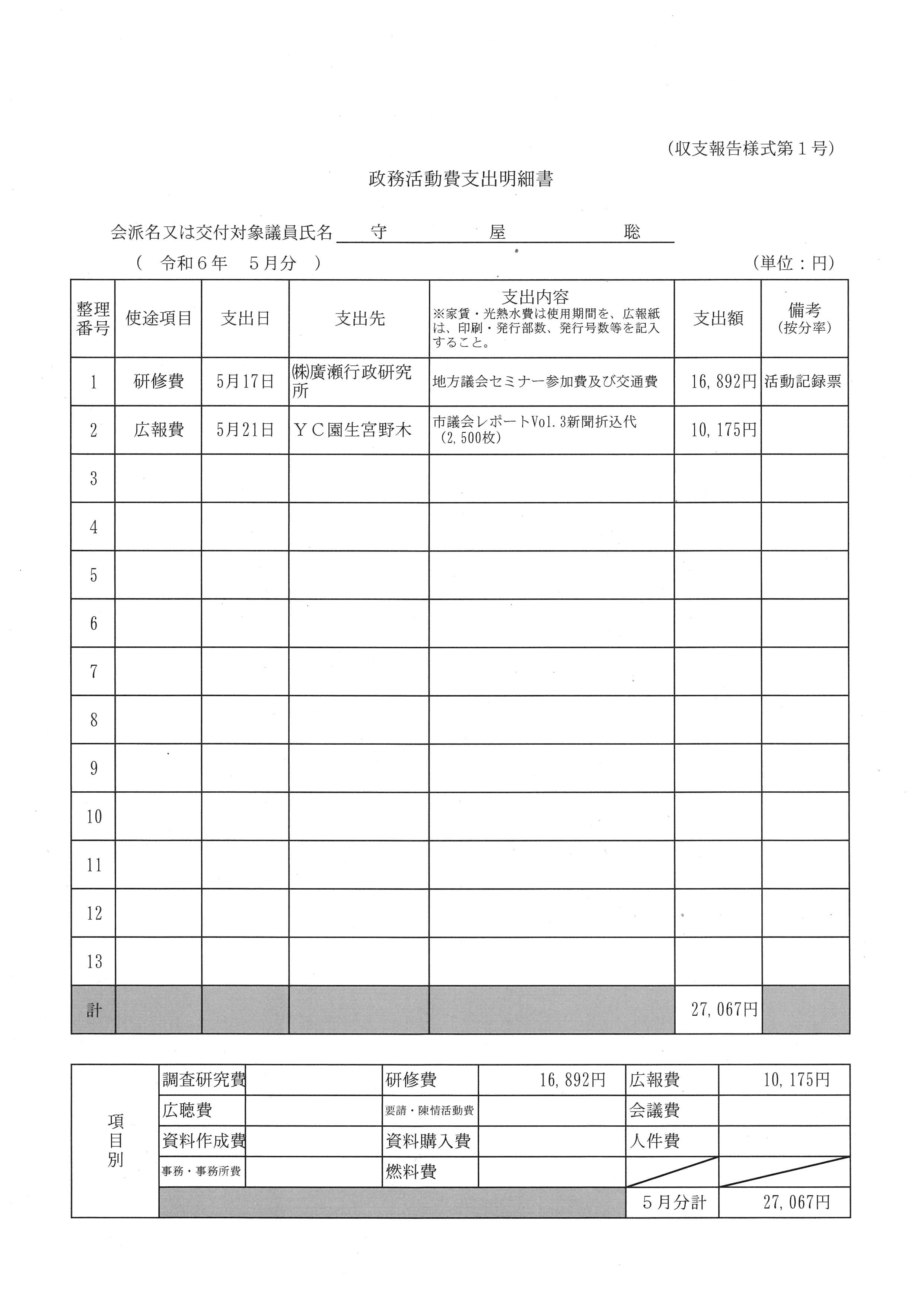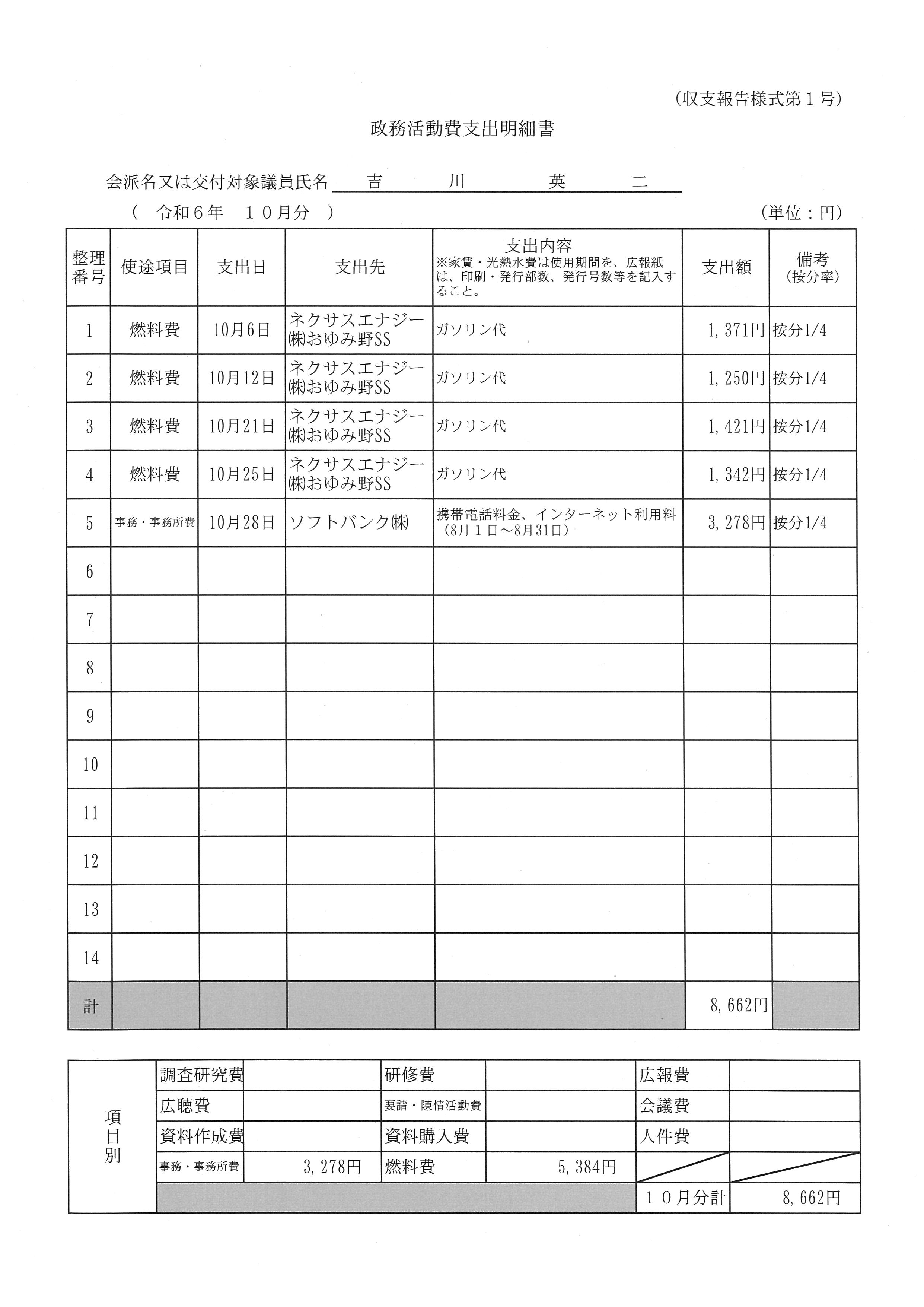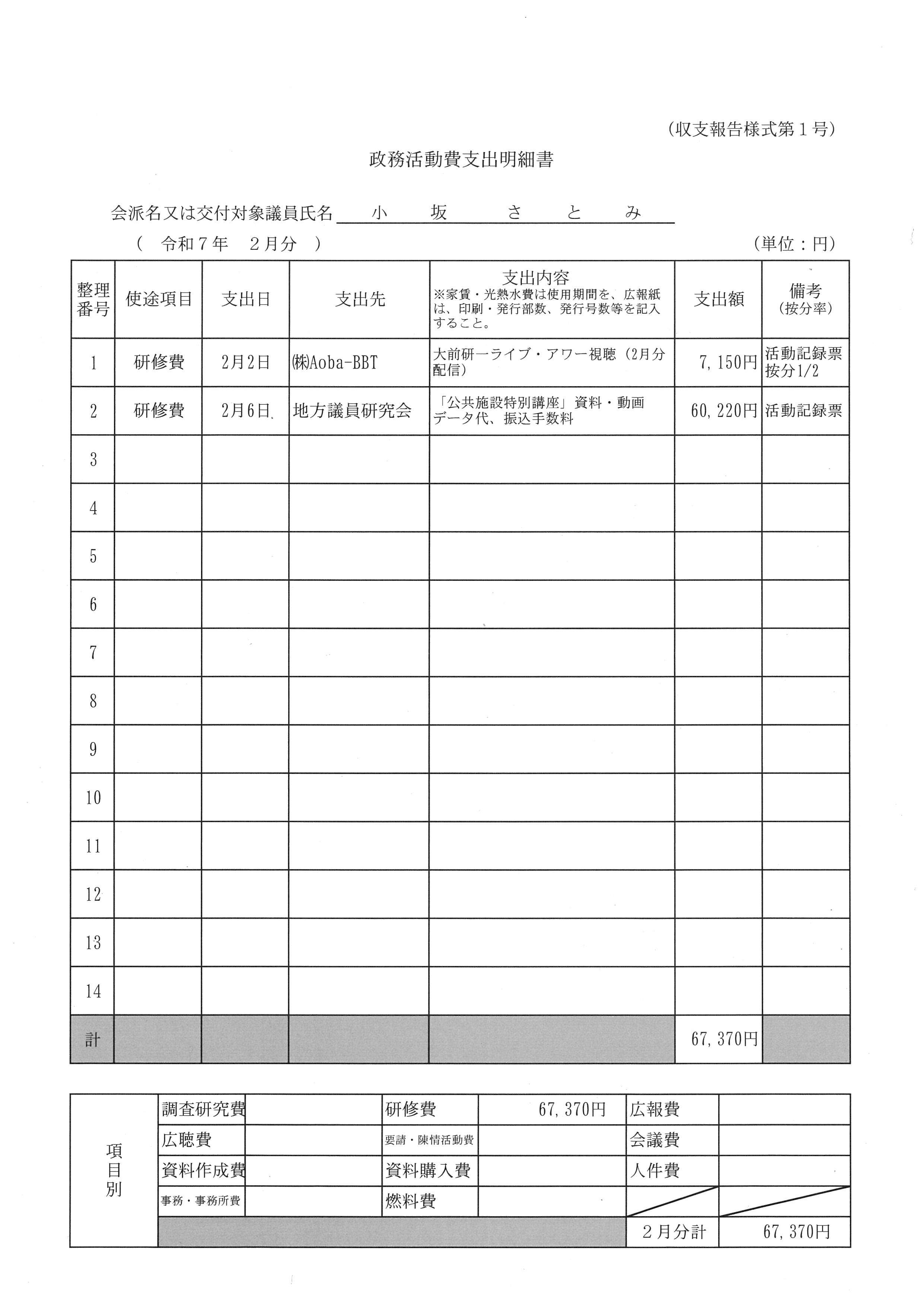 千葉市議会トップページ > 広報・情報公開 > 政務活動費 > 令和6年度交付分(政務活動費収支報告書)