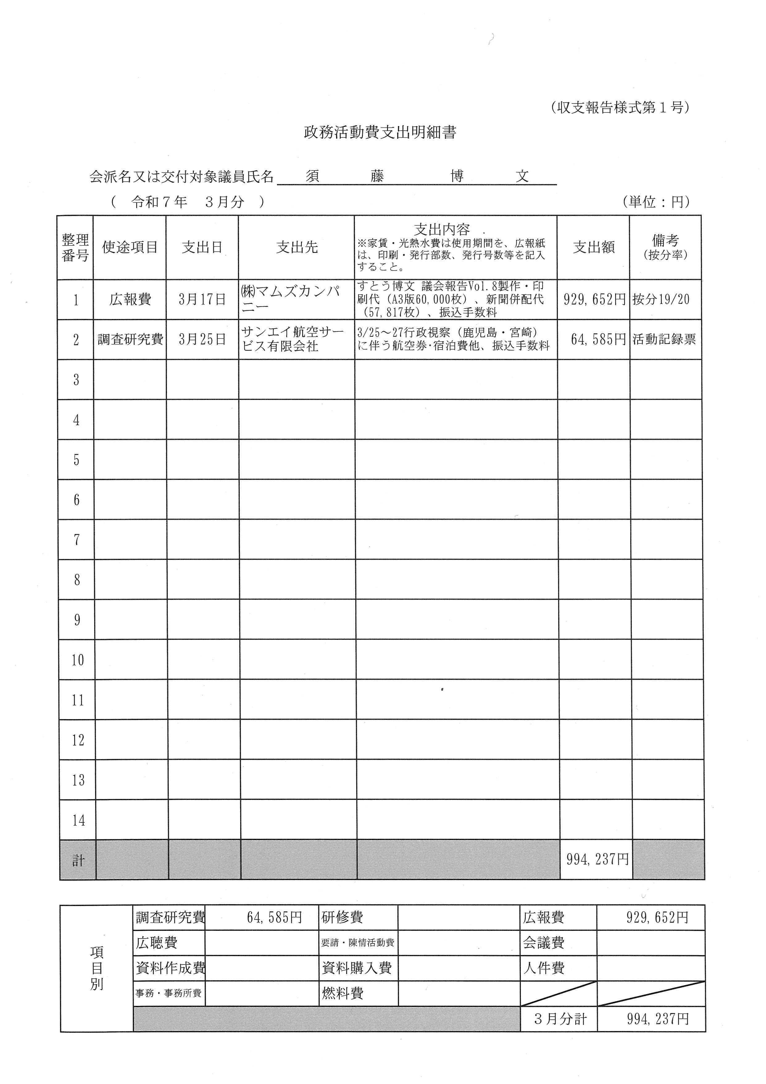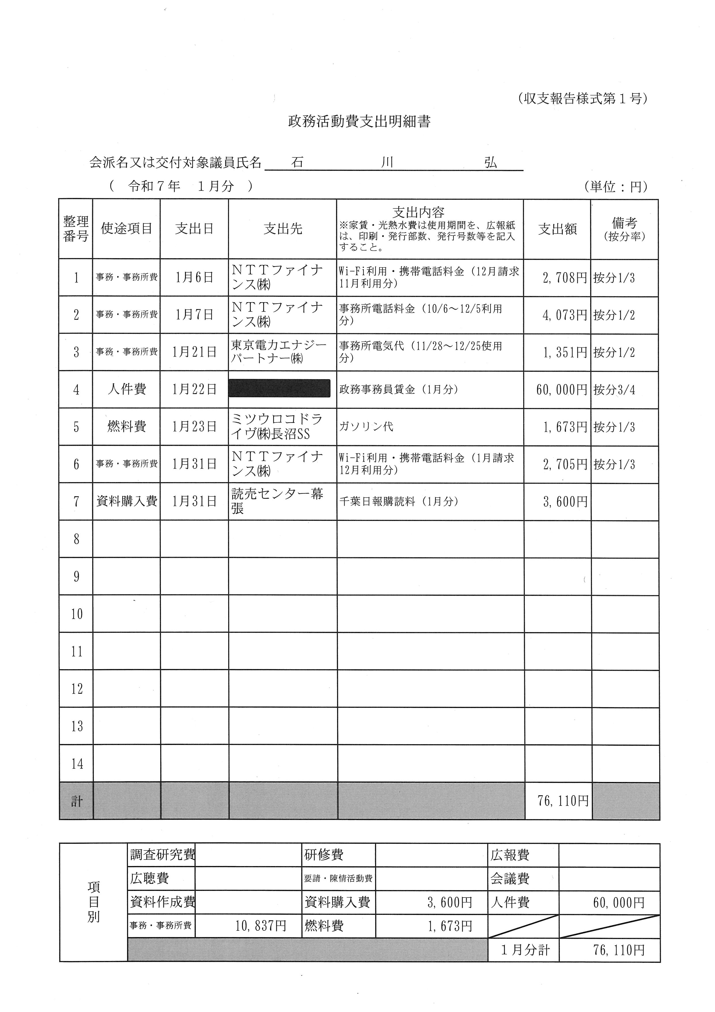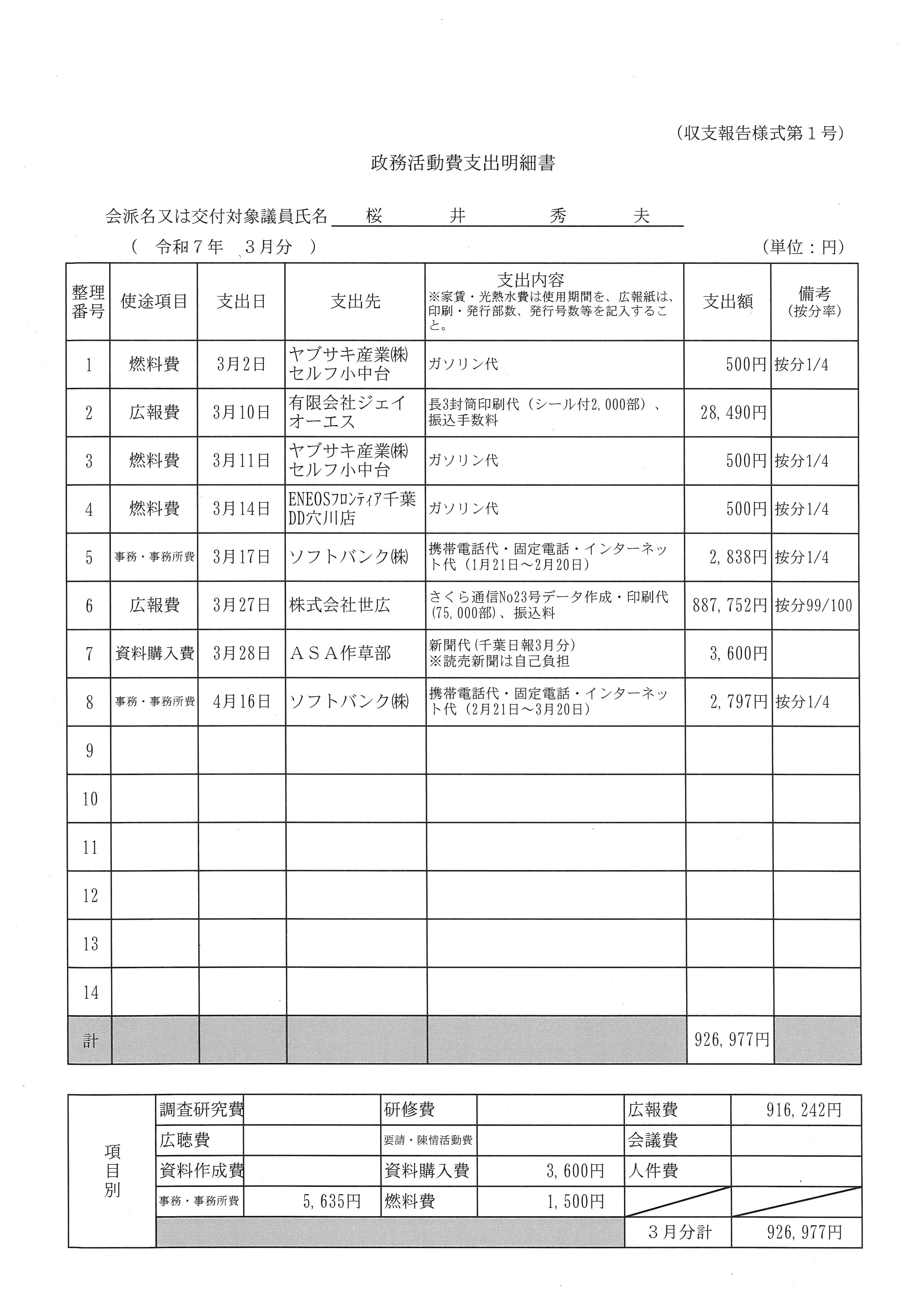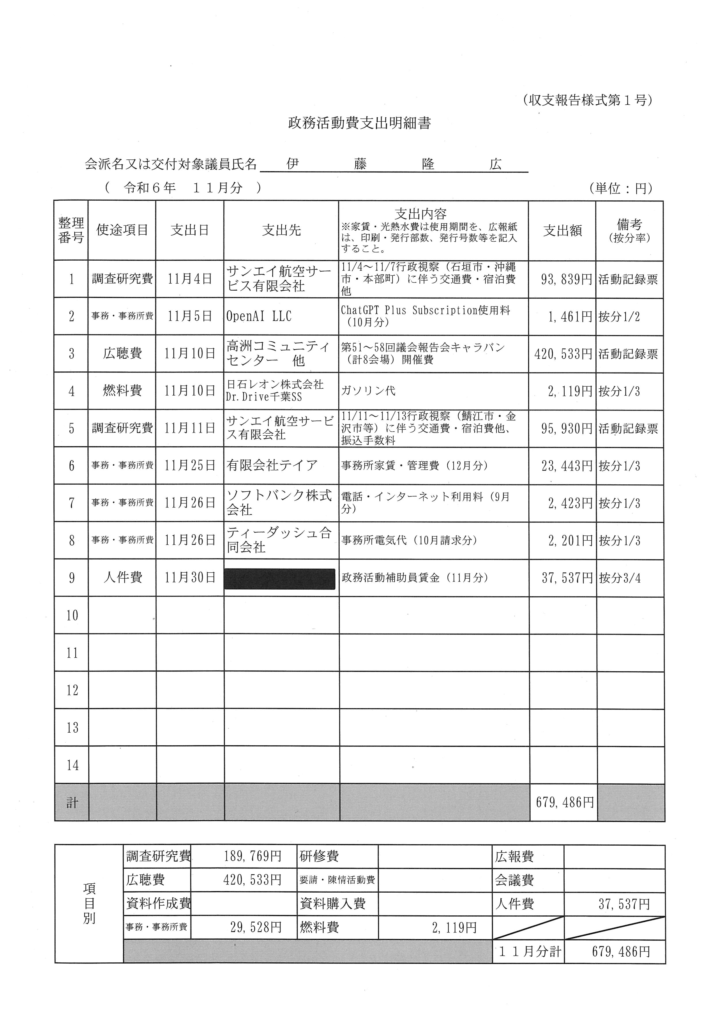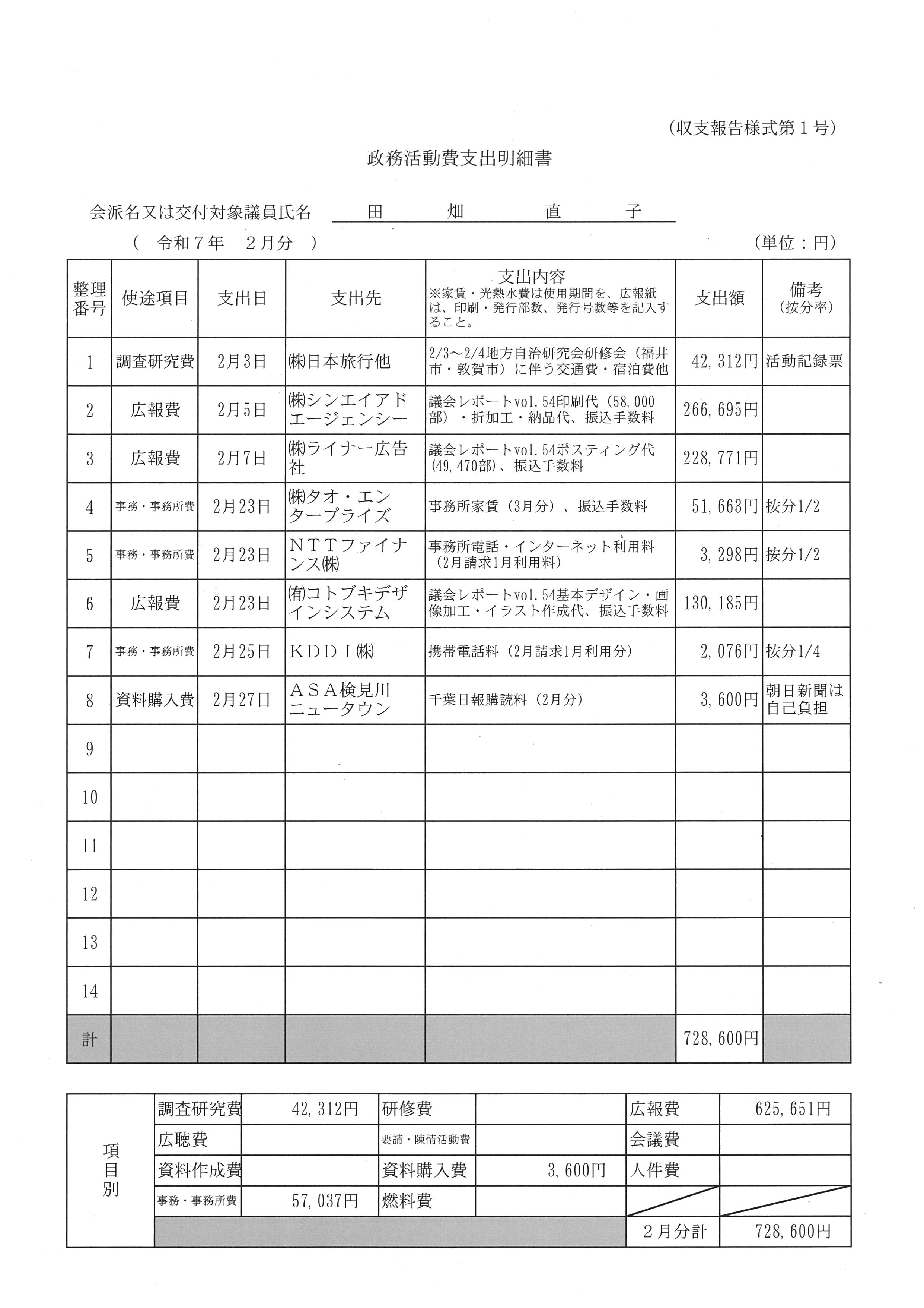 千葉市議会トップページ > 広報・情報公開 > 政務活動費 > 令和6年度交付分(政務活動費収支報告書)
