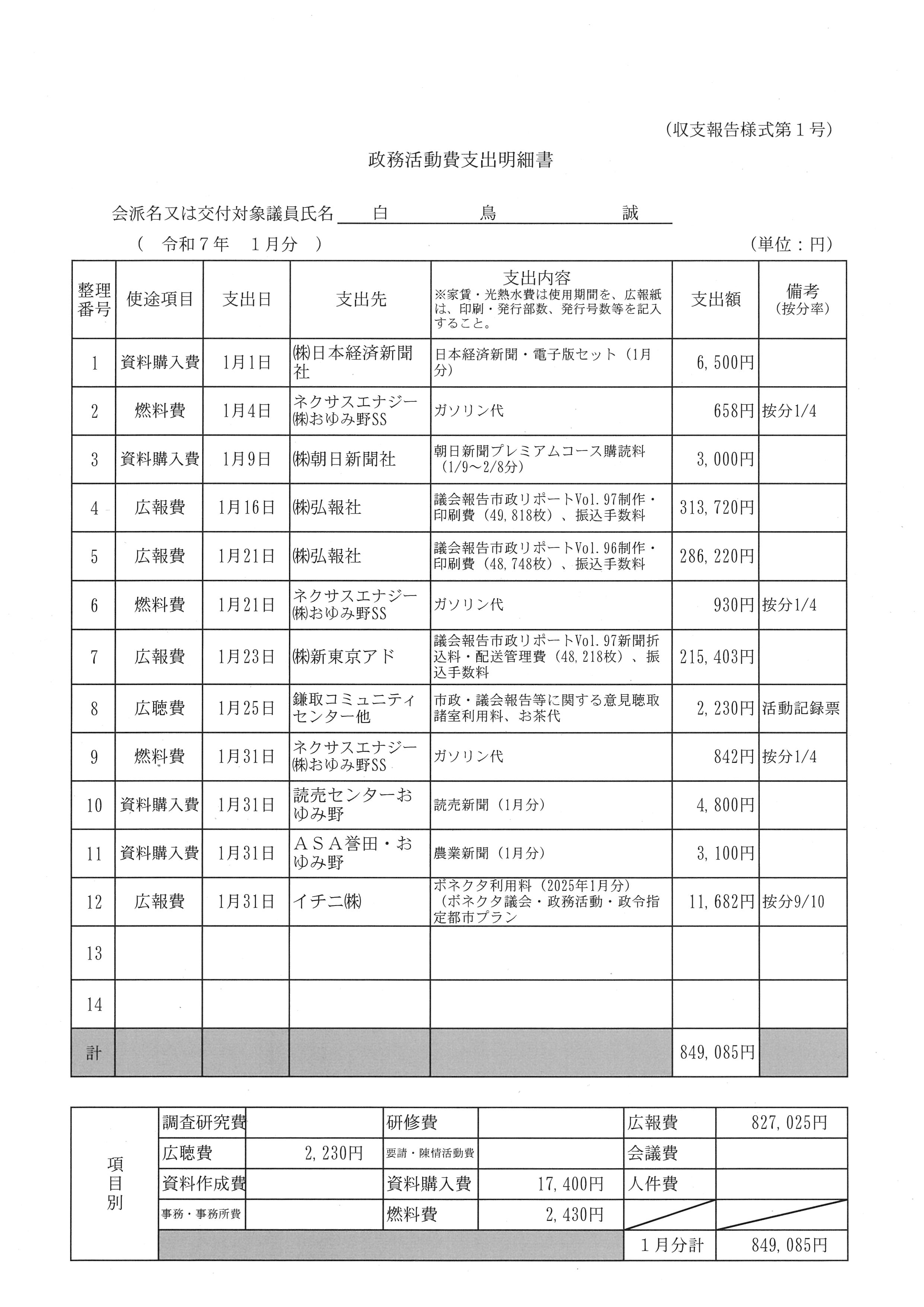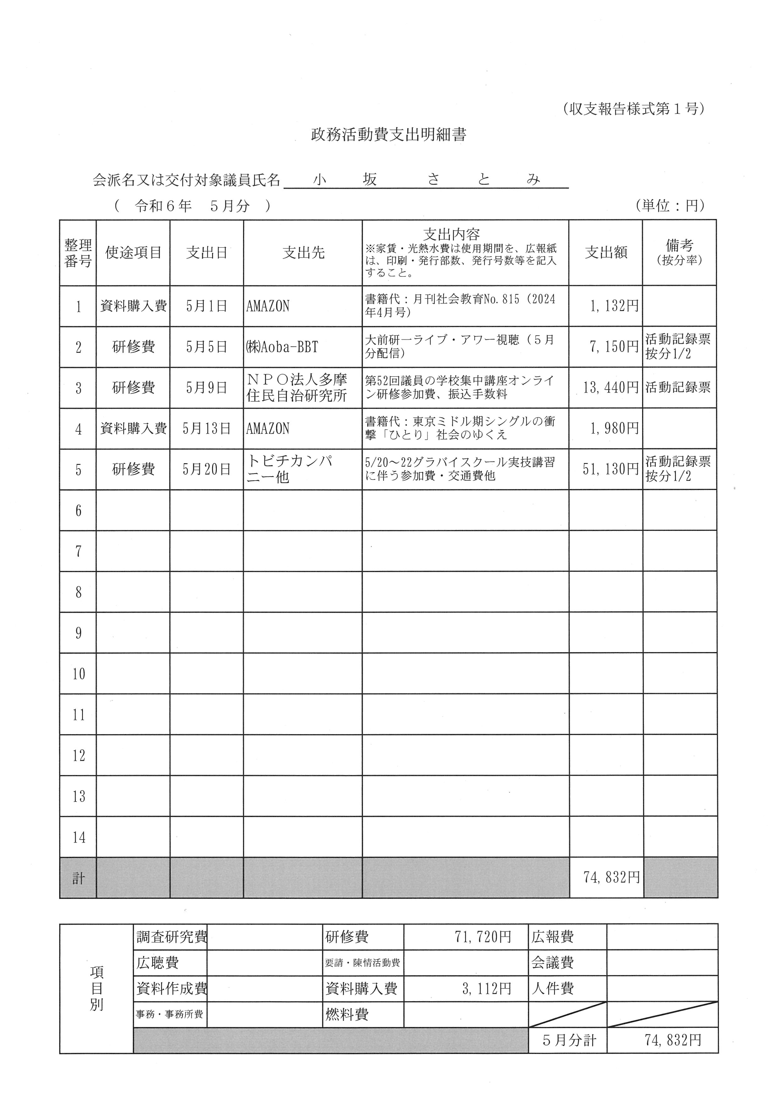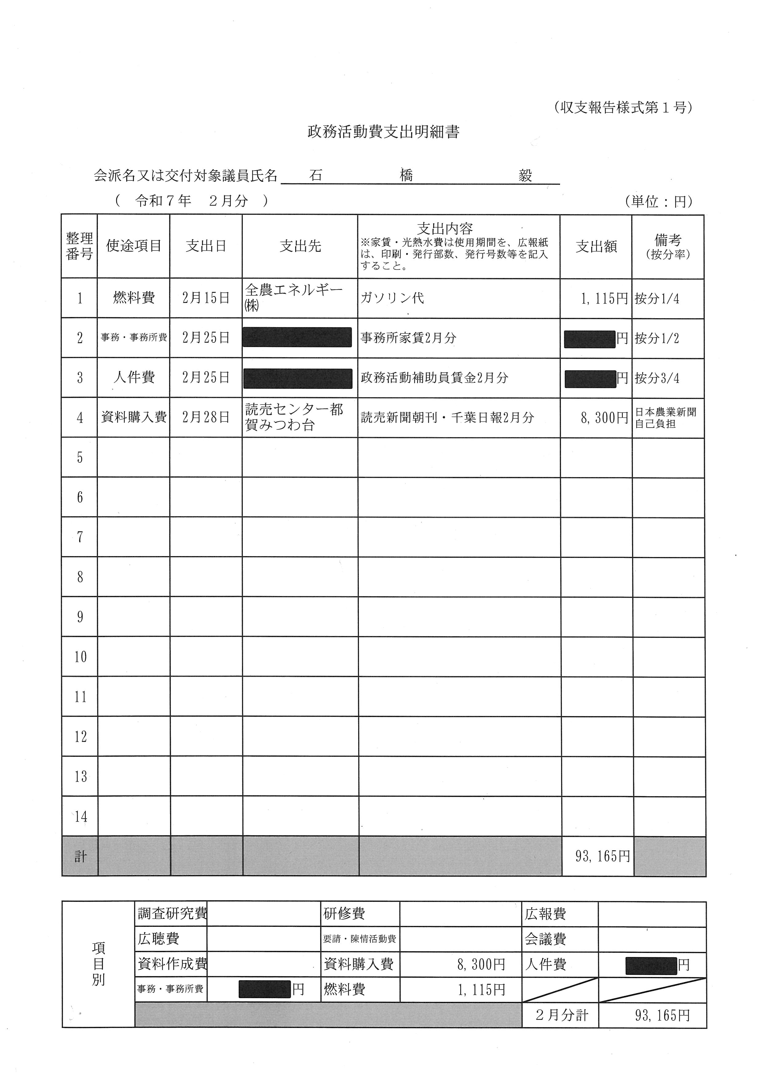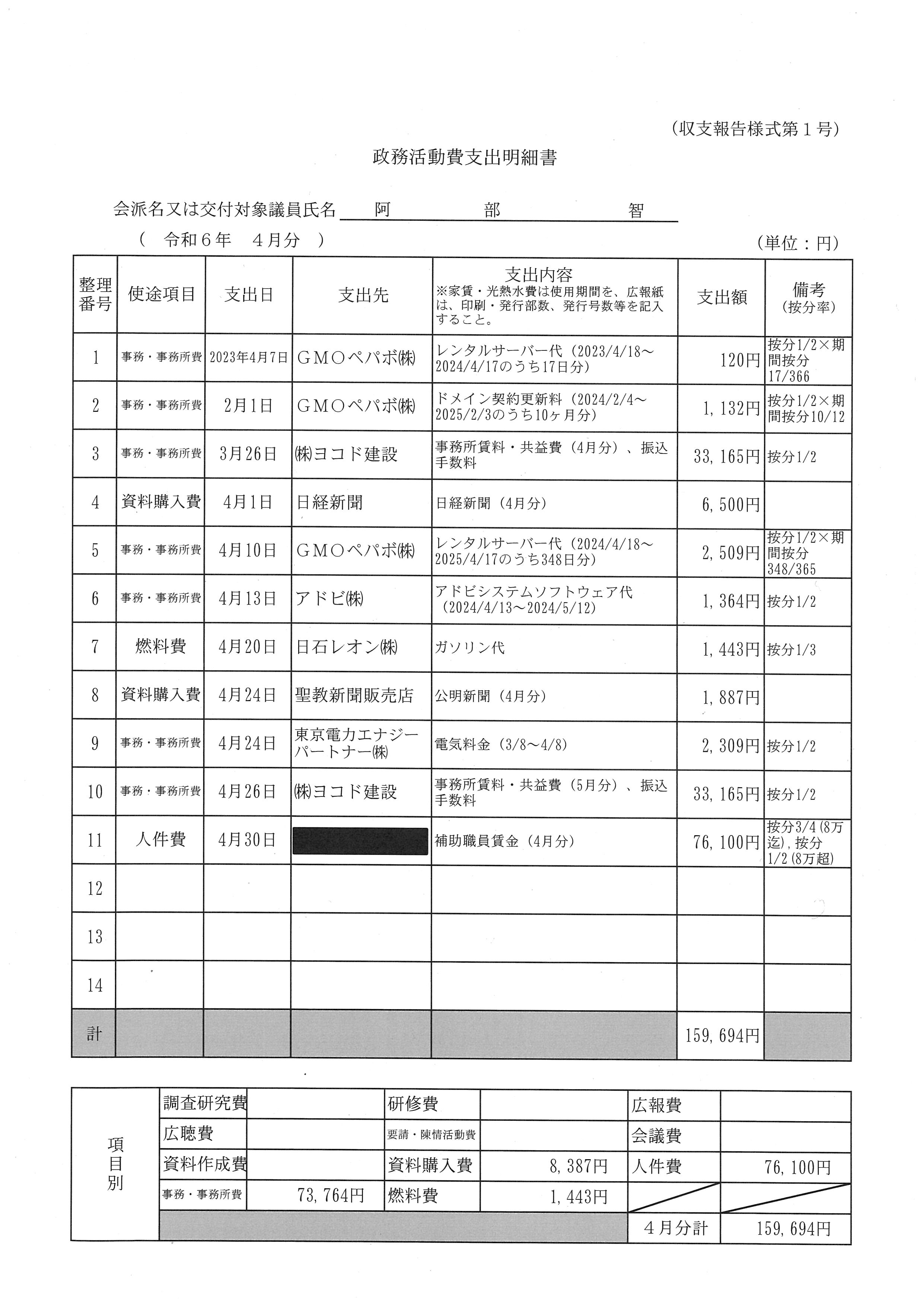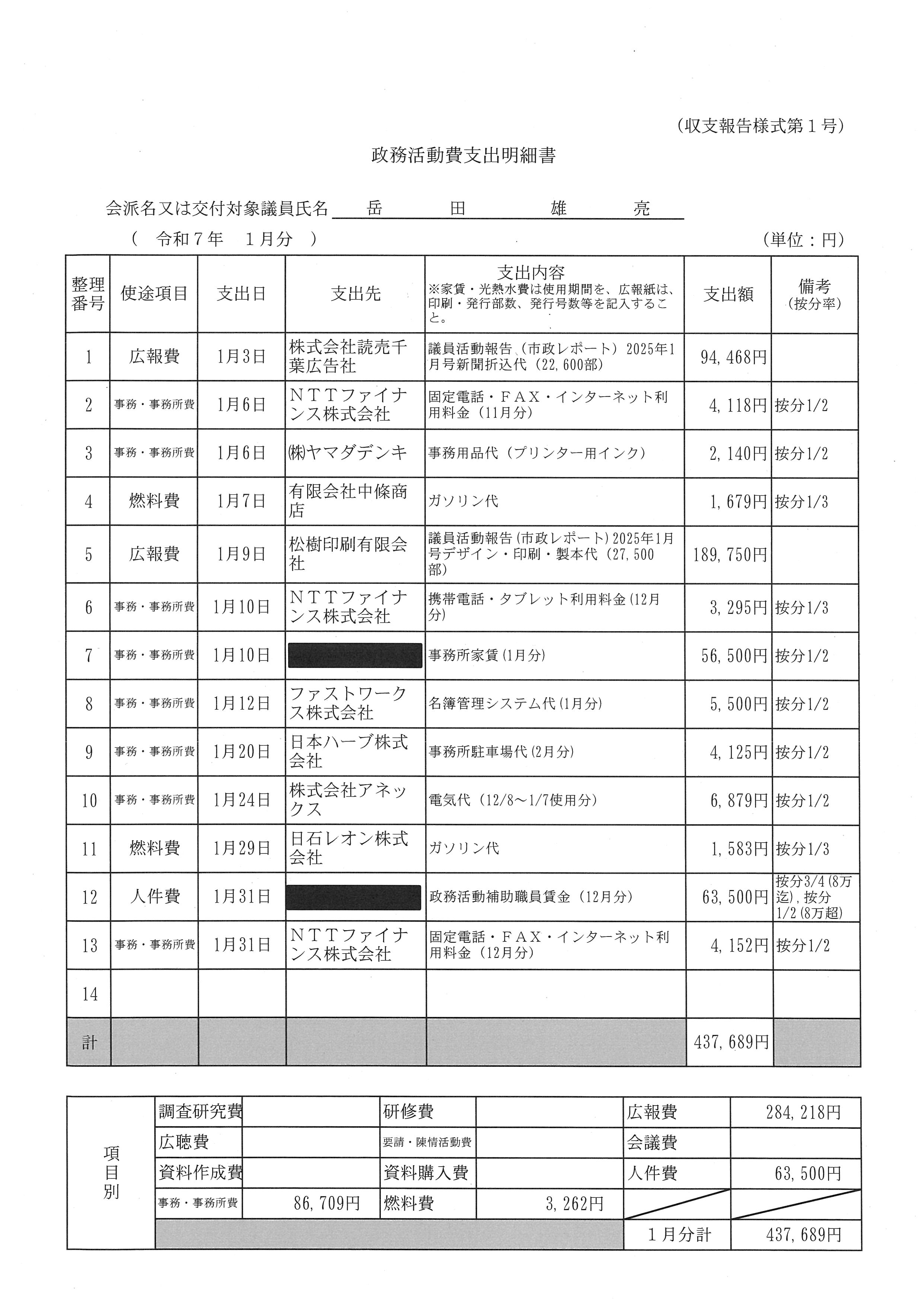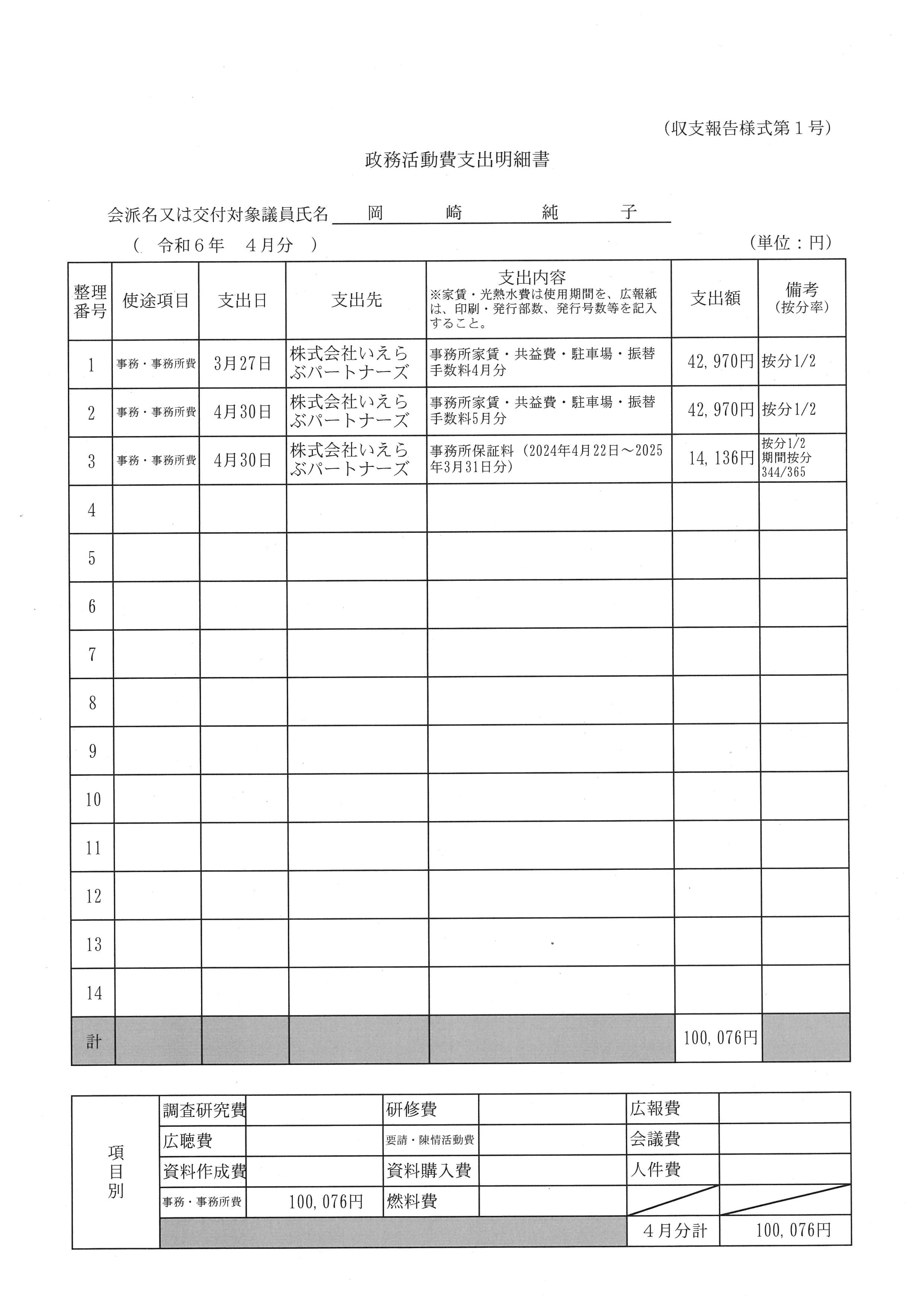 千葉市議会トップページ > 広報・情報公開 > 政務活動費 > 令和6年度交付分(政務活動費収支報告書)