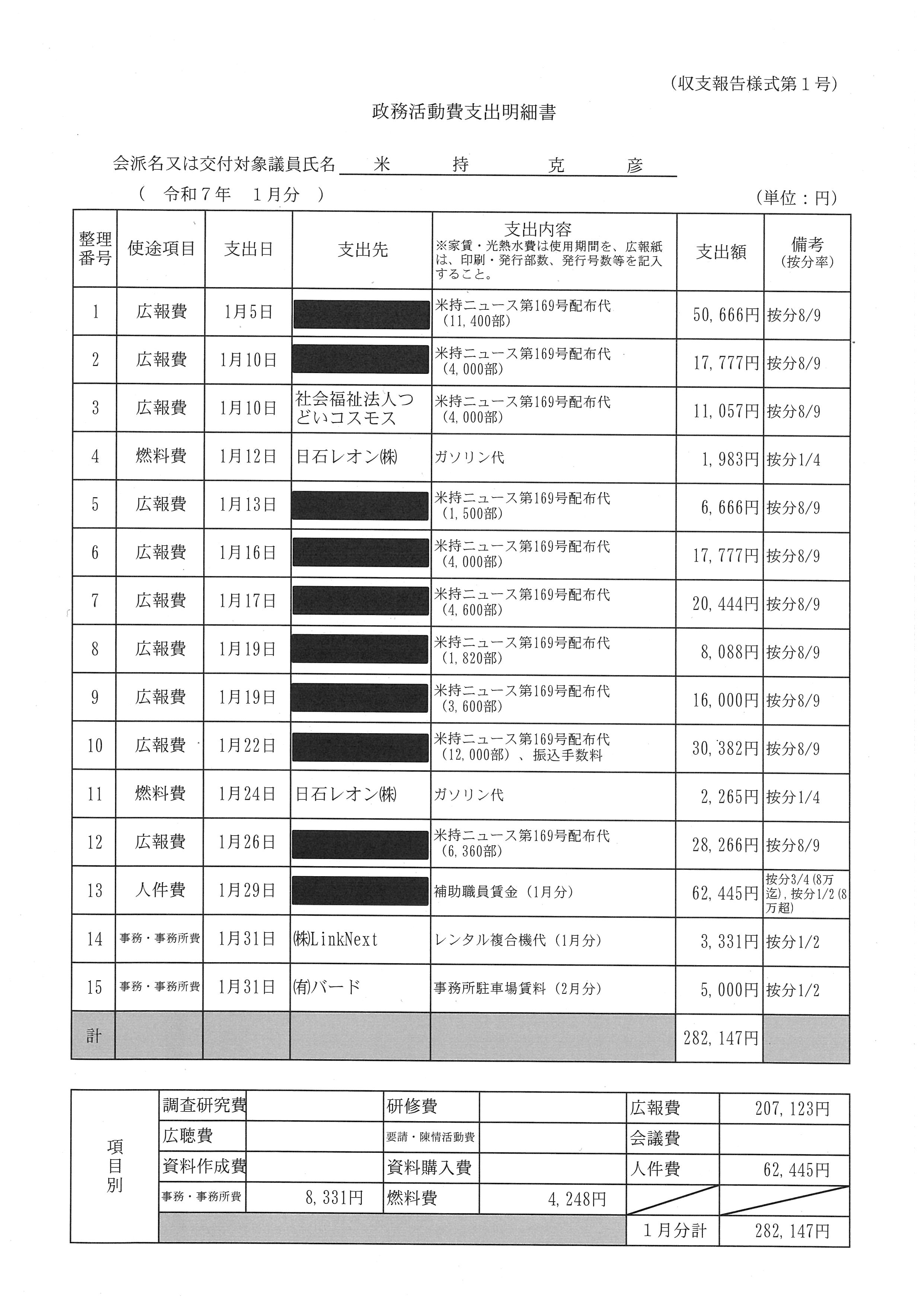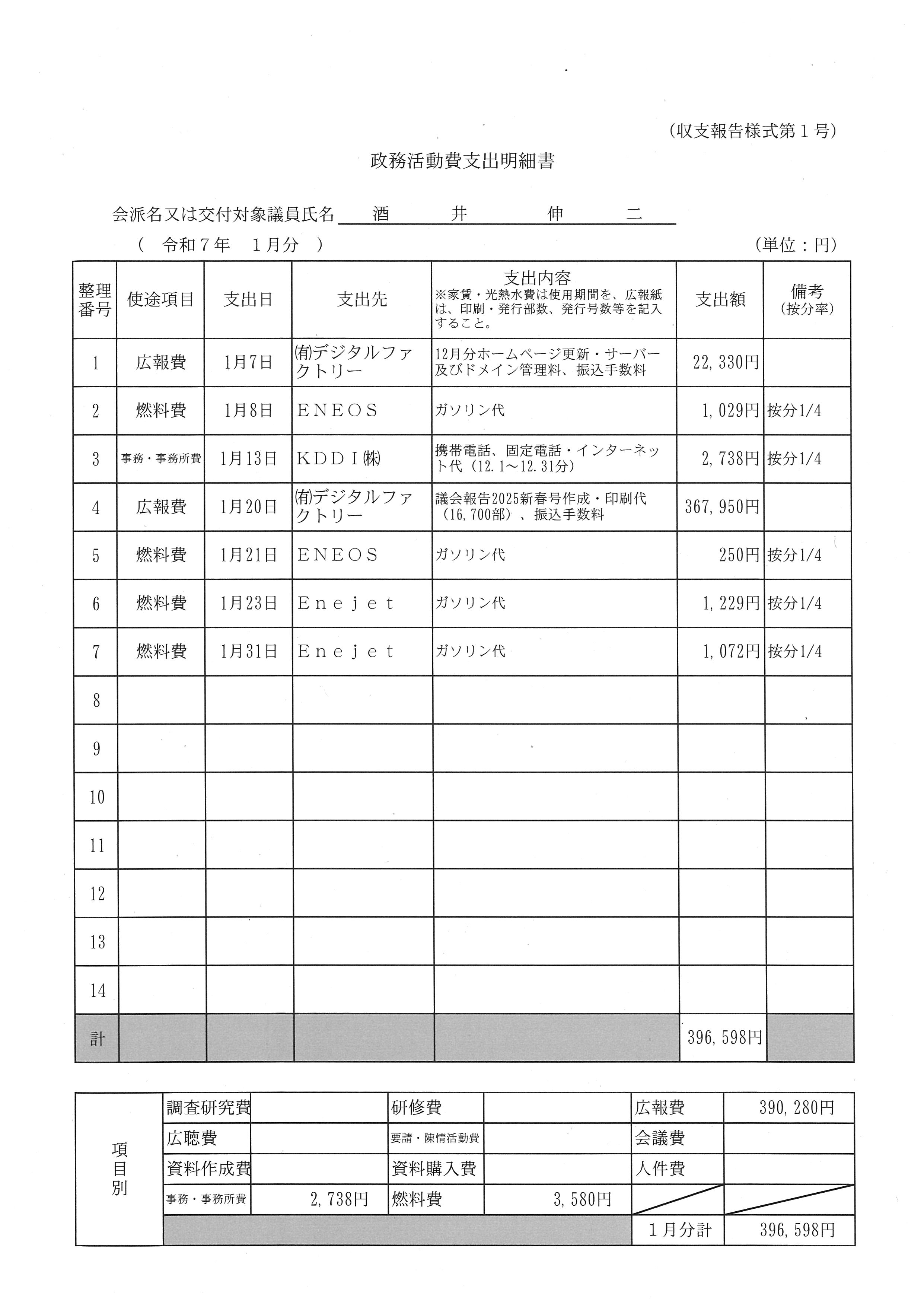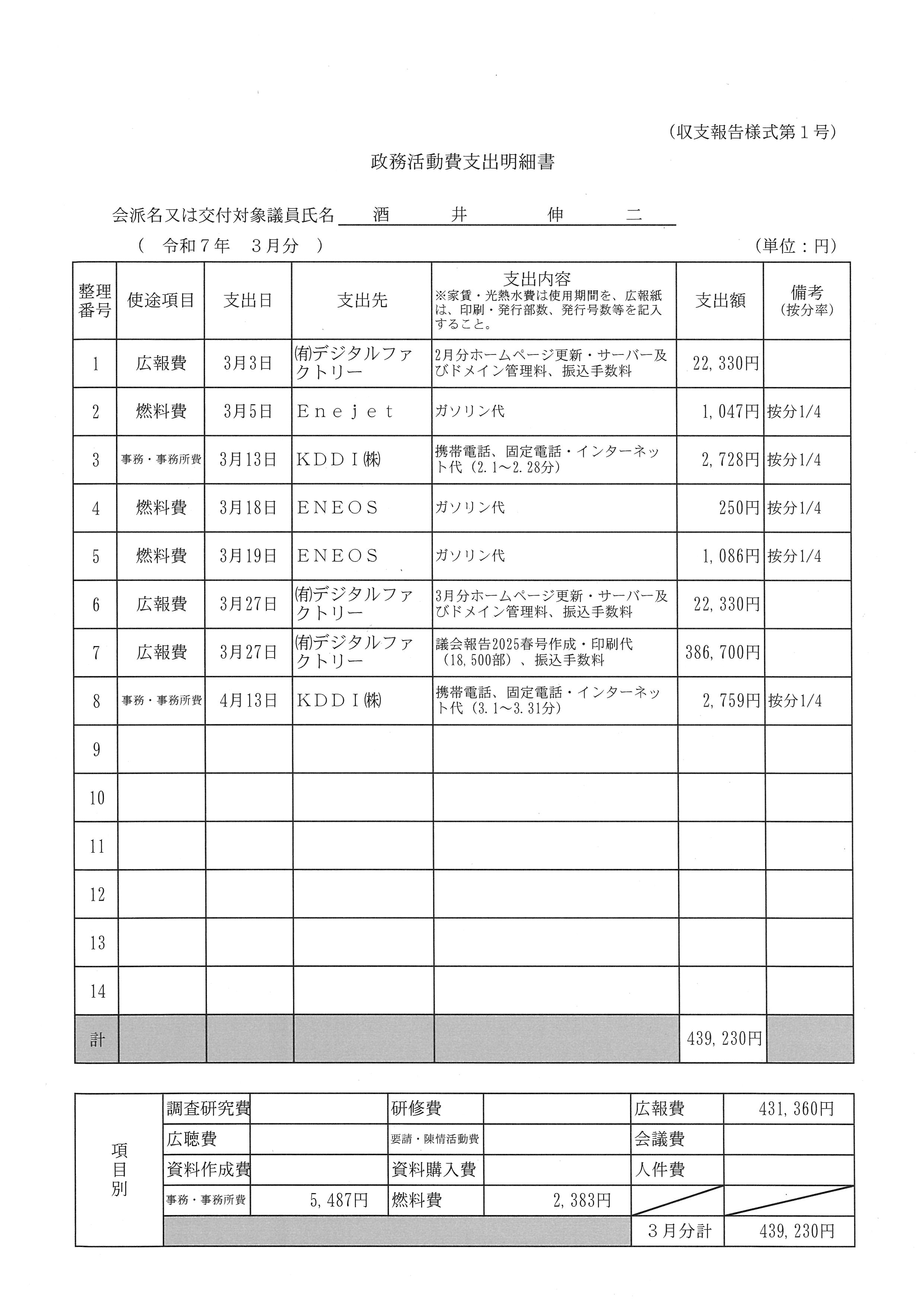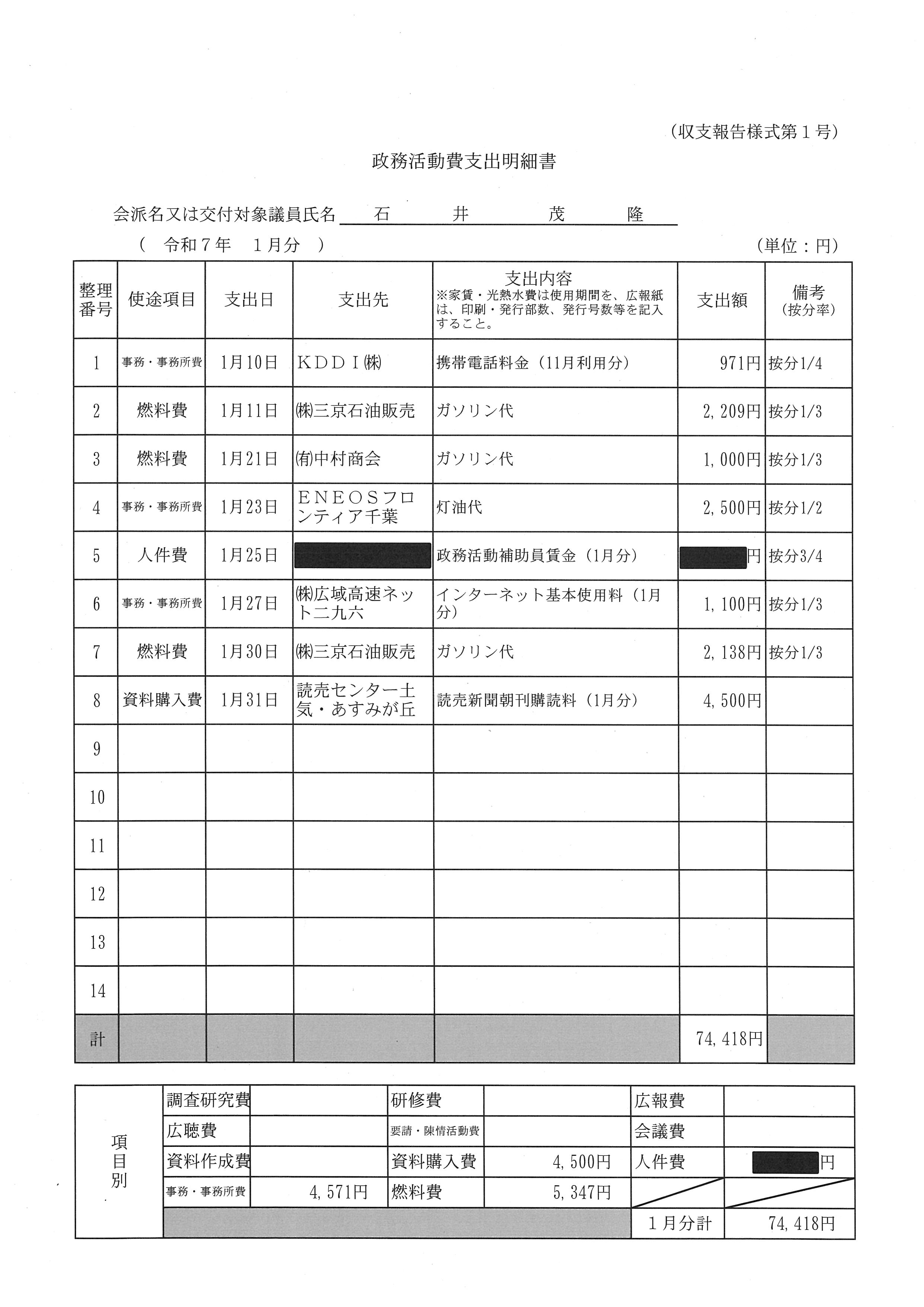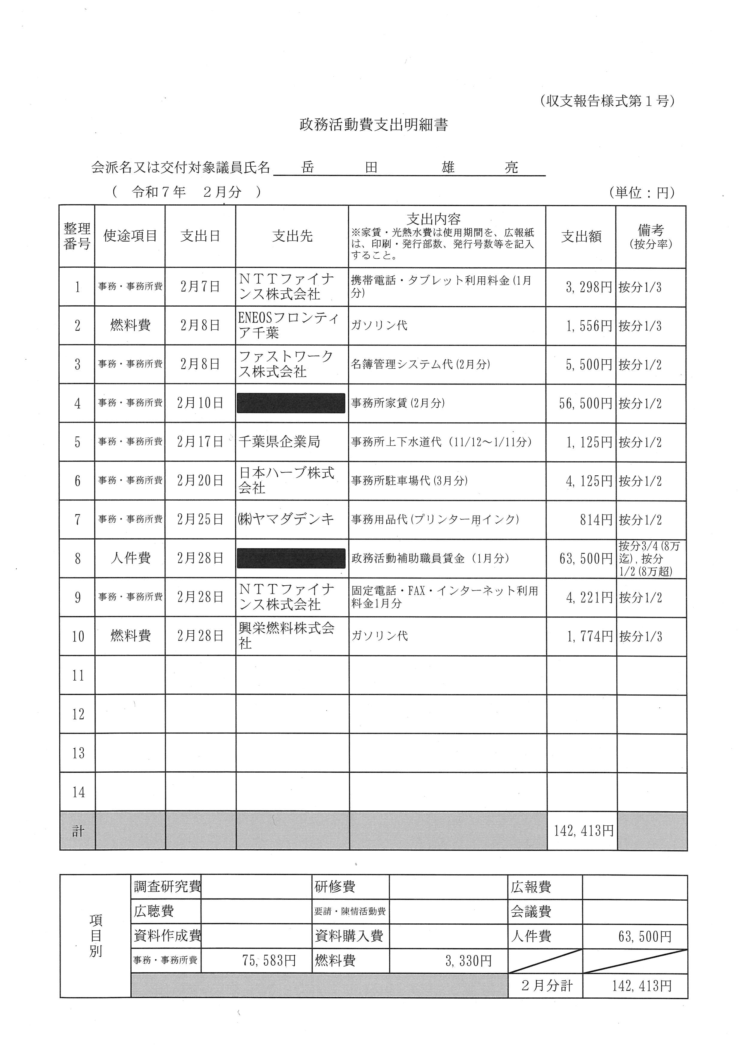 千葉市議会トップページ > 広報・情報公開 > 政務活動費 > 令和6年度交付分(政務活動費収支報告書)