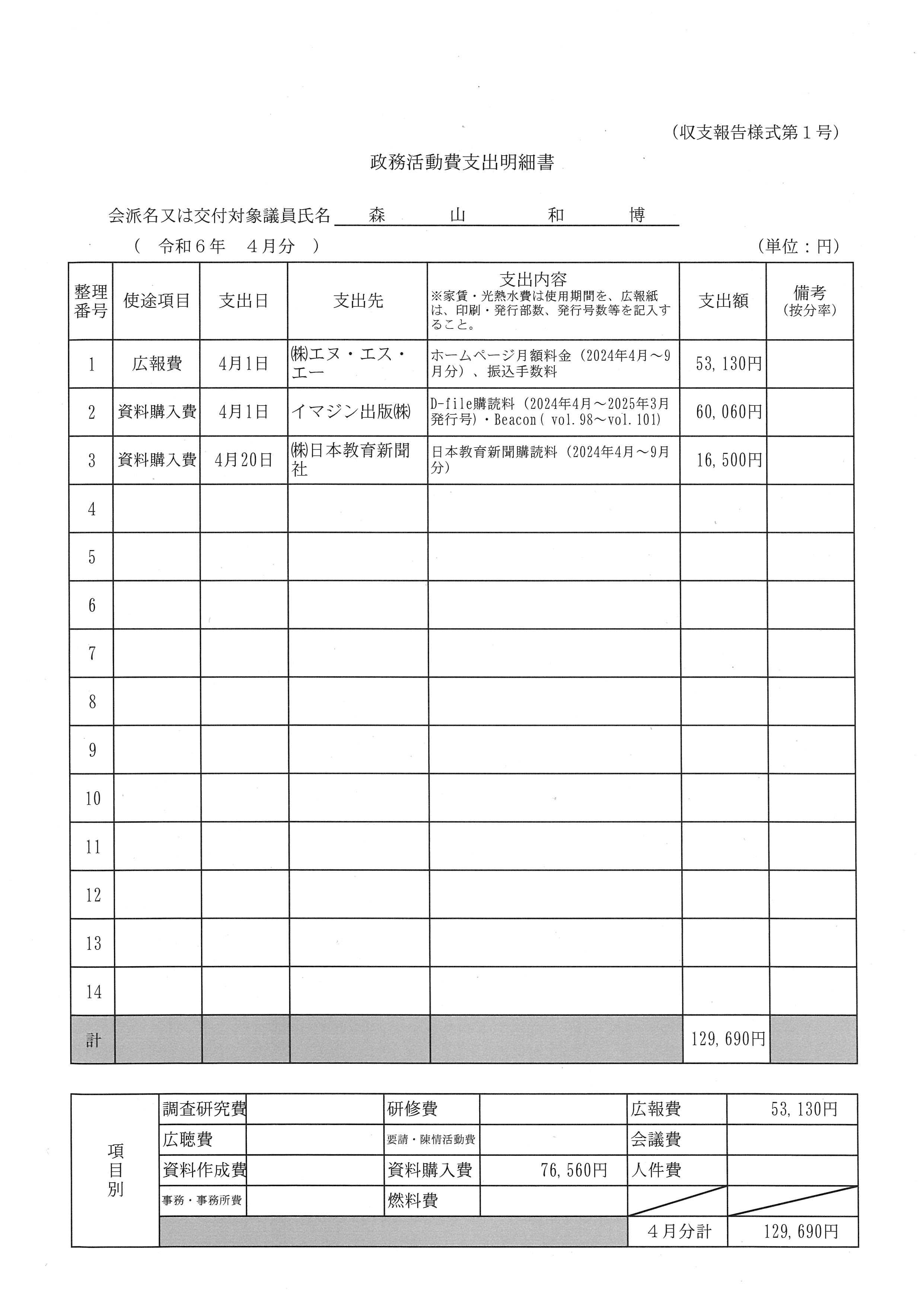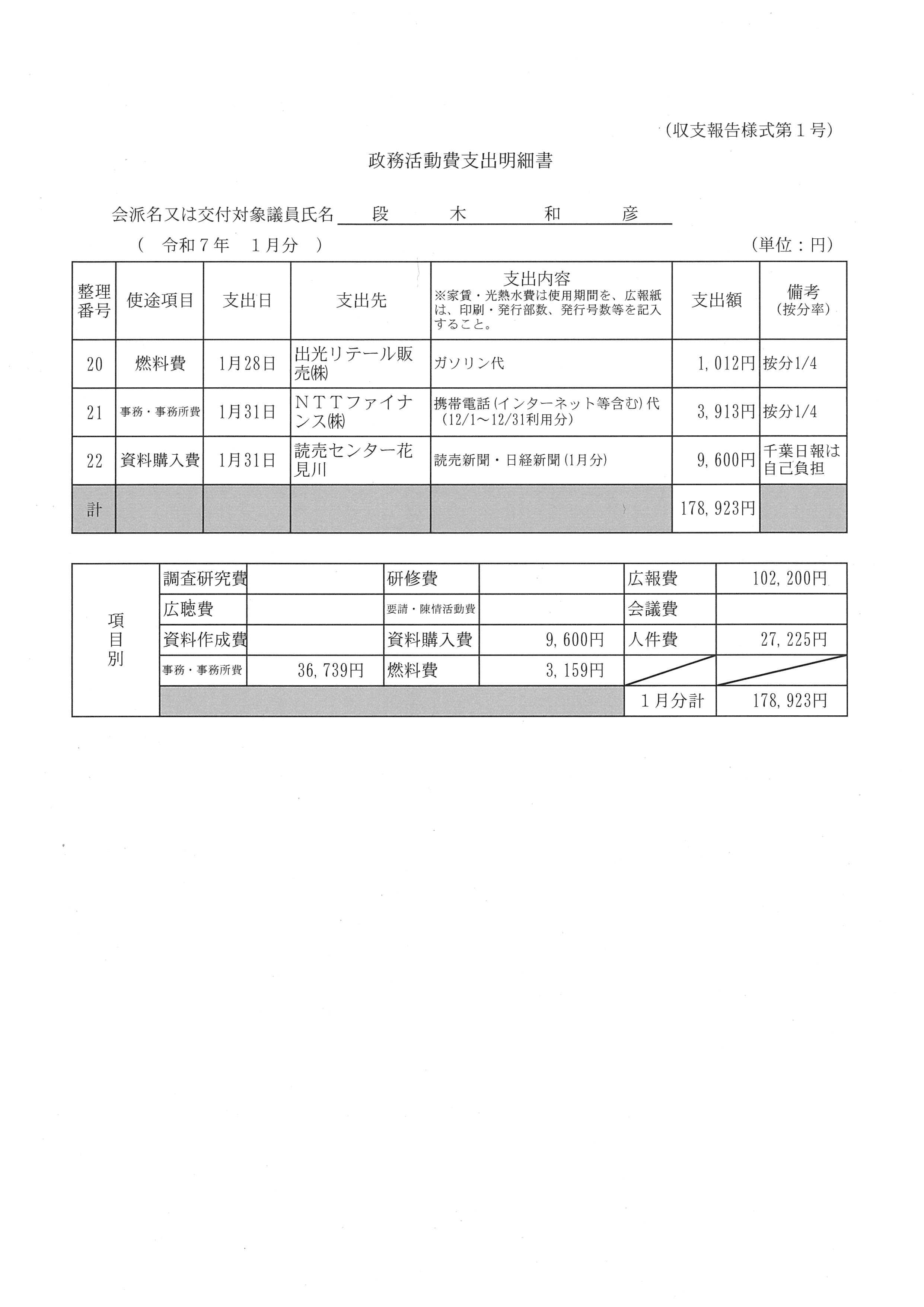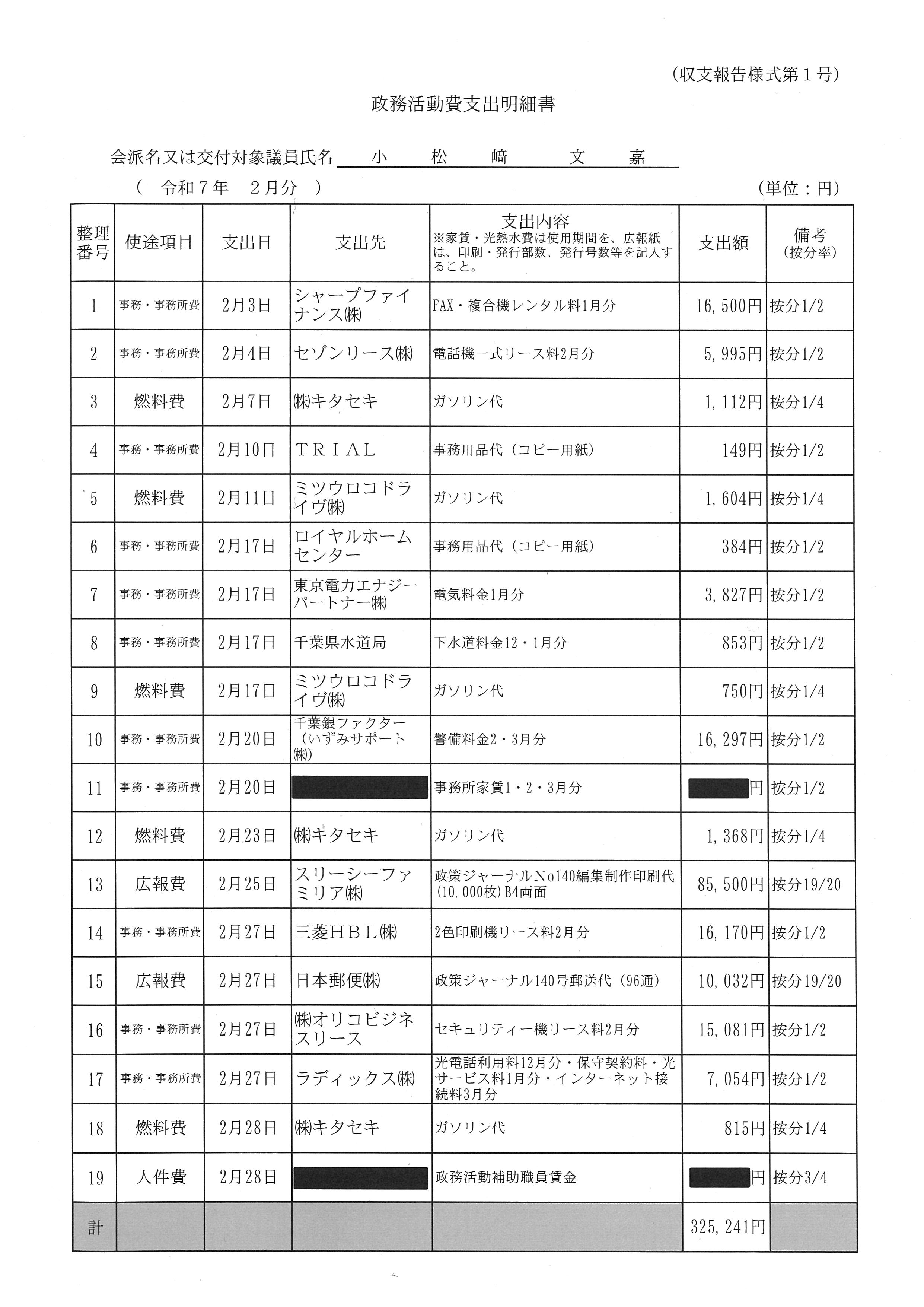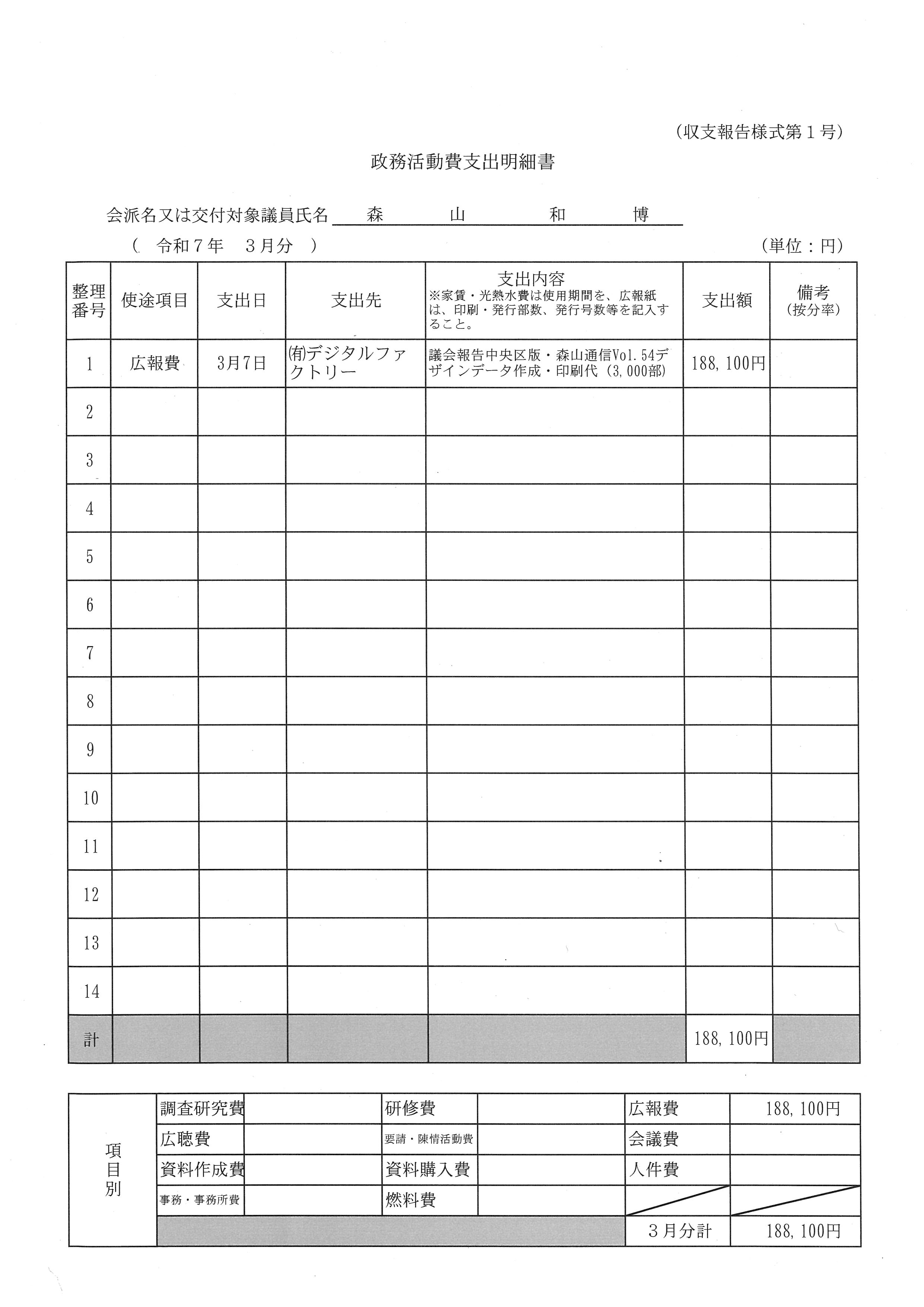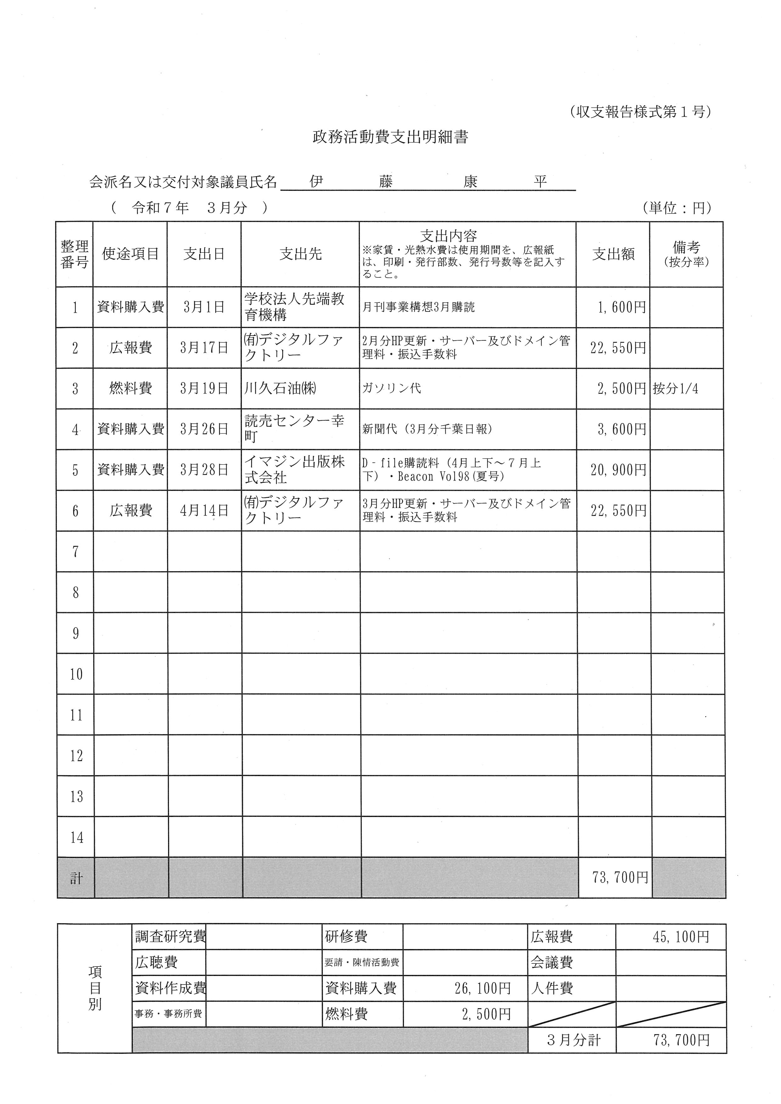 千葉市議会トップページ > 広報・情報公開 > 政務活動費 > 令和6年度交付分(政務活動費収支報告書)