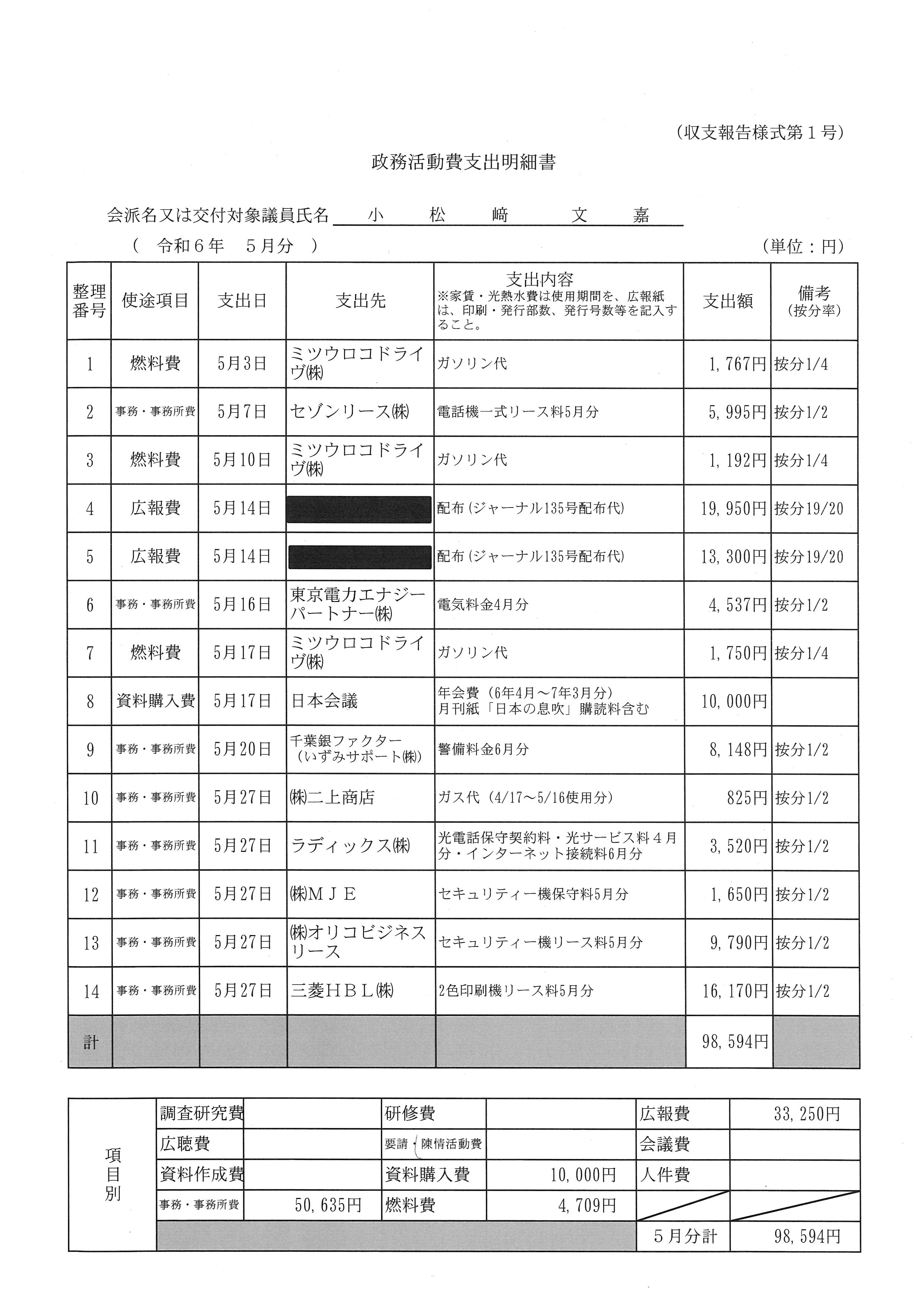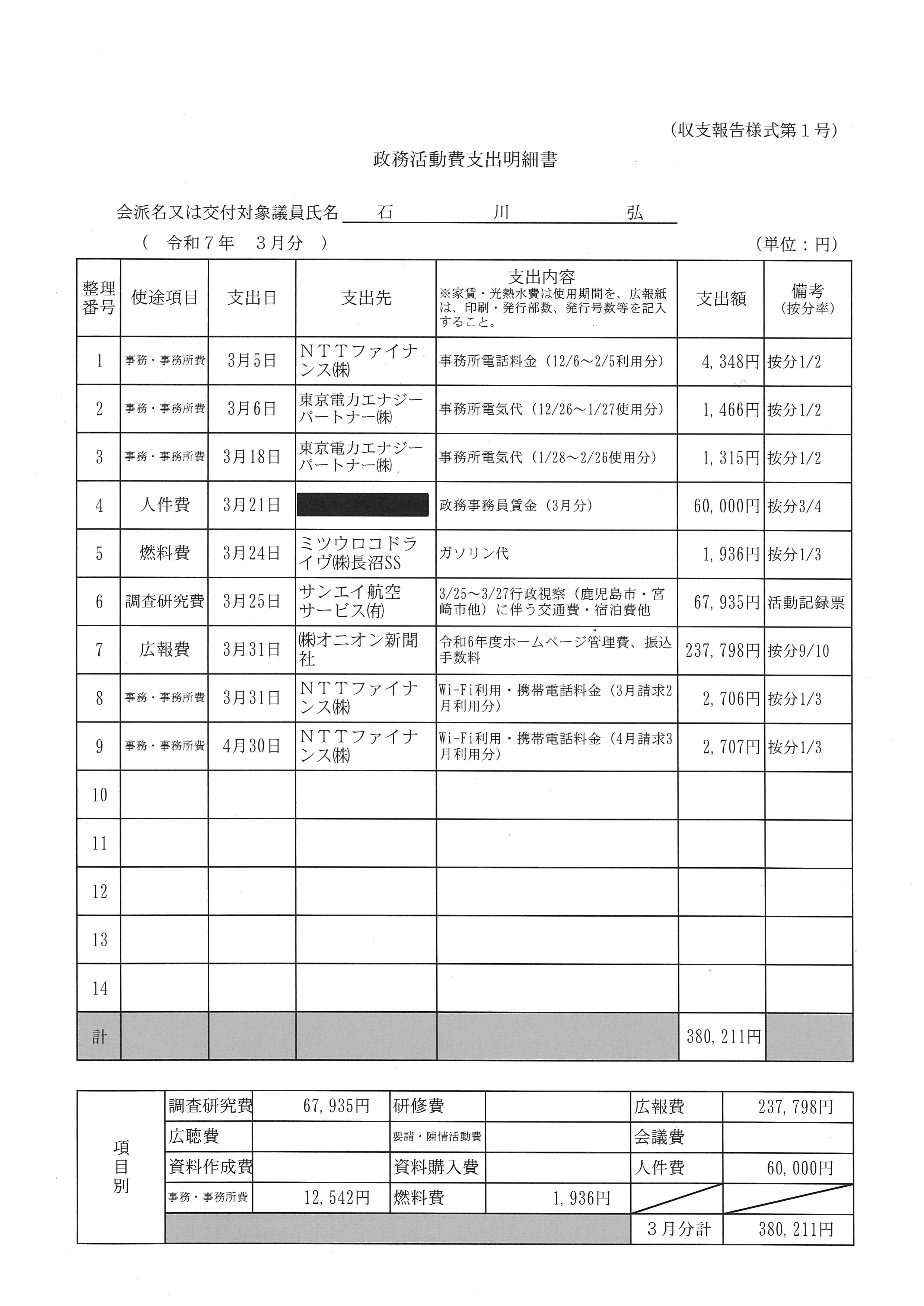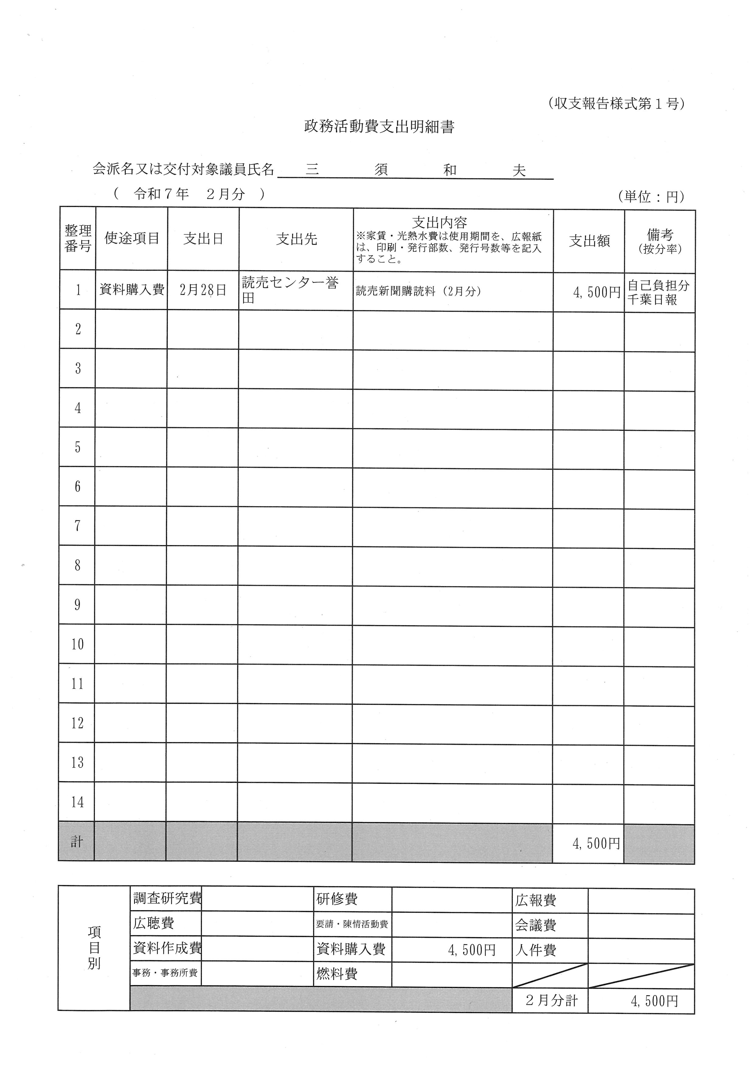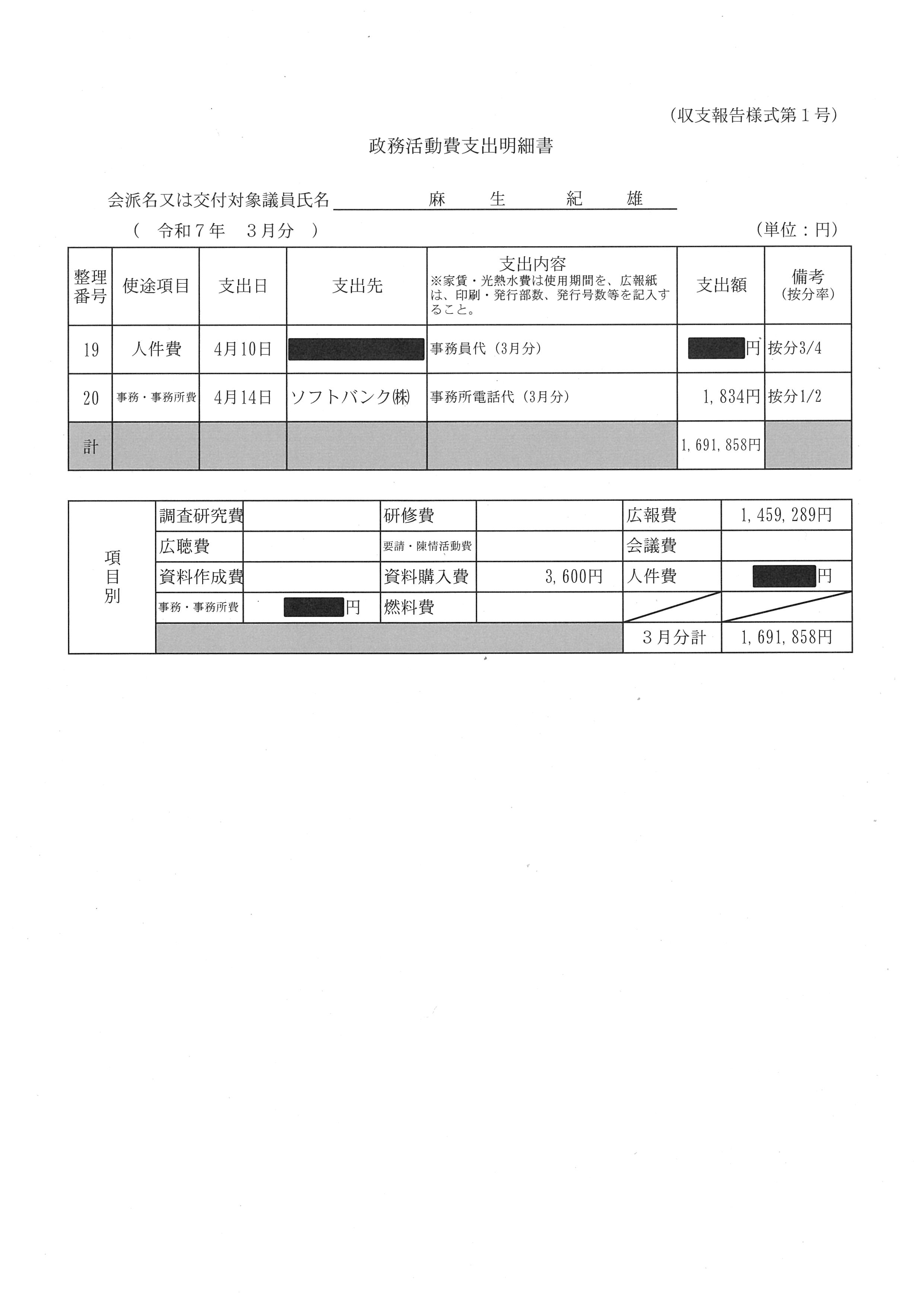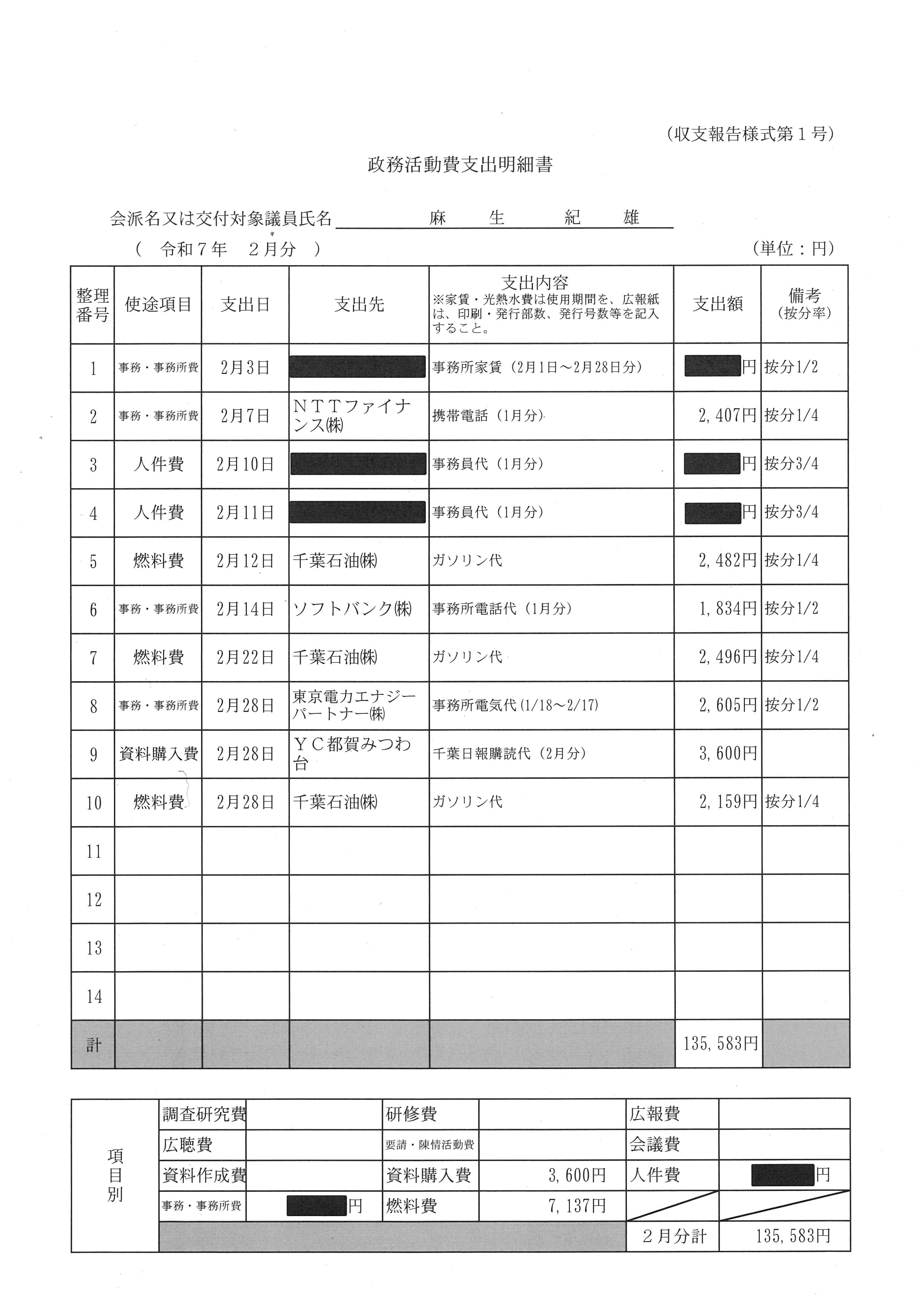 千葉市議会トップページ > 広報・情報公開 > 政務活動費 > 令和6年度交付分(政務活動費収支報告書)