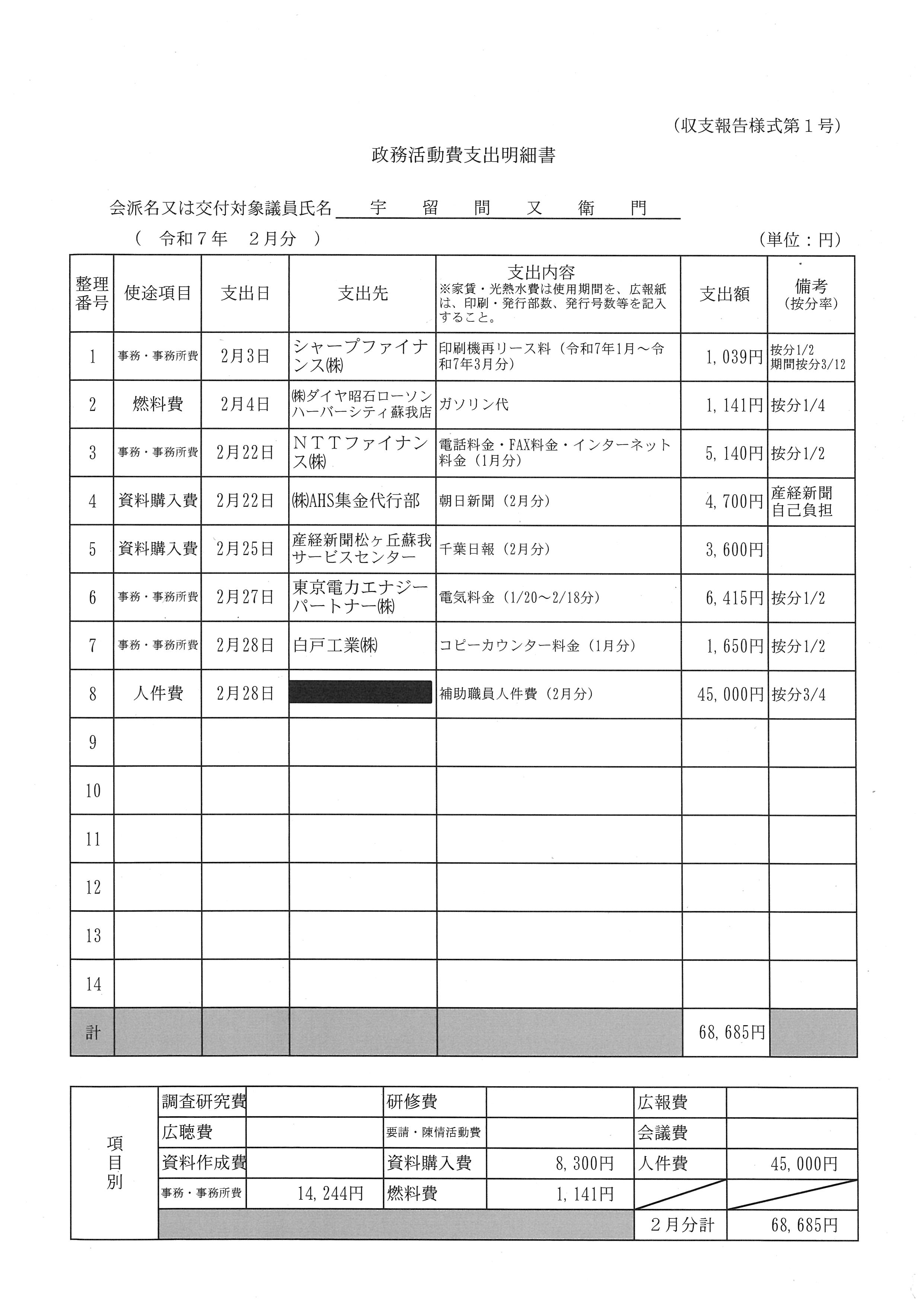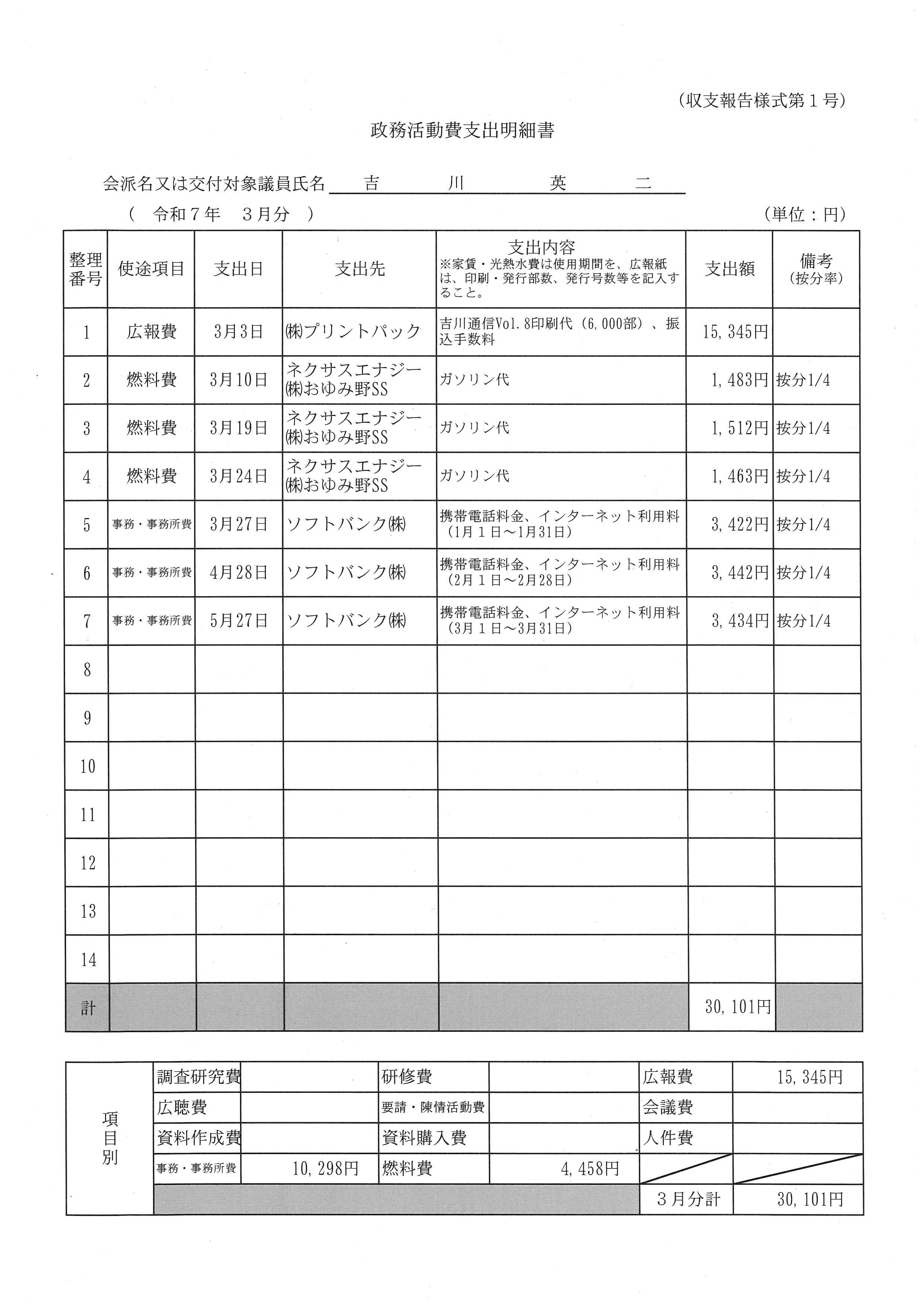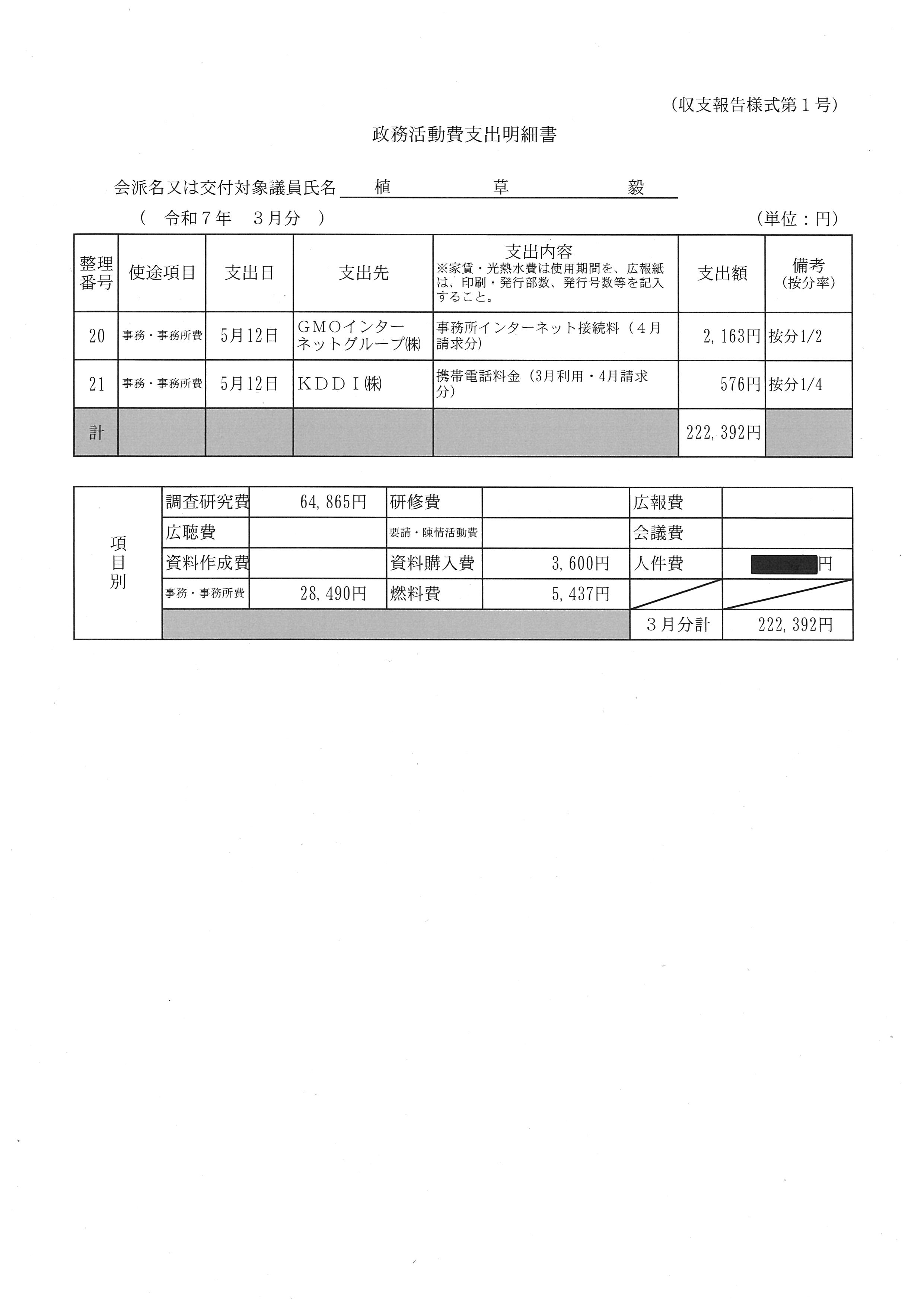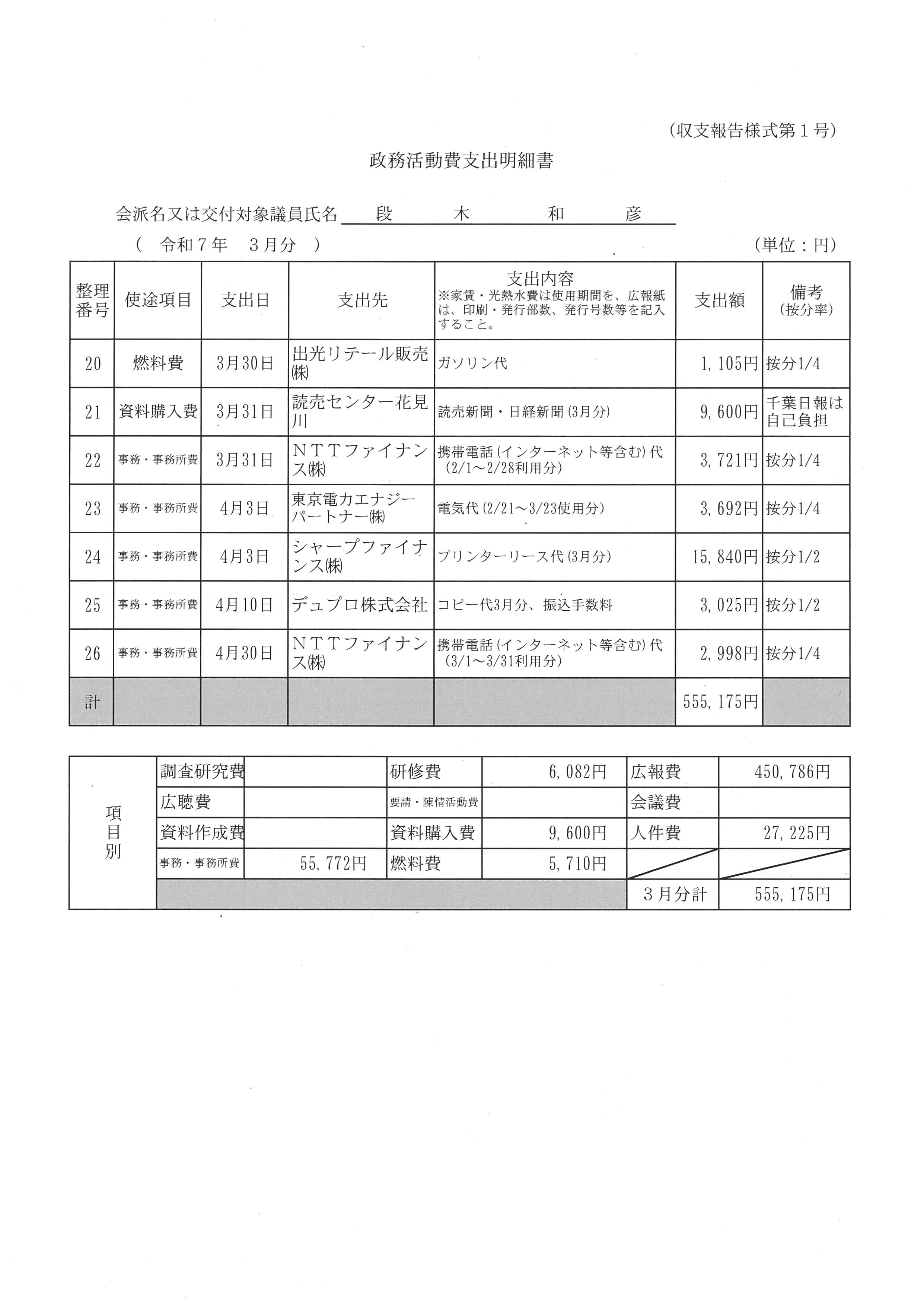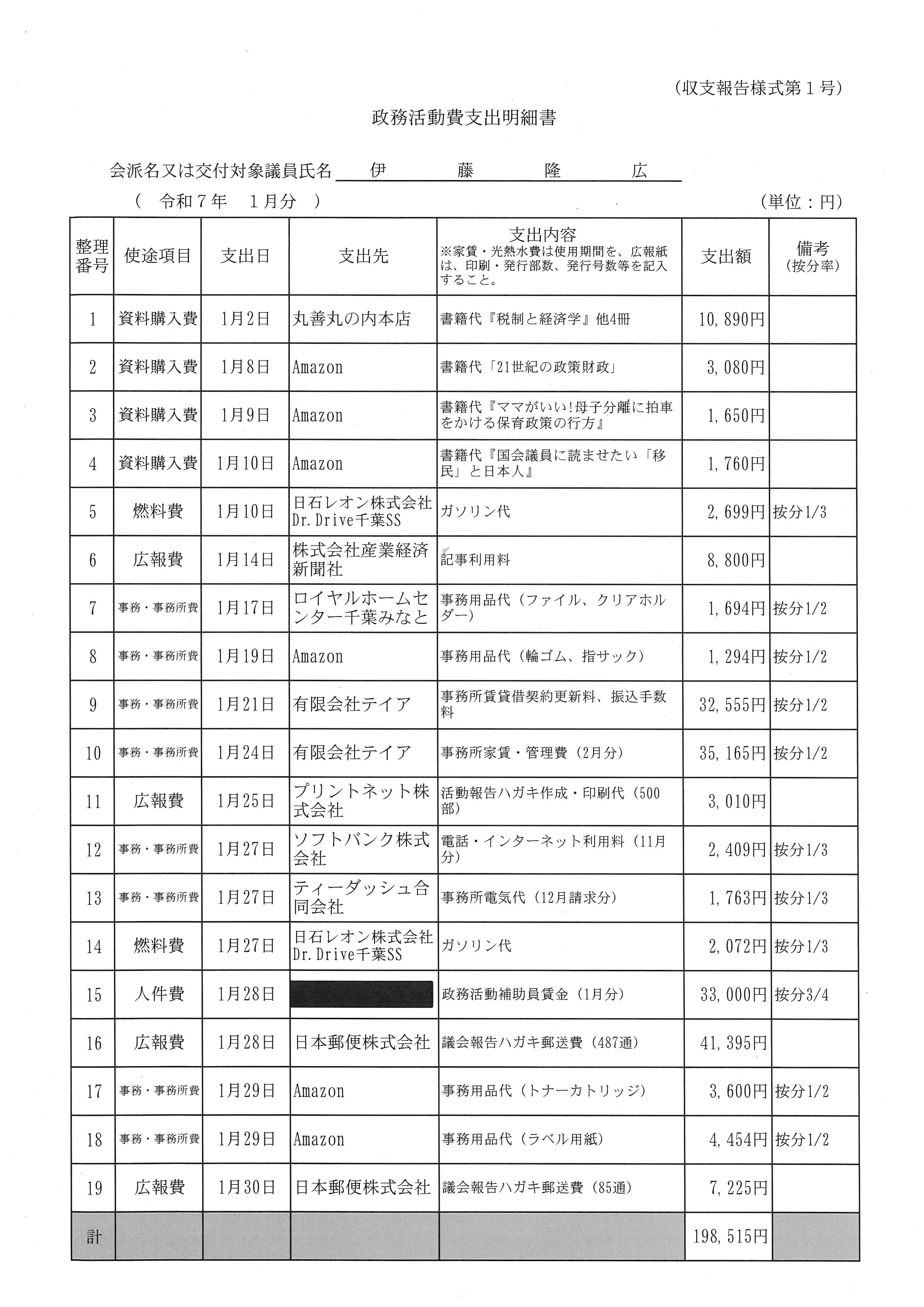 千葉市議会トップページ > 広報・情報公開 > 政務活動費 > 令和6年度交付分(政務活動費収支報告書)