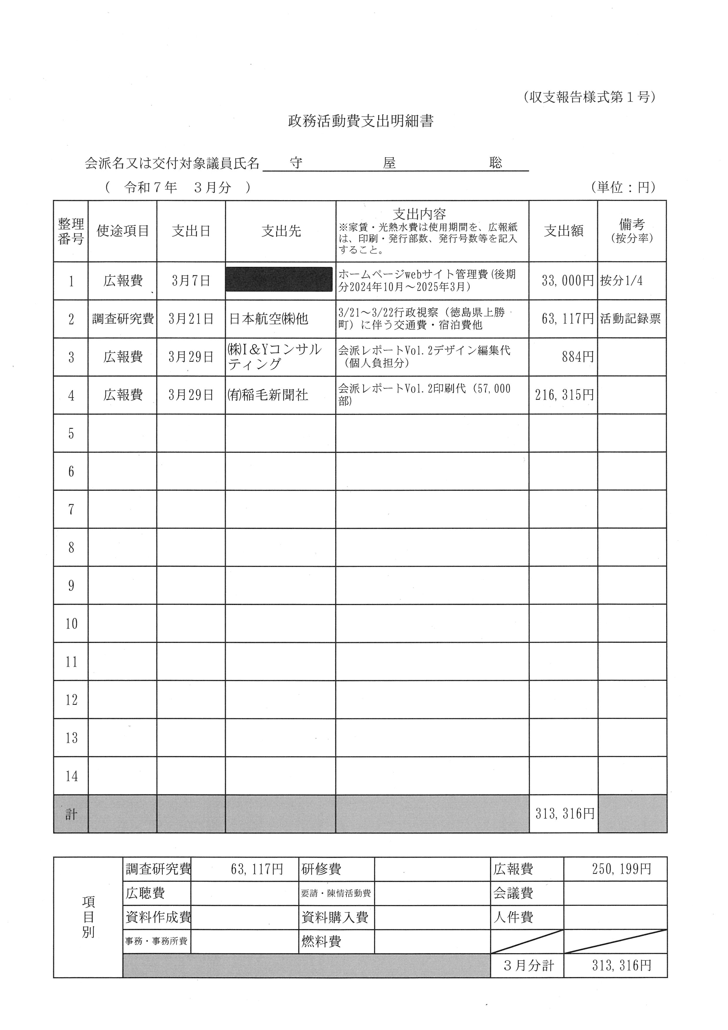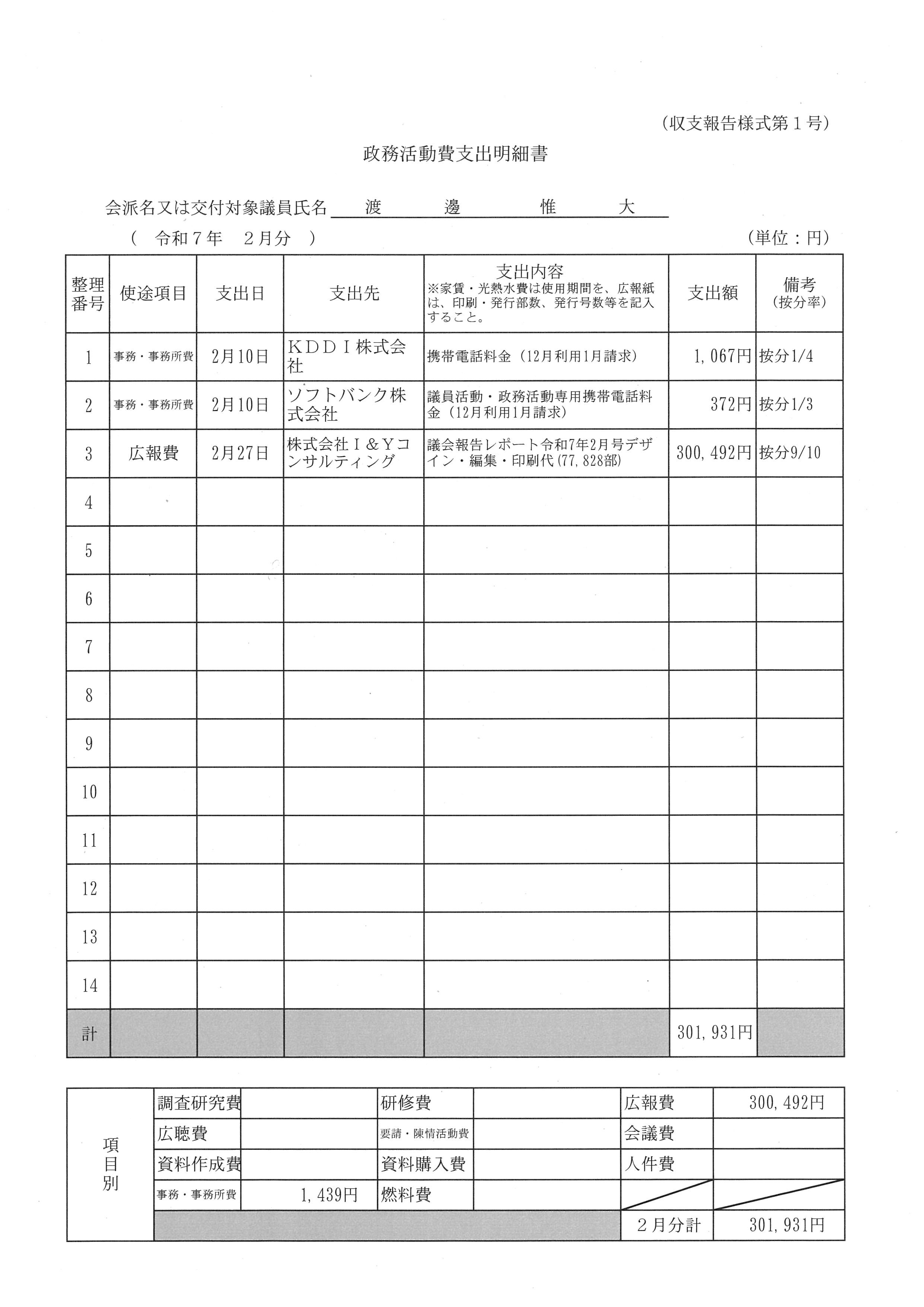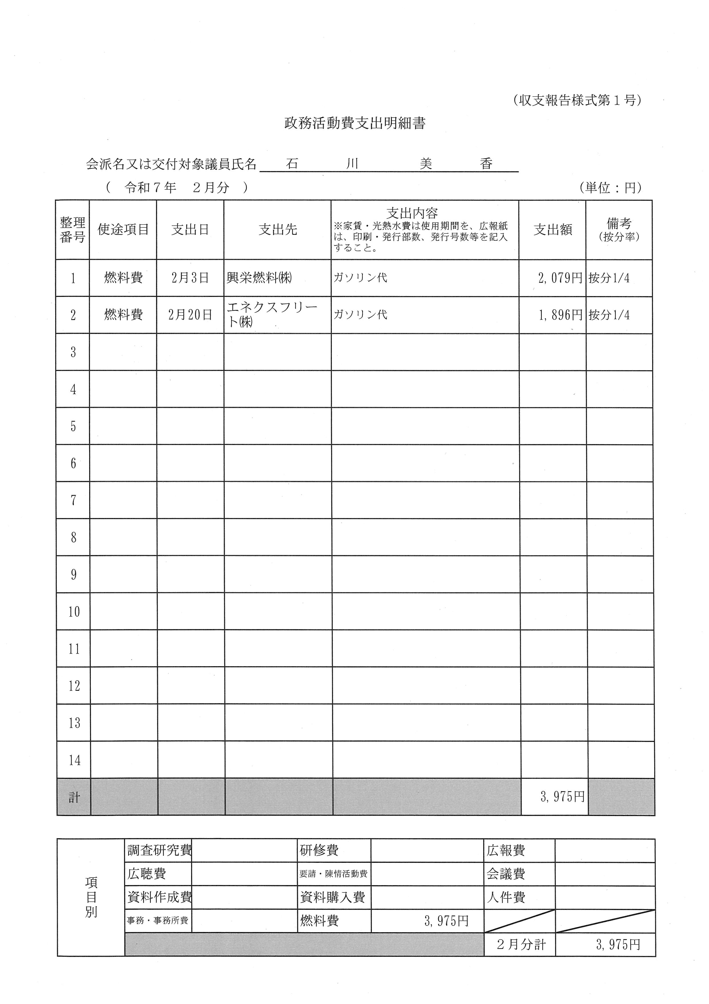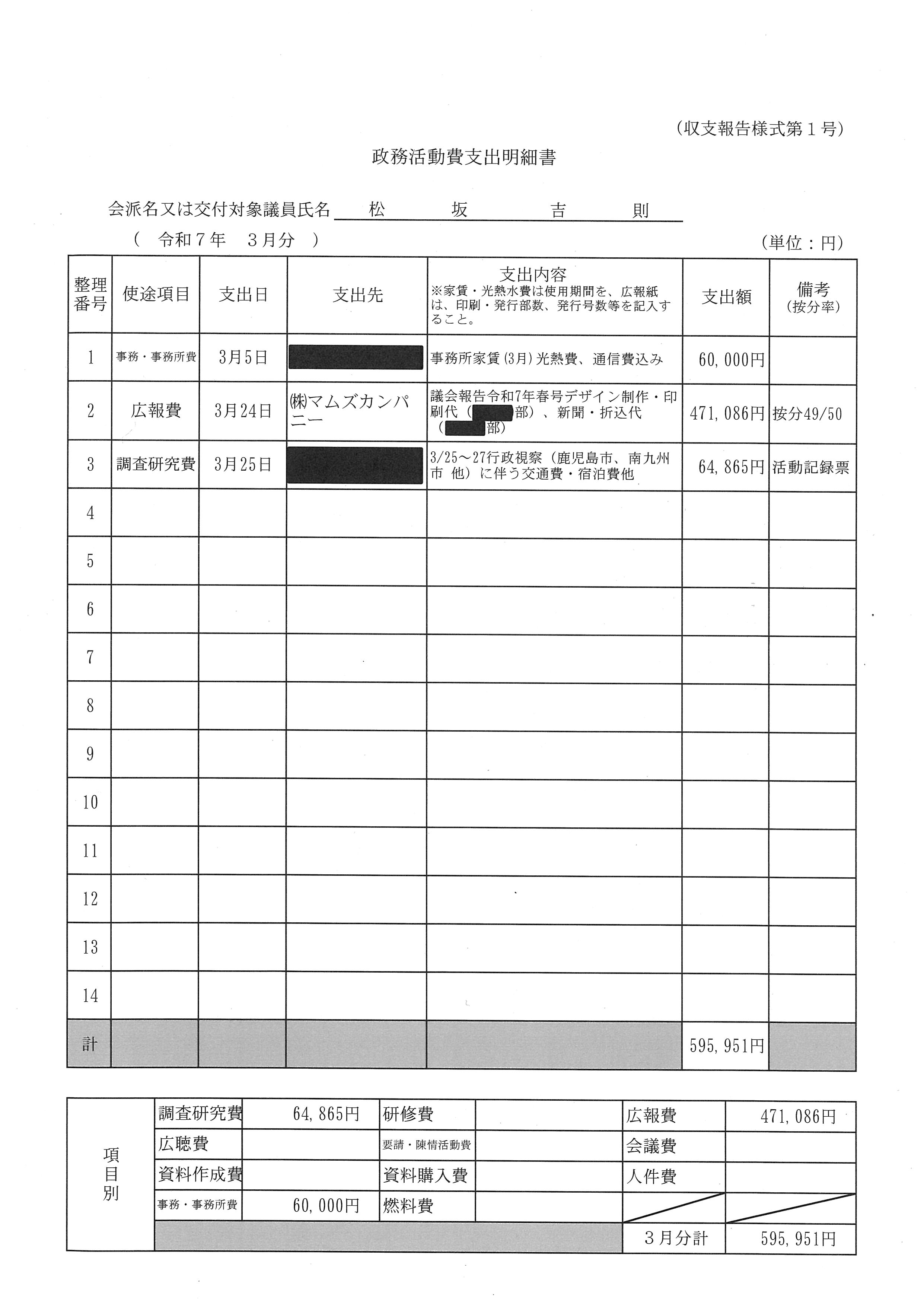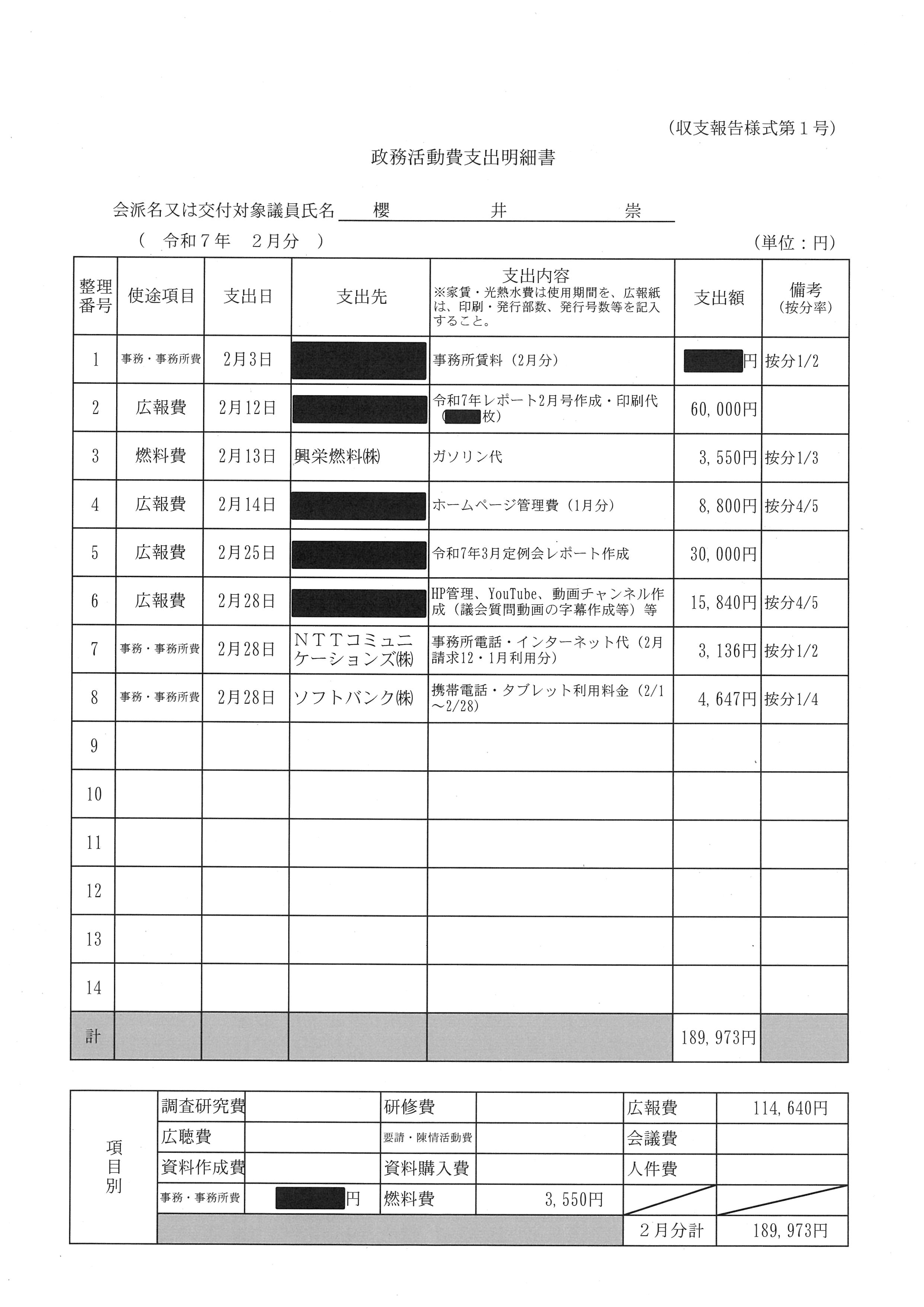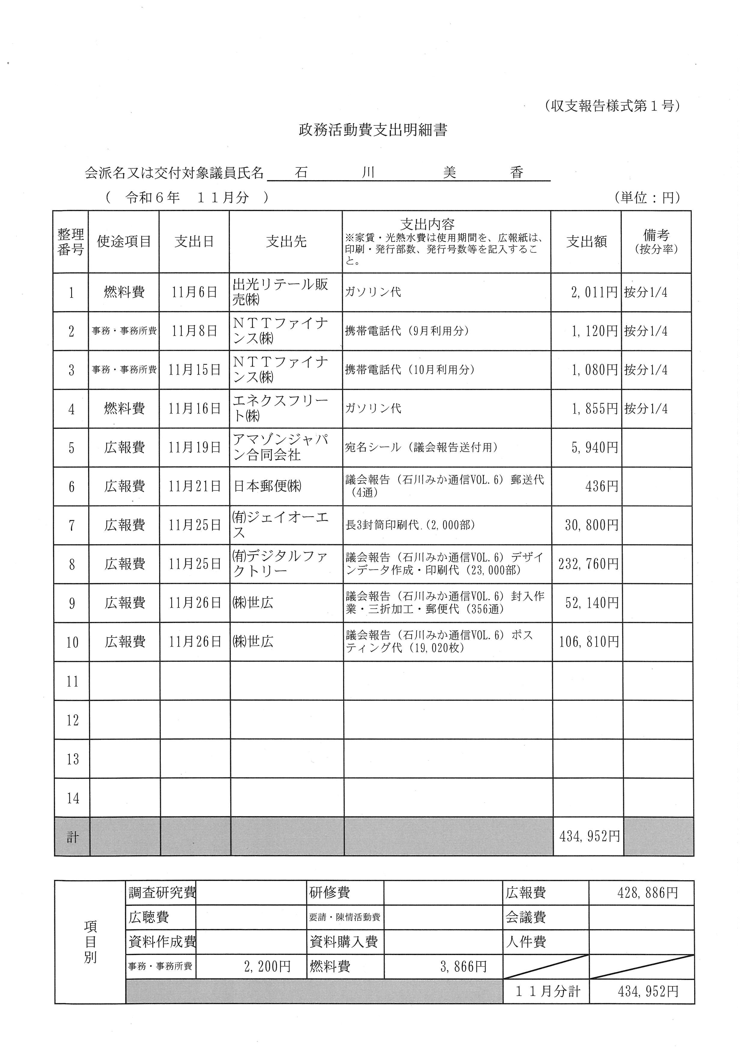 千葉市議会トップページ > 広報・情報公開 > 政務活動費 > 令和6年度交付分(政務活動費収支報告書)