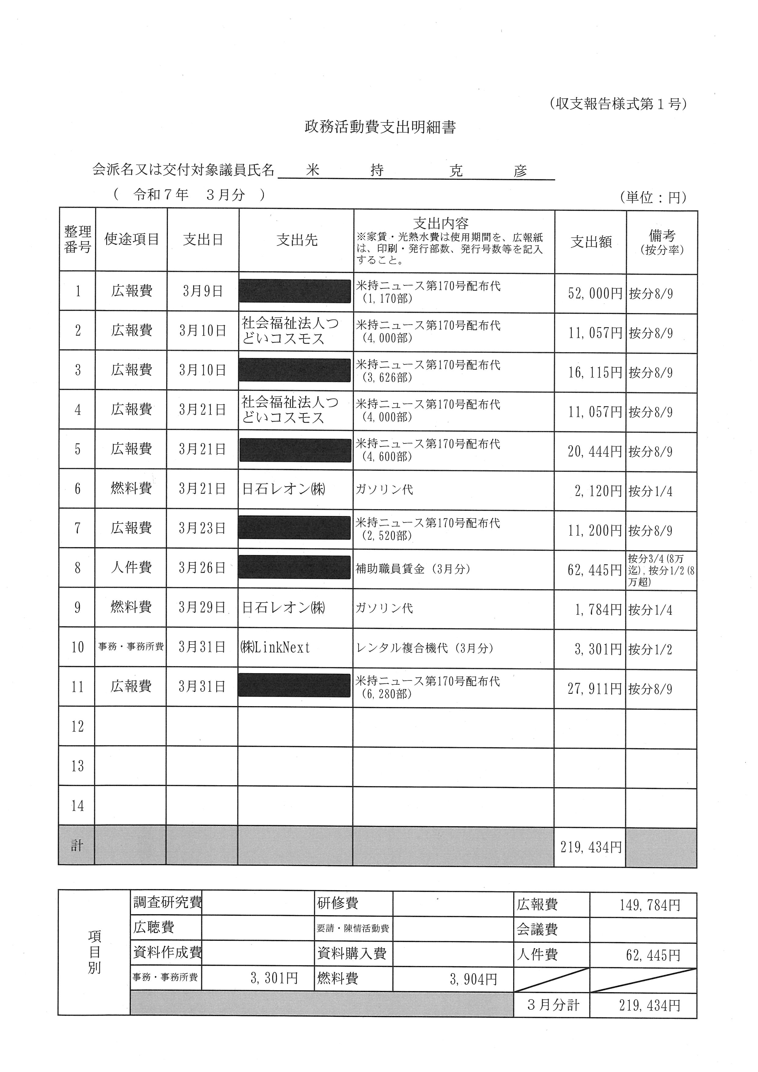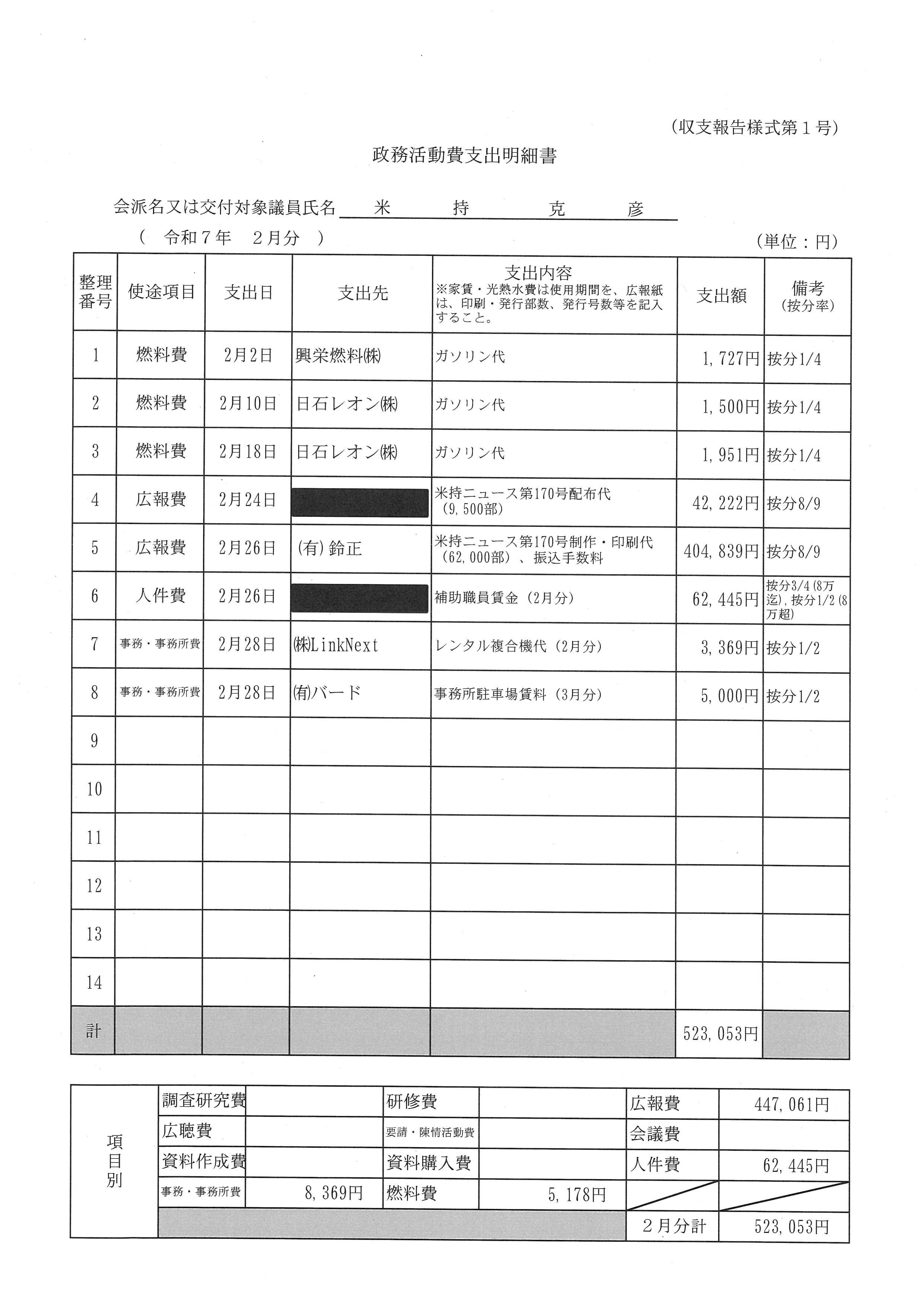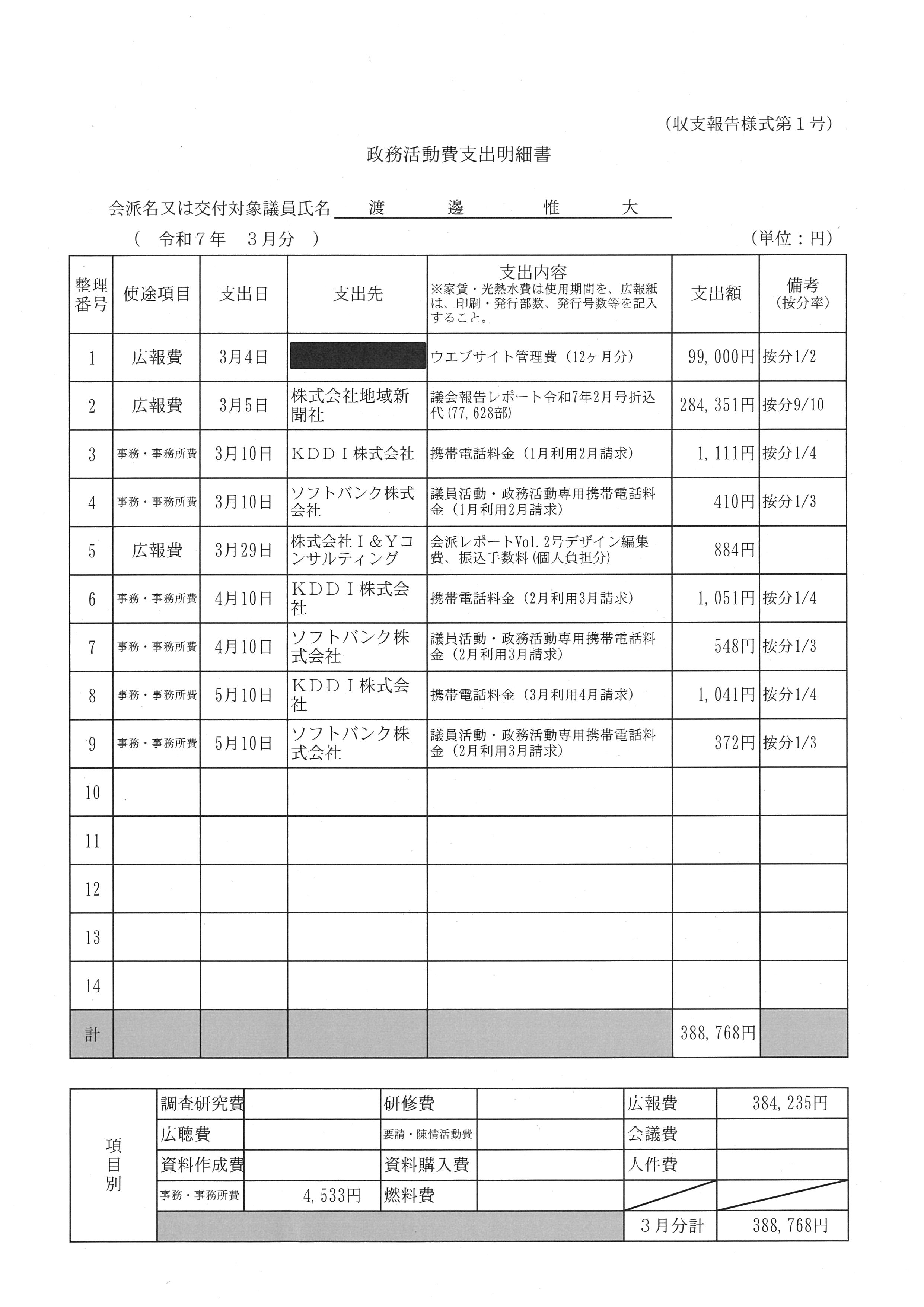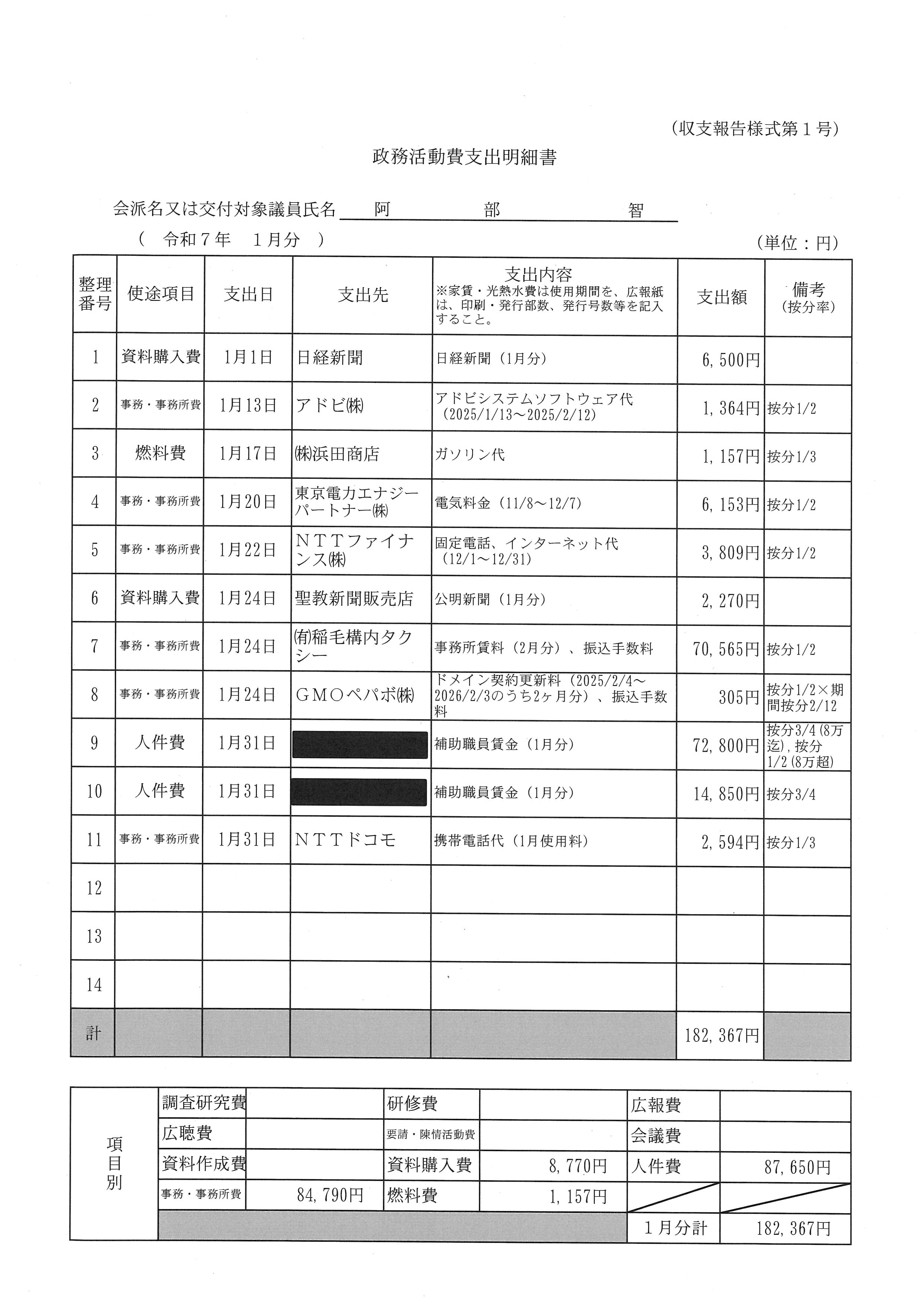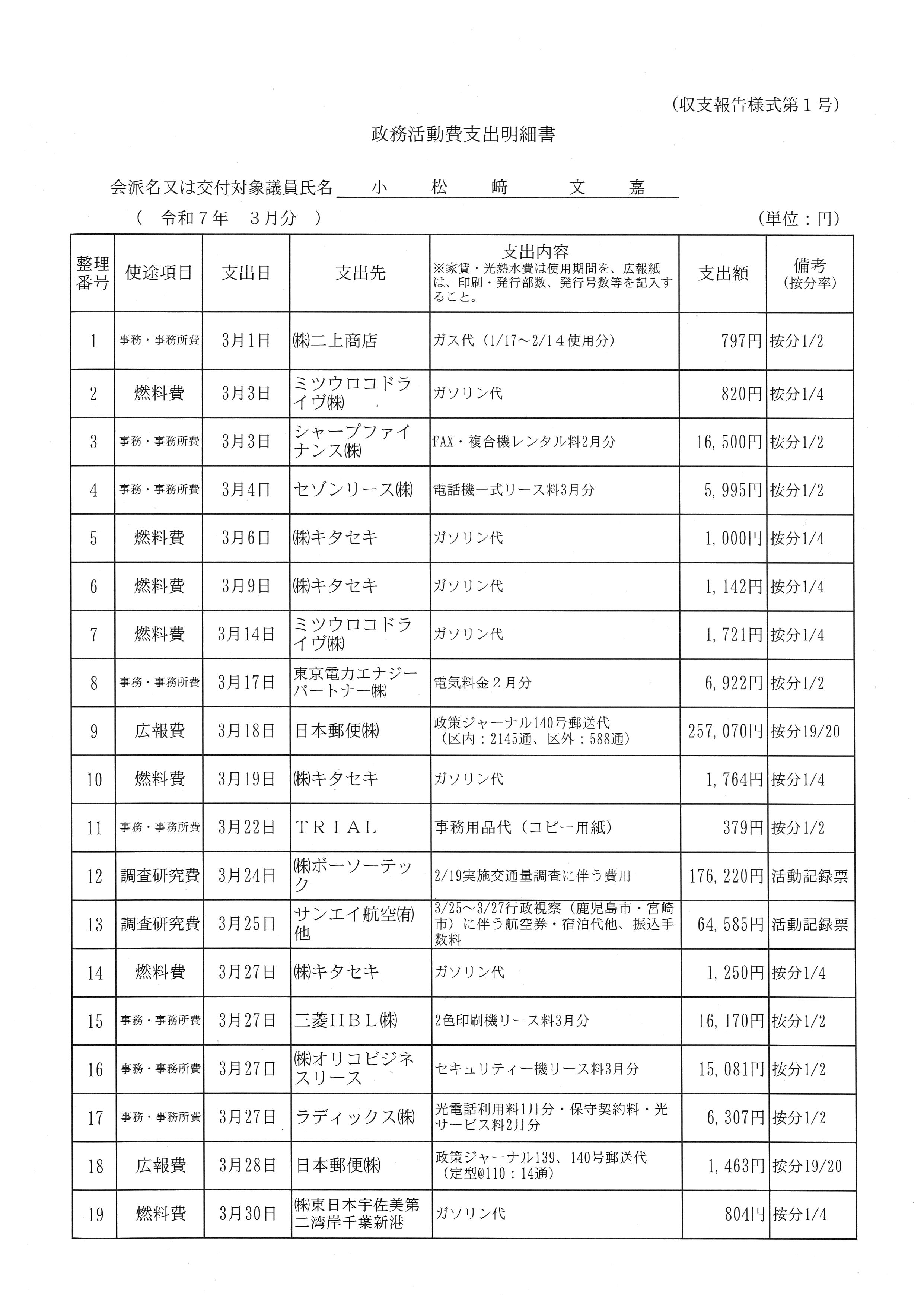 千葉市議会トップページ > 広報・情報公開 > 政務活動費 > 令和6年度交付分(政務活動費収支報告書)