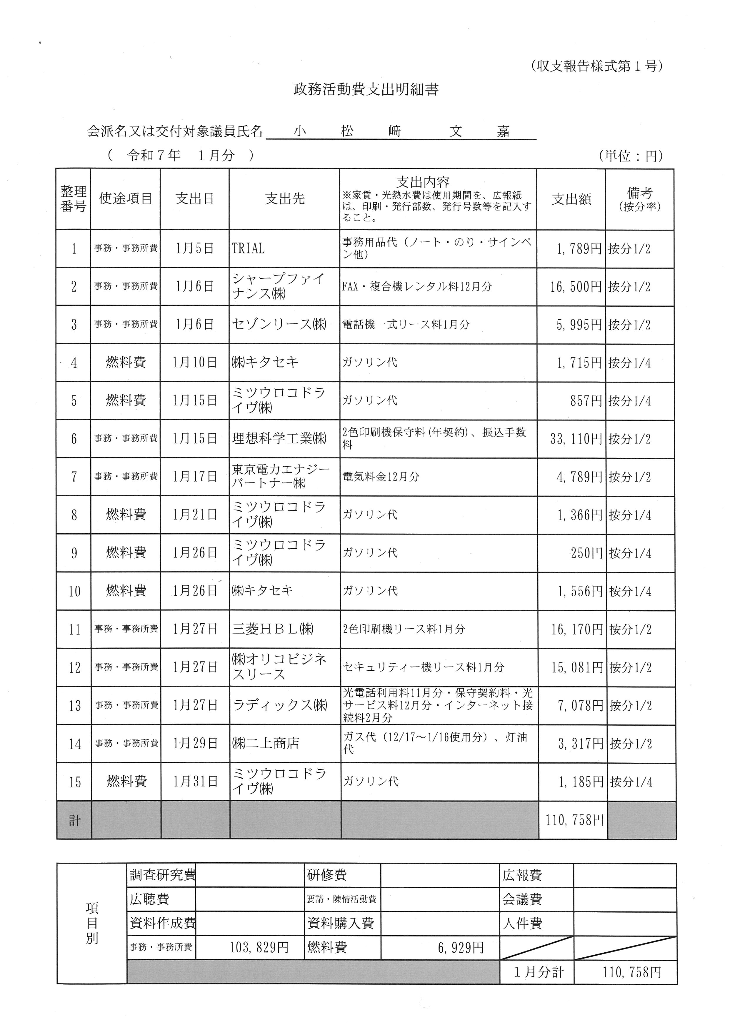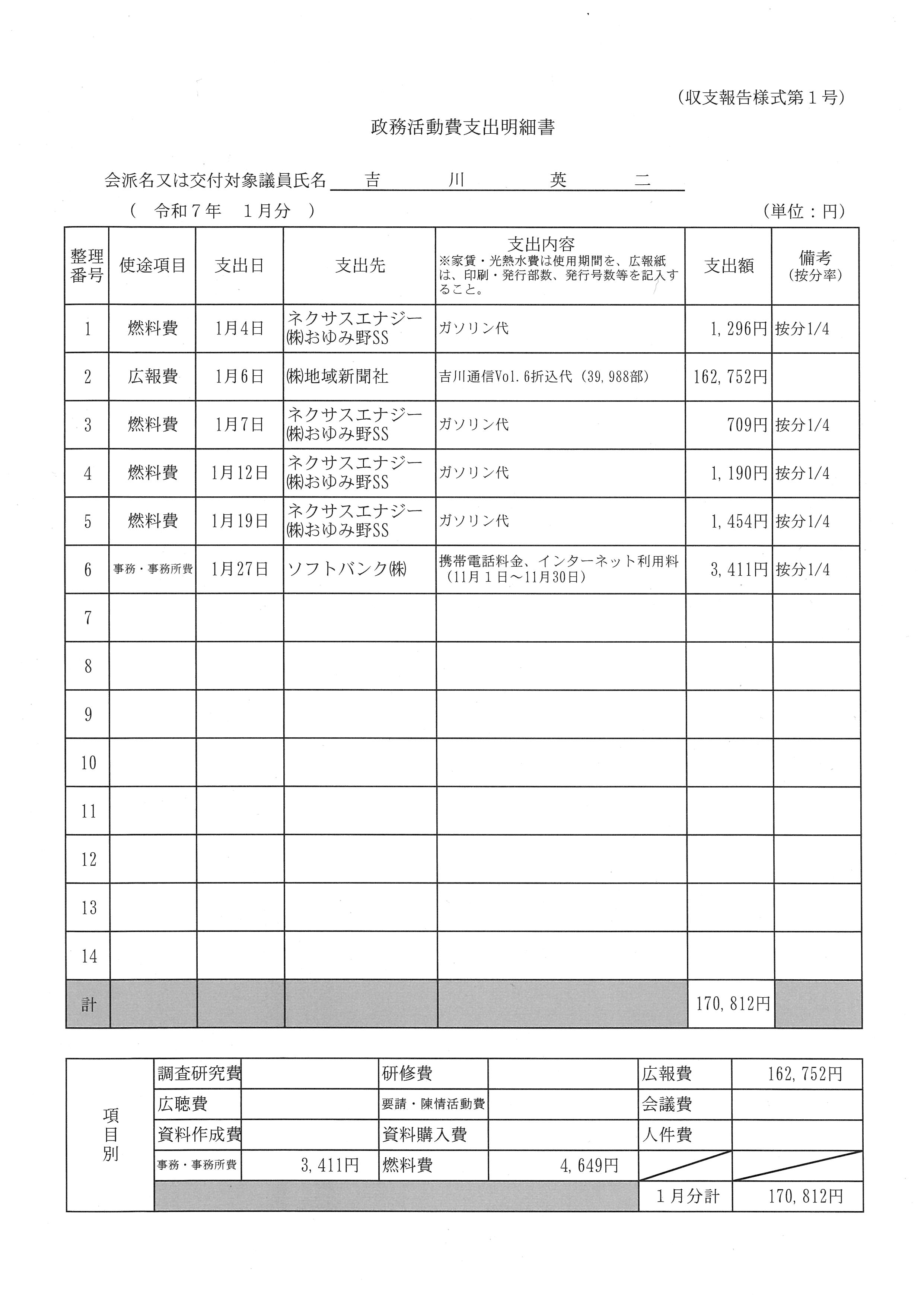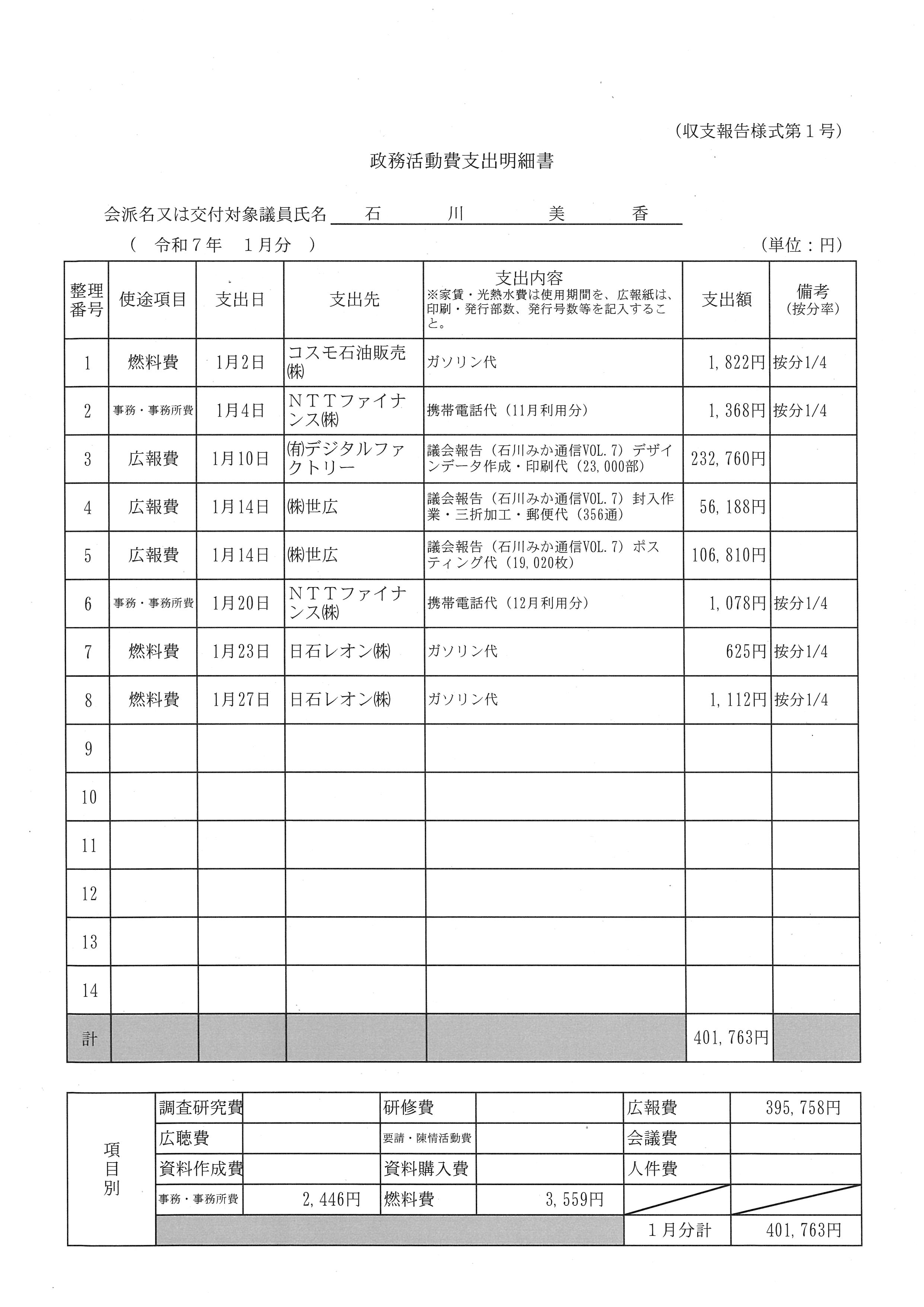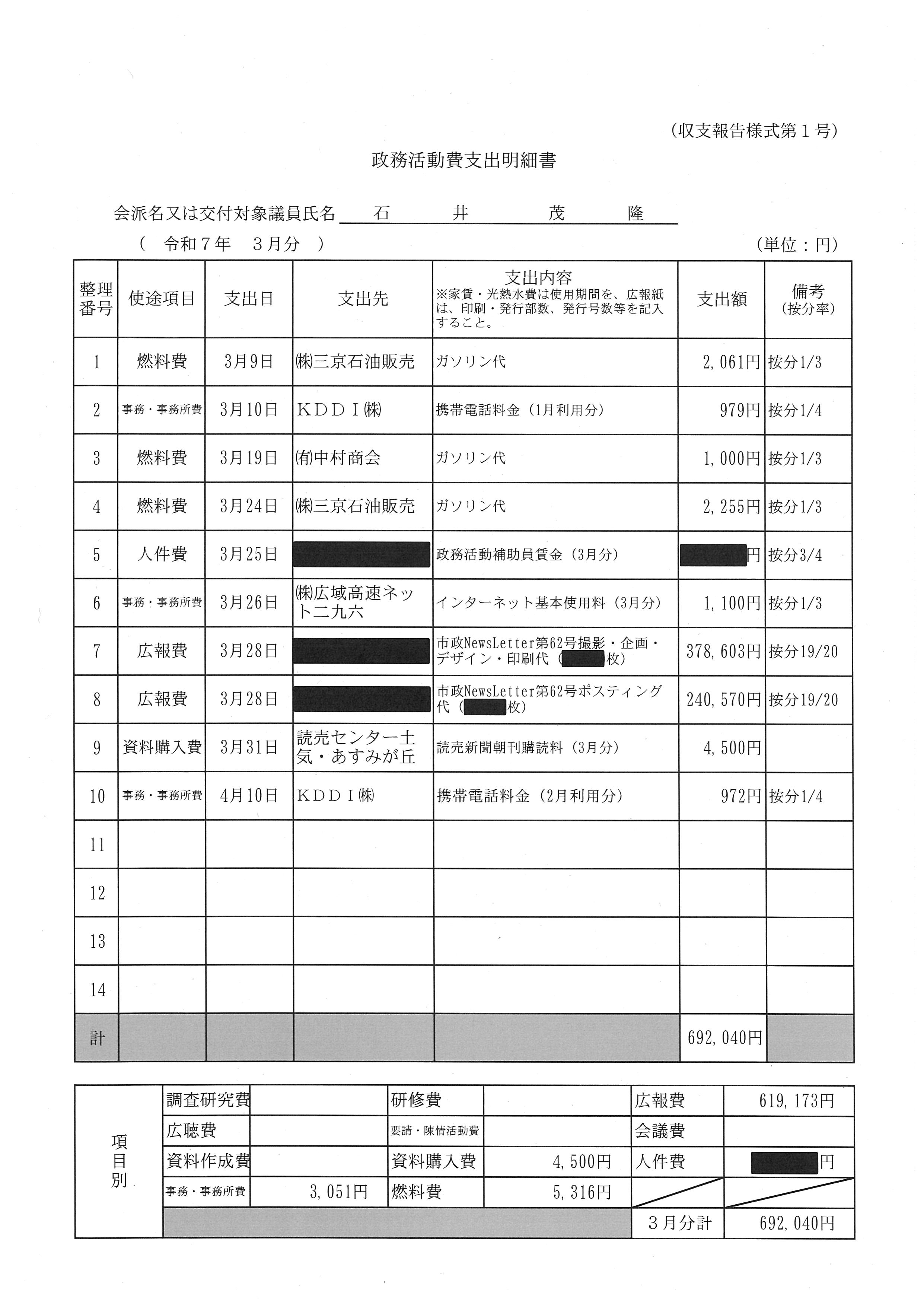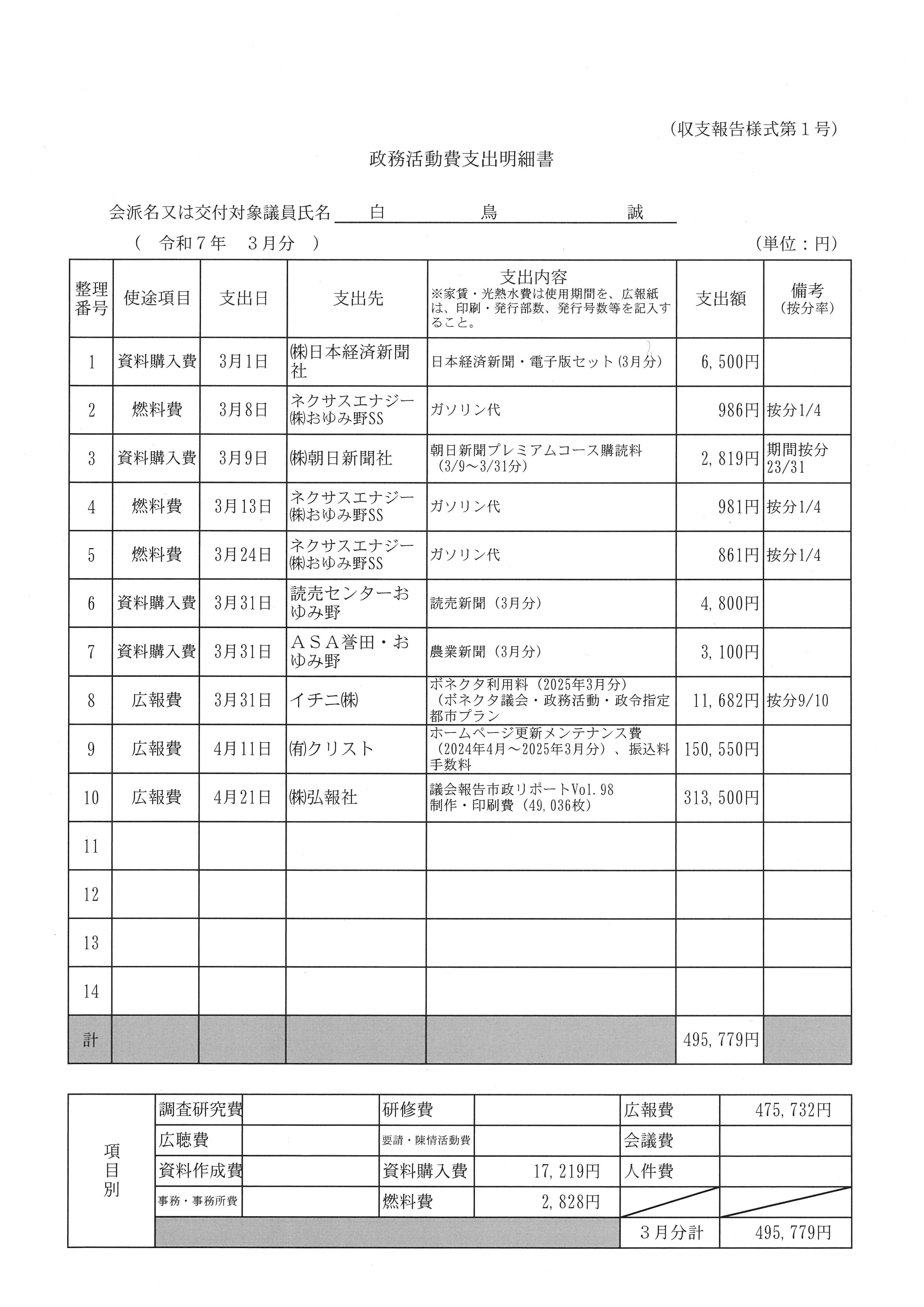 千葉市議会トップページ > 広報・情報公開 > 政務活動費 > 令和6年度交付分(政務活動費収支報告書)