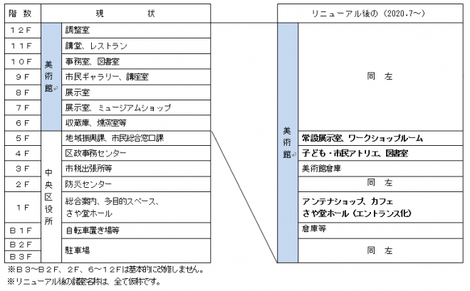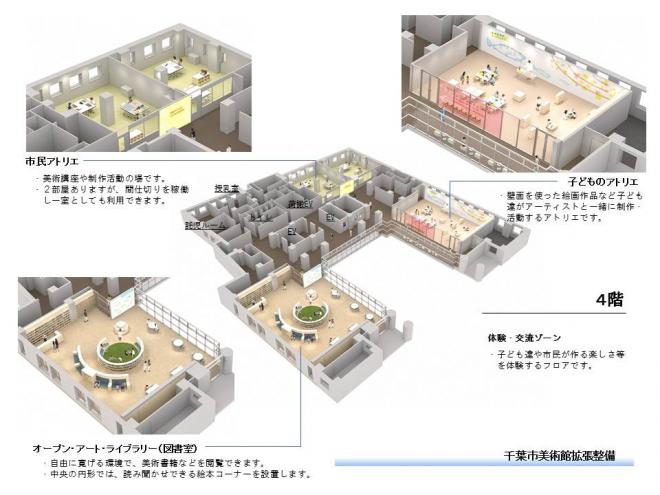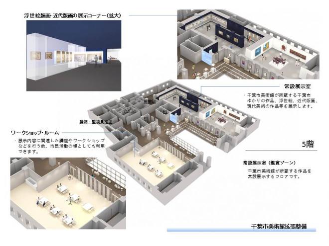 千葉市美術館は、文化面から千葉都心への集客を図るため、現在の中央区役所が移転した跡スペースを活用し、新たな展示スペースを設けるなど2020年7月を目途にリニューアルいたします。