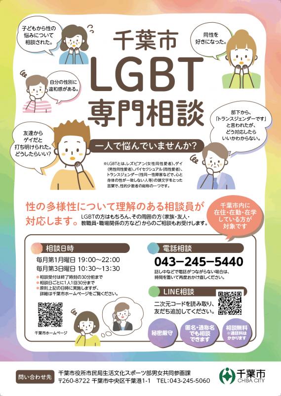 ホーム > 市政全般 > 平和・人権・国際交流 > 男女共同参画 > 千葉市LGBT専門相談