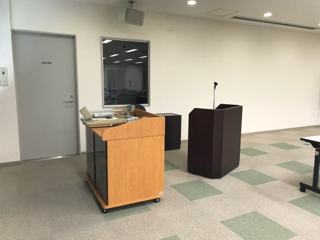 DVD付PC、プロジェクター、マイク、ホワイトボード、指示棒など