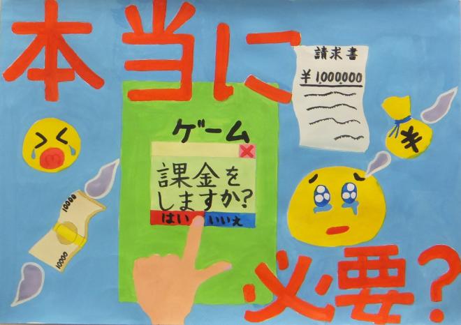 市内の小・中学生を対象として、今年も「消費者教育ポスター」を募集しました。小・中学生共通テーマ「スマートフォンの使い方」、小学生テーマ「お金を大切にするということ」、中学生テーマ「消費者トラブルにあわないために」の3つのテーマから選んで制作していただき、73作品の応募の中から入賞作品10作品が決定しました。