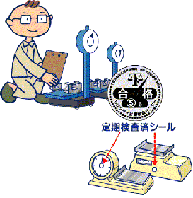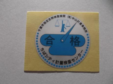 はかりの定期検査:千葉市指定定期検査機関が各事業所を巡回して検査をします。 合格シール(右の図):定期検査に合格した計量器には合格シールを貼付します。 |
