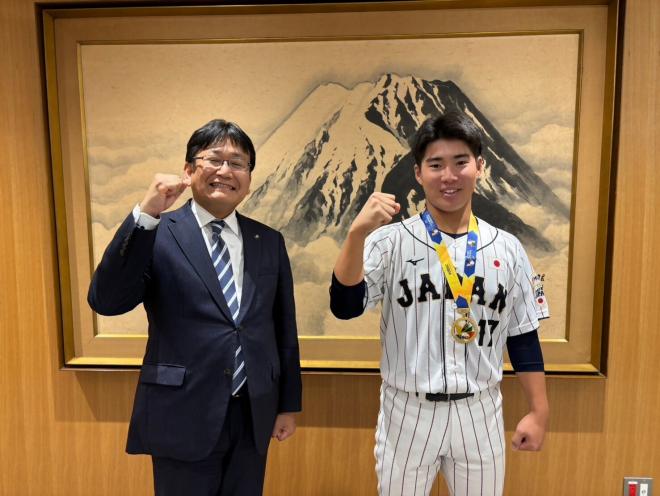 千葉市立幕張中学校3年生の石毛慎二郎選手(非営利活動法人千葉市リトルシニア野球協会所属)が、「第6回WBSC U-15ワールドカップ」で優勝しました。その報告に市長を表敬訪問しました。