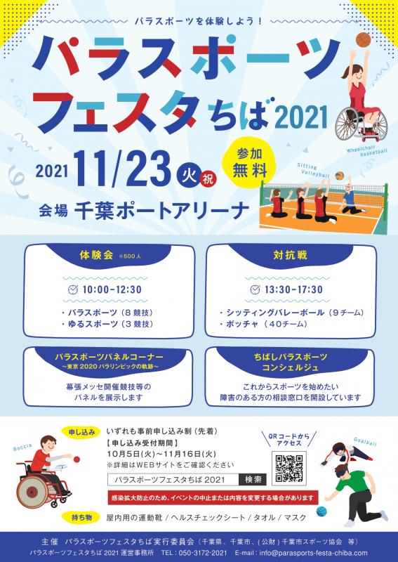 2021年11月23日(火曜日)に千葉ポートアリーナにて、パラスポーツの魅力を体感できるイベント「パラスポーツフェスタちば2021」を開催します。