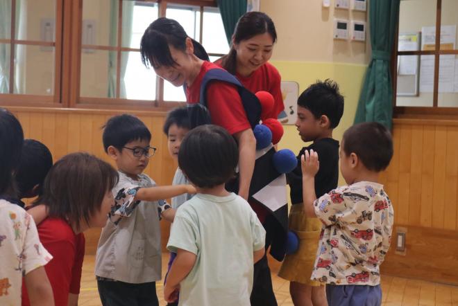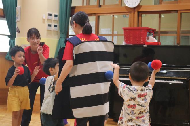 ※ペガーボールを取り入れた遊び(鬼ごっこや的あてなど)を千葉市大宮学園の園児が