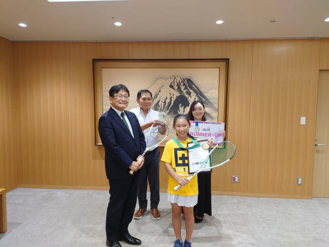 千葉市立緑町小学校5年生の吉野莉央選手(Greetings所属)が、「第35回ジャパンジュニアオープンスカッシュ選手権女子U11」で優勝しました。その報告に市長を表敬訪問しました。