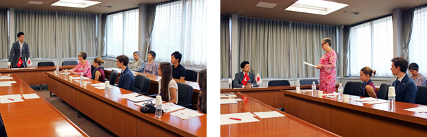 熊谷市長から、「モントルー市の親善大使として、ホストファミリーの方々をはじめ、たくさんの千葉市民と交流を深めてください。帰国した後も、両市の友好の架け橋として大いに活躍されますことを心から期待しています。」との挨拶があり、皆さんは熱心に耳を傾けていました。