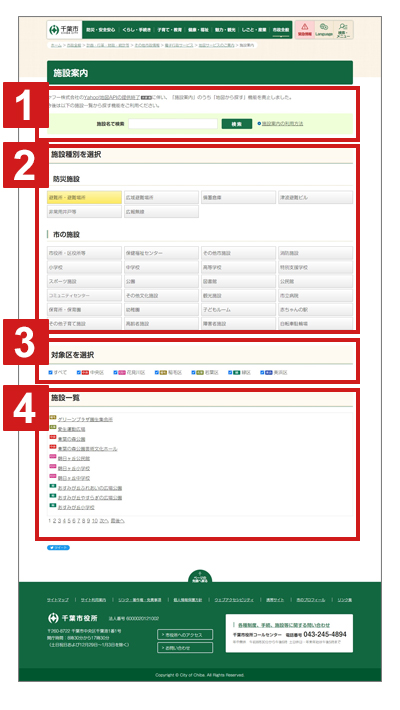 施設一覧エリア 4 に該当する施設の名称一覧が表示されます。