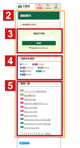 施設一覧エリア 5 に該当する施設の名称一覧が表示されます。