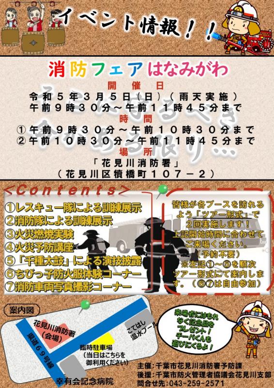 花見川消防署では、3月1日から7日まで実施される春の火災予防運動の一環として、消防フェアを開催します。