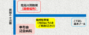 ※車でお越しの際は、こてはし温水プール臨時駐車場をご利用ください。