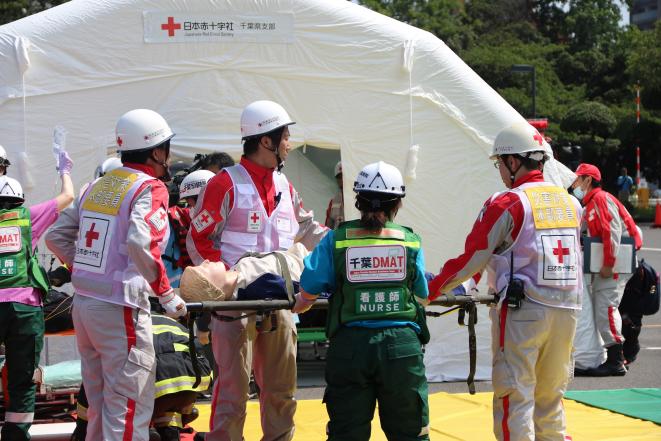 その他、中央区の中央区役所において、(一社)千葉市医師会、(一社)千葉市歯科医師会、(一社)千葉市薬剤師会、(公社)千葉県看護協会と協同し、システムを活用した情報収集を行うなど実災害を想定した区拠点救護所開設・運営訓練を実施しました。