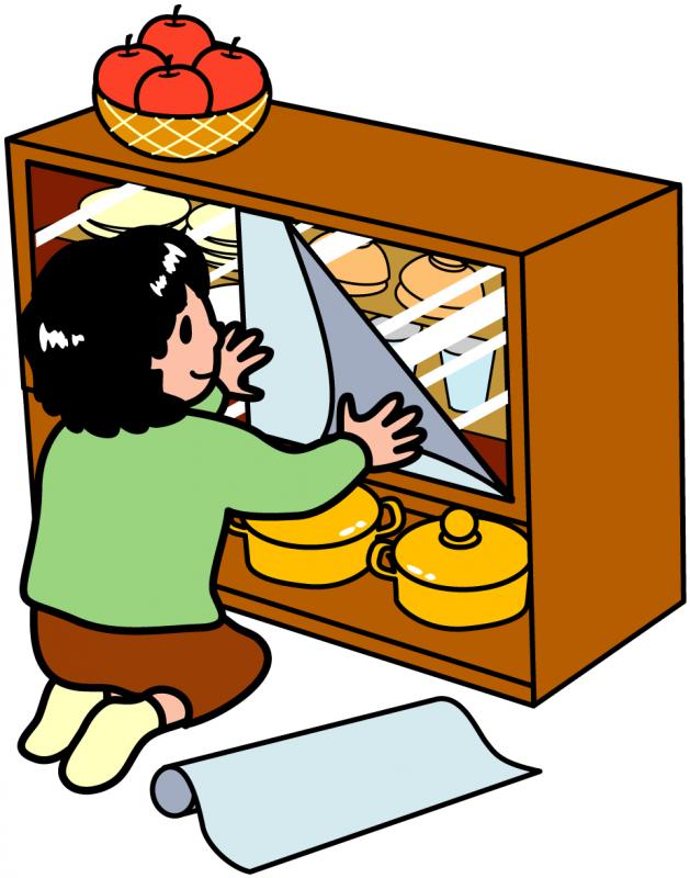 食器棚や窓のガラスに飛散防止フィルムを貼る。