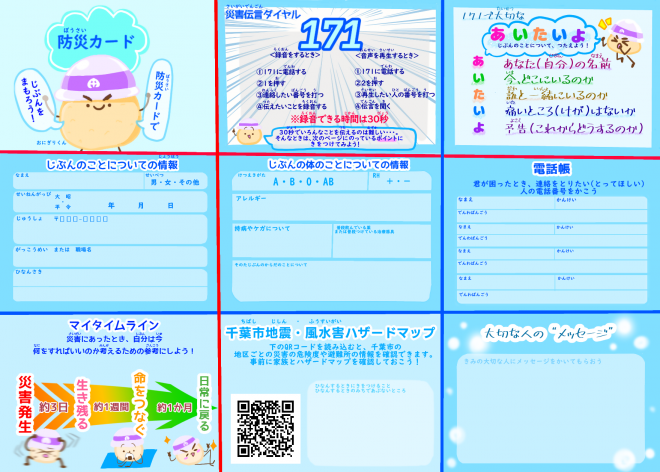 千葉市の「こども議会」の提案で防災に関するワークショップが行われました。その中で、こどもたちが「防災カード」を作成しました。